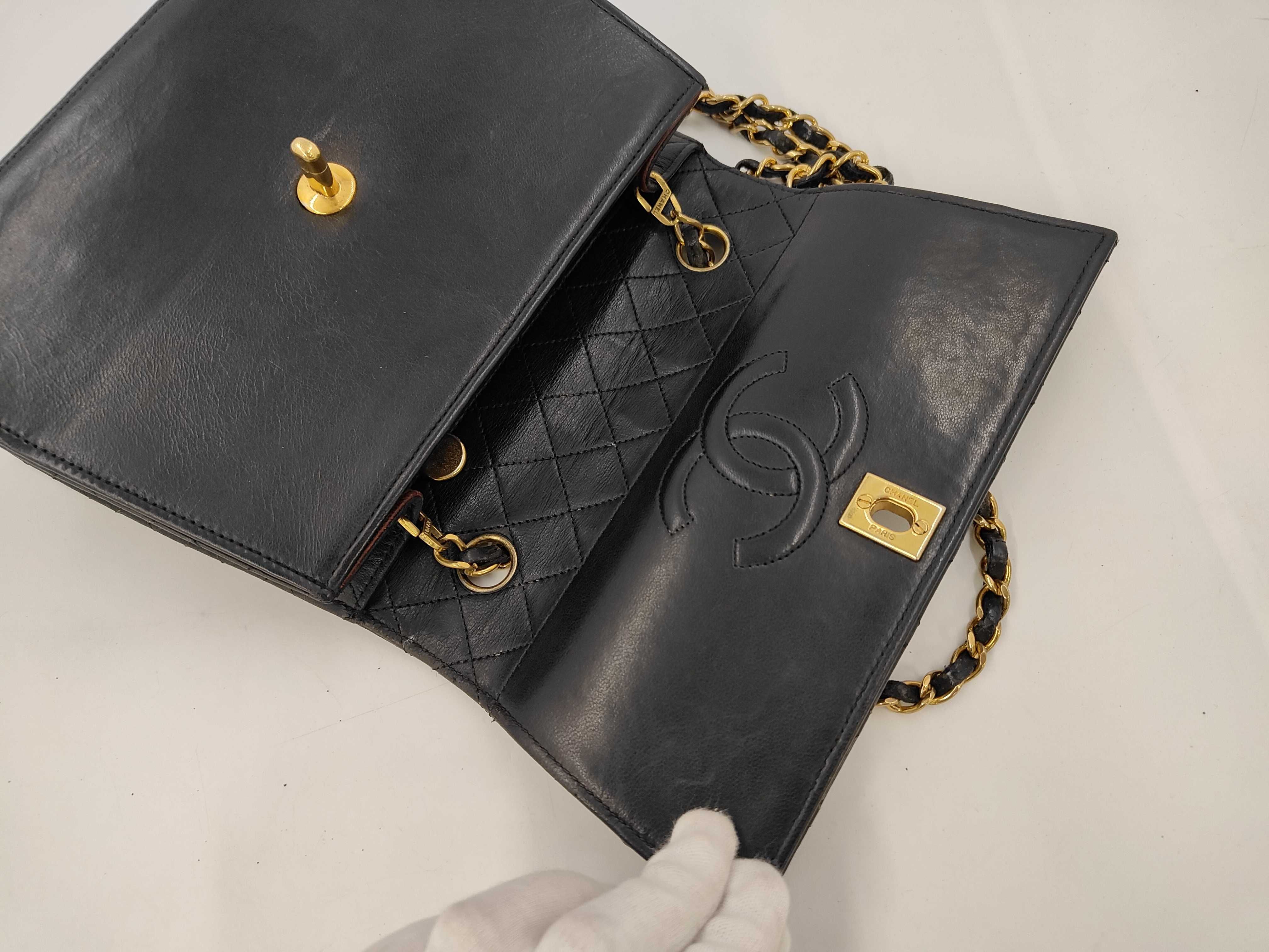 (11932_0287)CHANEL CHANEL シャネル 台形 チェーンショルダー ラムスキン G金具 カード付 ショルダーバッグ