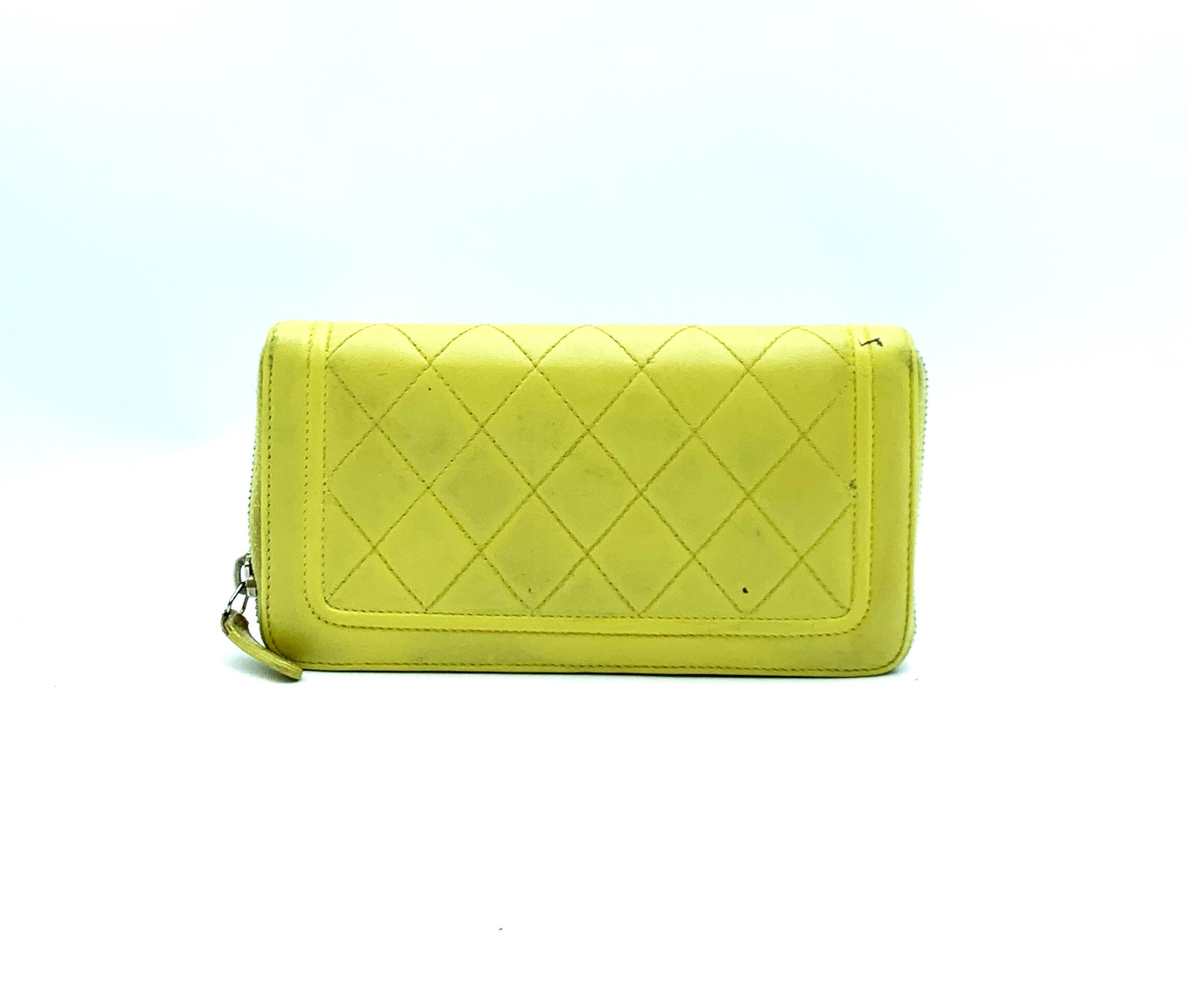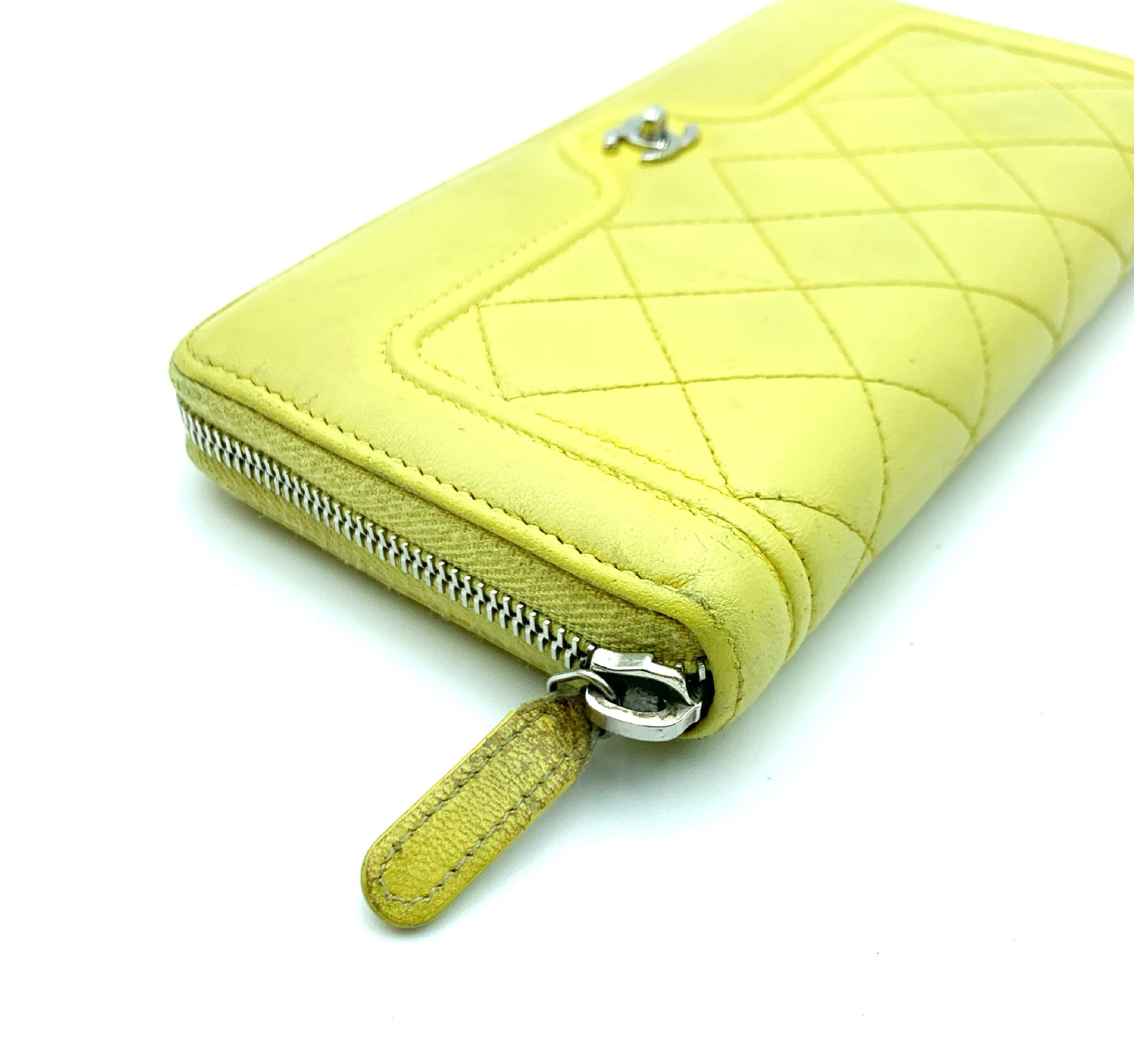 (11932_0294)CHANEL シャネル マトラッセ ココマーク イエロー 黄 シルバー金具 長財布 財布