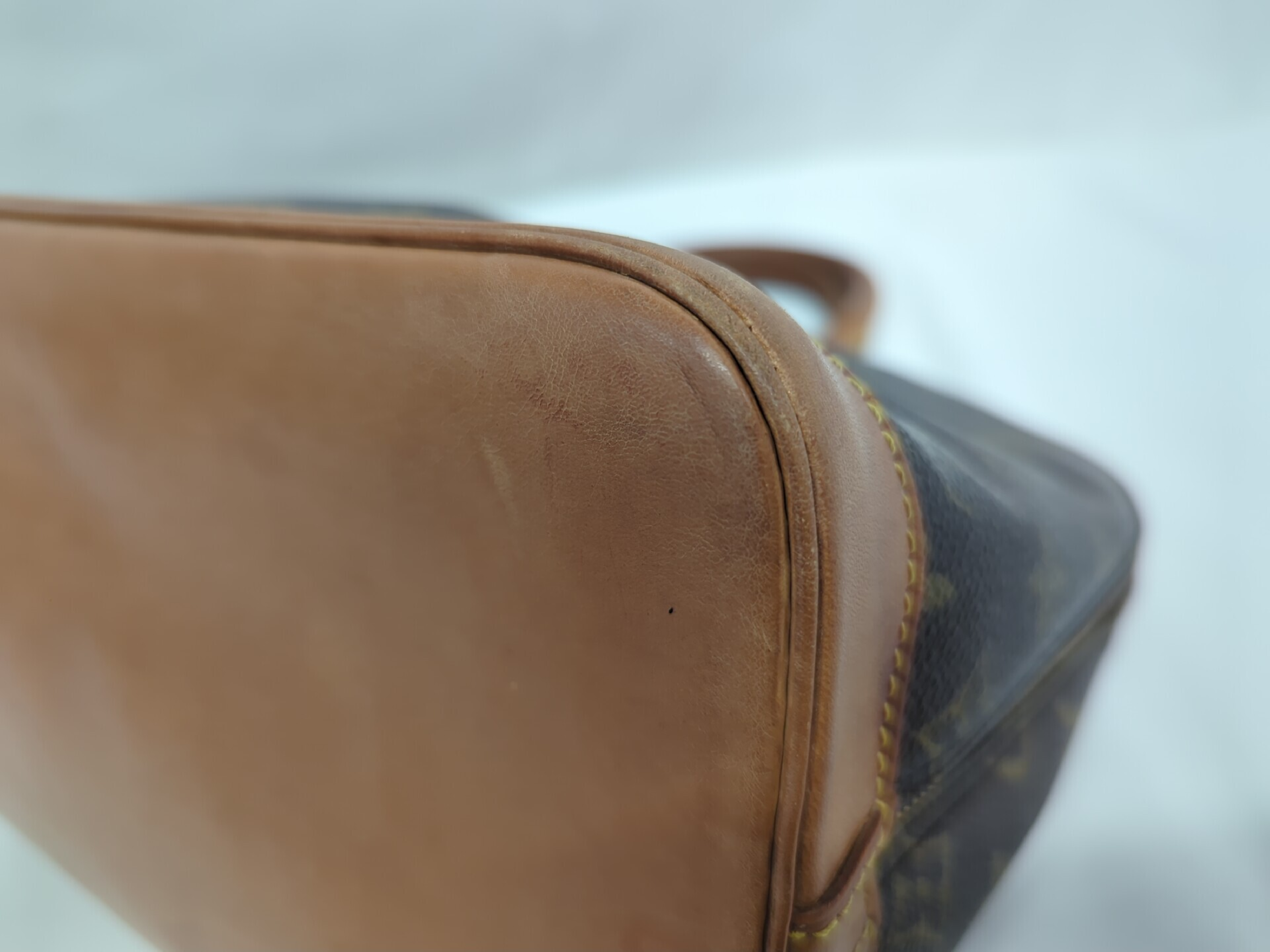 全体ヤケ擦れ(中) 型崩れ(小) 角擦れ(中) 持ち手ヤケ擦れ(中)ヒビ(小) 付け根よれ(小) 内側汚れ(中) 【シリアル
