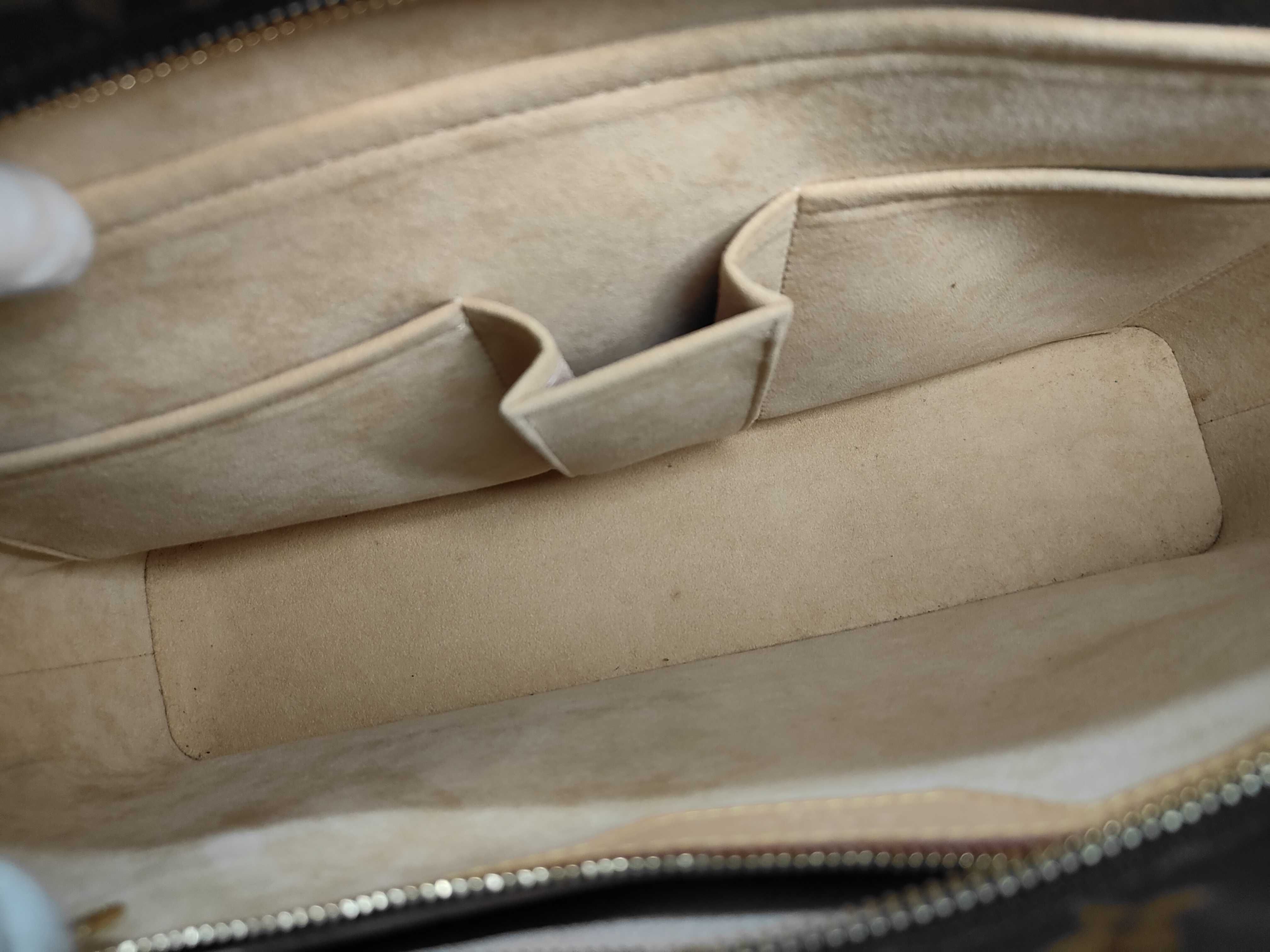 全体焼け擦れ薄汚れ(中) 型崩れ(小) 角・ふち擦れ(中) 金具擦れ傷剥げくすみ(中) 持ち手焼けヨレ擦れ(中) 内側擦れ汚れ(中) ポケット中生地べたつき劣化(大) 【シリアル