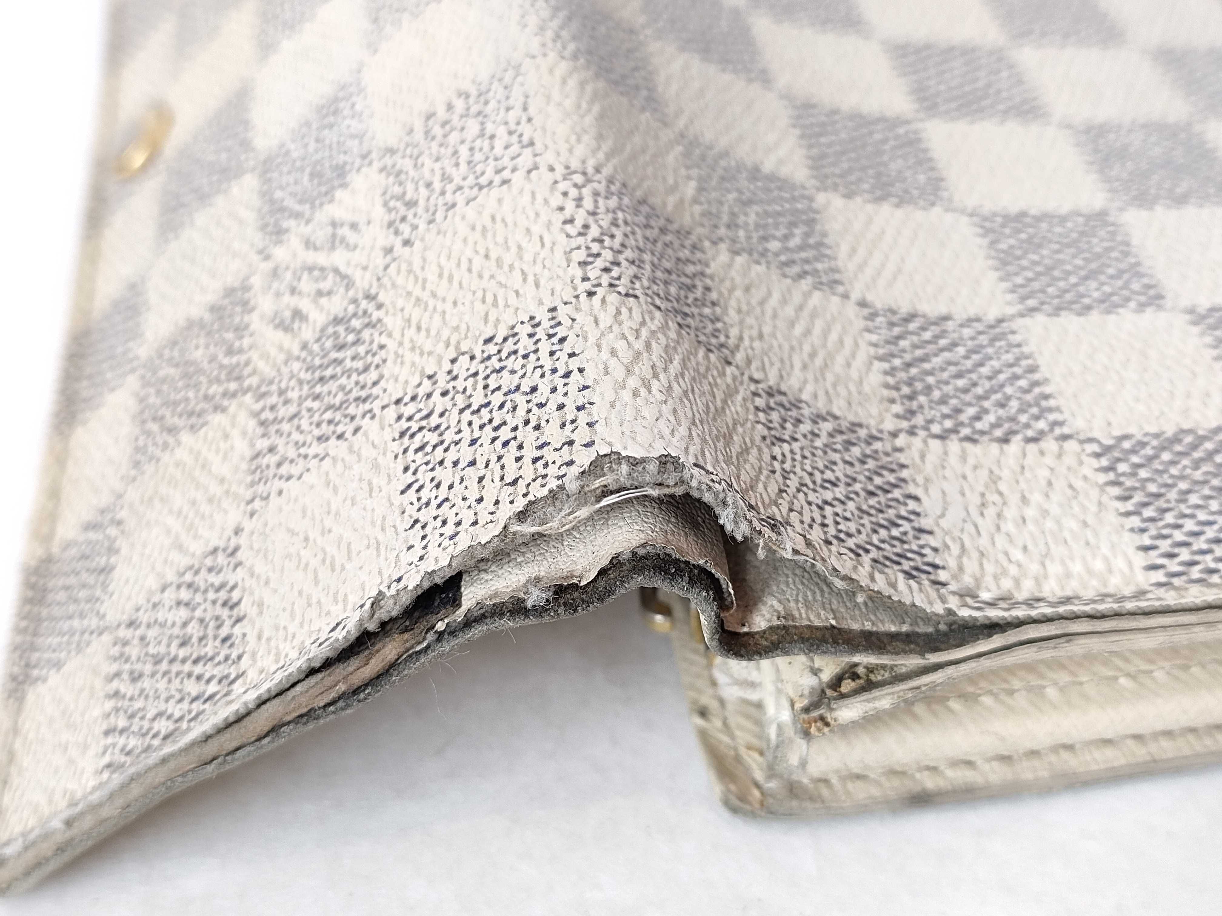 全体擦れ剥げ(大) コバヒビ擦れ剥げ破れ(大) 角擦れ剥げヒビ破れ(大) 金具擦れ(中) ファスナートップ欠損 ホック緩い 内側擦れ汚れ(中) 小銭入れ擦れ汚れ(中) フラップ付け根ヒビ破れステッチほつれ(大)","タイプライン": "ダミエ アズール", "カテゴリ": "小物", "形状コード": "財布", "付属品コード": "", "シリアル・シール・型番": "RFID確認出来ず MI4007"