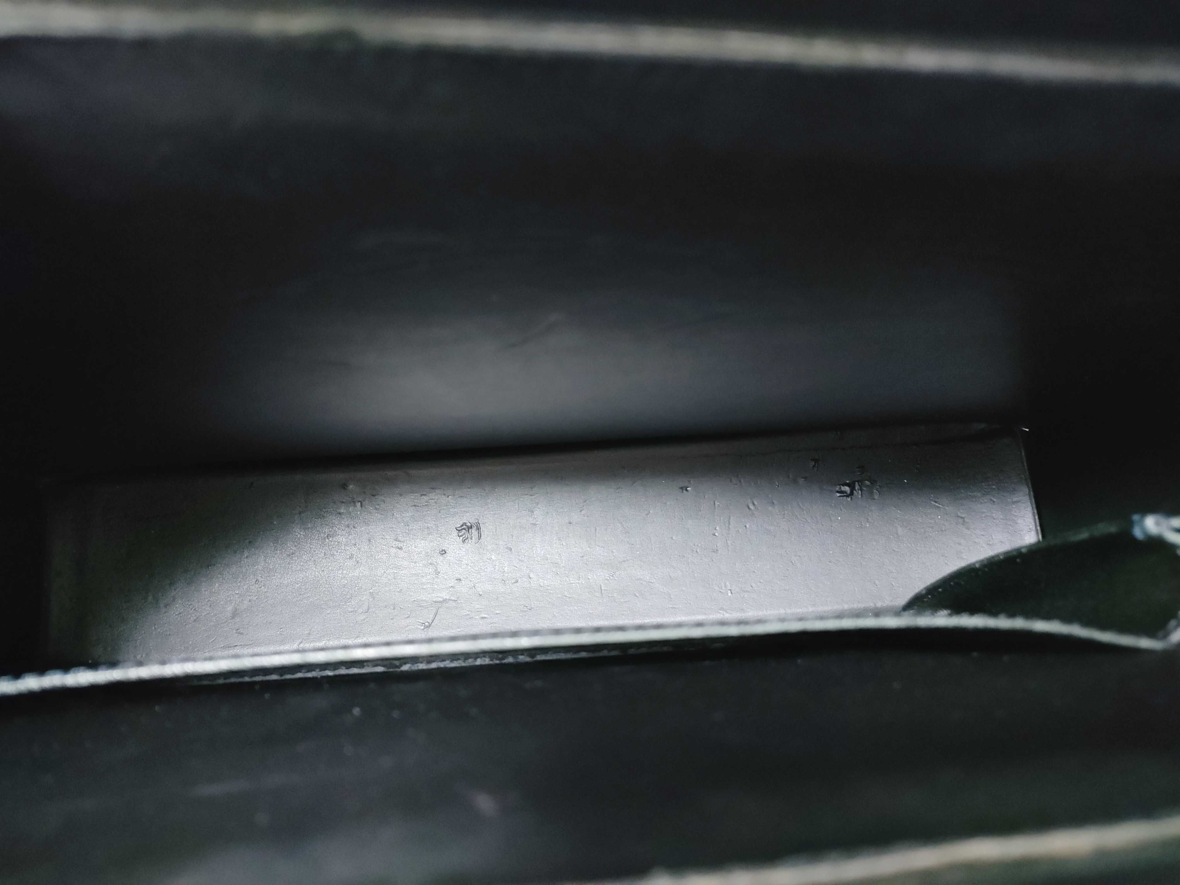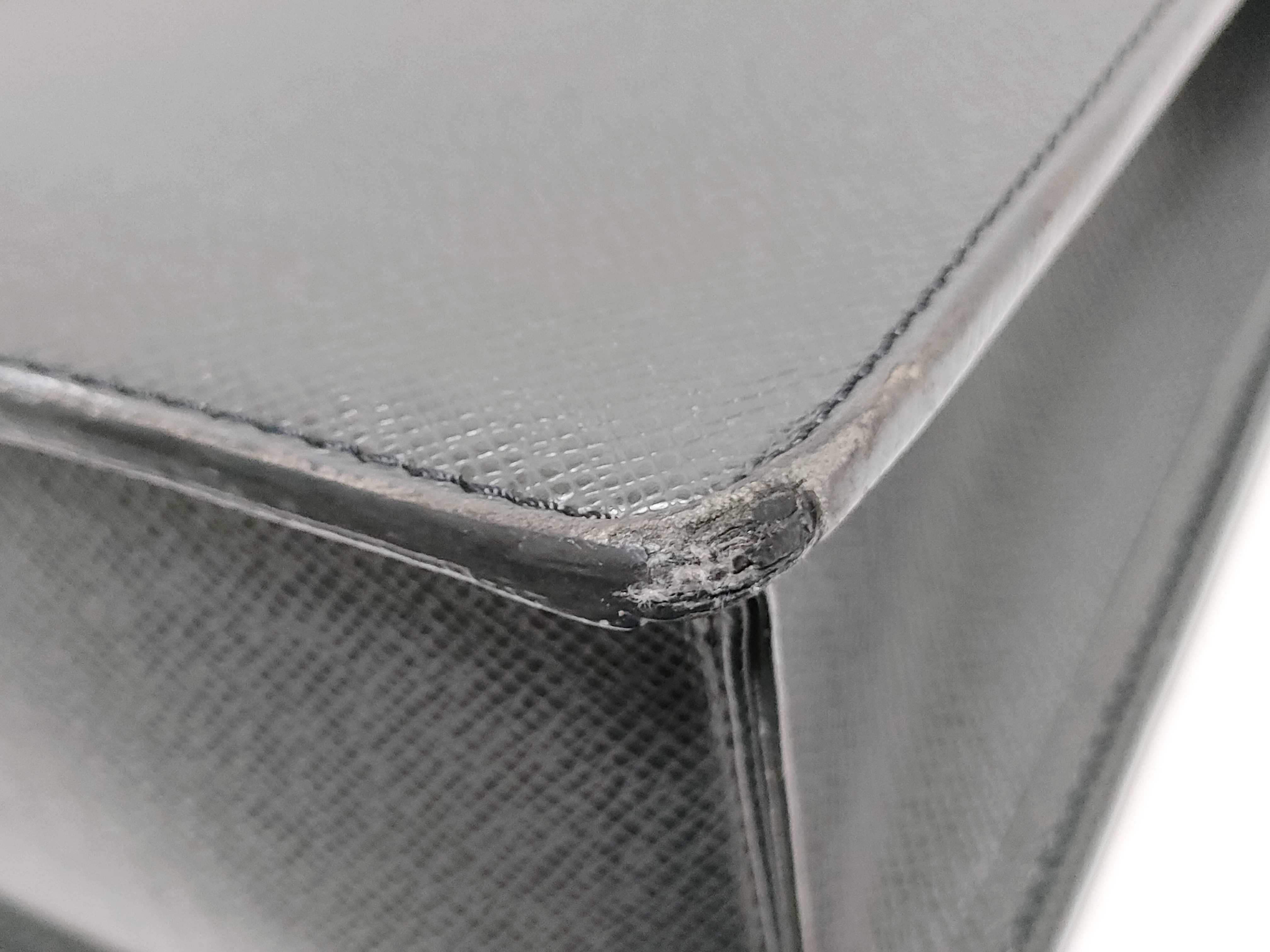 ブランド刻印消えかけ 全体焼け擦れ剥げ(中) シミ(小) 型崩れ(極小) 持ち手焼け擦れ剥げシミ(中) 黒ずみ糸ホツレ(小) コバ擦れ剥げ(中) 角擦れ剥げ(中) 金具擦れ剥げクスミ(中) 内側シミ汚れ劣化シワヨレ浮き(中) ベタツキ(小)【シリアル