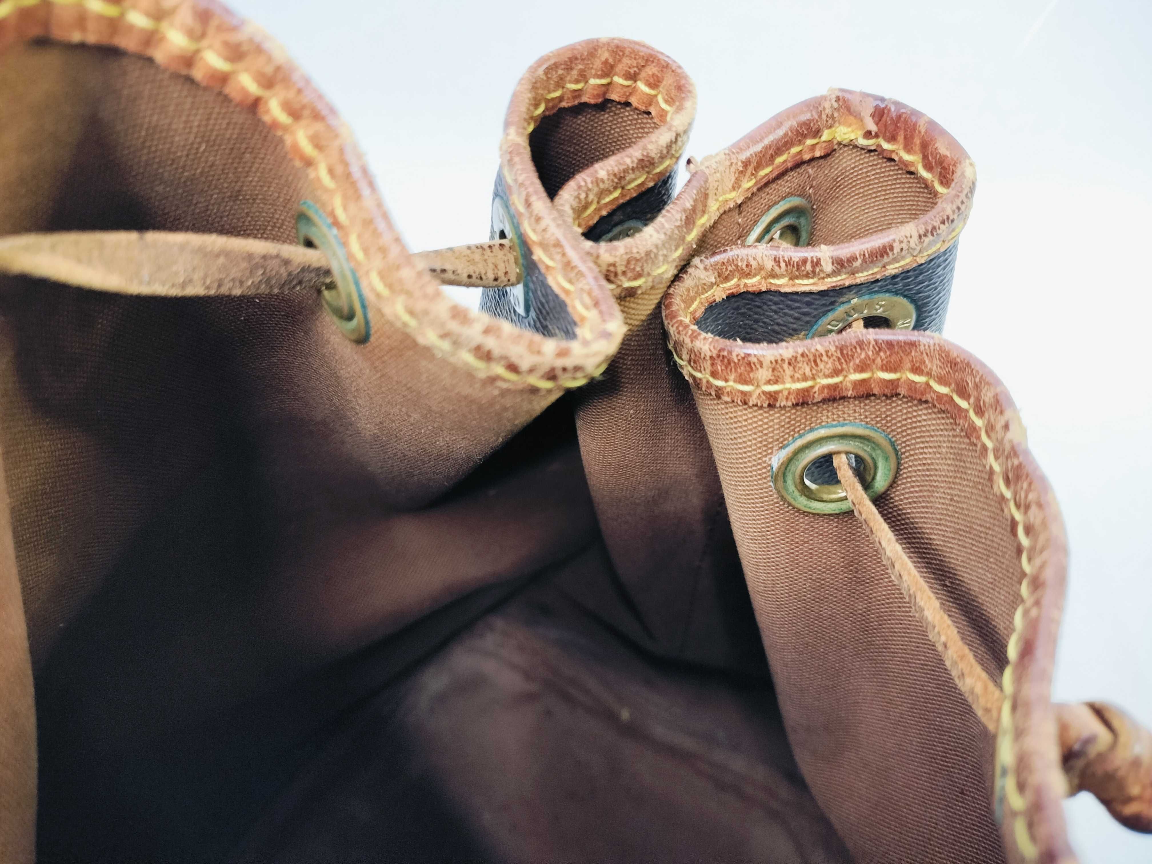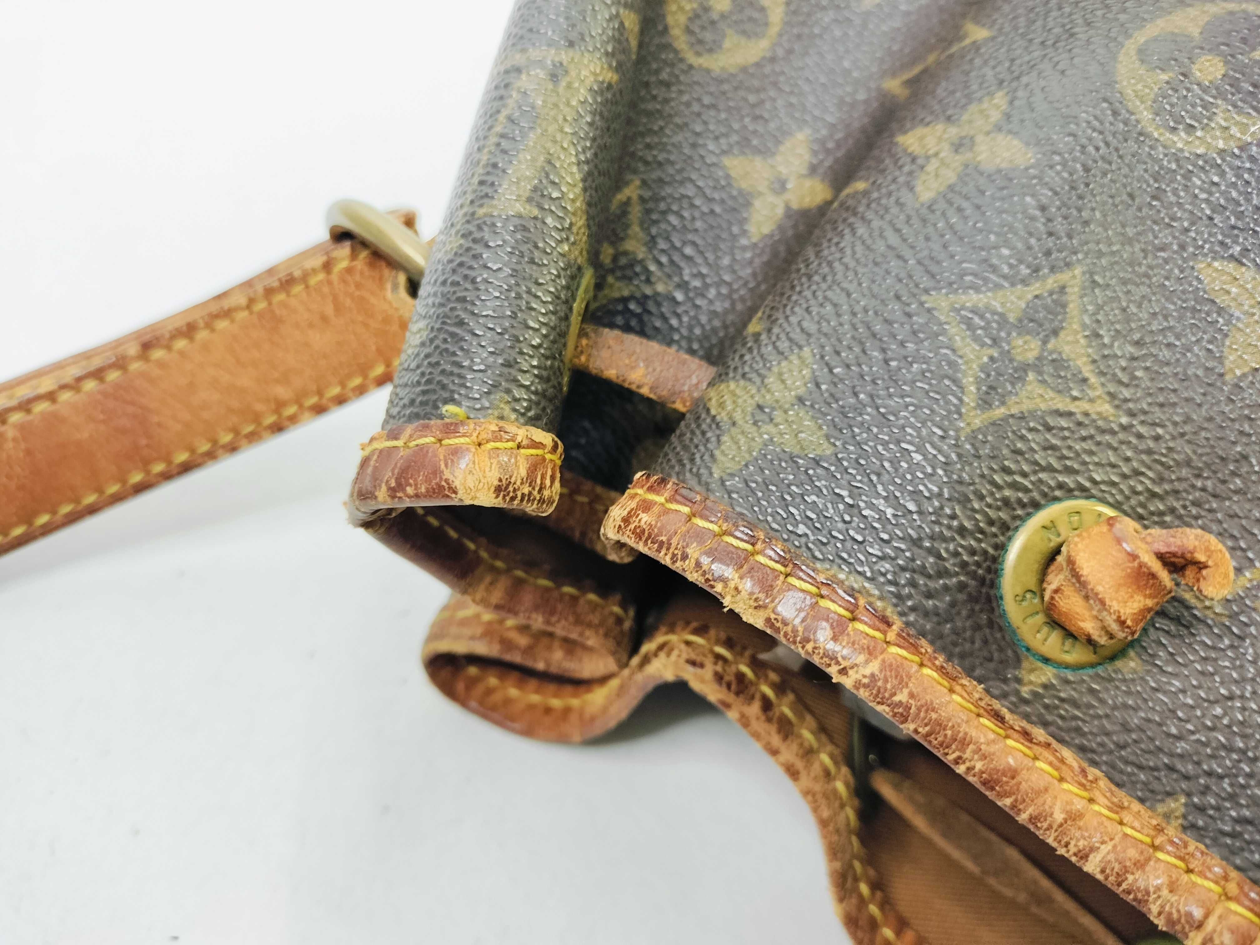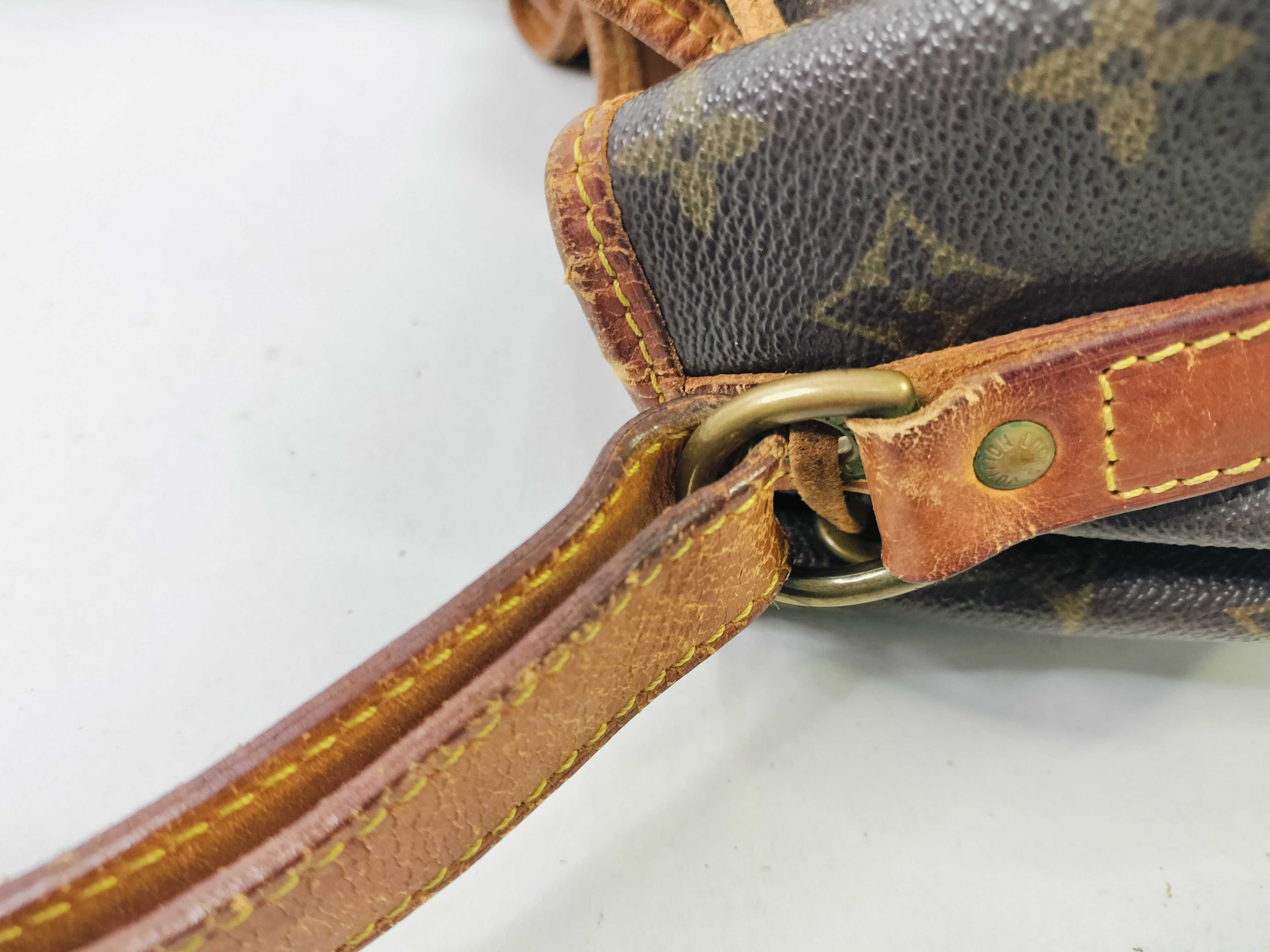 全体焼け擦れ汚れ(中) ヌメ革焼け黒ずみ染みヒビ(大) ショルダー染みヒビ(大) 付け根伸び切れヒビ(大) コバ擦れ(大) 角擦れ(大) 金具くすみ傷剥げ青サビ(大) 縁擦れ剥げ切れ(大) 紐切れ 内側焼け擦れ染みペン跡(中) 湿気臭有","タイプライン": "モノグラム", "カテゴリ": "バッグ", "形状コード": "ショルダーバッグ", "付属品コード": "", "シリアル・シール・型番": "【シリアル