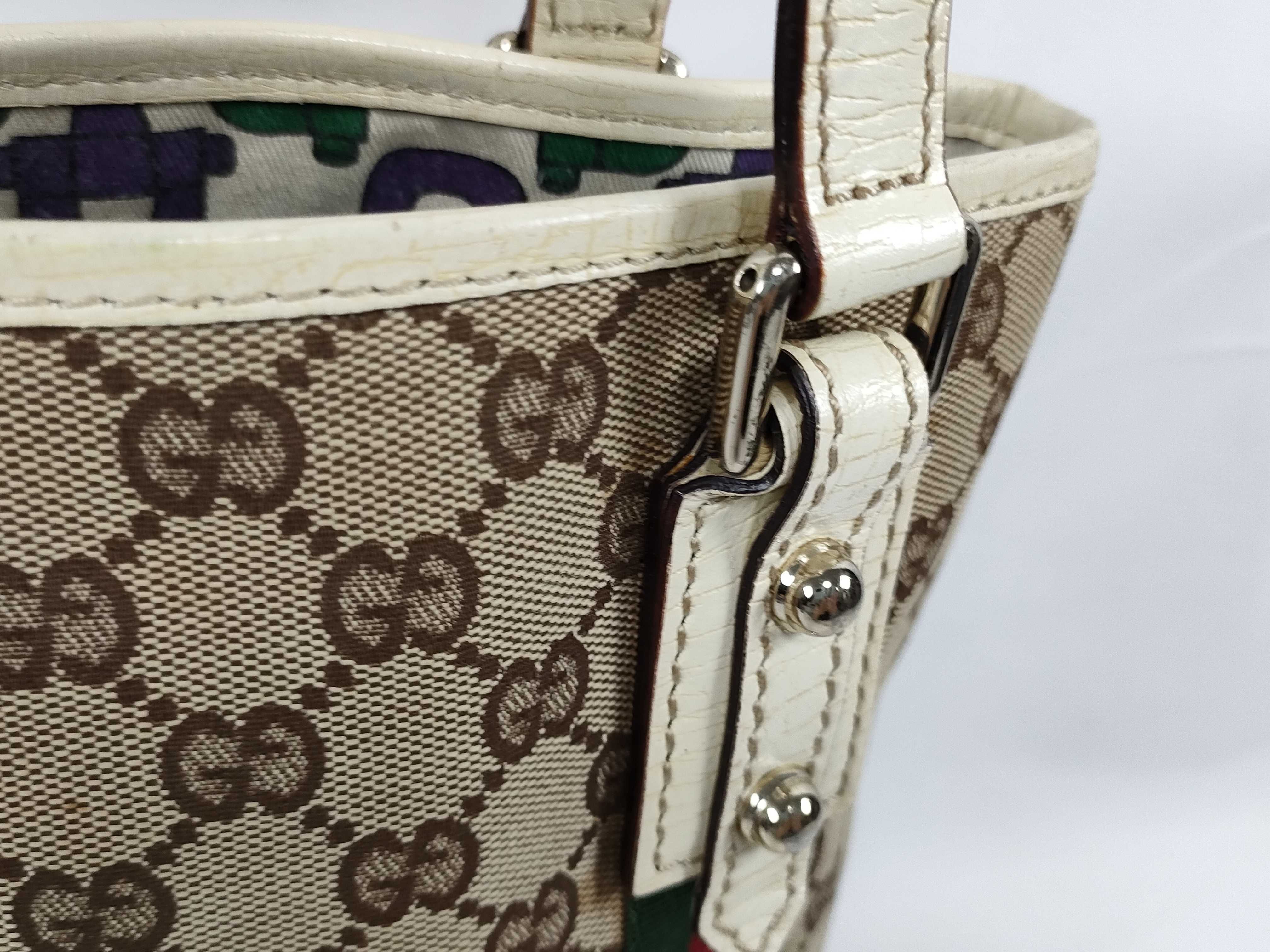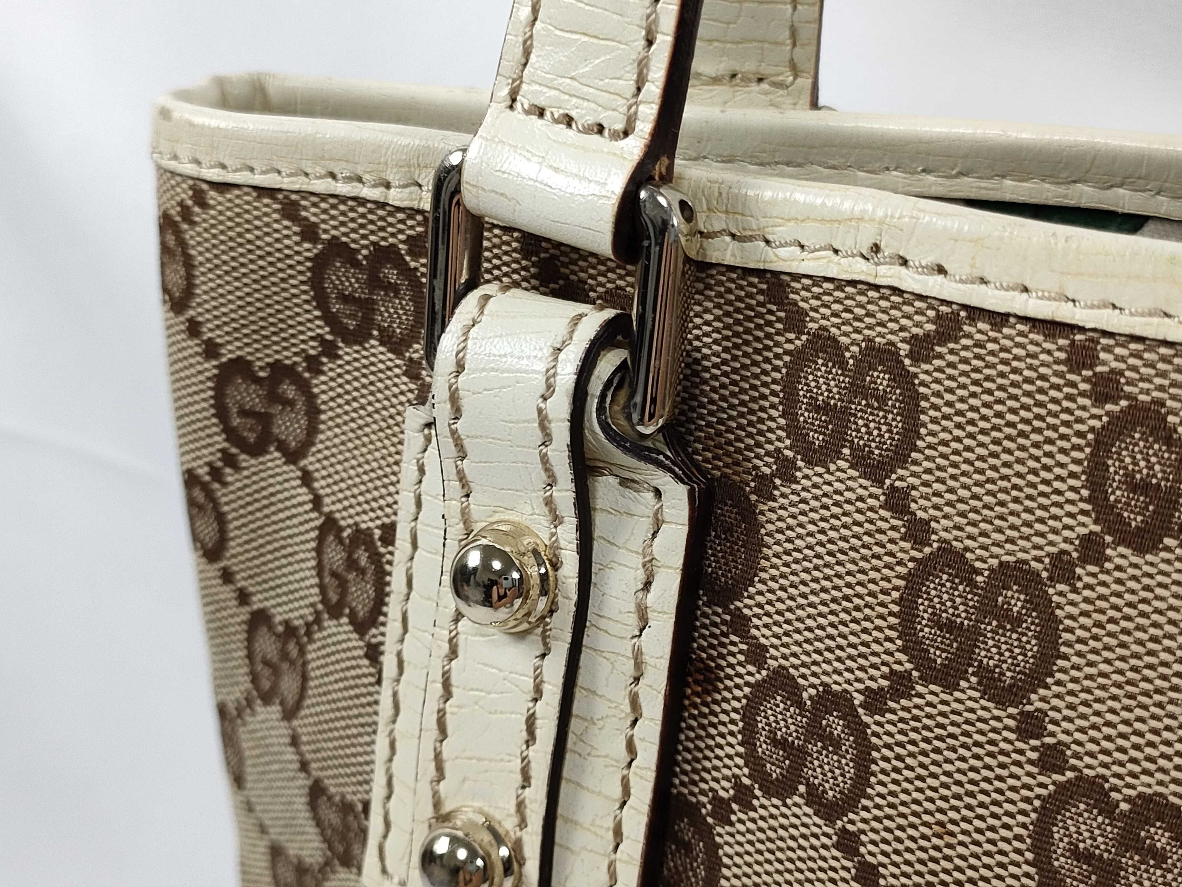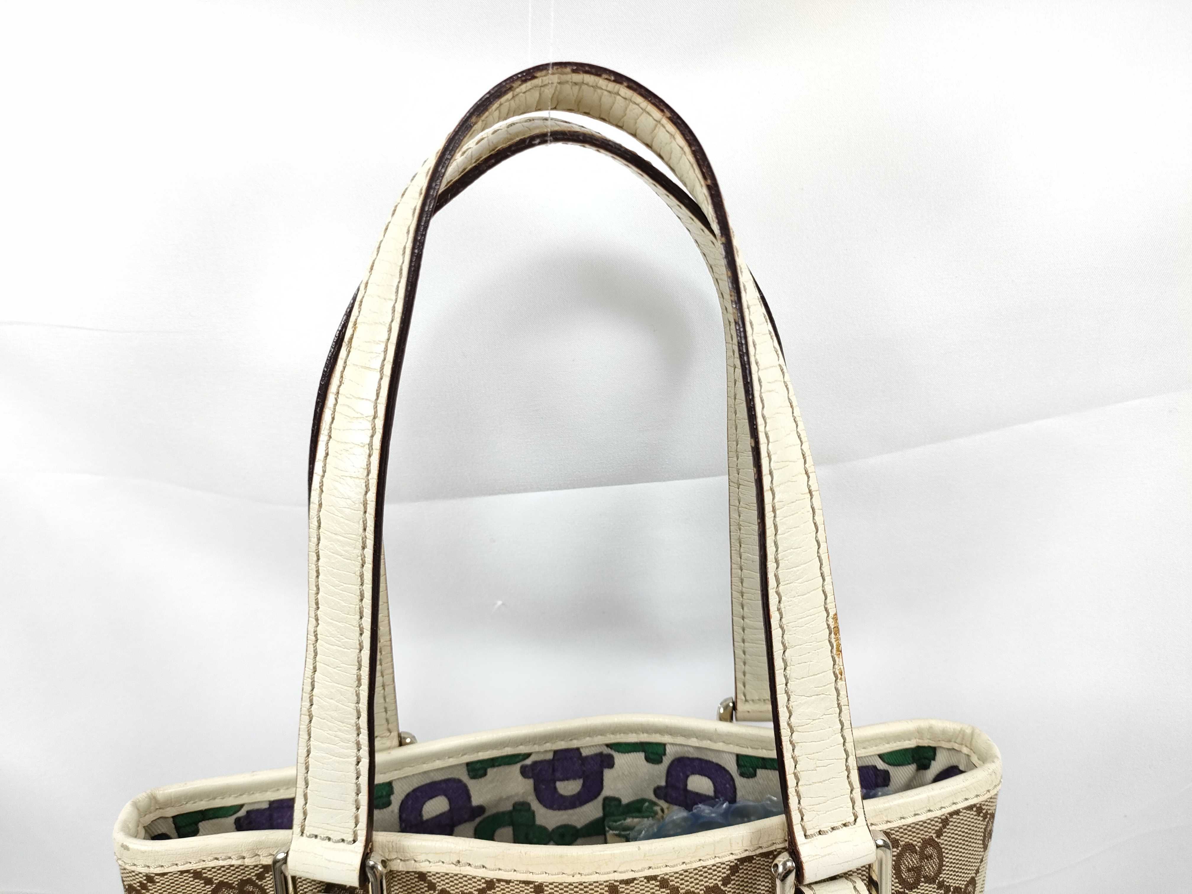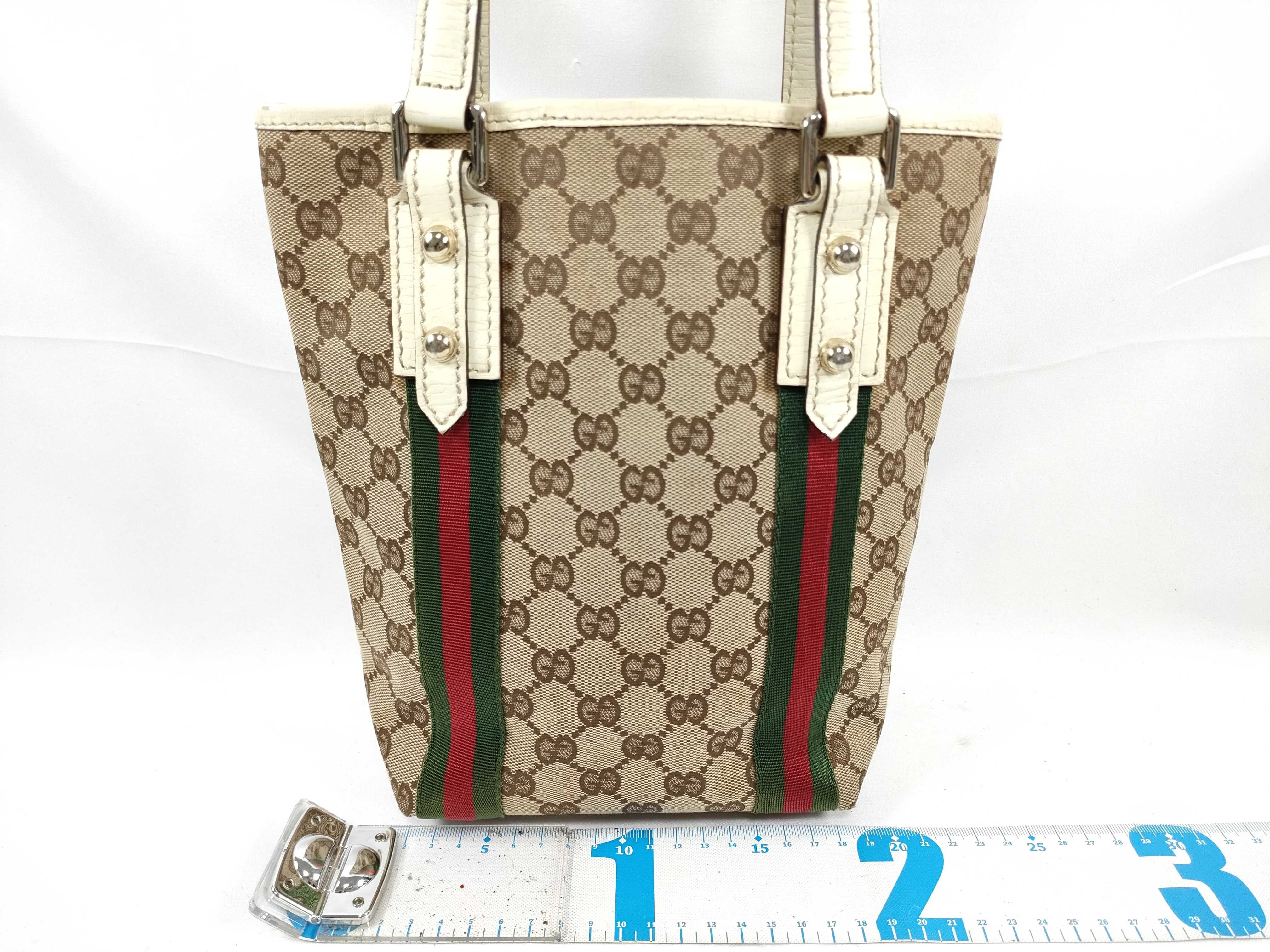 (11934_0428)GUCCI GGキャンバス シェリーライン ハンドバッグ トートバッグ チャーム 162898 ベージュ/白 トートバッグ