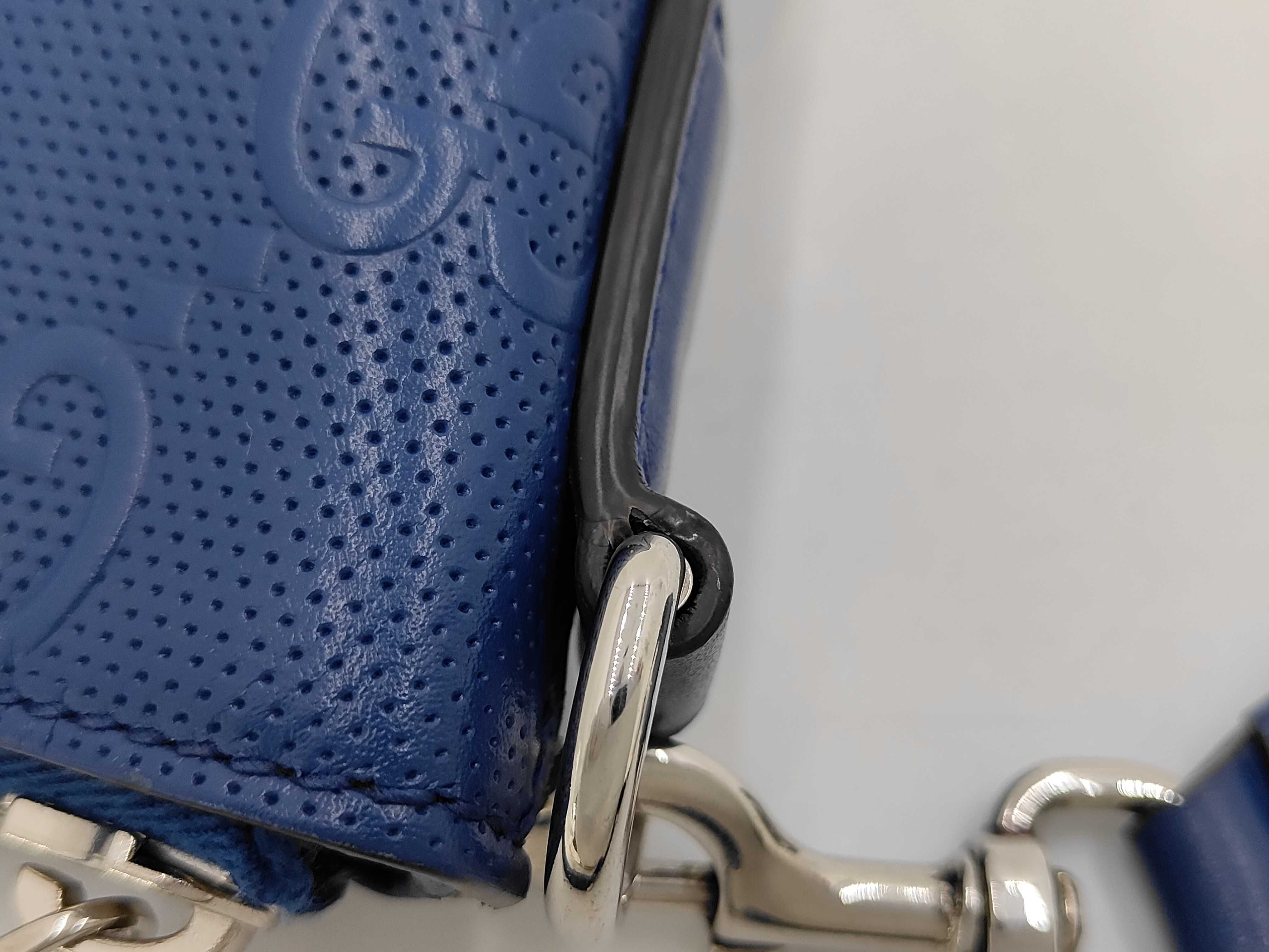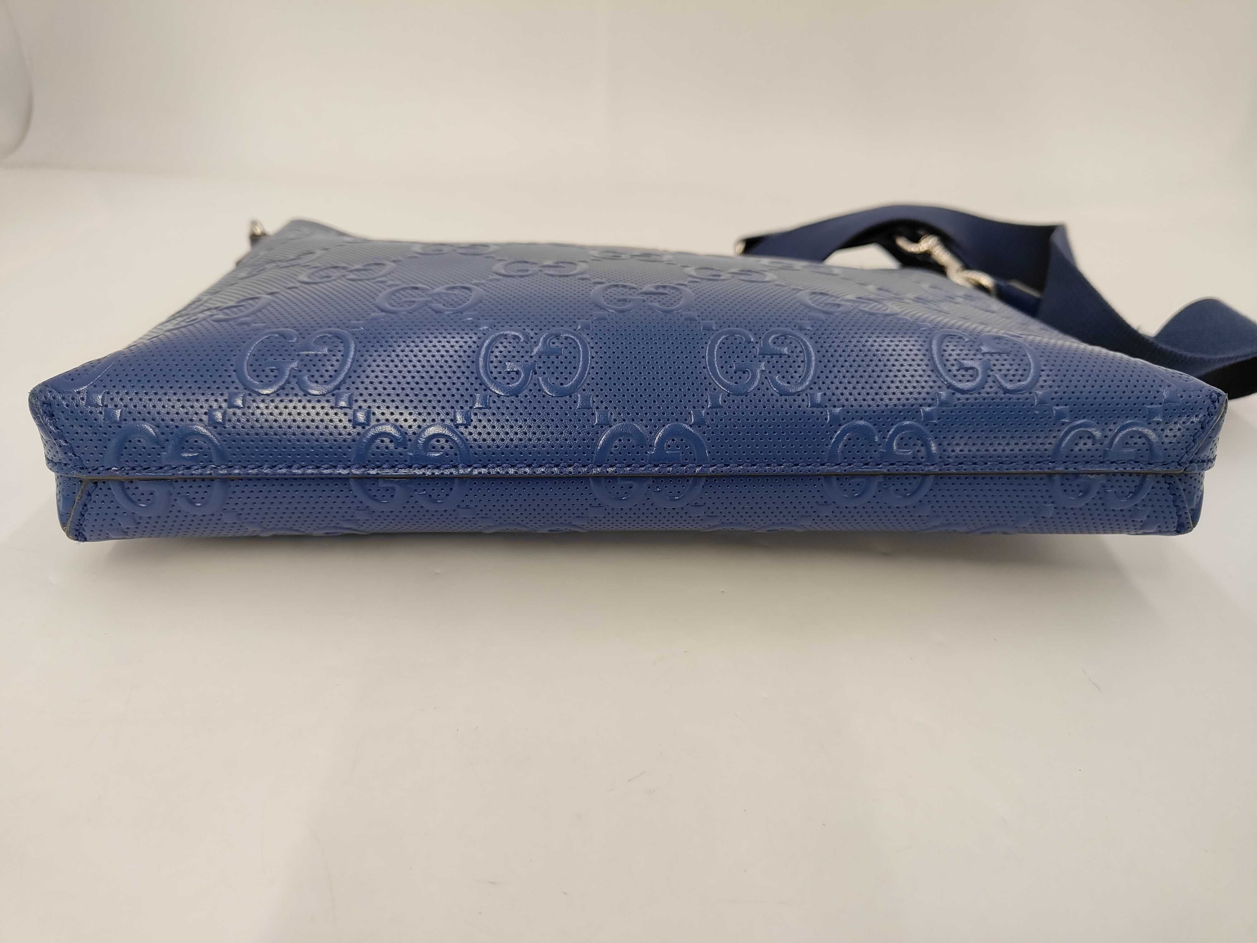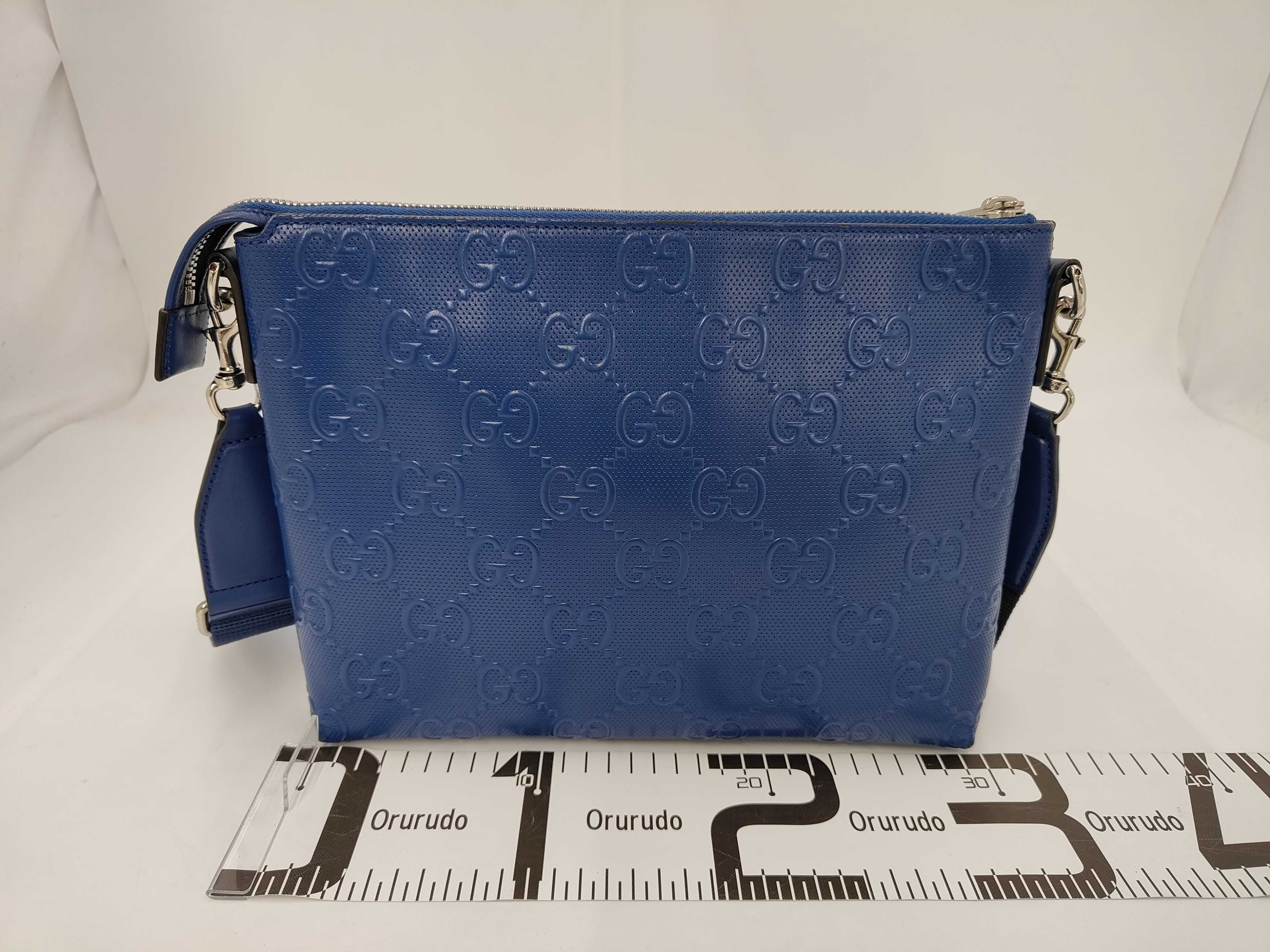 (11934_0458)GUCCI グッチ GG柄エンボス ショルダーバッグ ブルー ショルダーバッグ