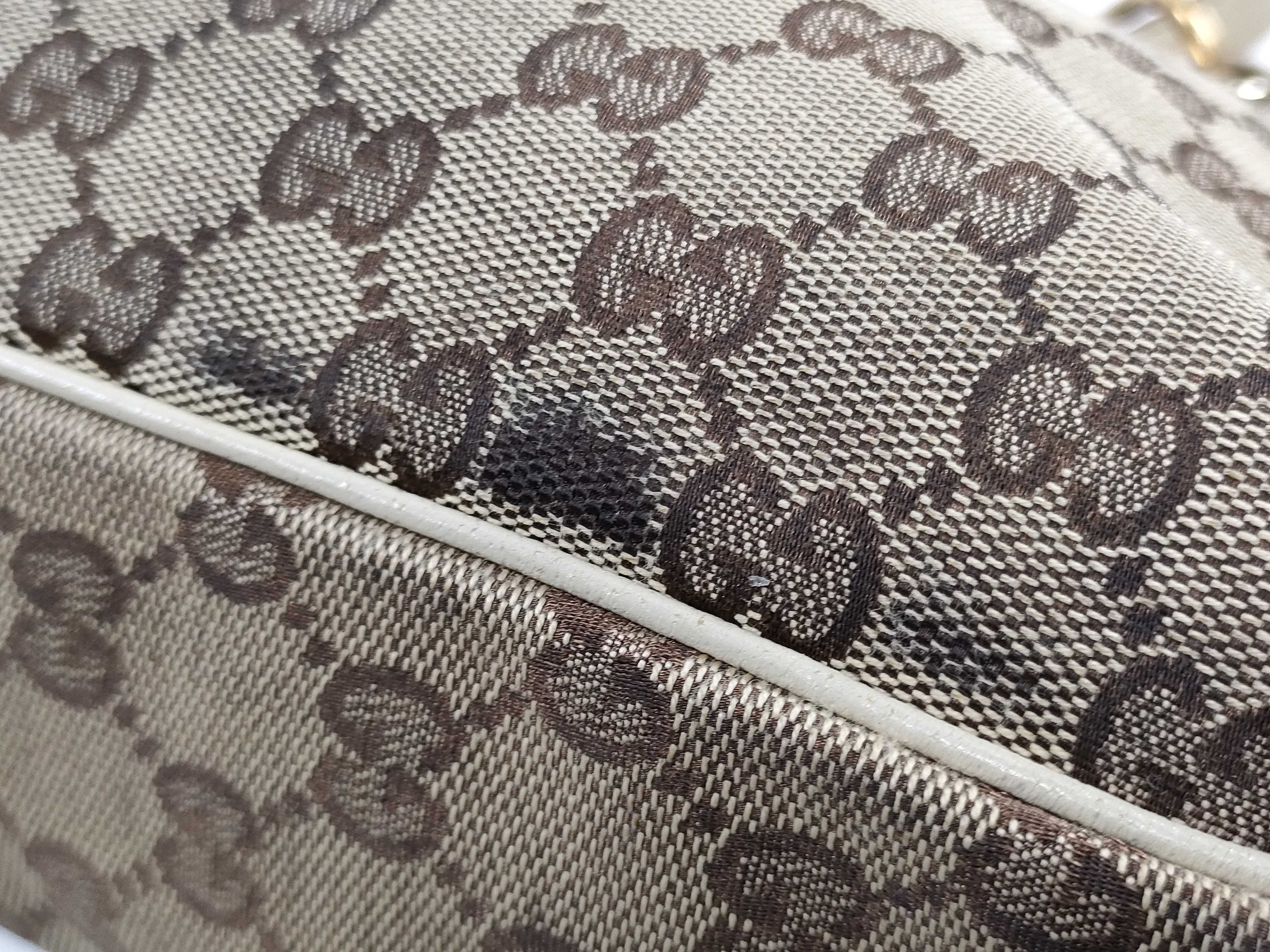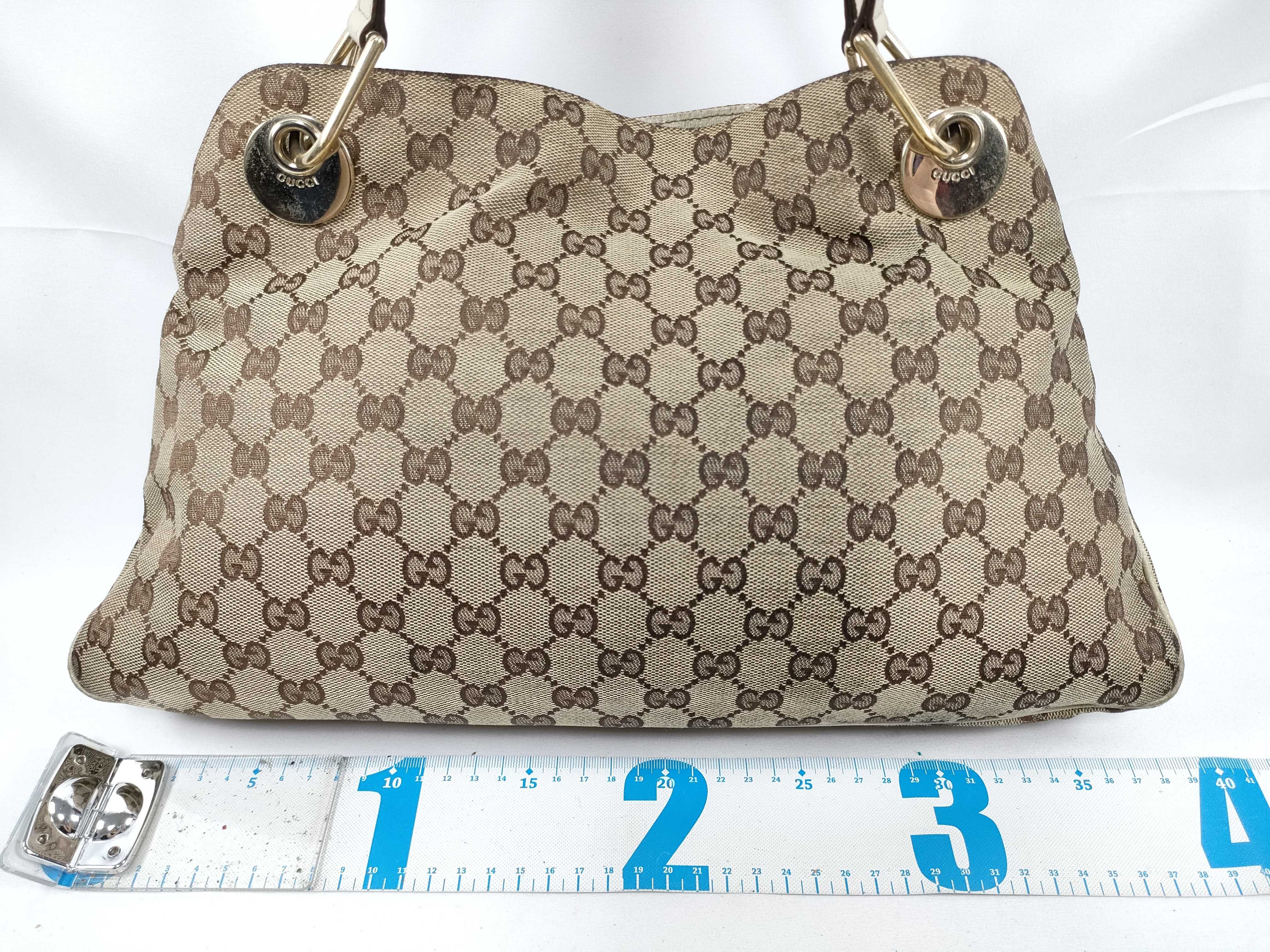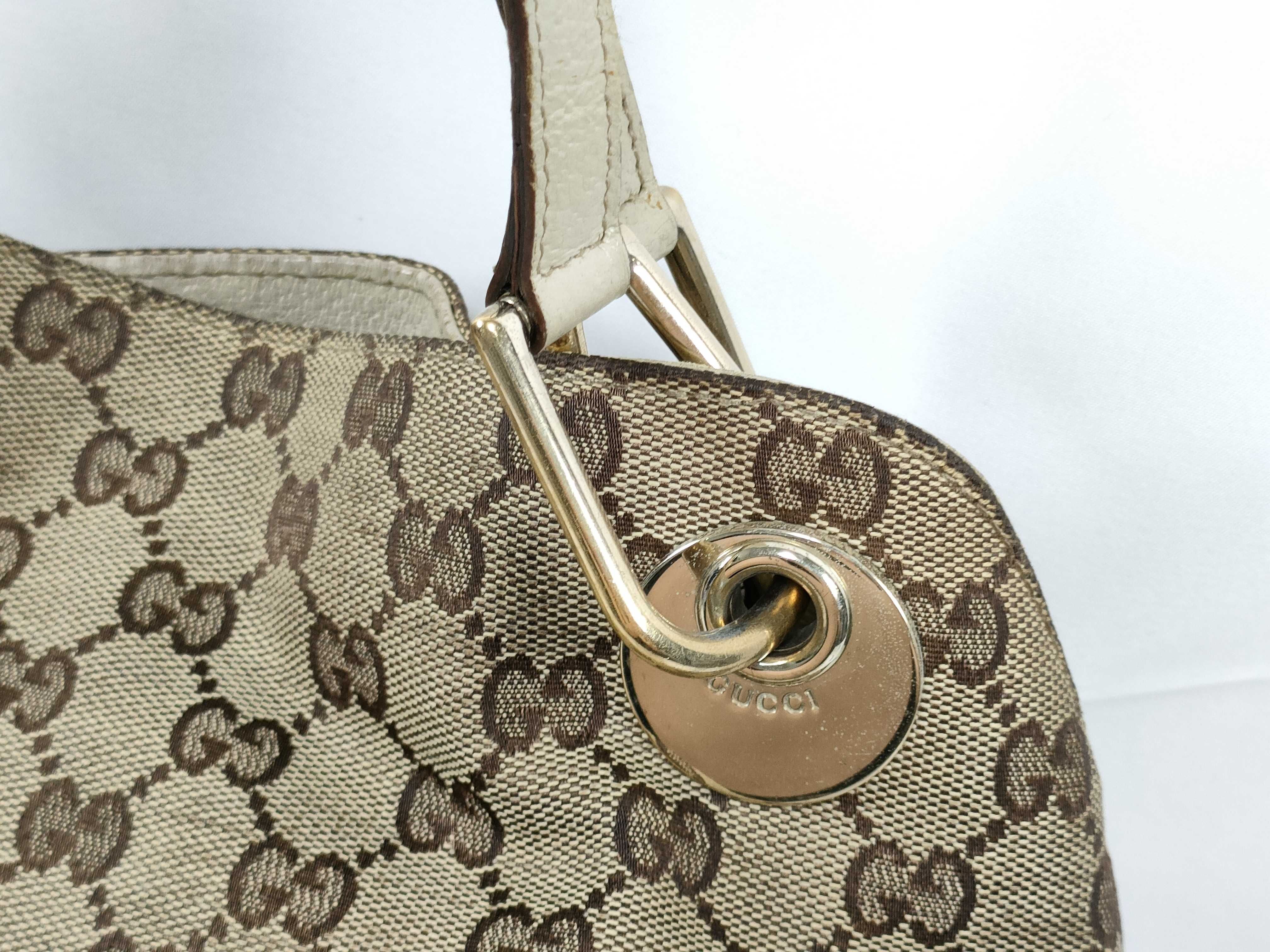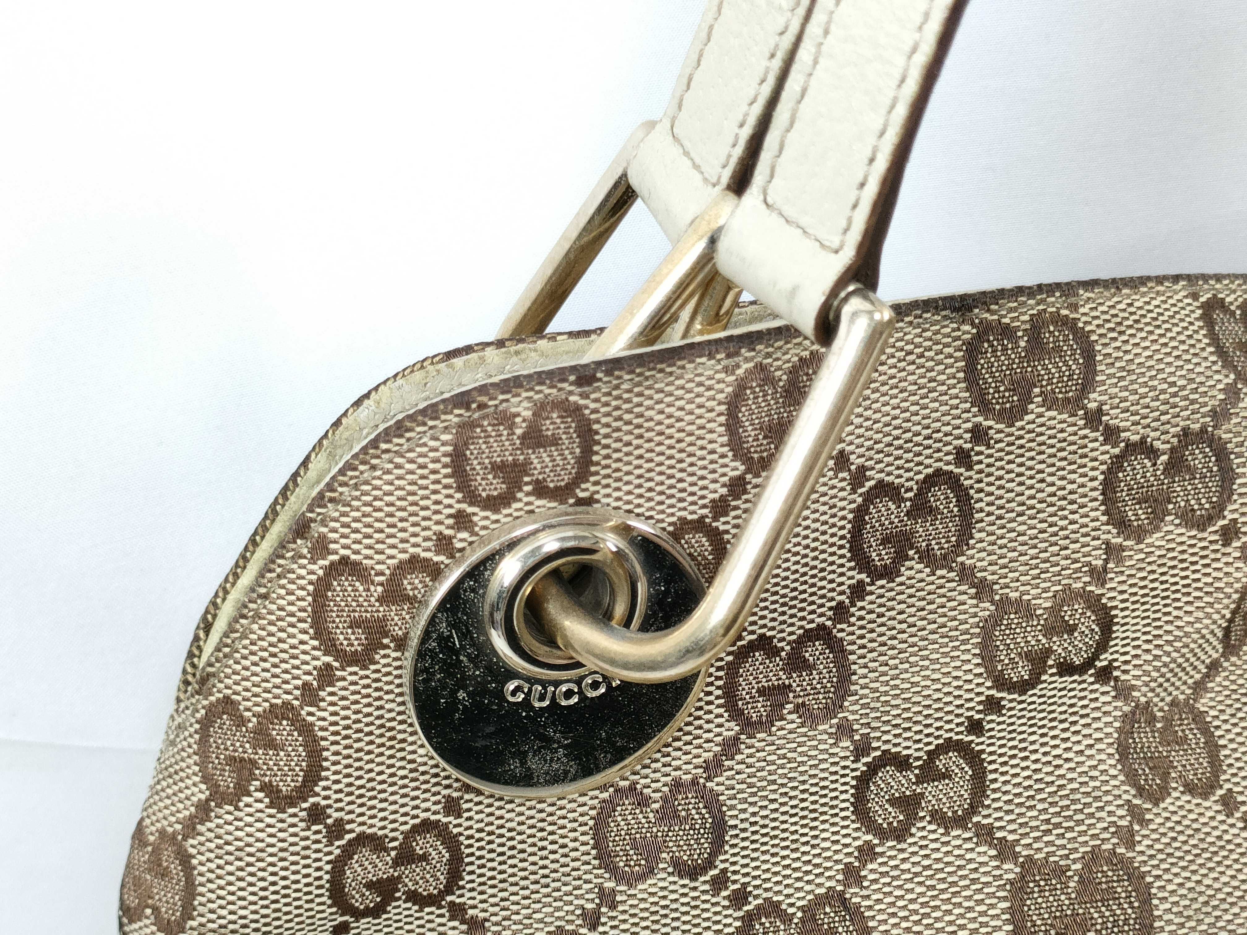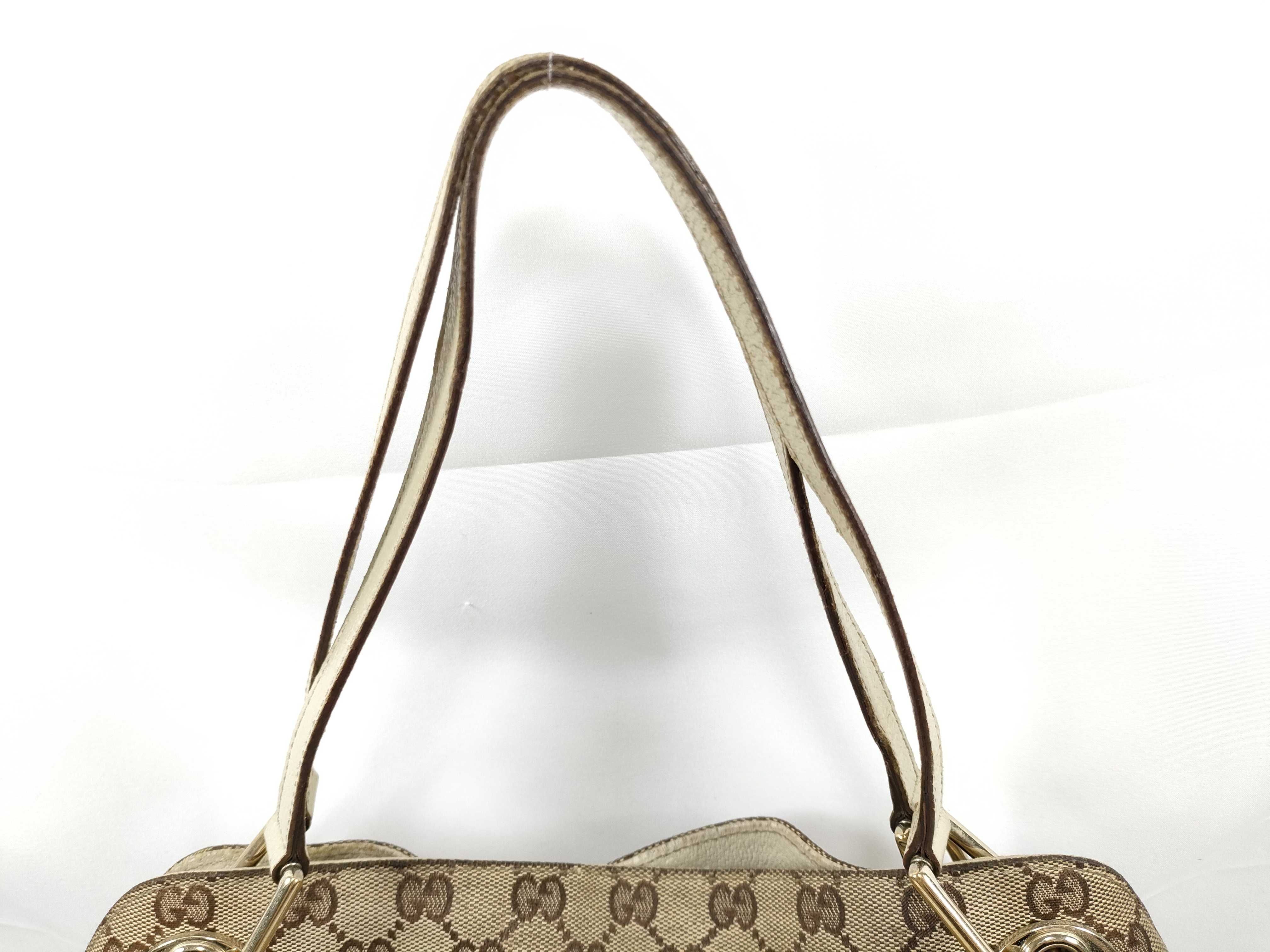 (11934_0476)GUCCI GGキャンバス エクリプス トートバッグ 肩掛け G金具 121023 ホワイト/ブラウン ハンドバッグ
