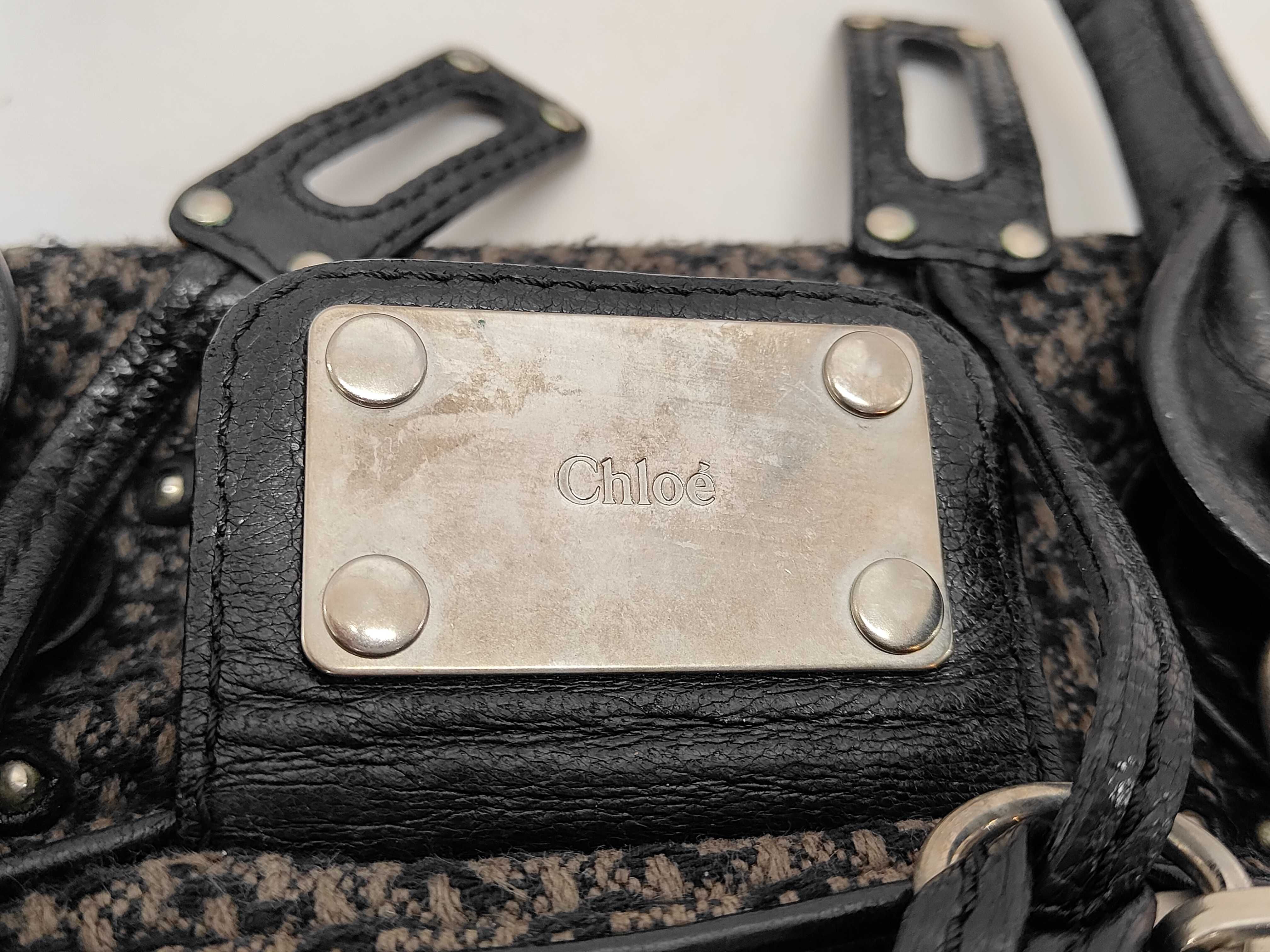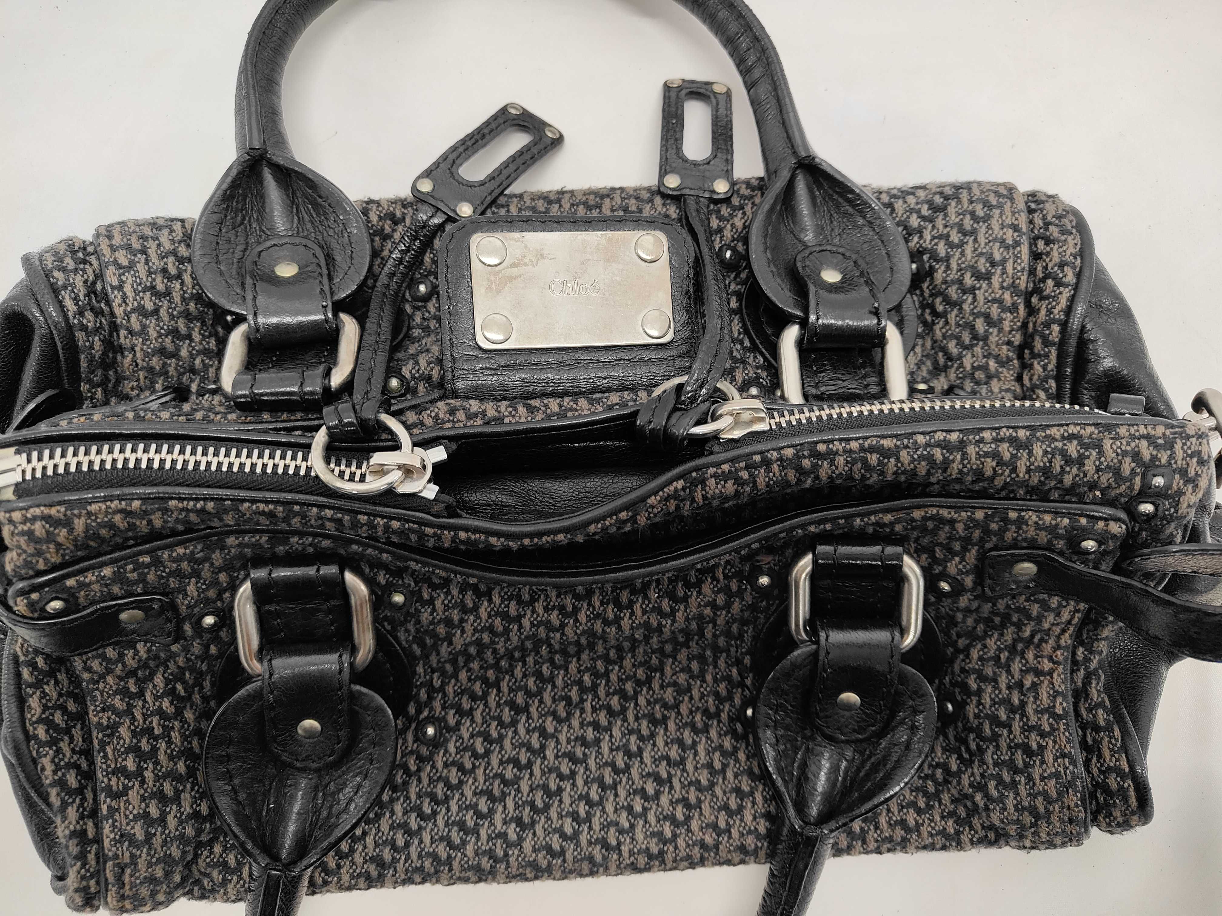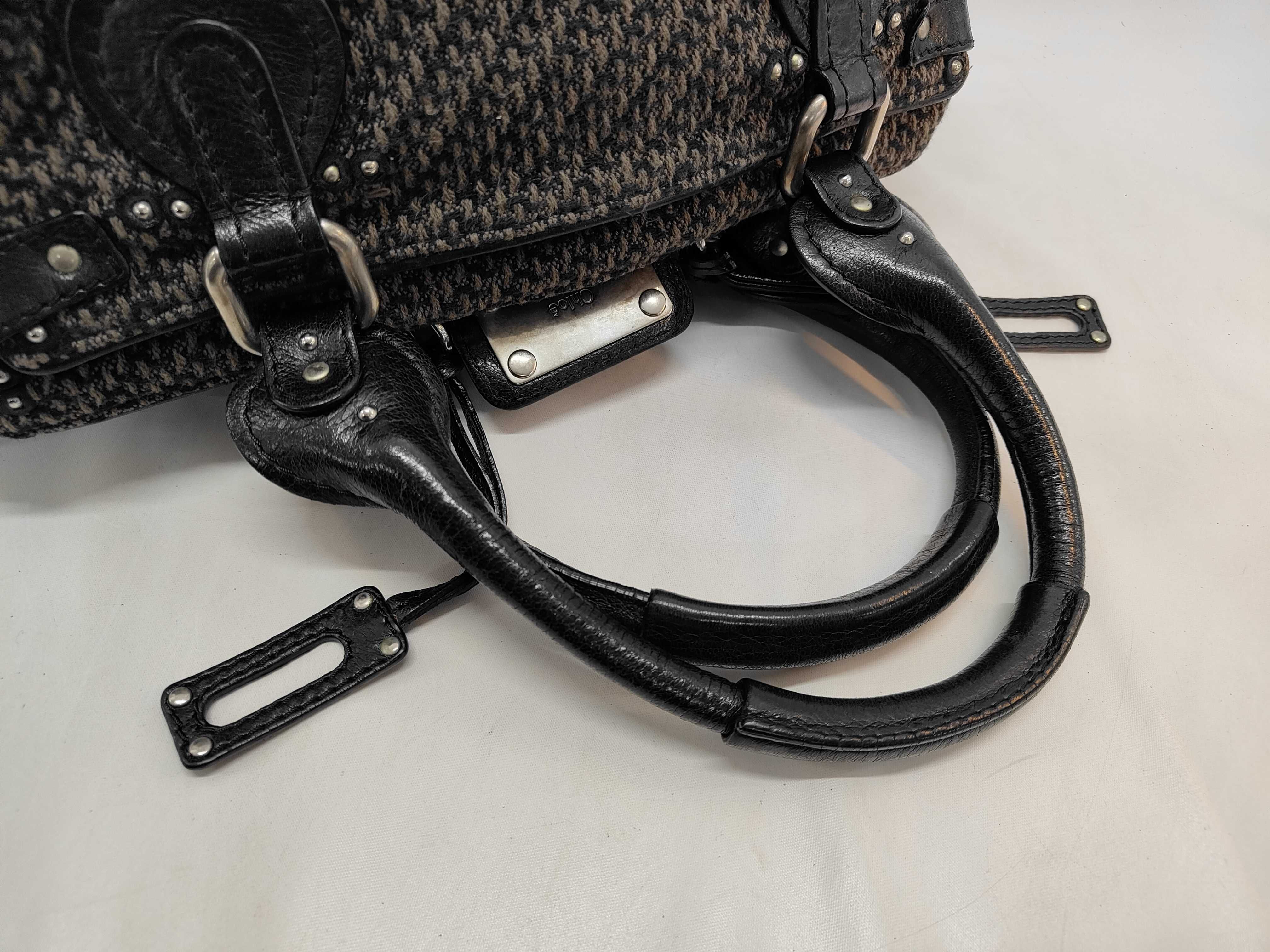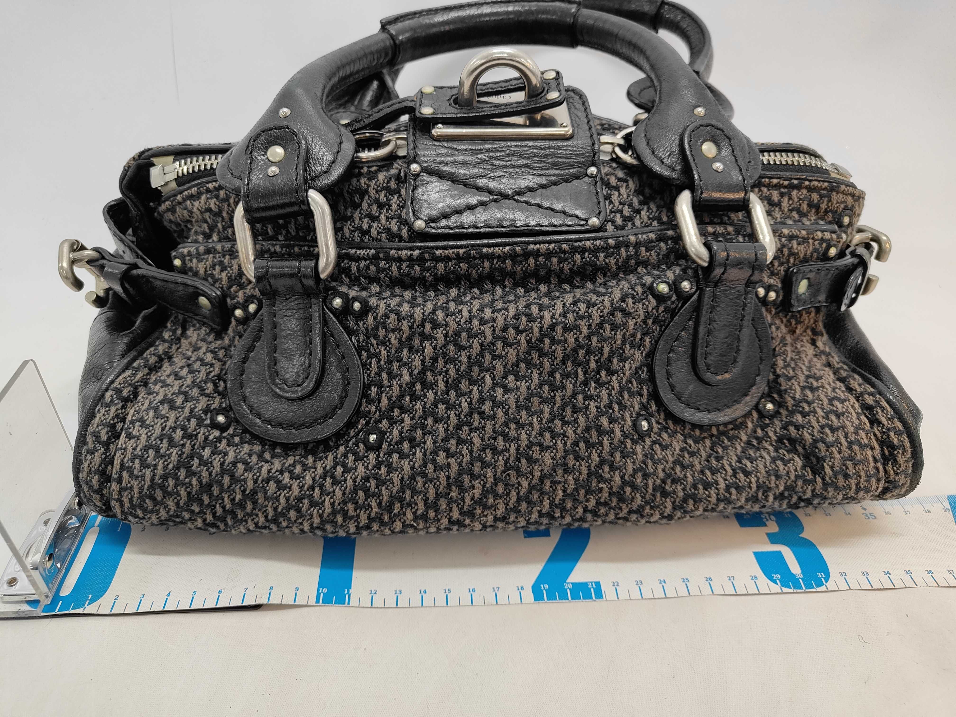 (11934_0767)chloe クロエ パディントン ツイードxレザー ブラック ハンドバッグ