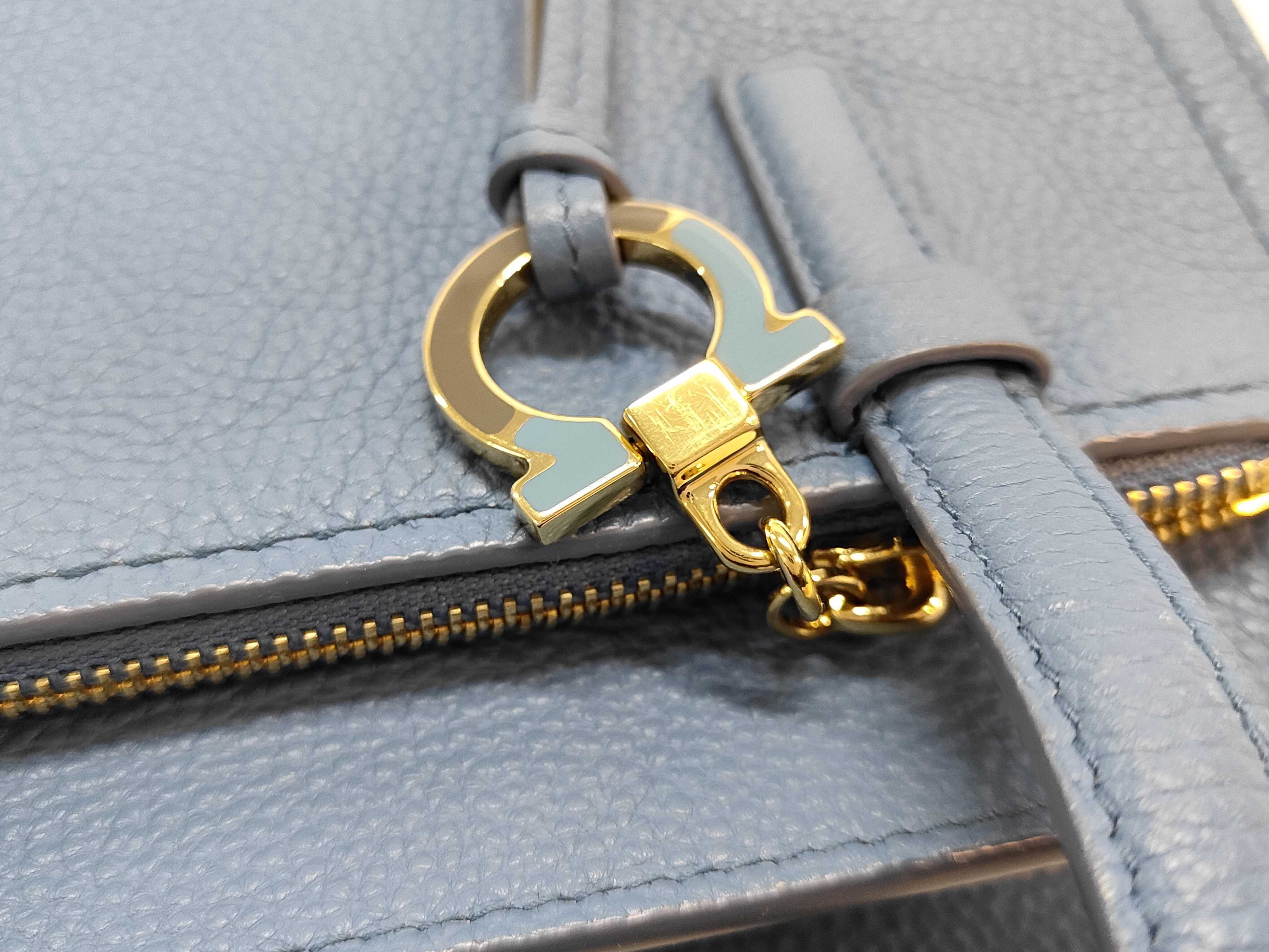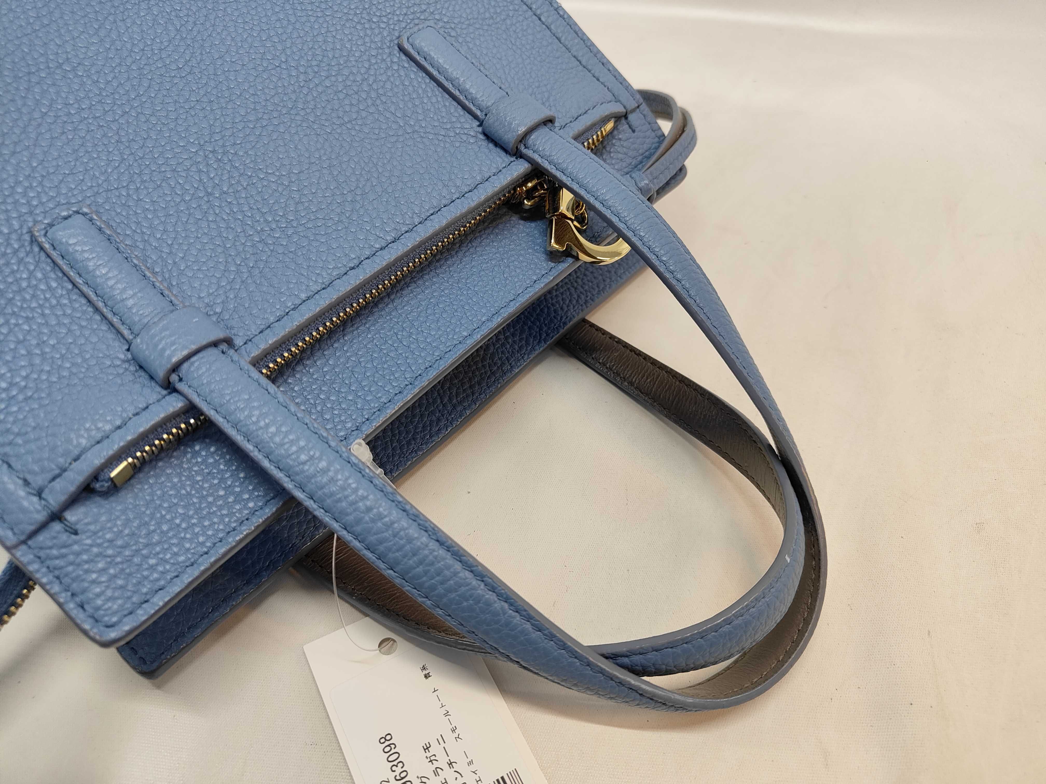 (11934_0784)▼Salvatore Ferragamo ガンチーニ エイミー スモールトート 青系 ハンドバッグ