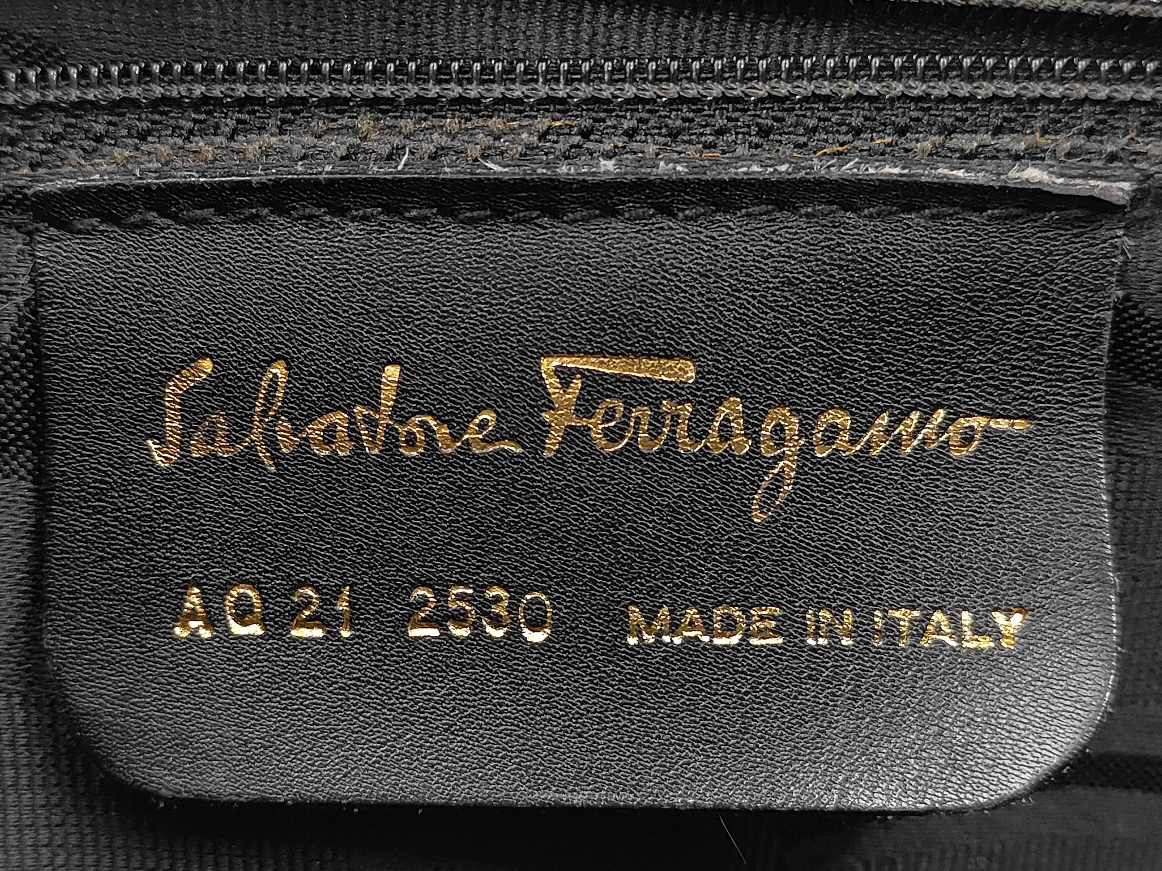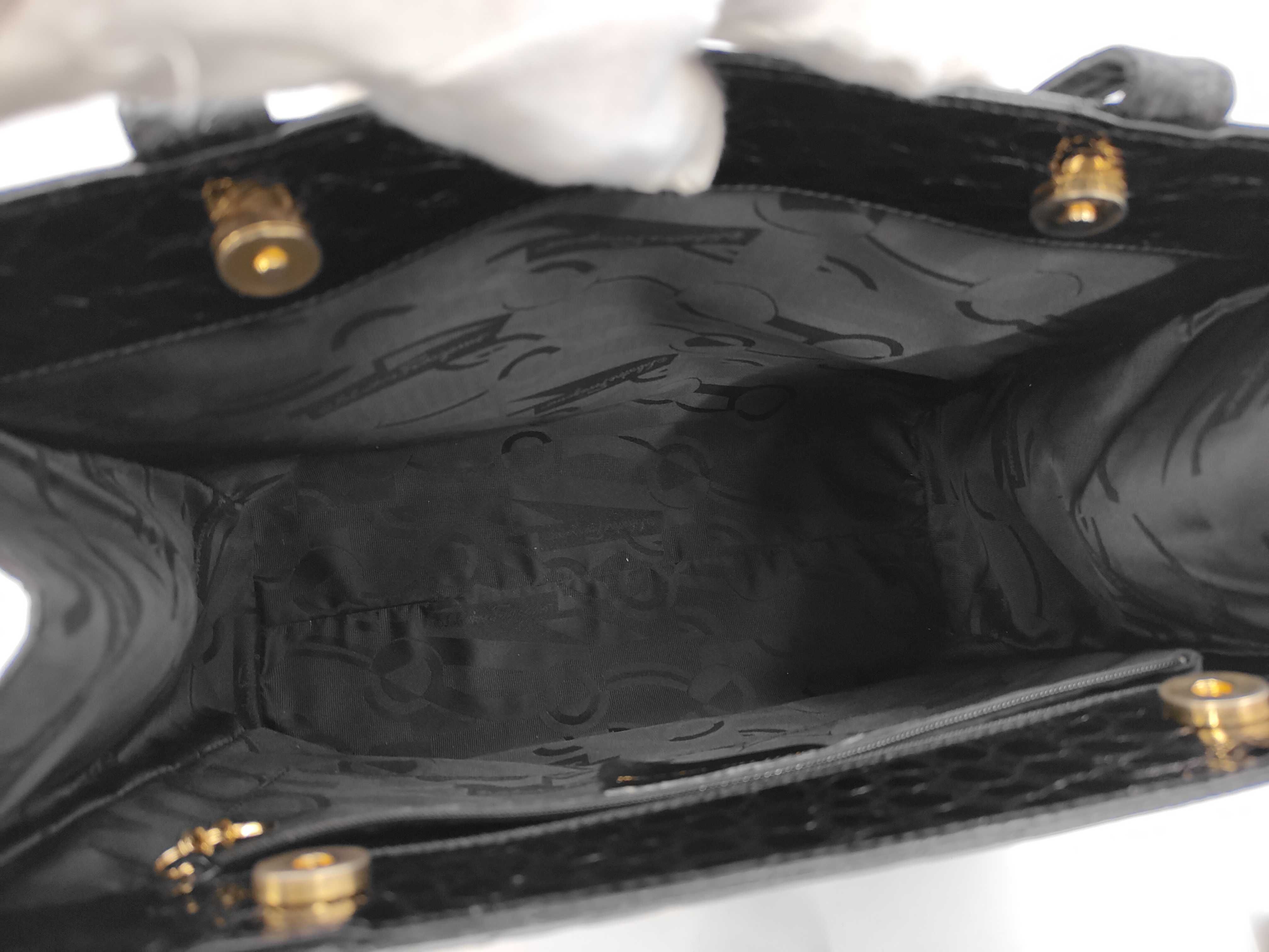 (11934_0809)▼Salvatore Ferragamo フェラガモ ヴァラ 型押し トートバッグ ブラック バッグ