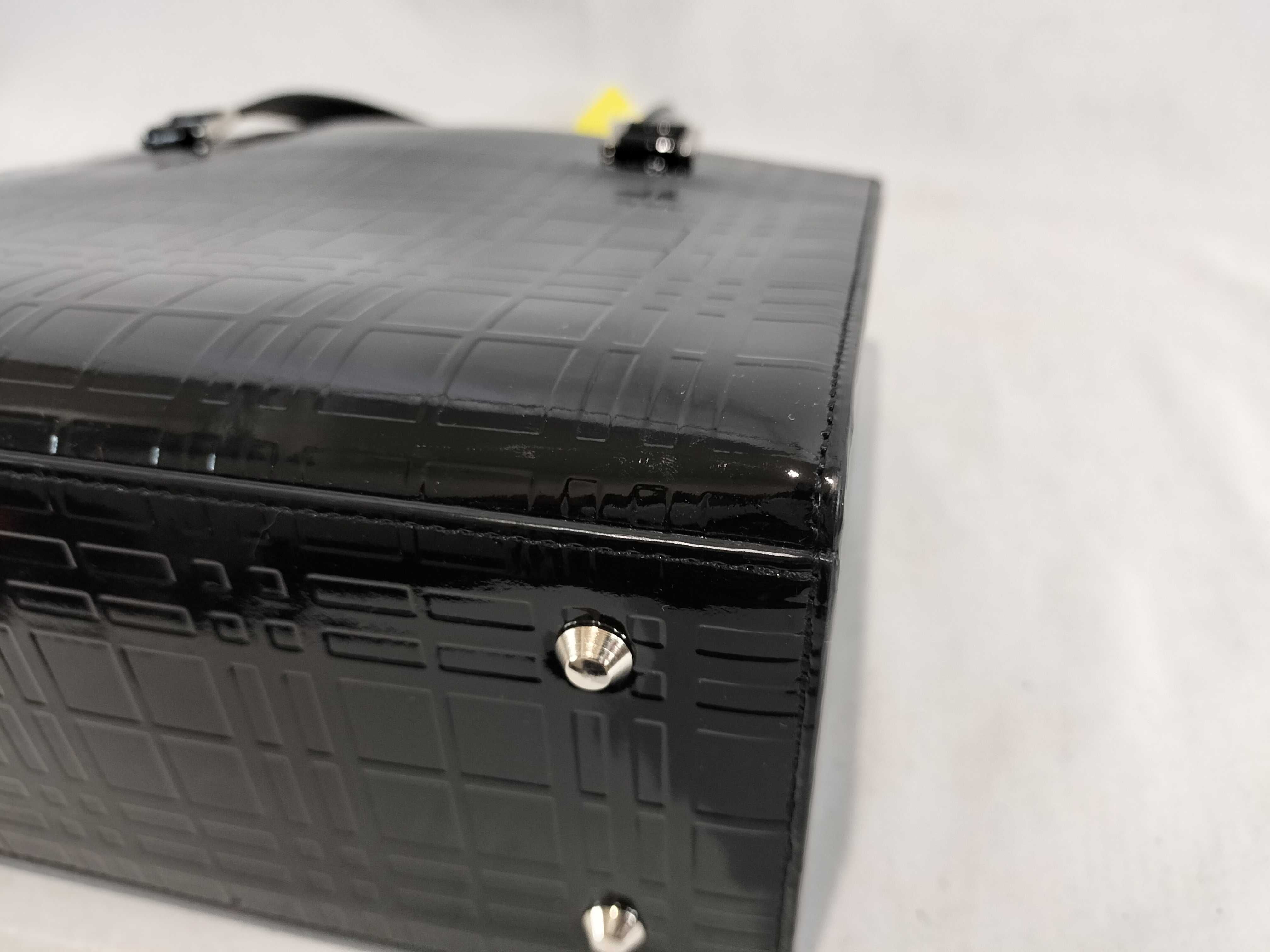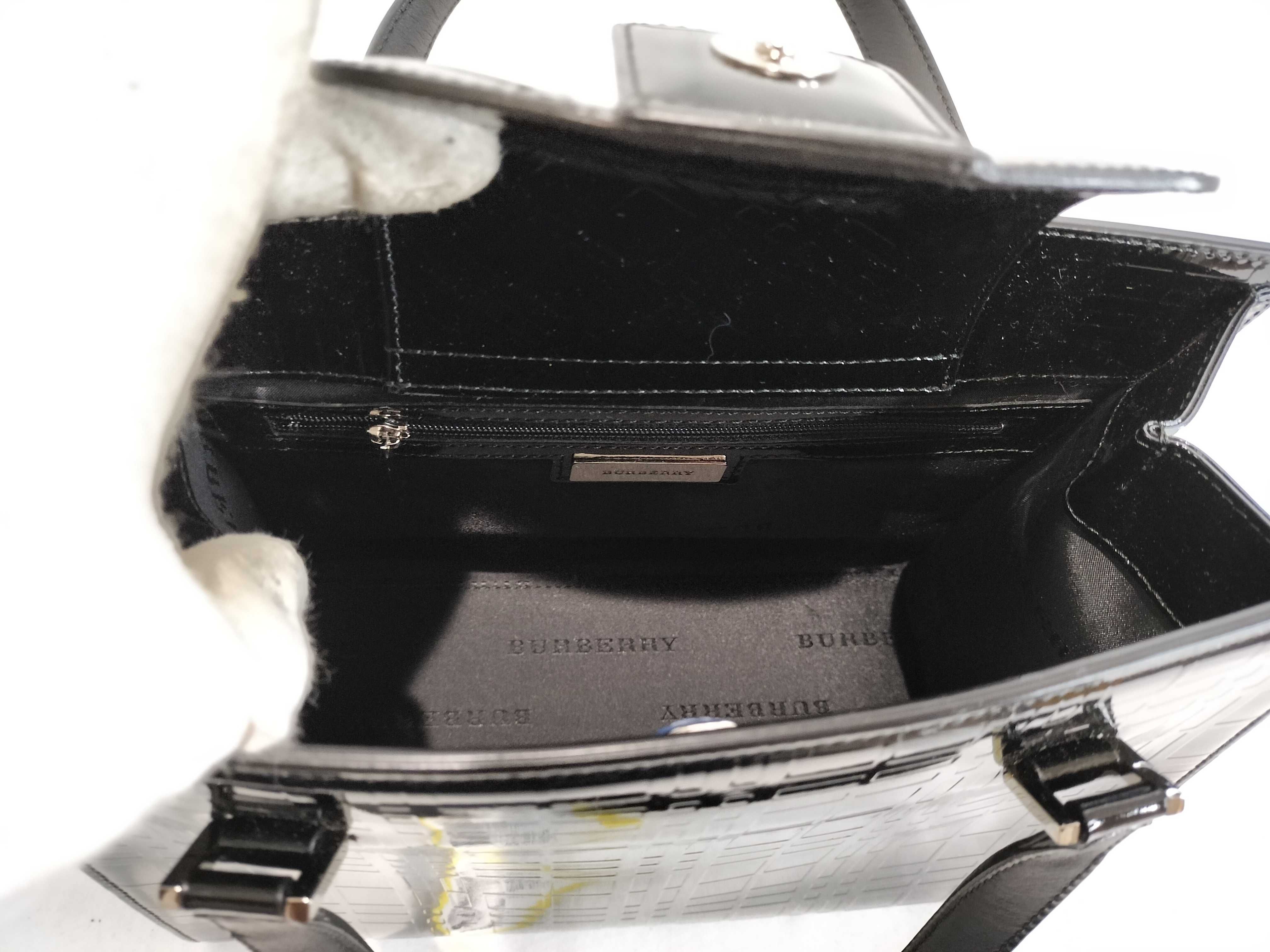 (11934_0868)BURBERRY チェック柄 パテント ハンドバッグ ハンドバッグ