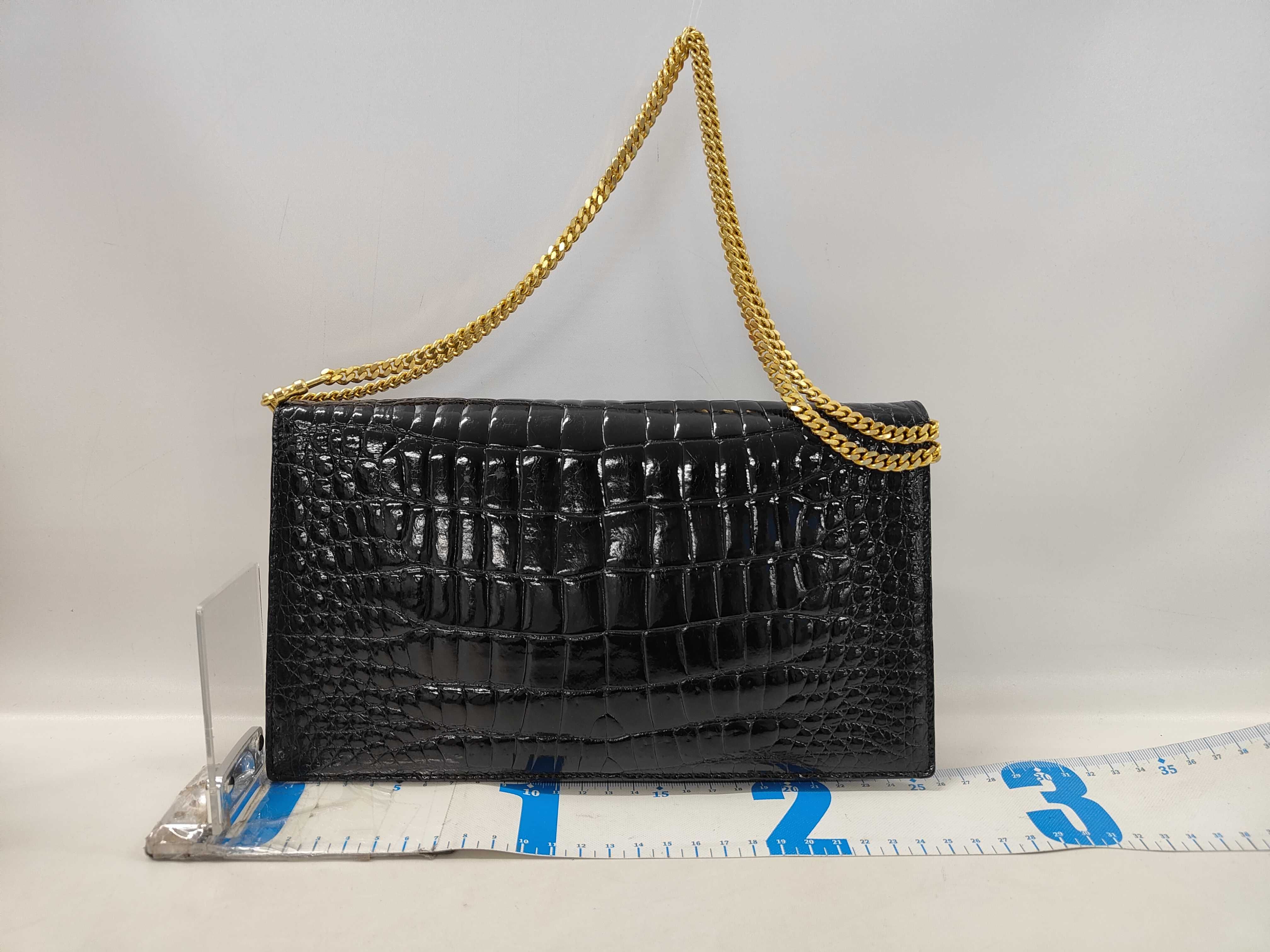 (11934_0924)▼LOEWE クロコ アナグラム チェーンショルダー ハンドバッグ