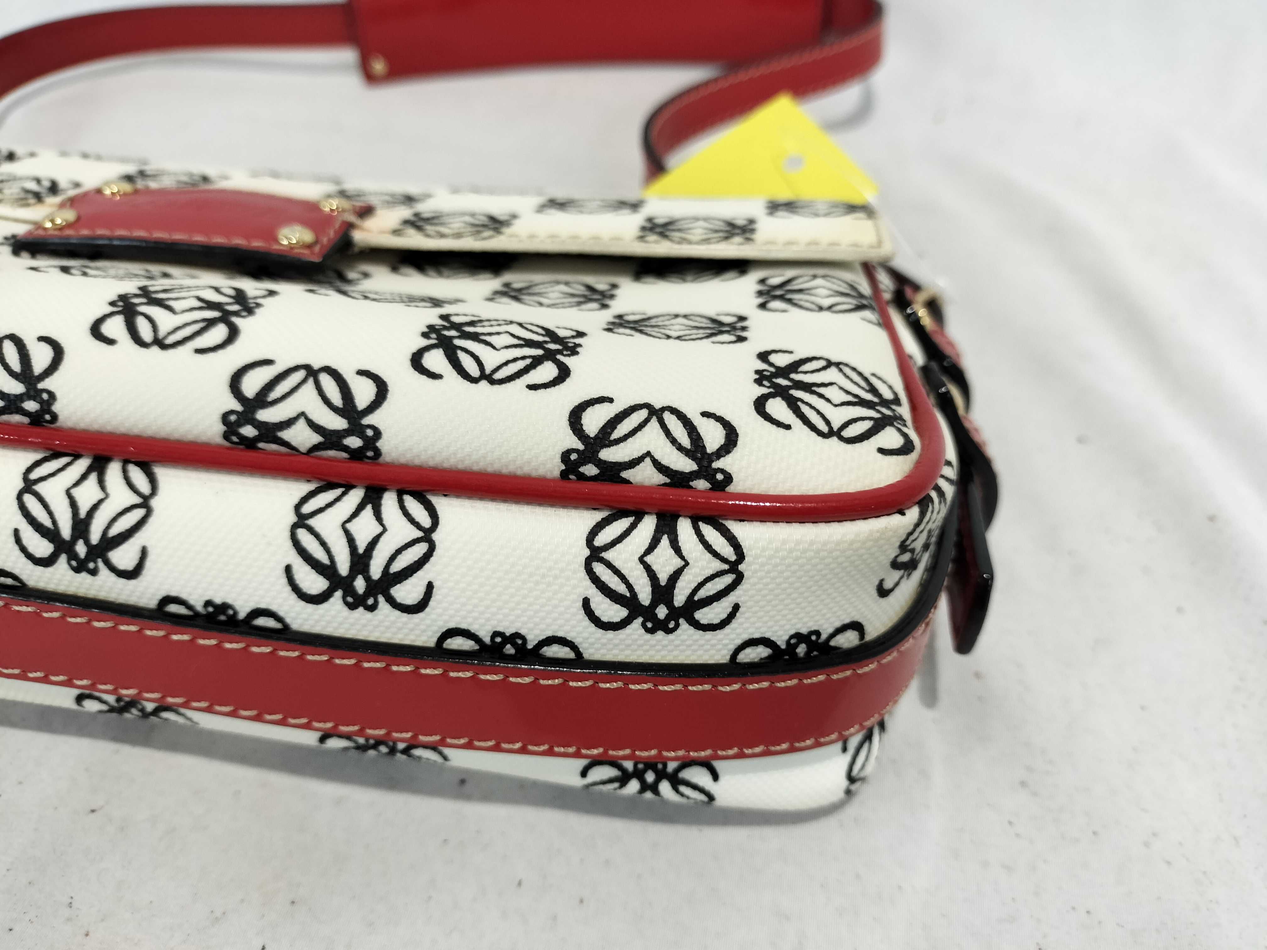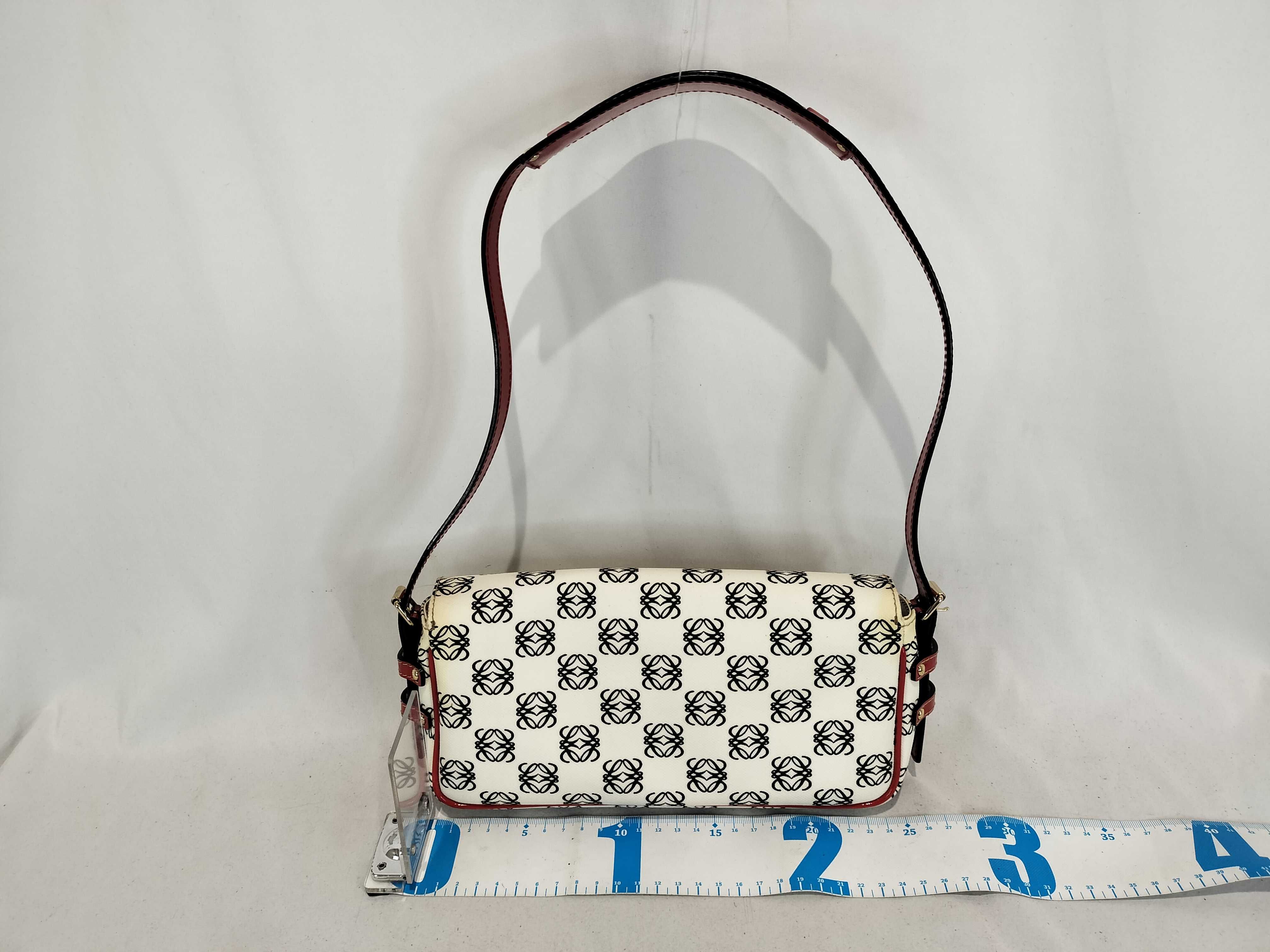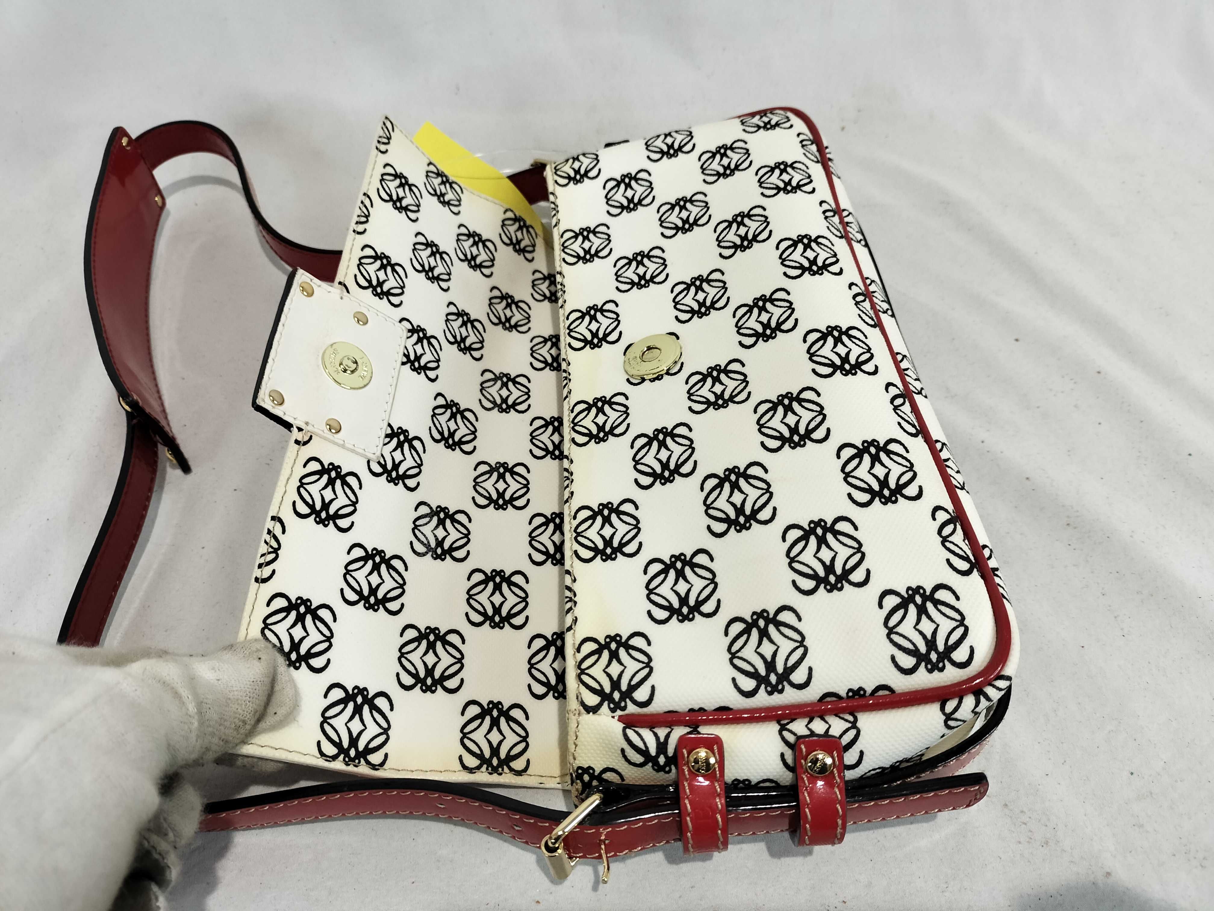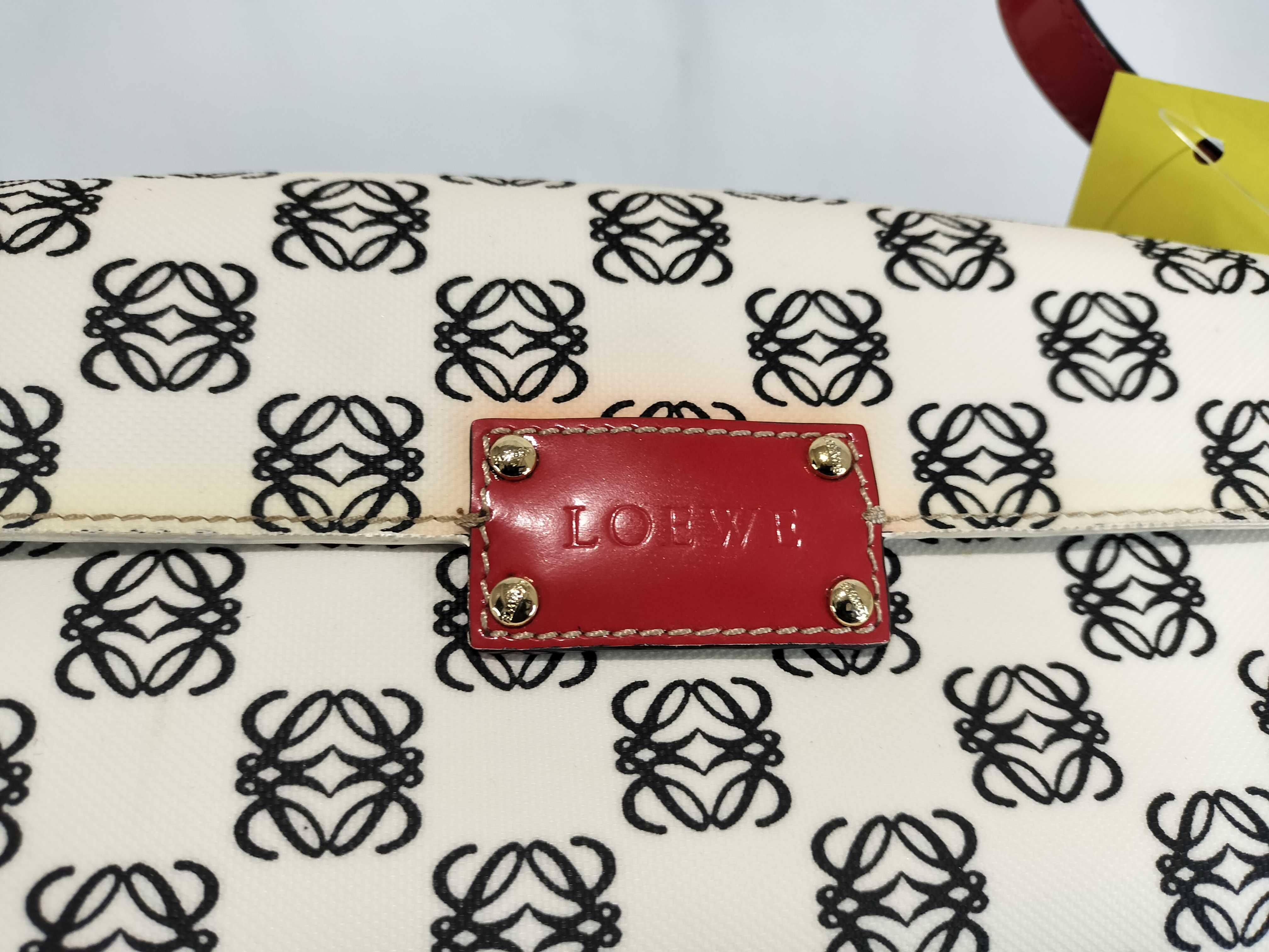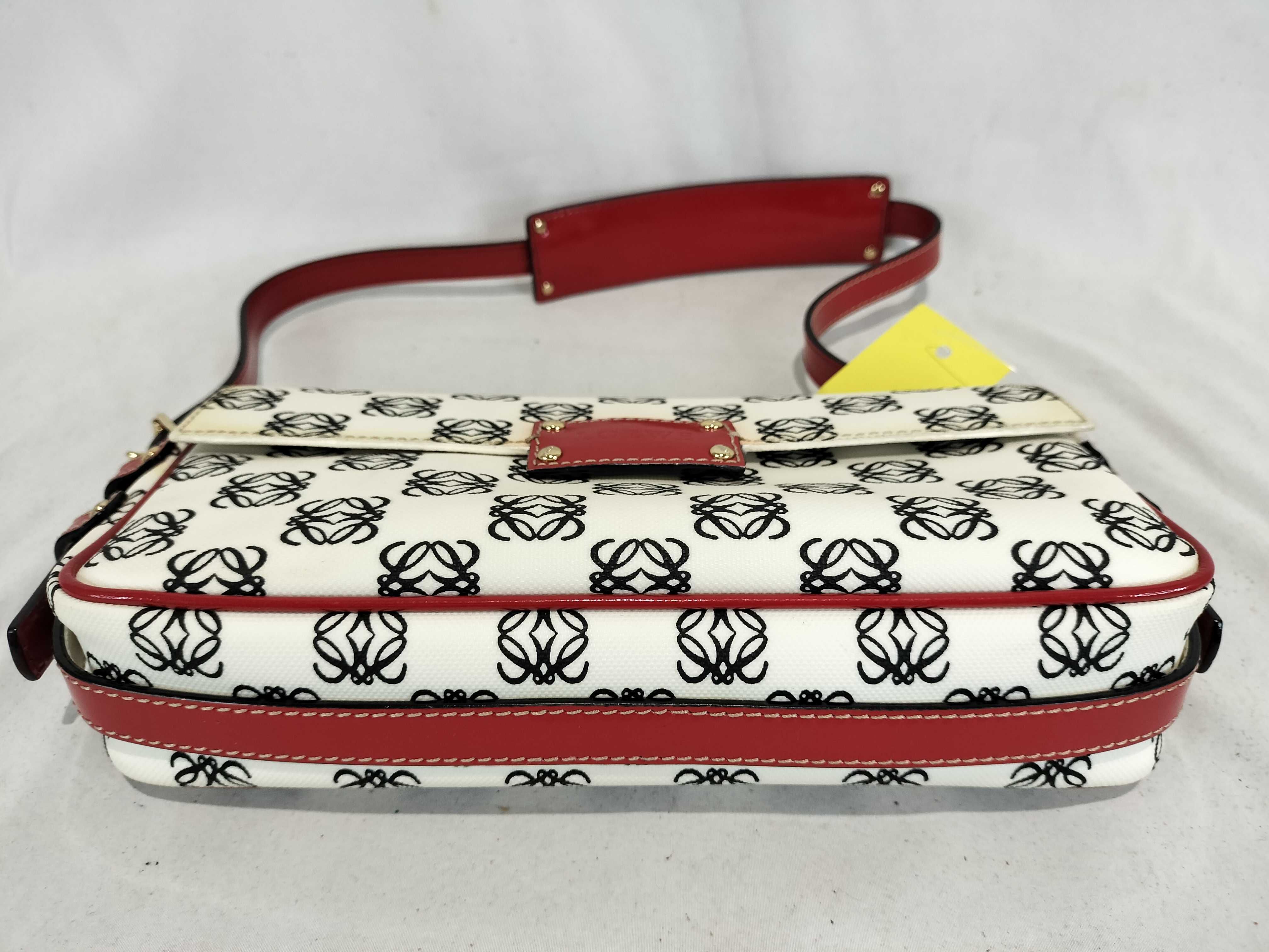(11935_0384)LOEWE ワンショルダー PVC アナグラム総柄 エナメルハンドル 白×黒×赤 フラップ付き ショルダーバッグ