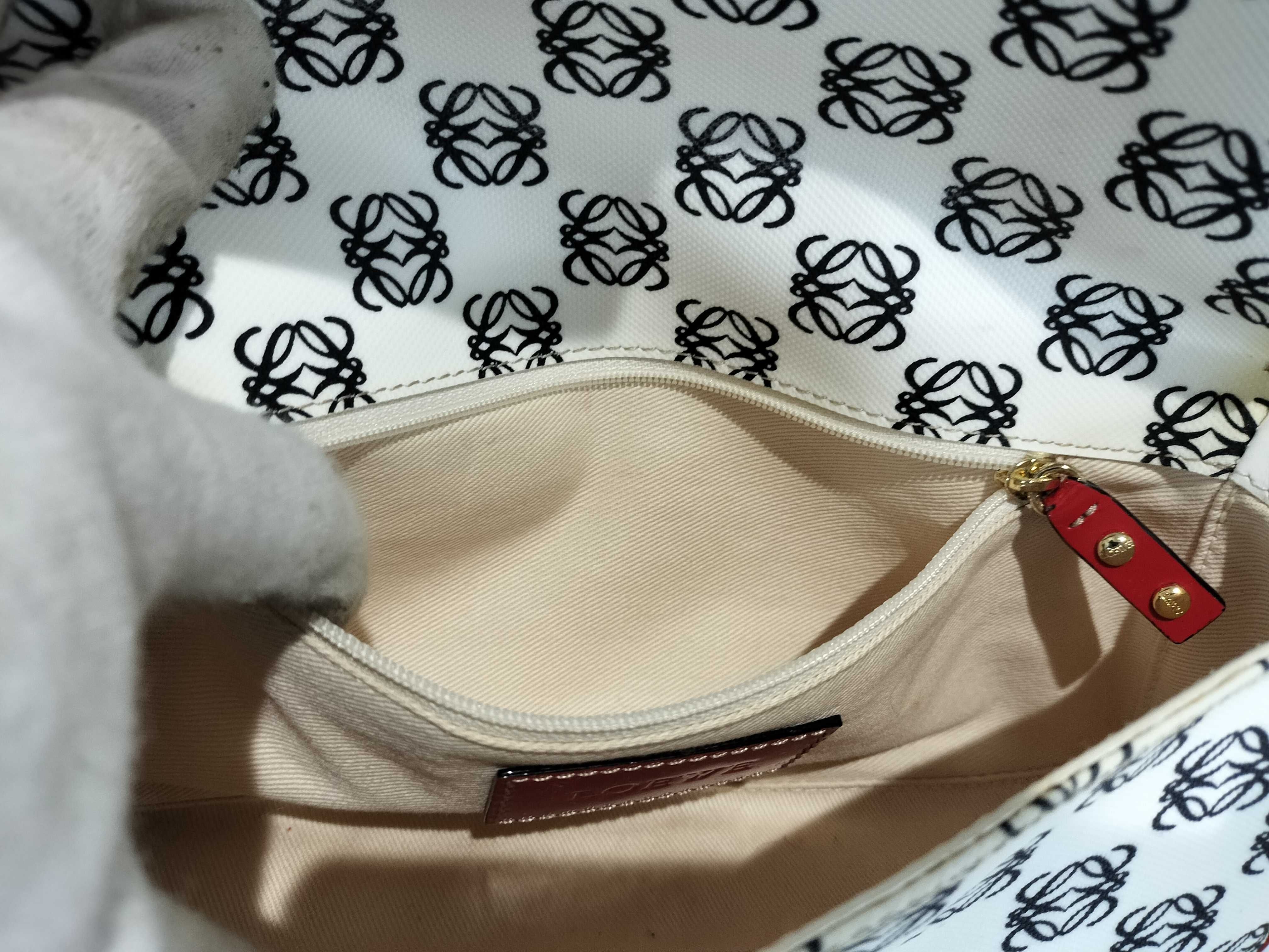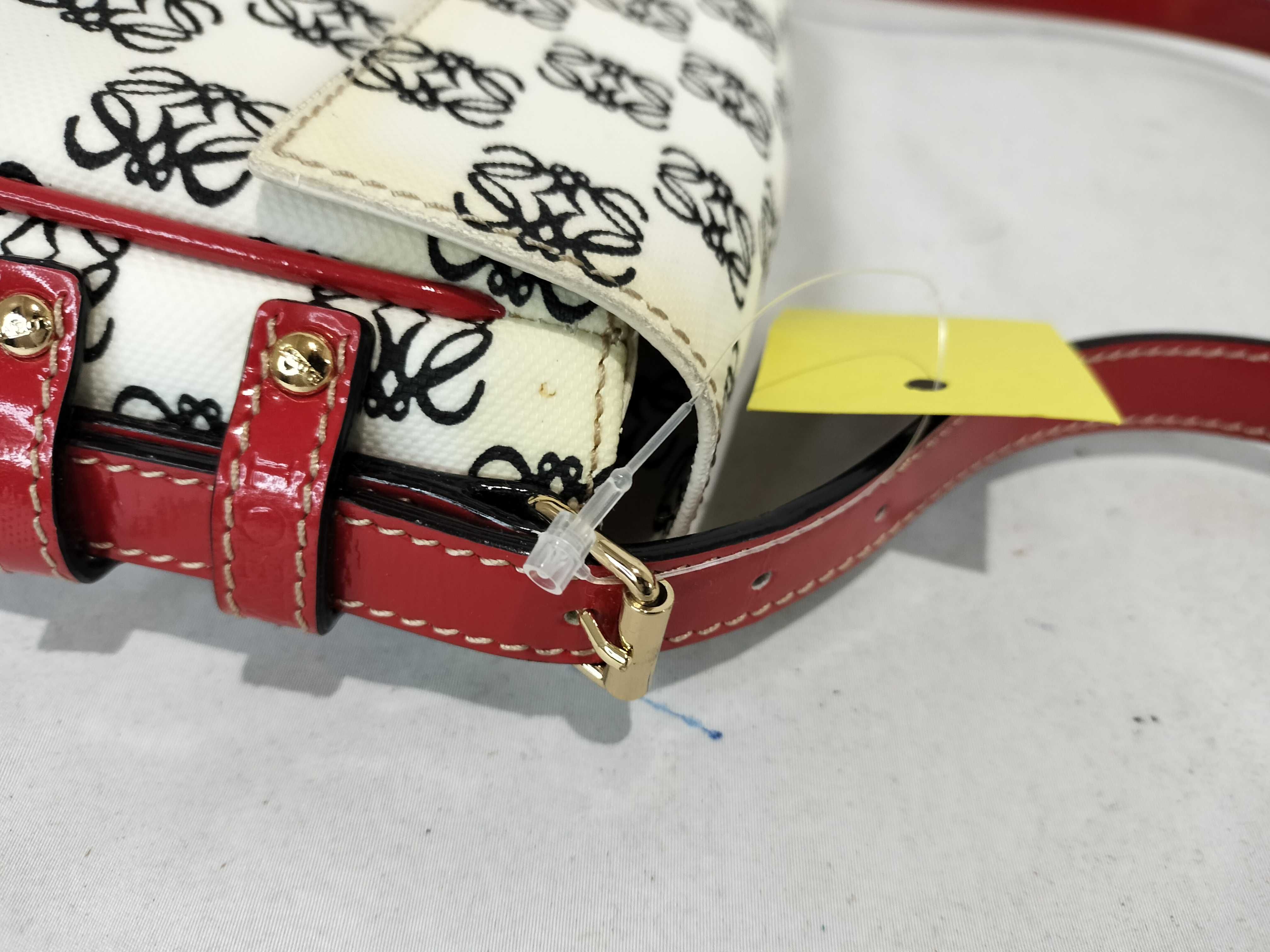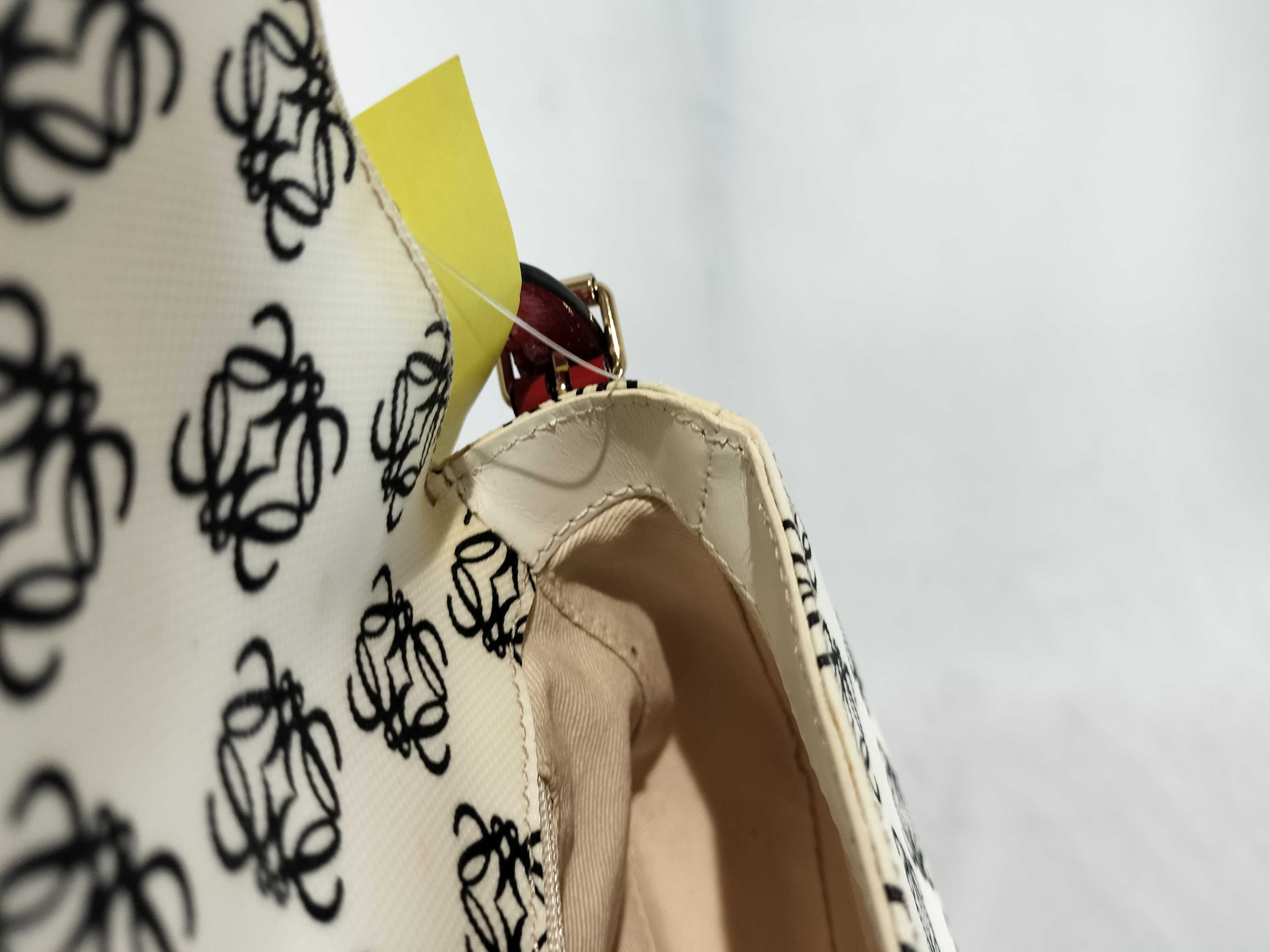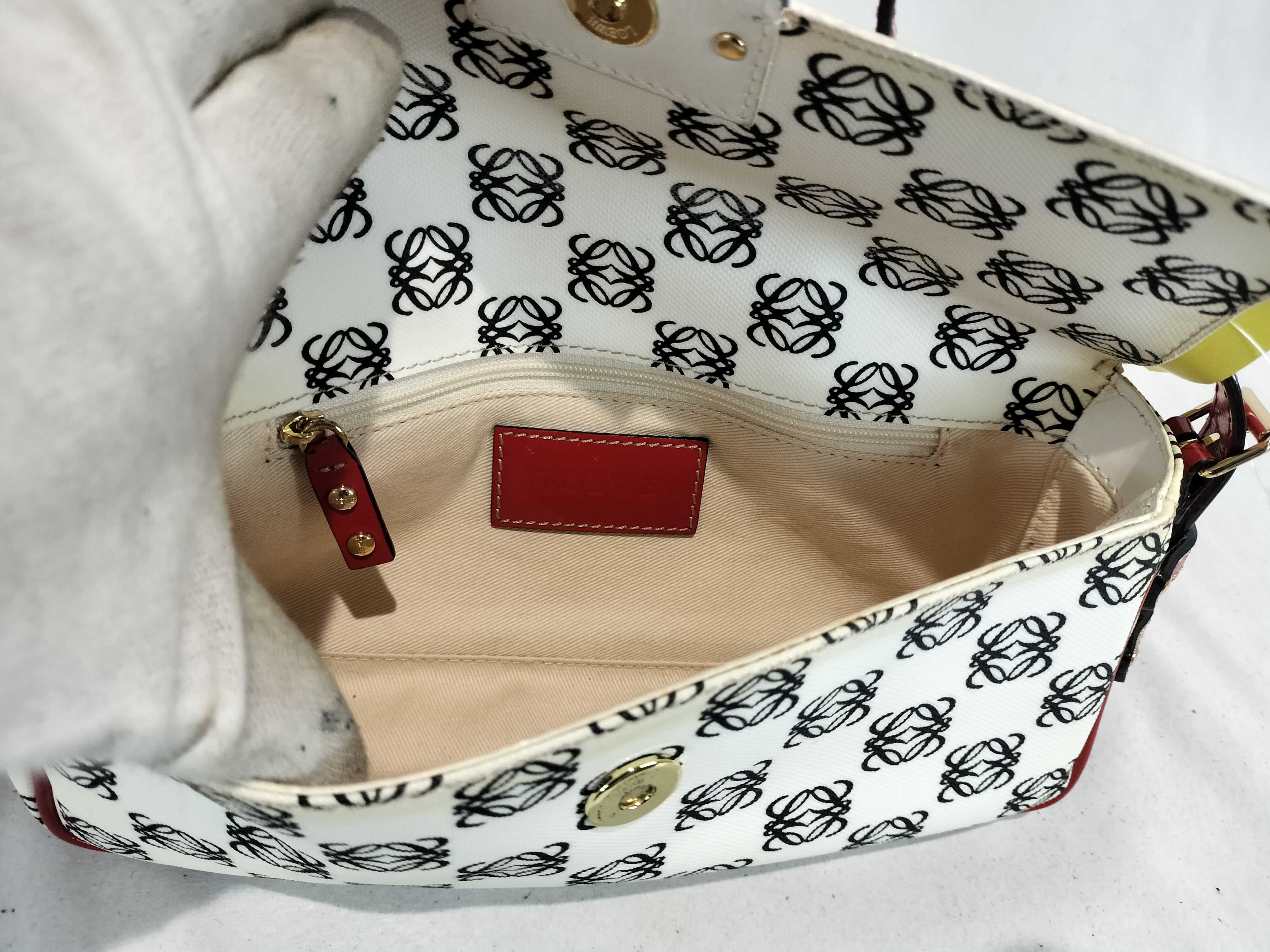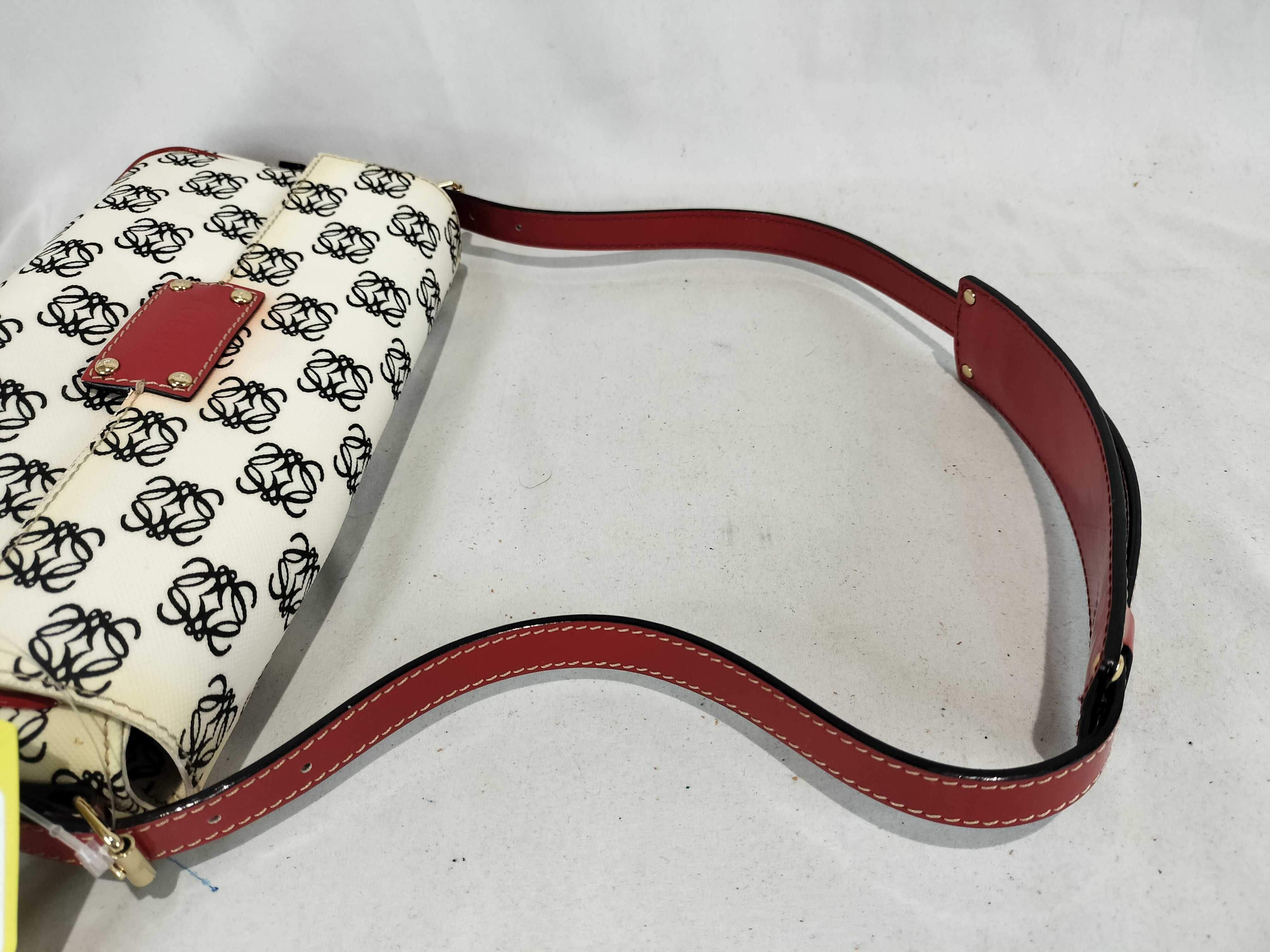 (11935_0384)LOEWE ワンショルダー PVC アナグラム総柄 エナメルハンドル 白×黒×赤 フラップ付き ショルダーバッグ