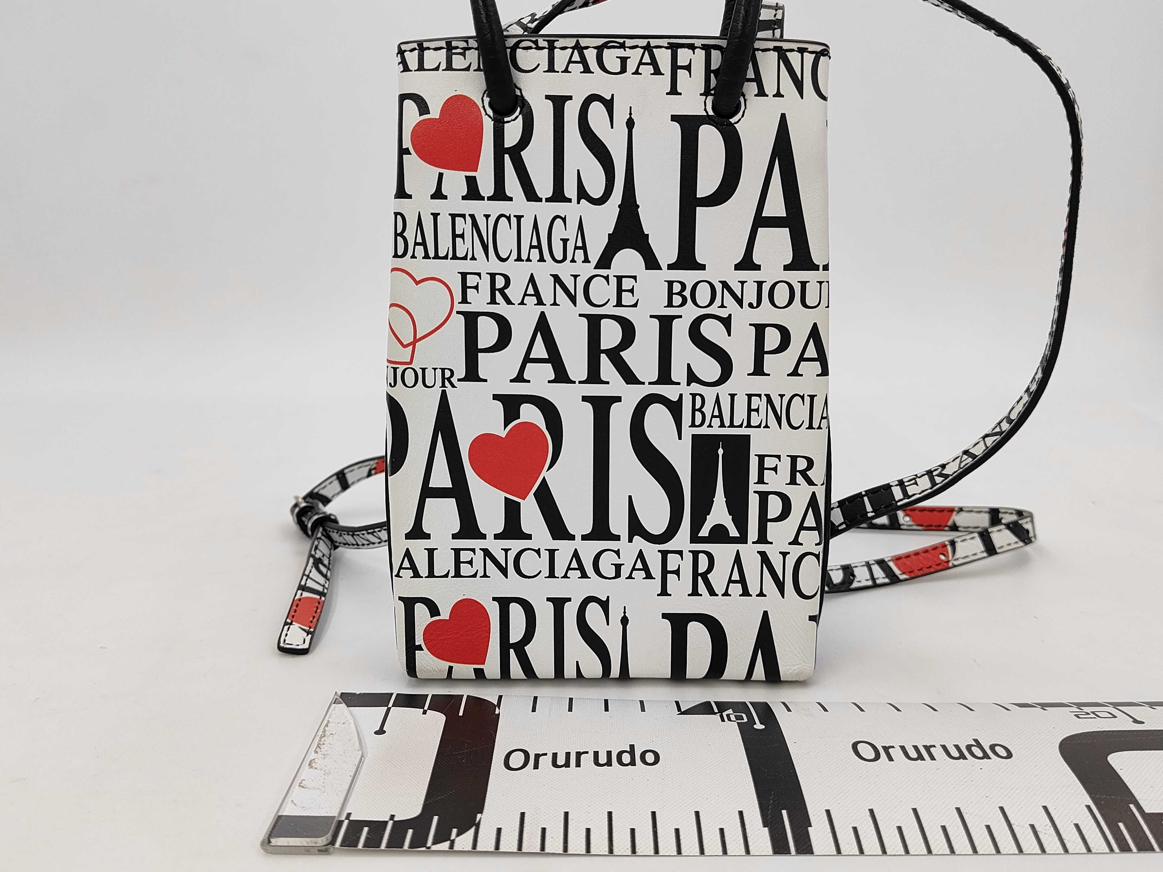 (11935_0462)BALENCIAGA バレンシアガ ショッピング フォンフォルダー バッグ レザー ホワイト バッグ