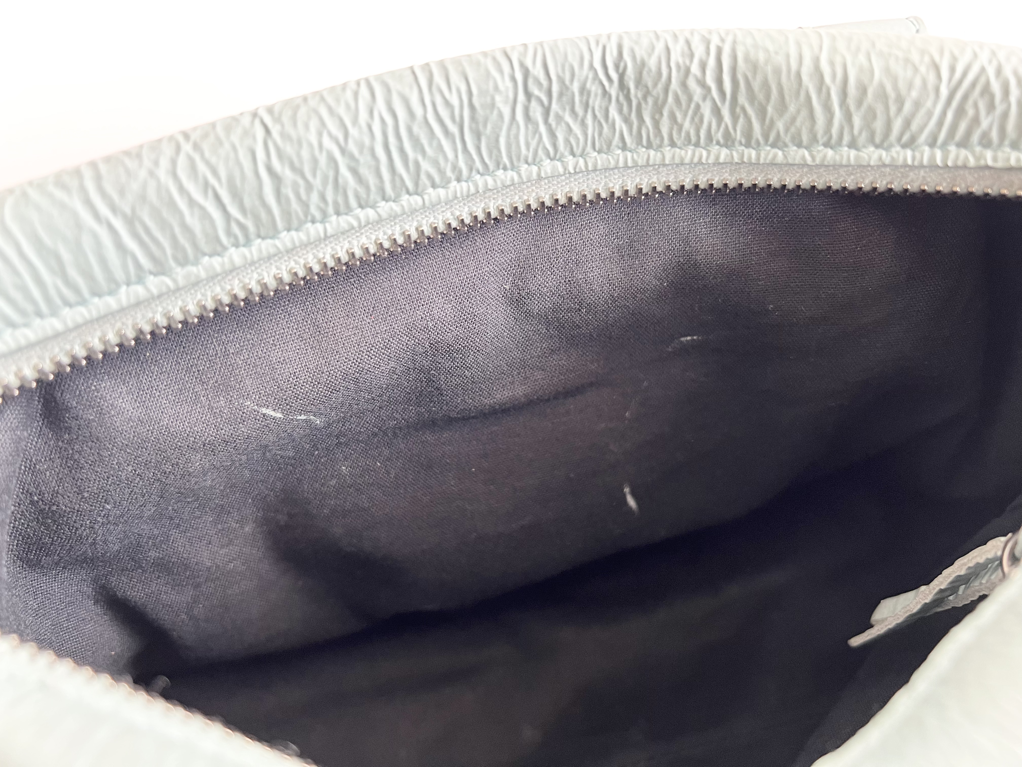塗装あり 全体ヤケ汚れ(中) スタッズべたつき(大) ?がれ(中) 持ち手黒ずみ(中) 紐ちぎれ(中) シワ(中) プル金具紐ヒビ亀裂コバ割れ(中) ミラー汚れ(大) 内側汚れ(中) ストラップちぎれかけ【付属品