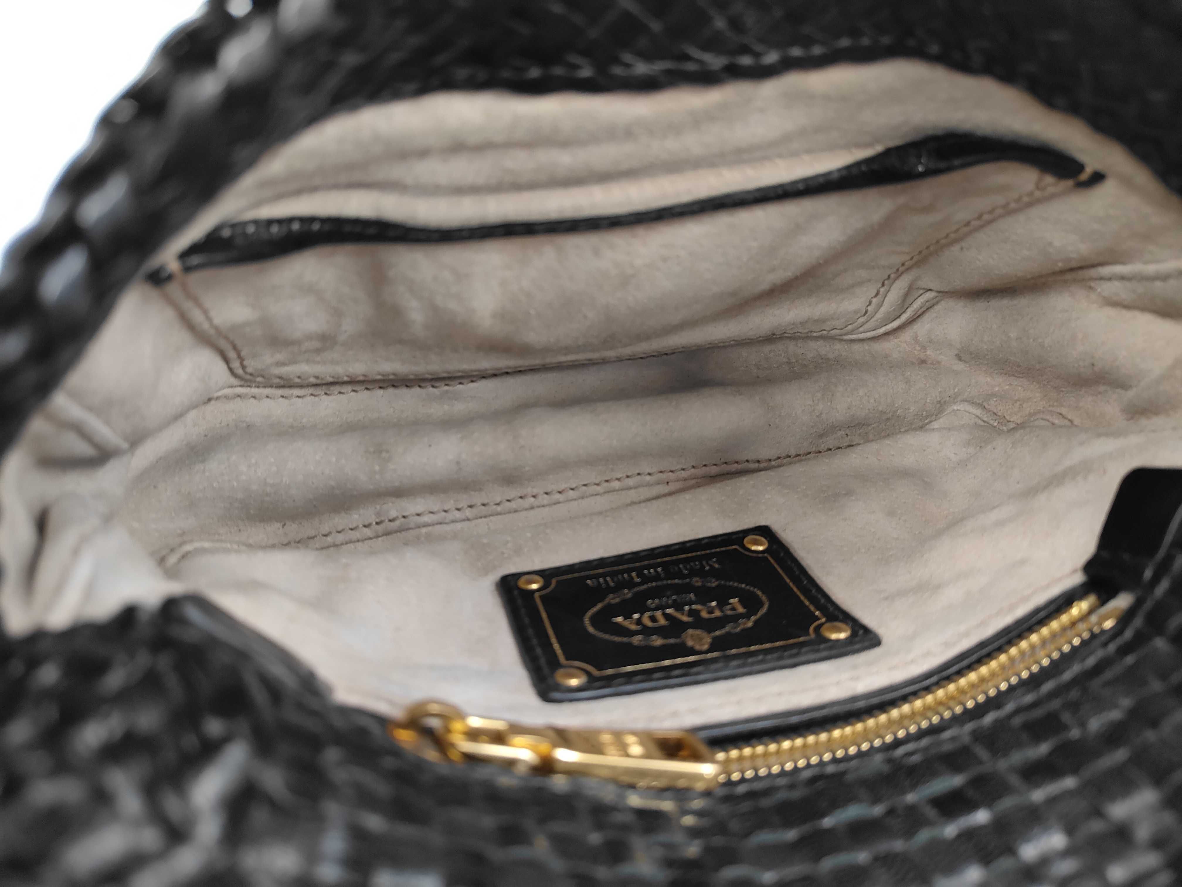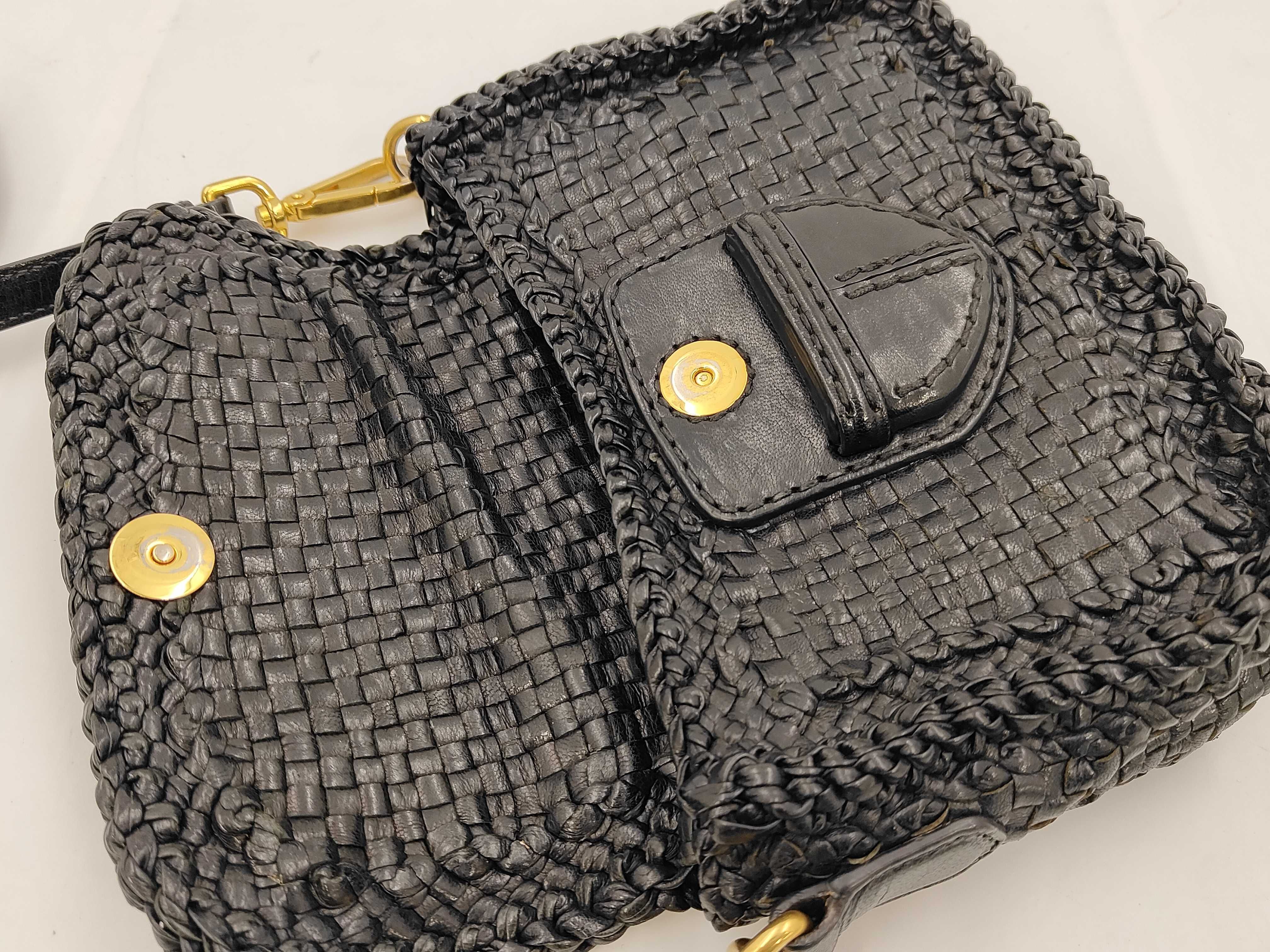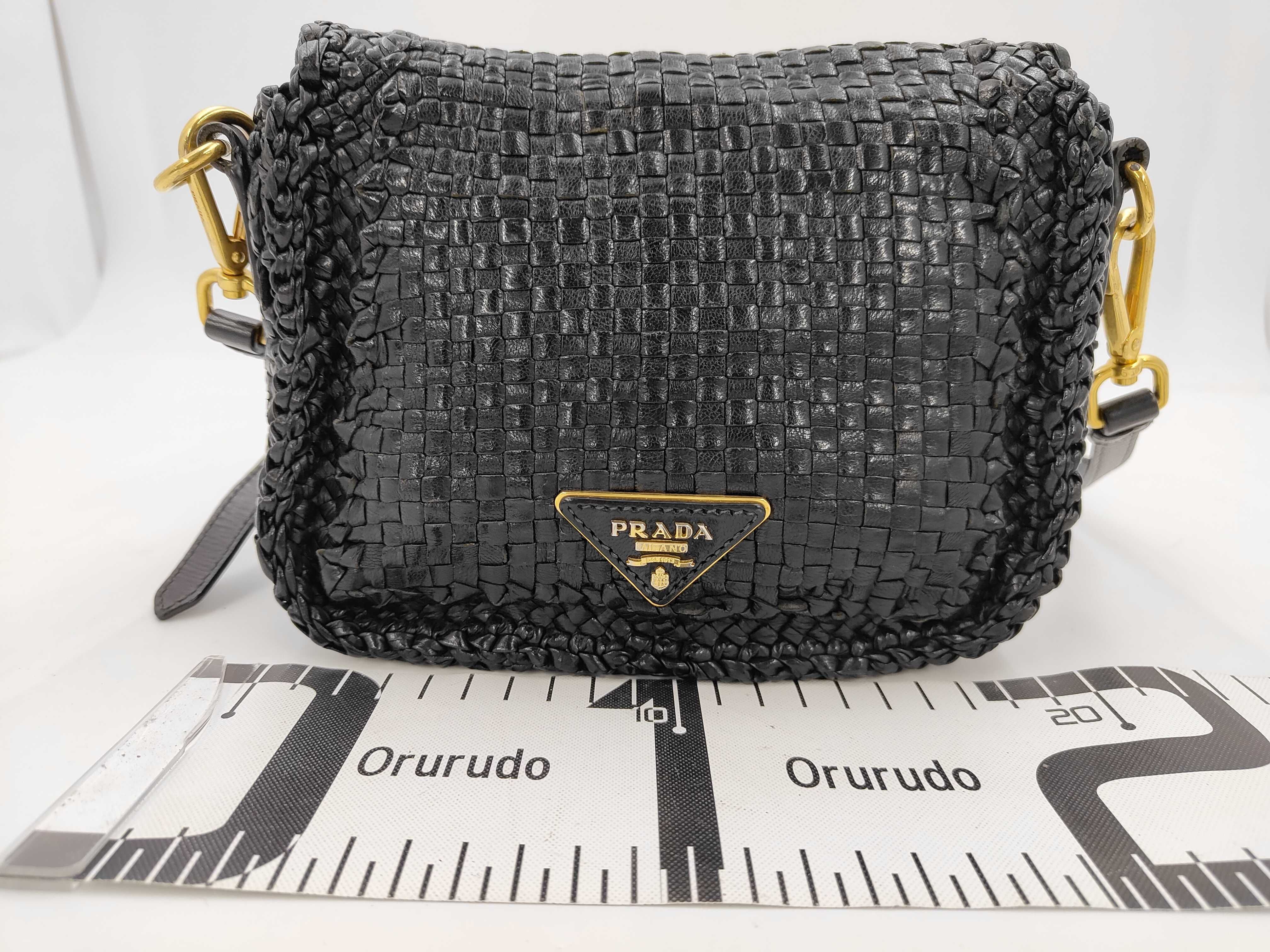 (11935_0516)PRADA プラダ 編み込み レザー ショルダーバッグ ブラック バッグ