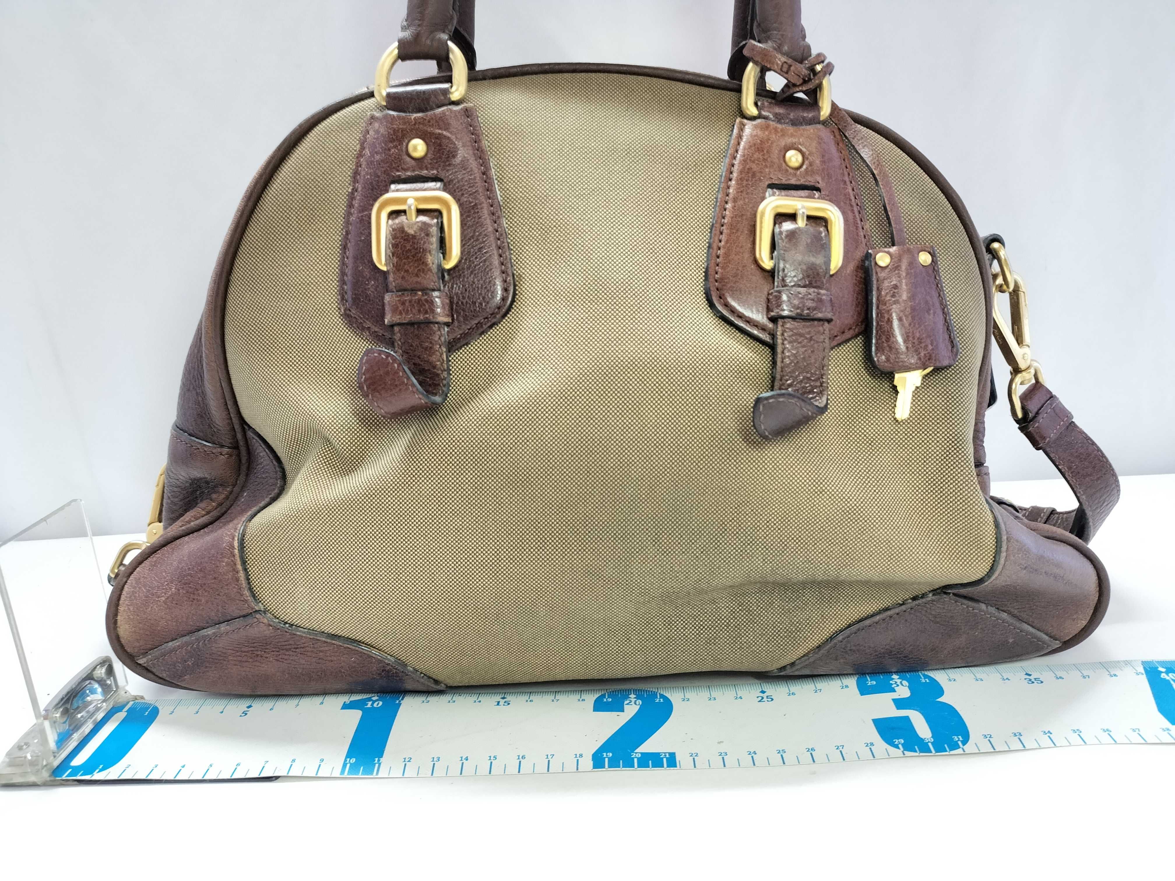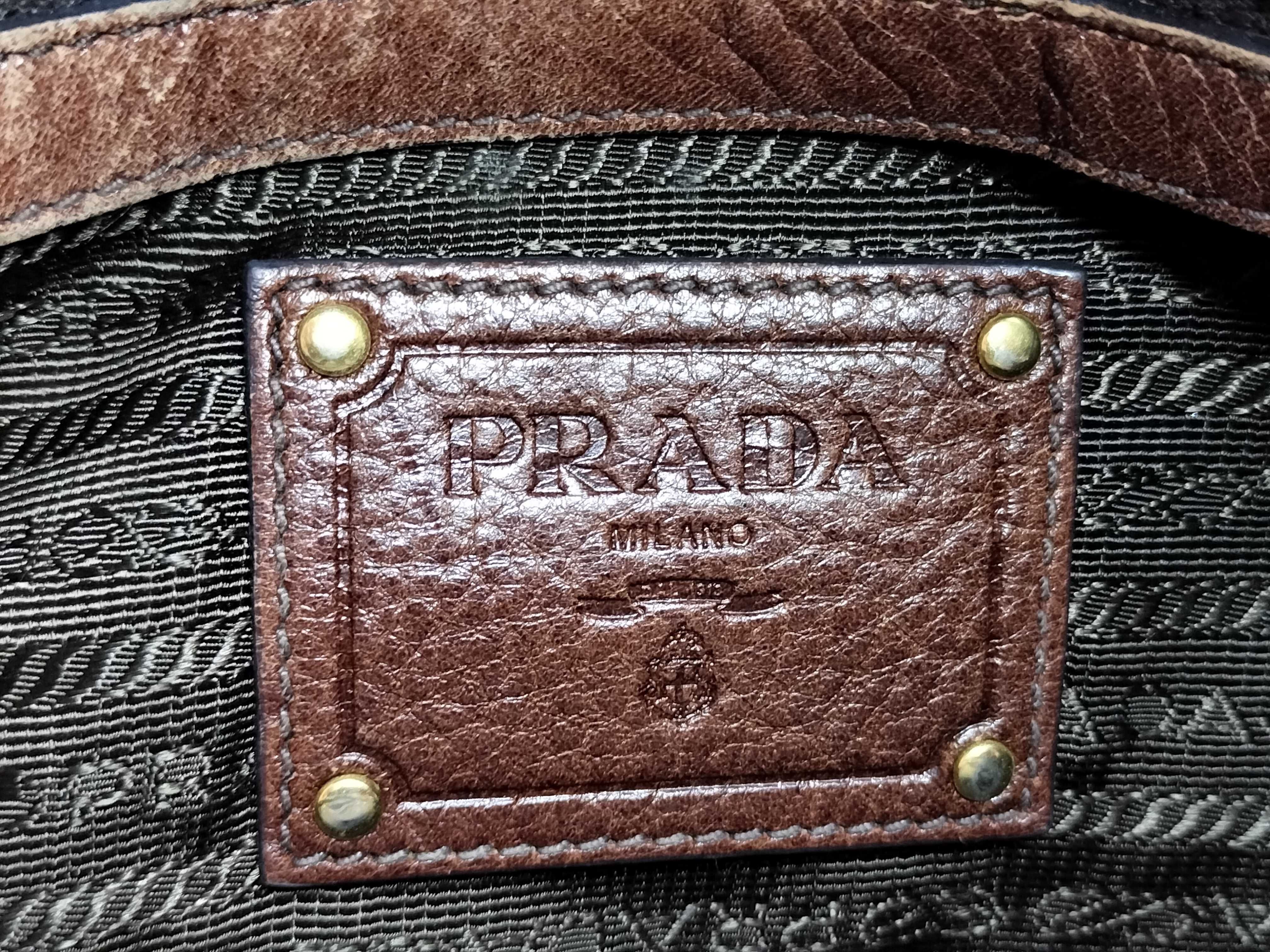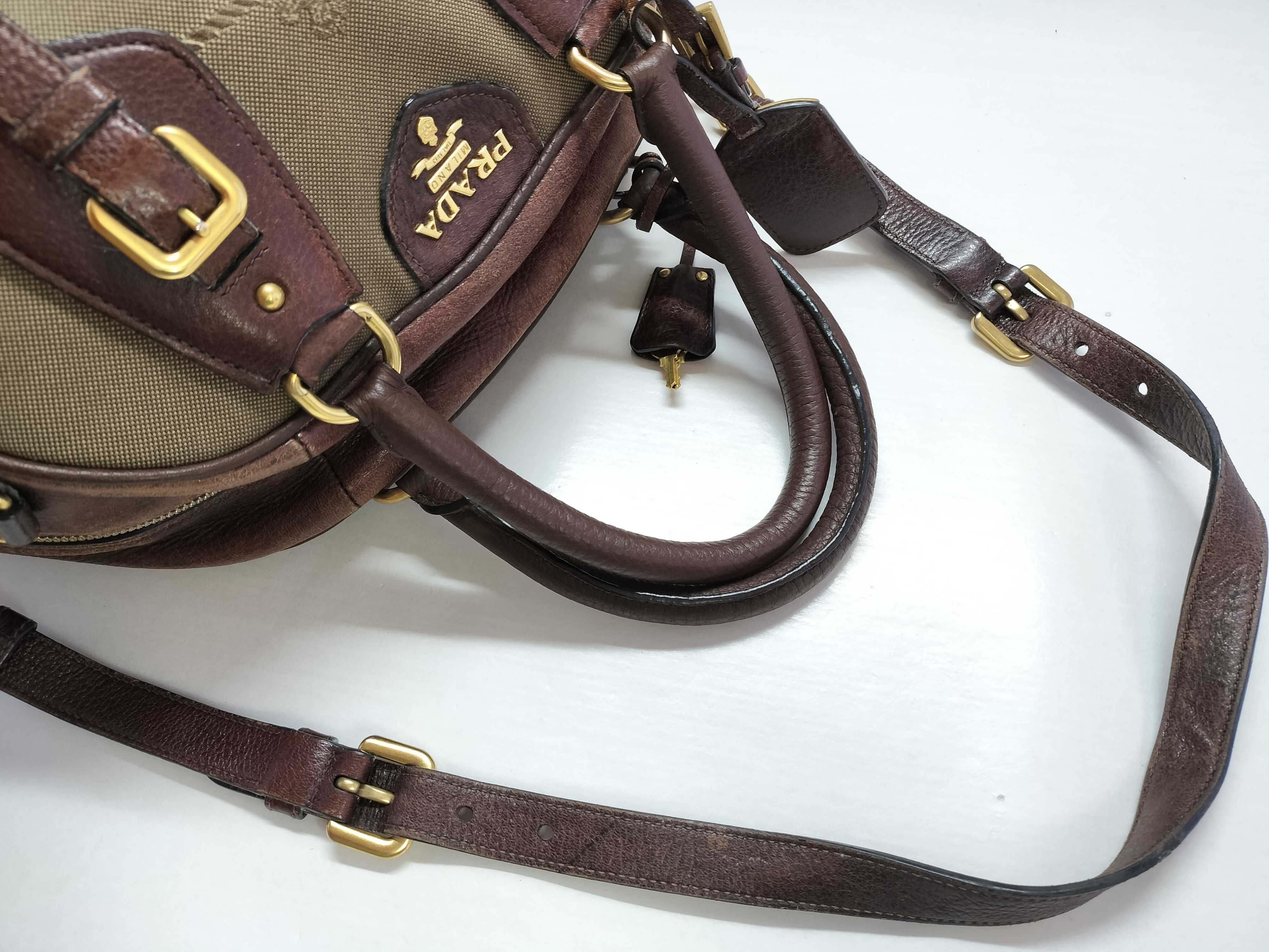 (11935_0523)PRADA PRADA プラダ ジャガード 2way ハンドバッグ ショルダーバッグ ブラウン カデナ付き ハンドバッグ