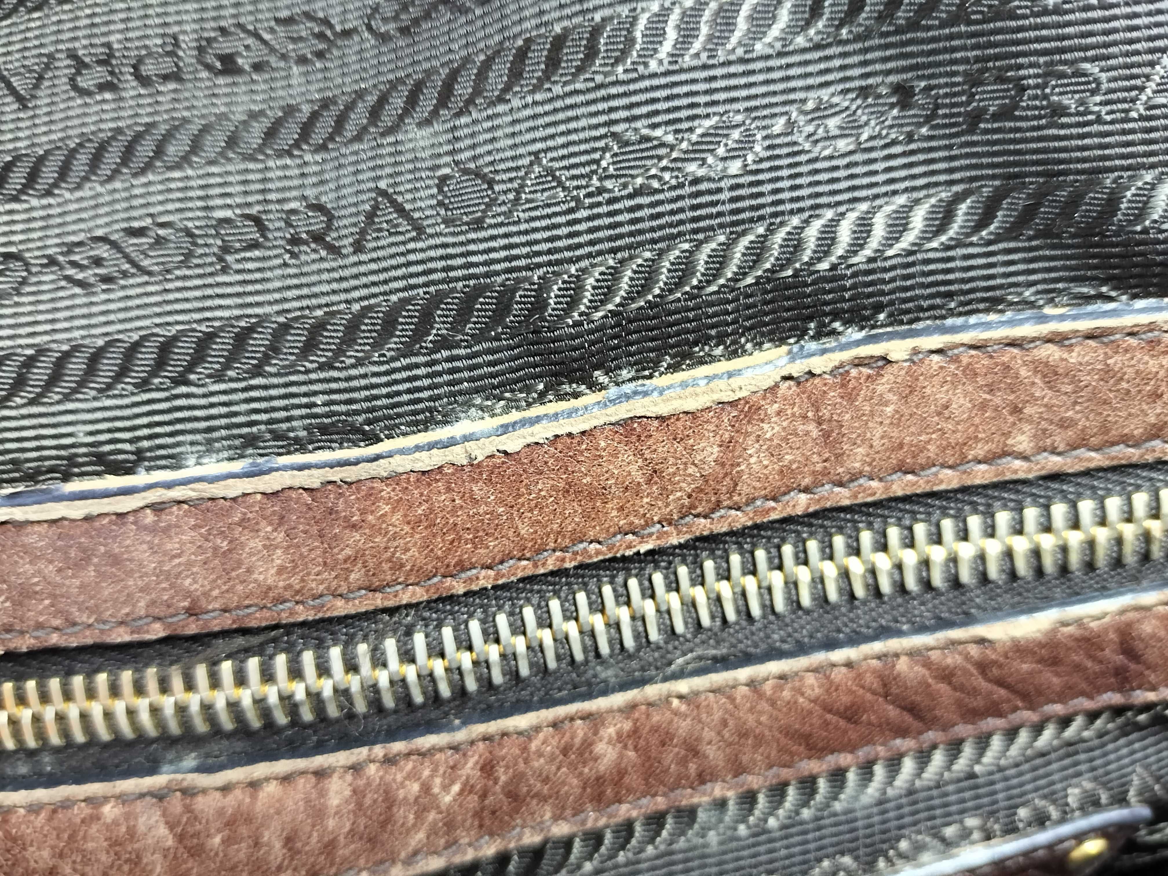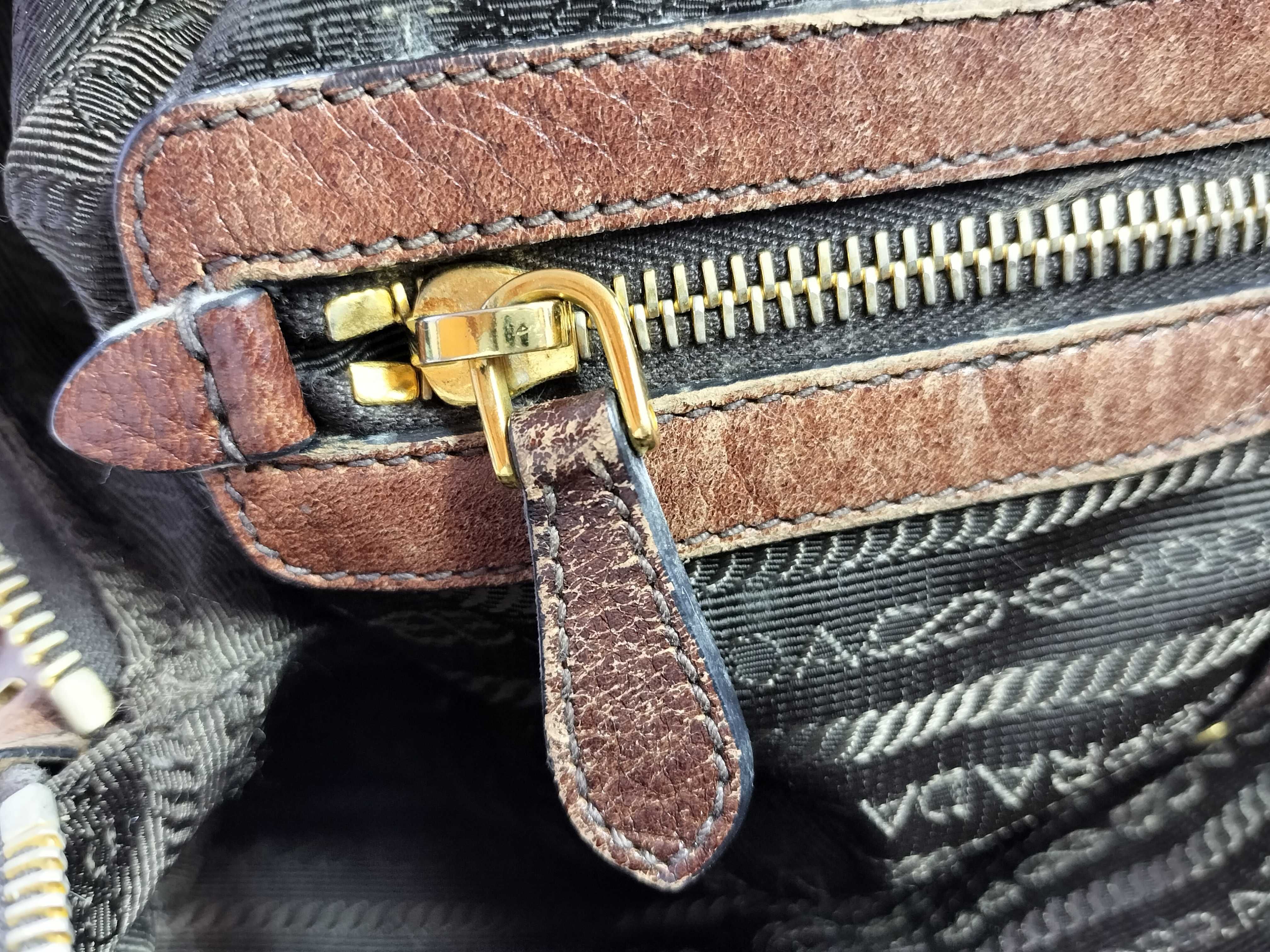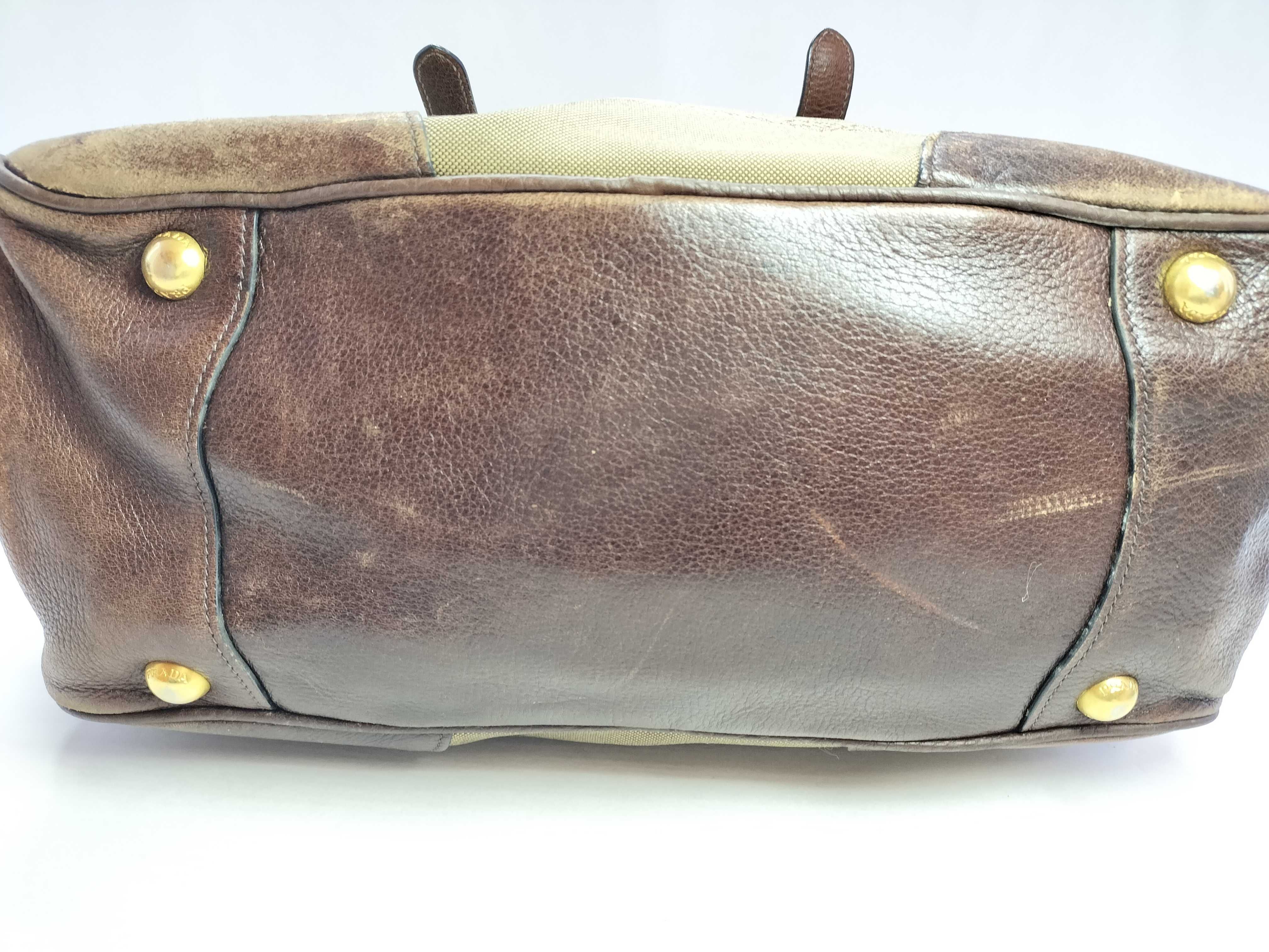 (11935_0523)PRADA PRADA プラダ ジャガード 2way ハンドバッグ ショルダーバッグ ブラウン カデナ付き ハンドバッグ