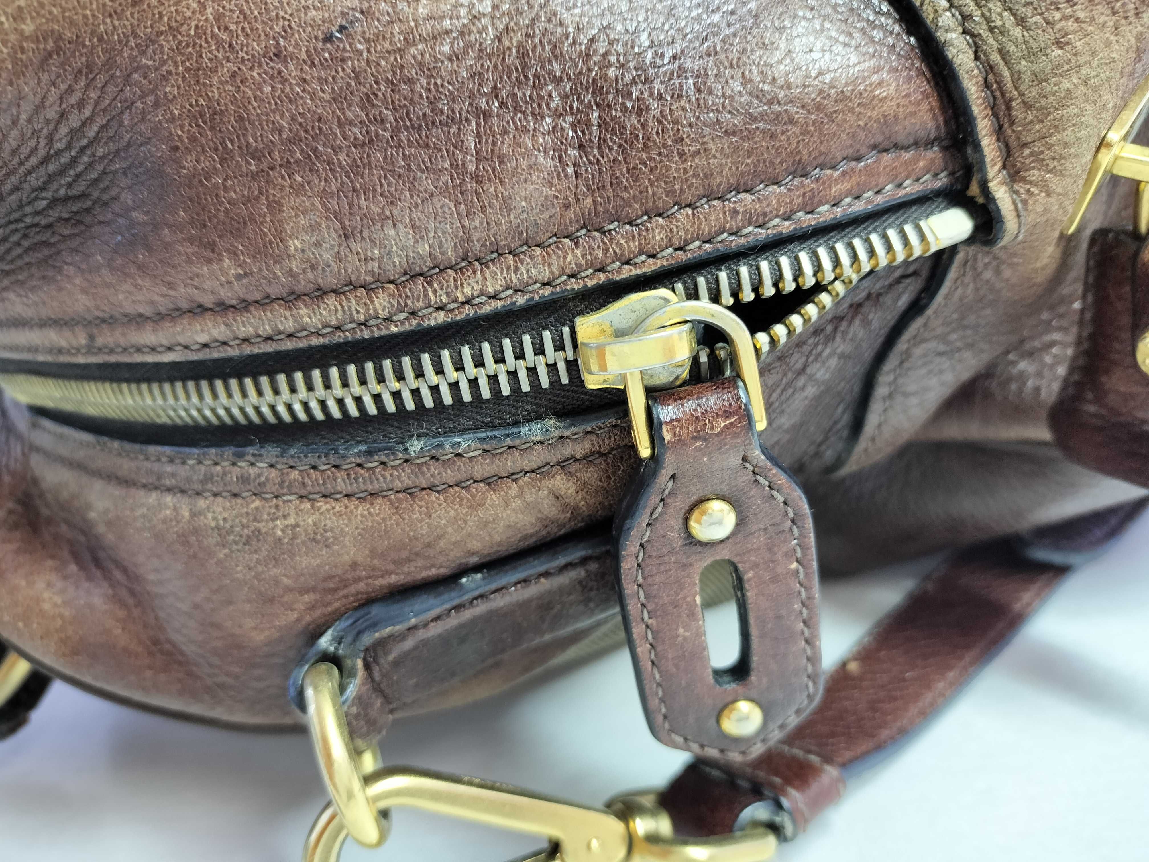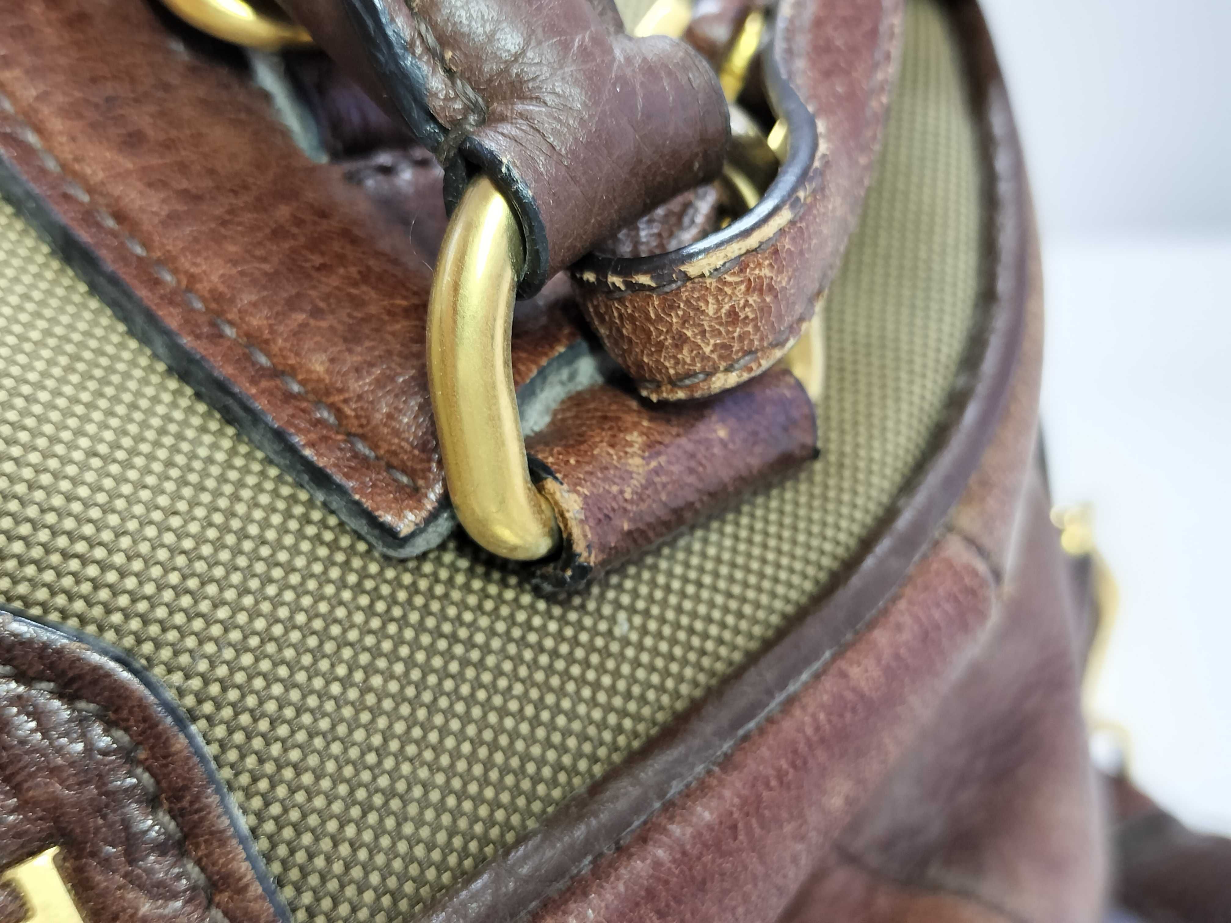 全体擦れ(中) 角擦れ(大) 付け根伸び切れ(小) 金具キズ(小) 内側汚れ(小) 全体黒ずみ(中) 革傷(中) 内側糸ほつれ(有) 間口破れ(有)【付属品