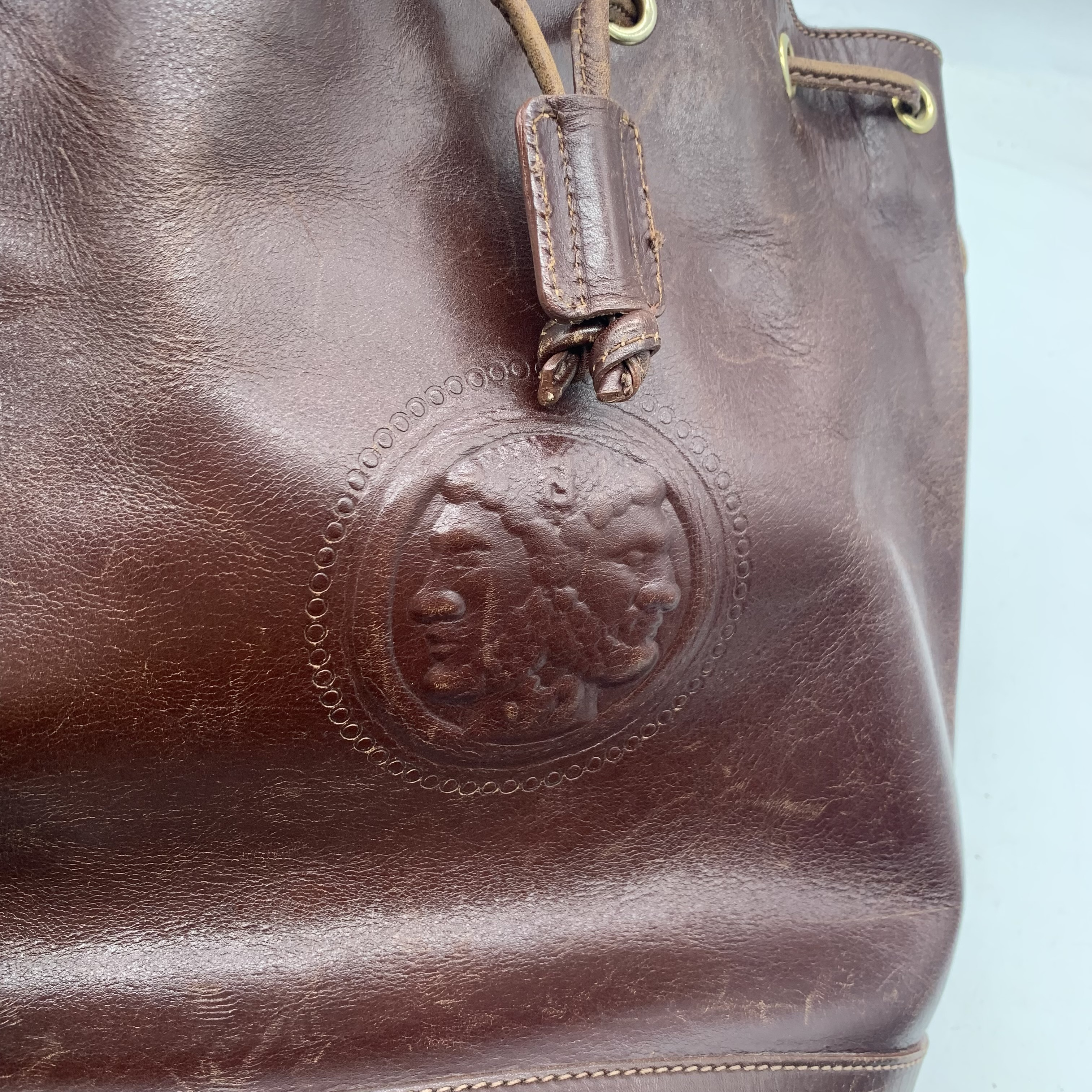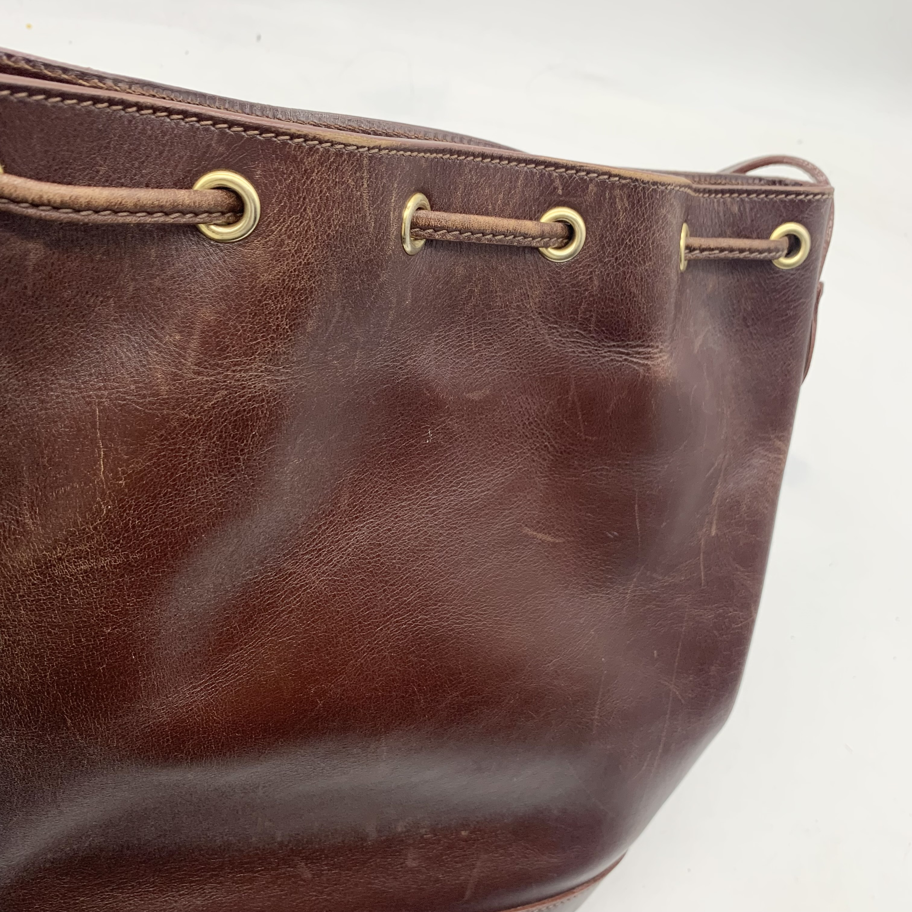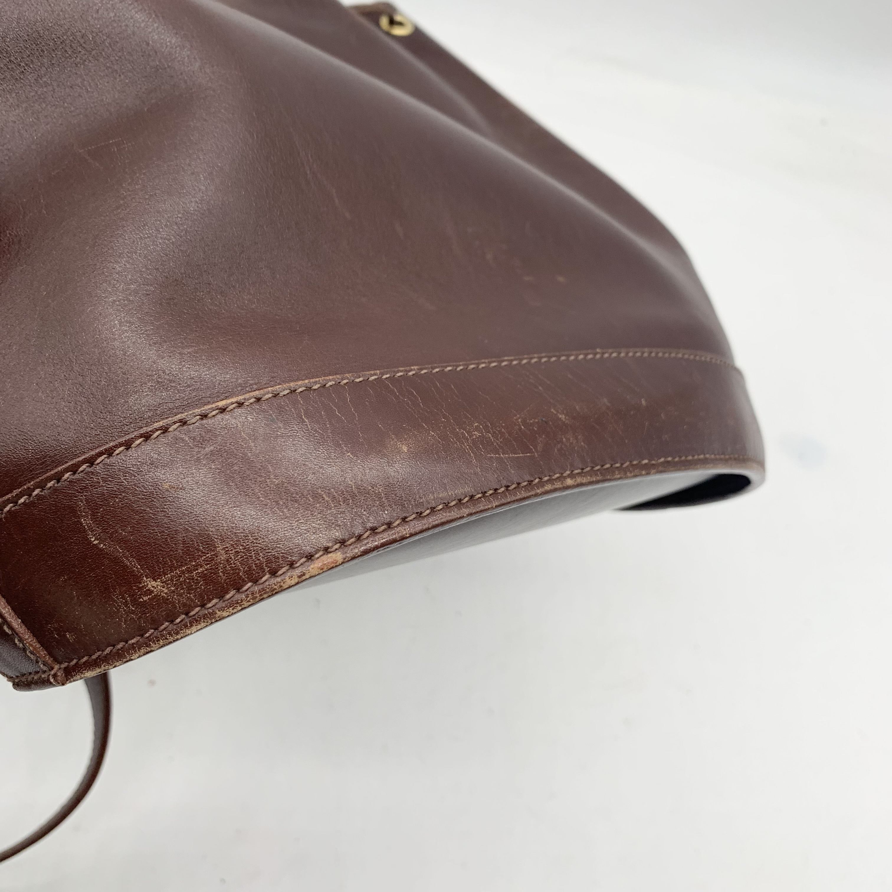 全体焼け擦れ傷ヒビ(中) 角擦れ(中) 型崩れ(中) ショルダーヒビヨレ(中) 付け根伸び切れ(中) コバヒビ(中) 金具擦れ傷くすみ(中) 紐ヒビ(大) 間口コバヒビ(中) 内側擦れ傷汚れ(中) 内側ファスナープル取れ開かず","タイプライン": "", "カテゴリ": "バッグ", "形状コード": "ショルダーバッグ", "付属品コード": "", "シリアル・シール・型番": ""