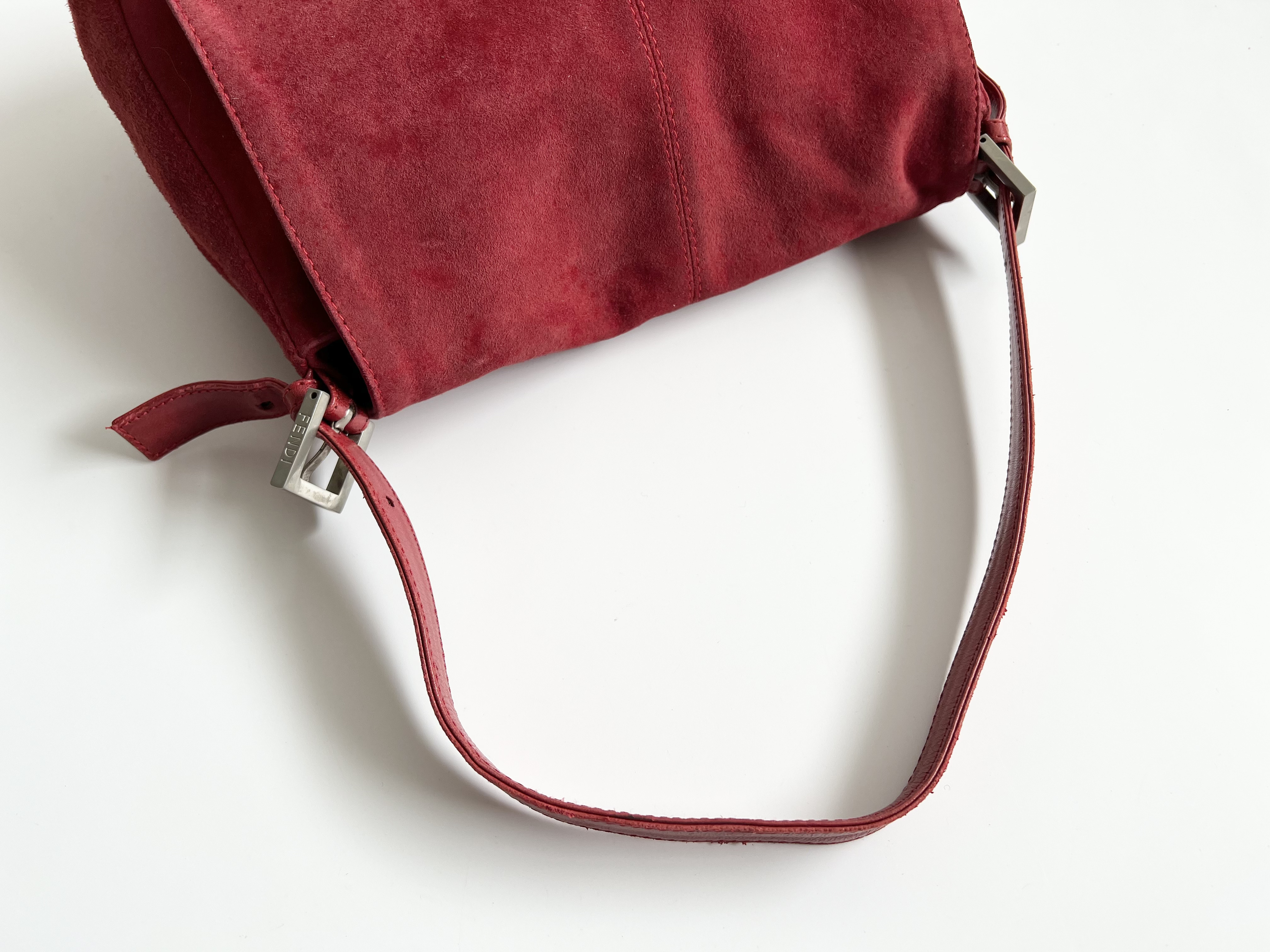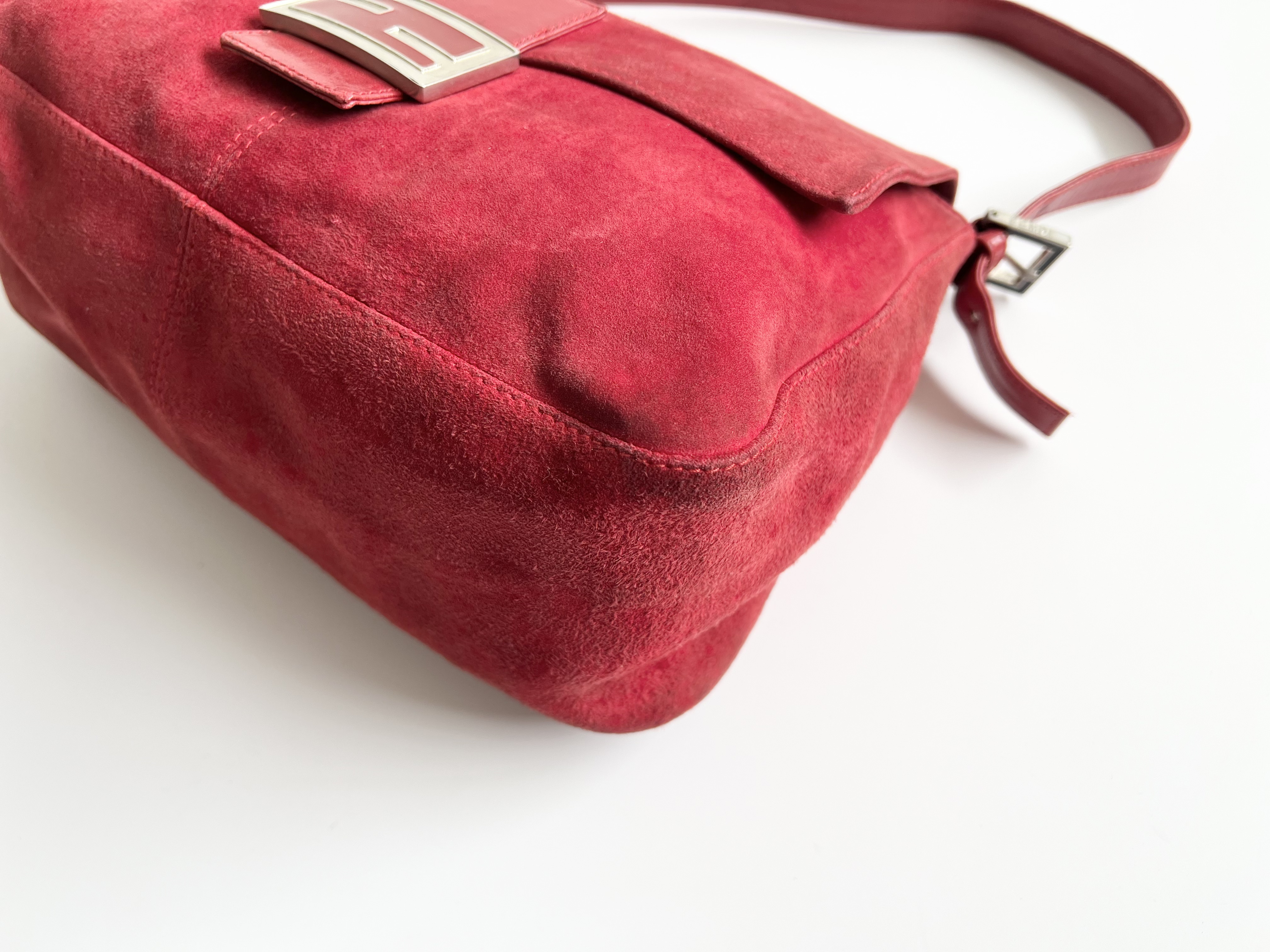 (11935_0595)FENDI フェンディ マンマバケット バゲット スエード レザー ショルダーバッグ