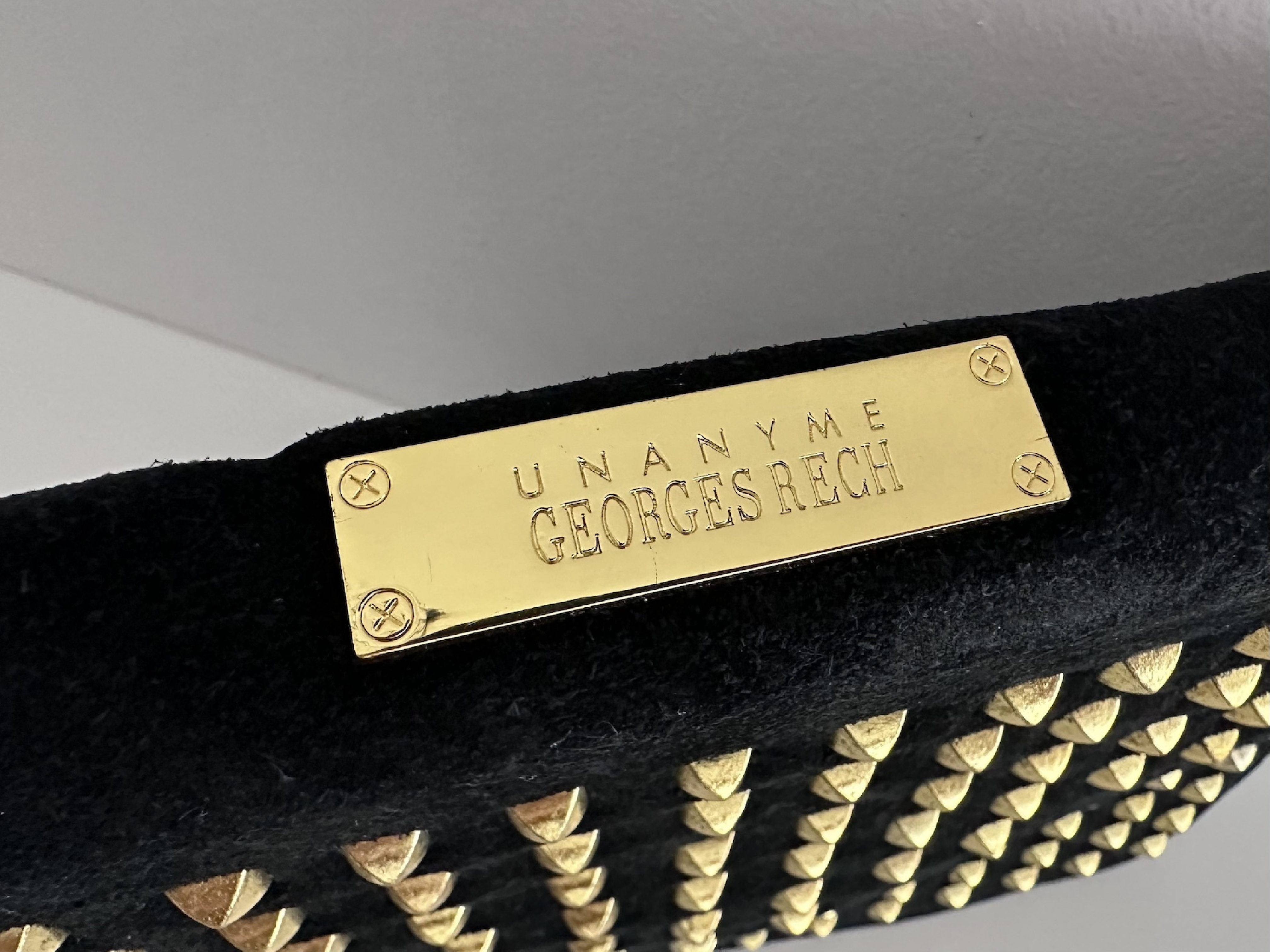 (11935_0792)GEORGES RECH ジョルジュ・レッシュ スタッズ付きクラッチバッグ 黒×ゴールド クラッチバッグ