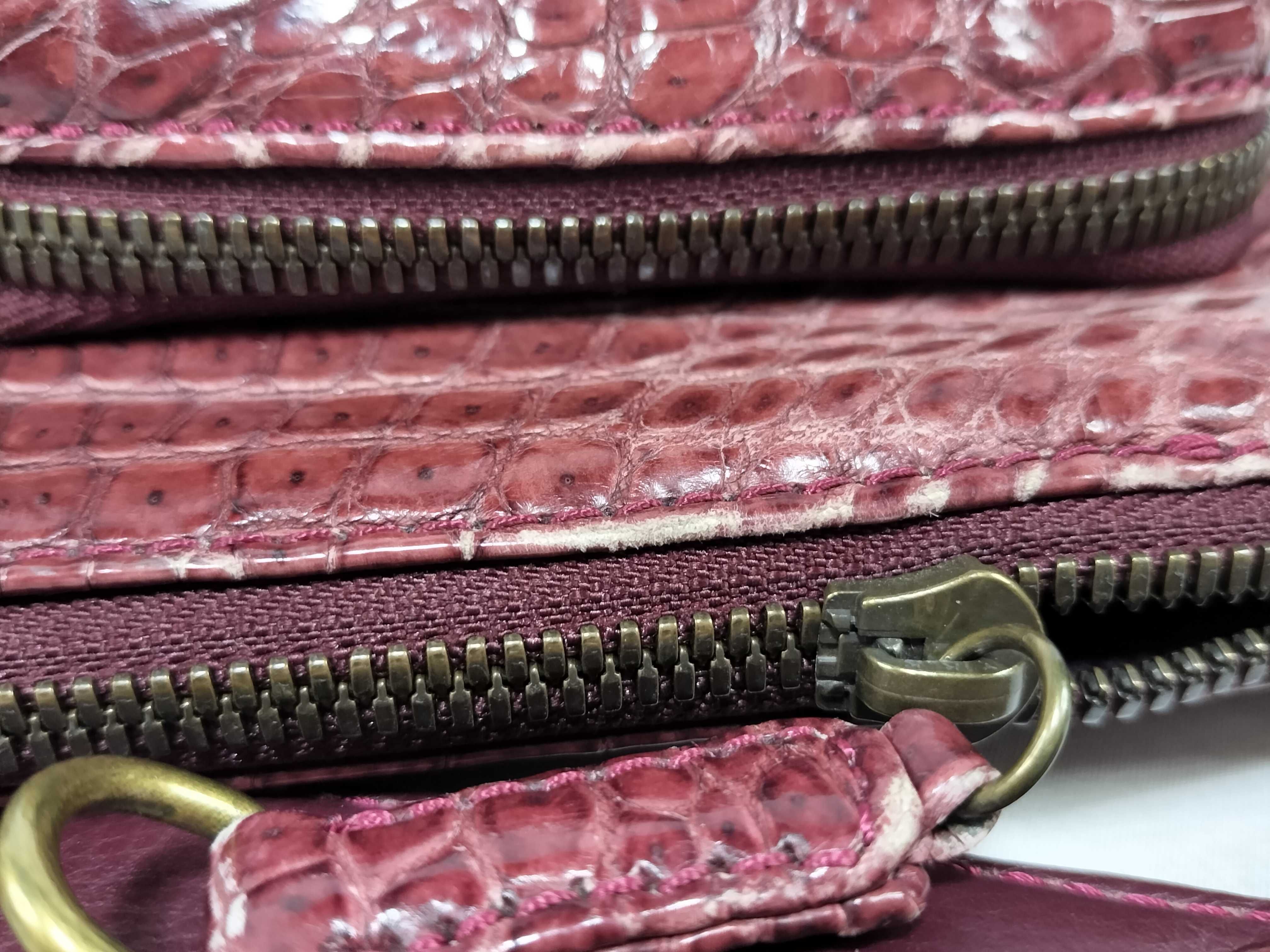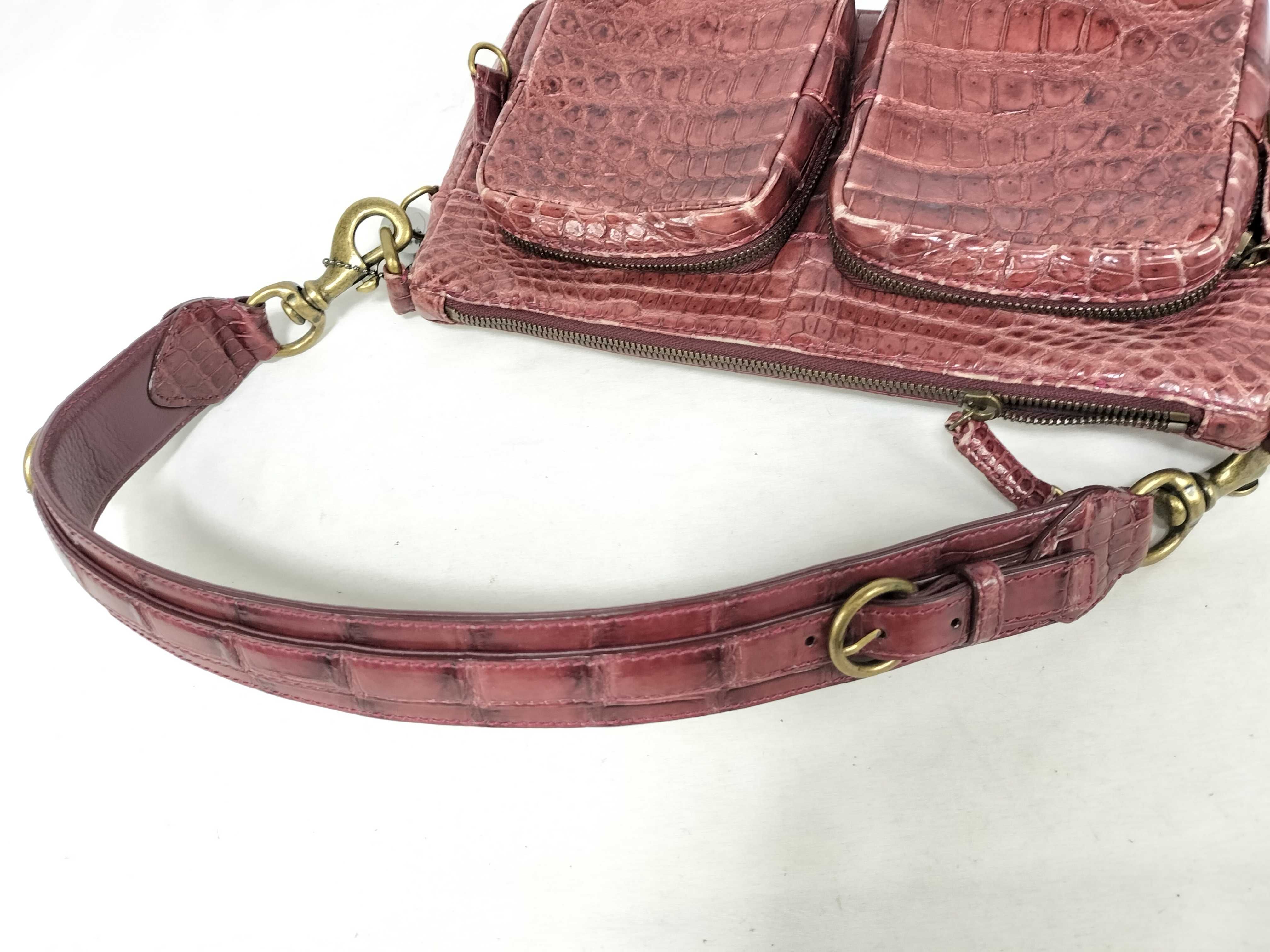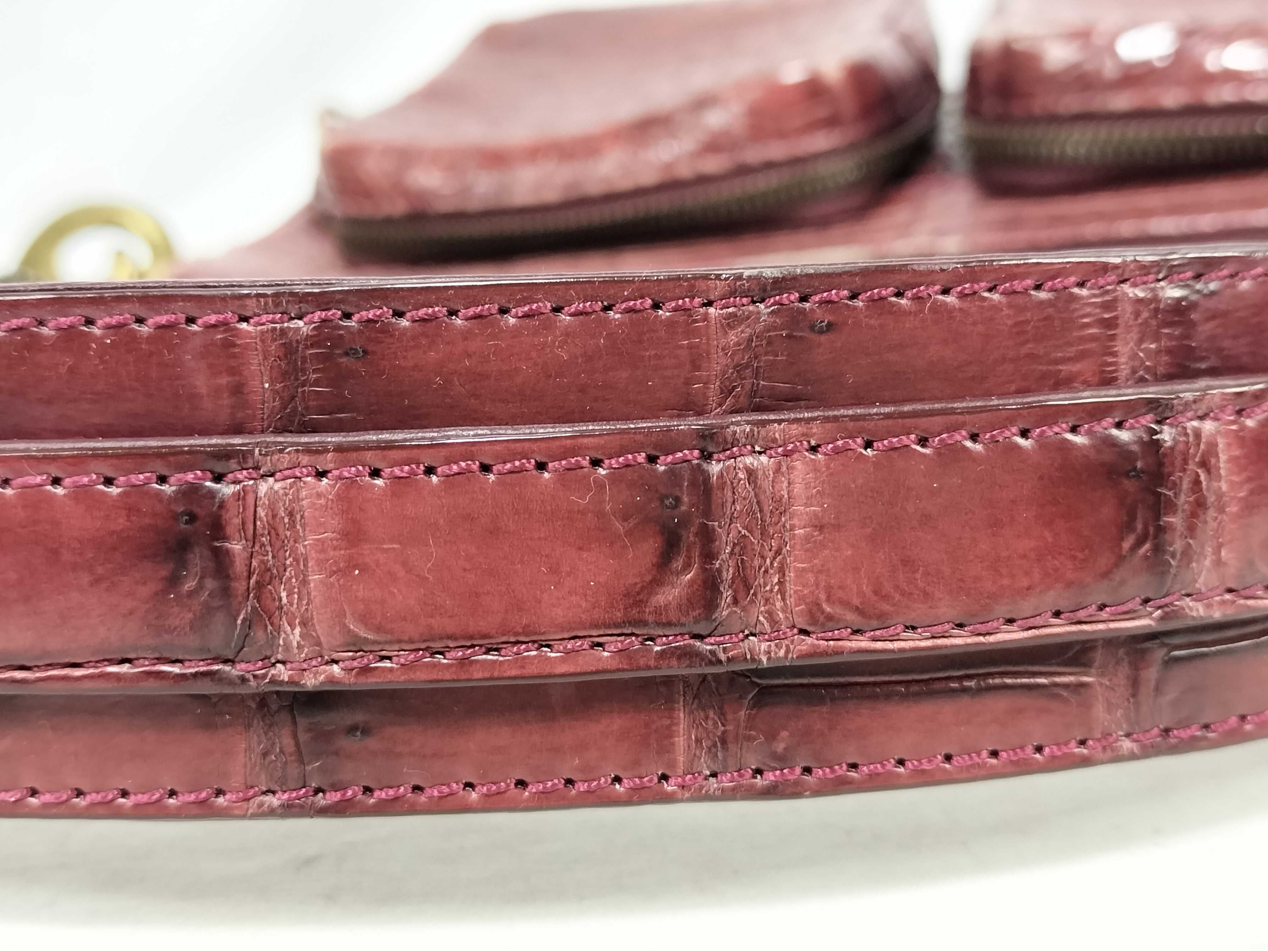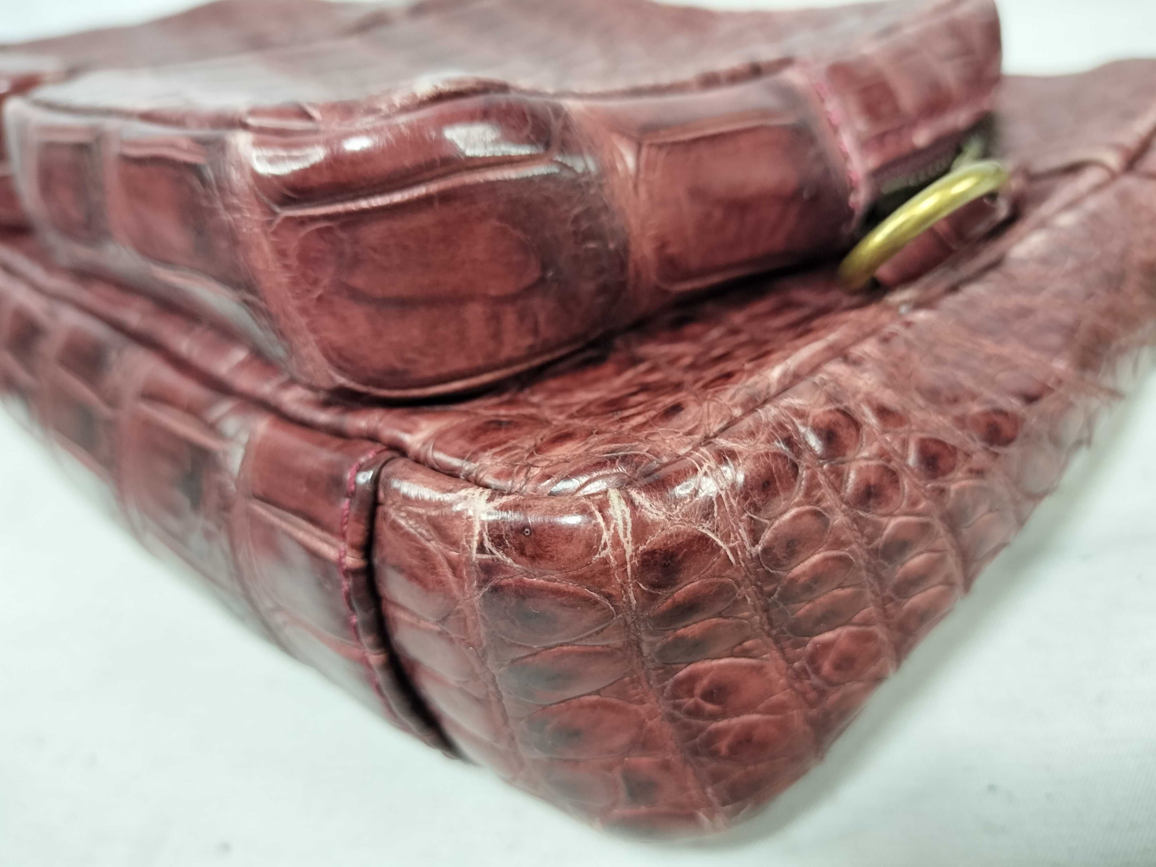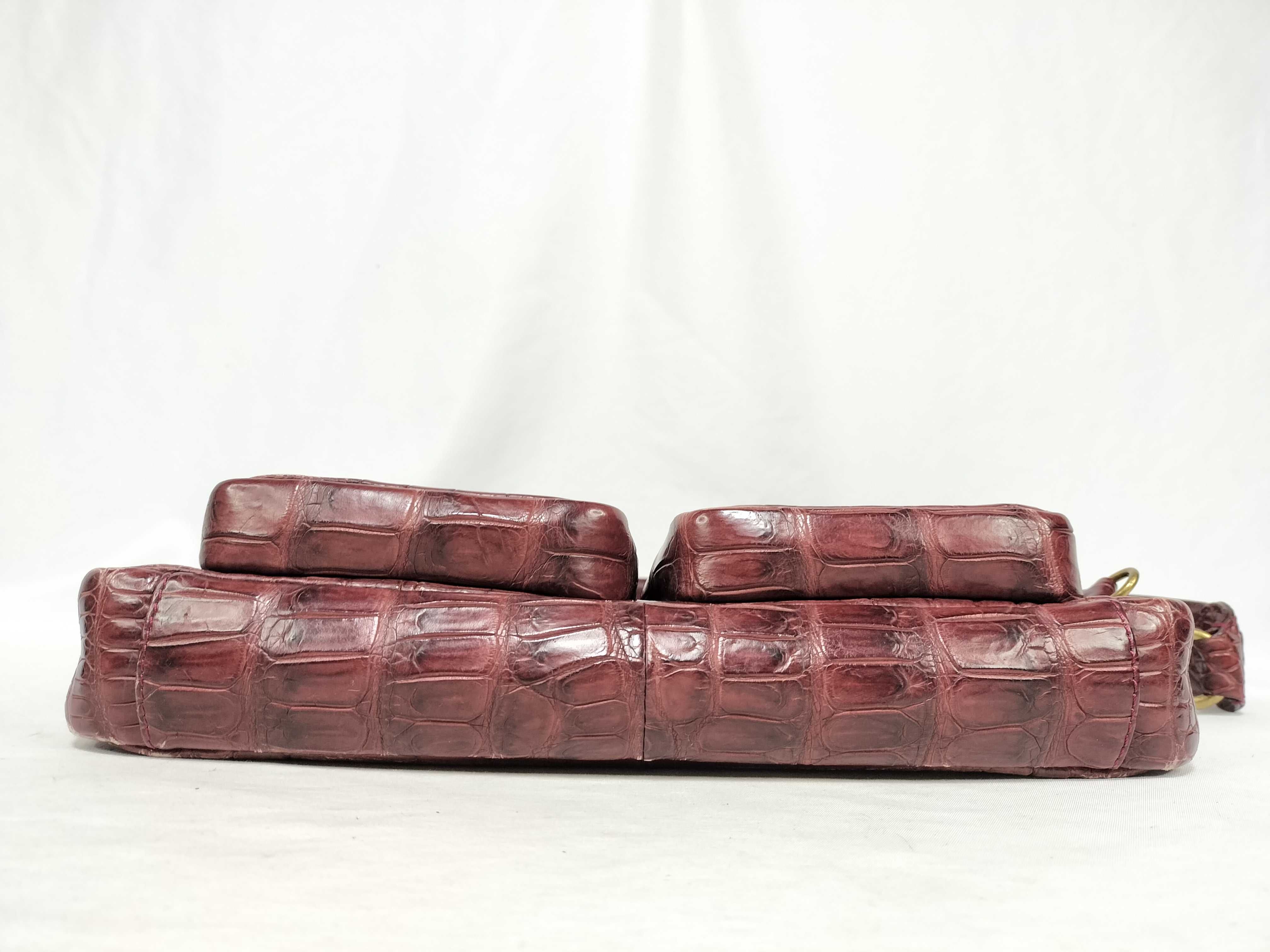 (11935_0794)▼LEATHER JEWELS JRA認定 クロコ 2WAY ショルダーバッグ ボルドー ハンドバッグ
