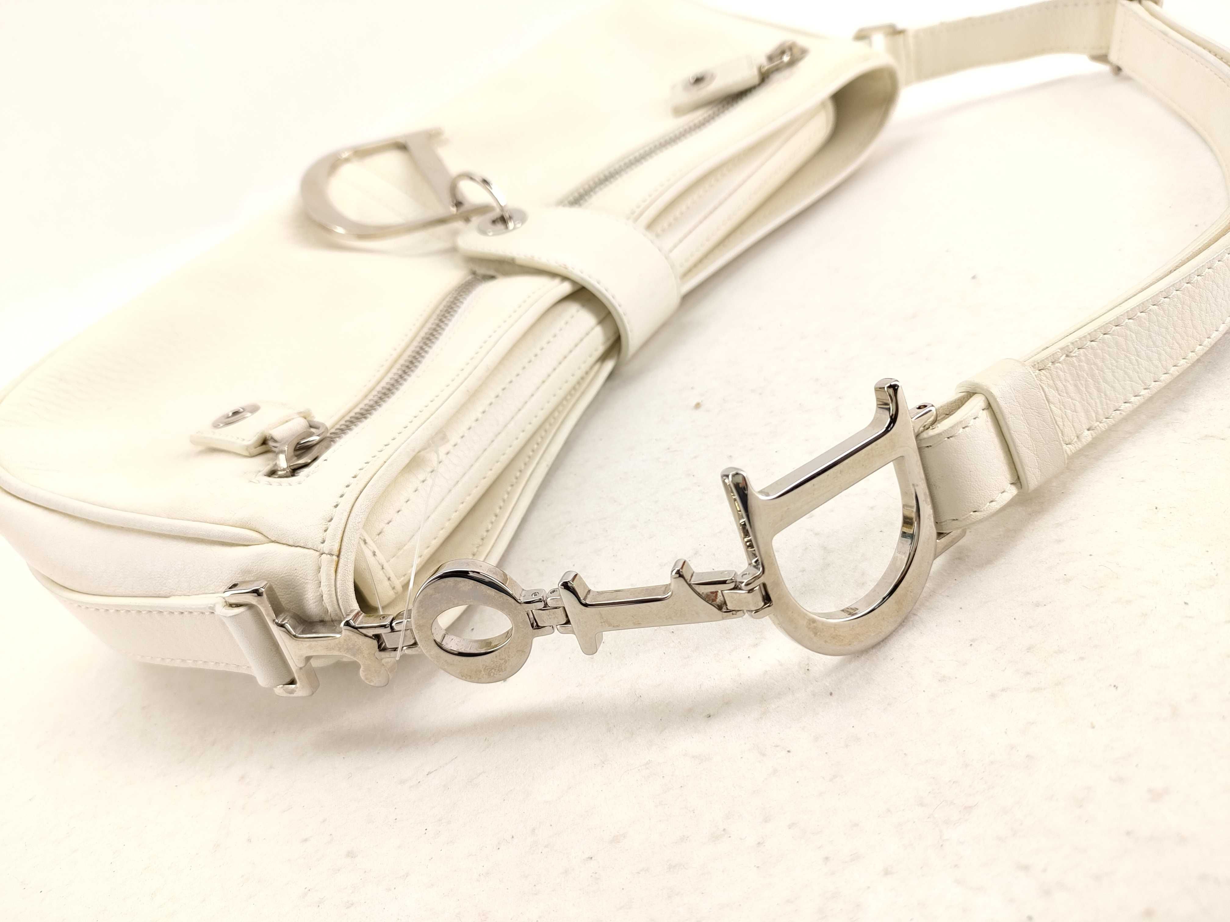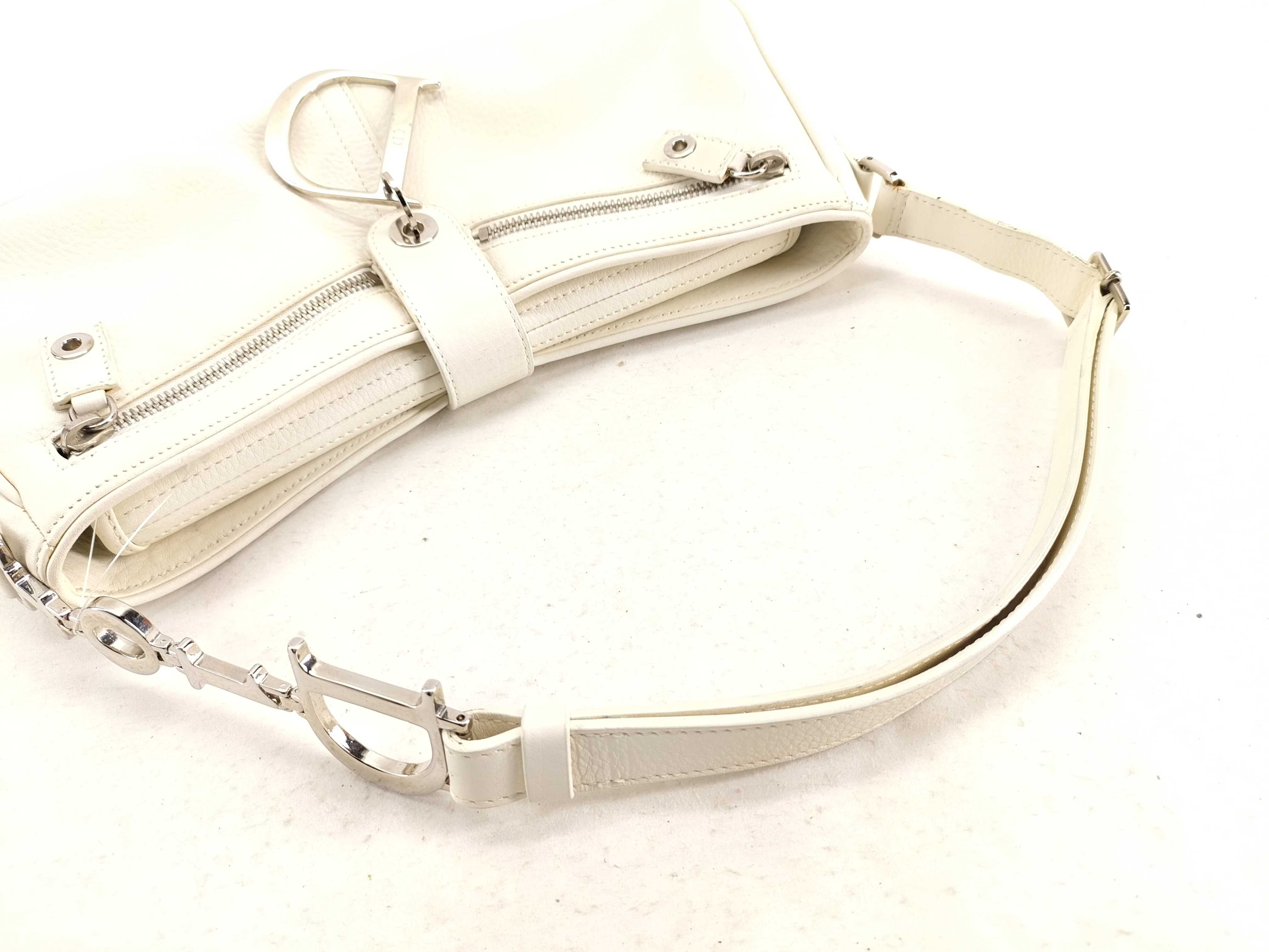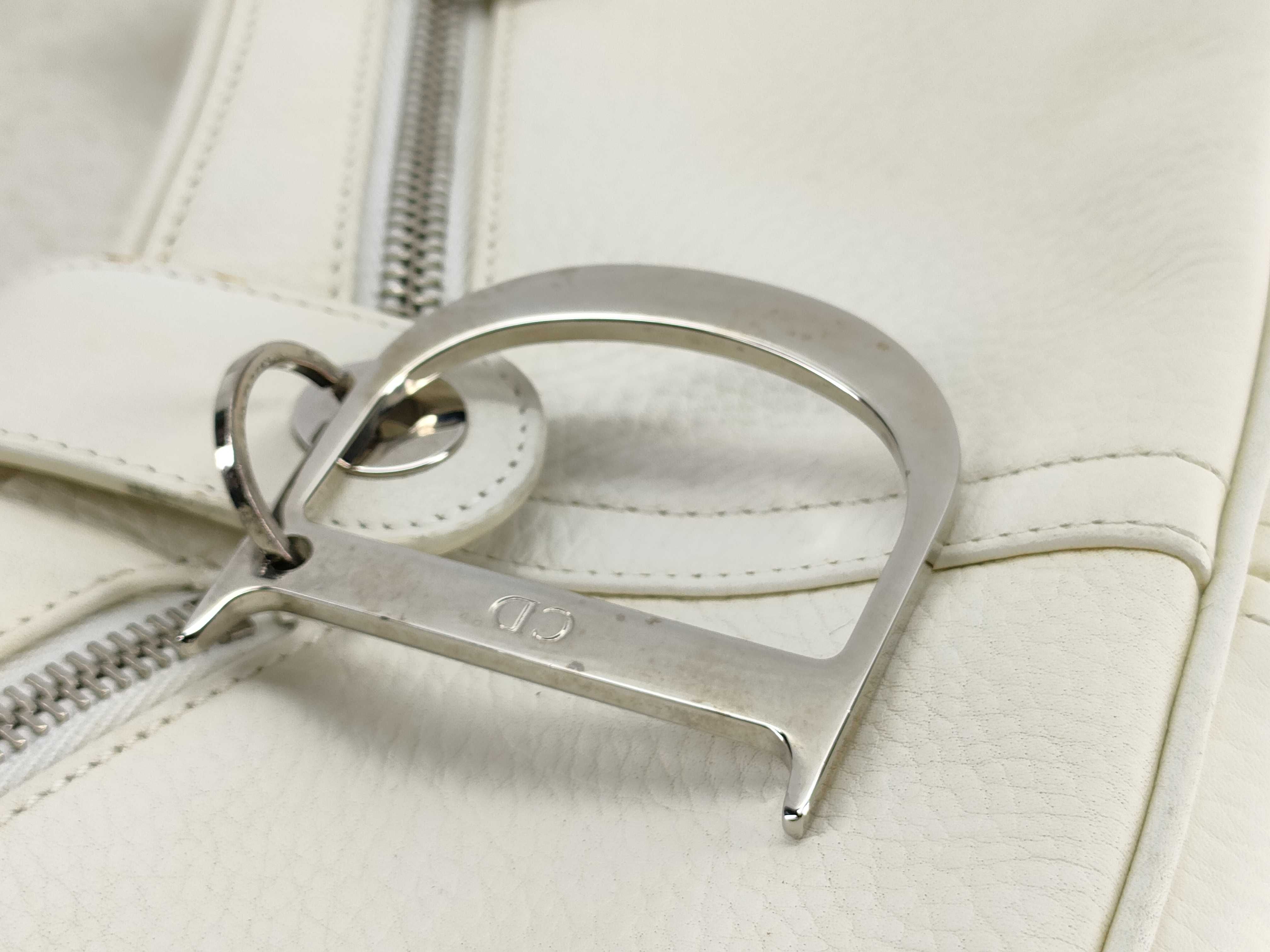 (11935_0869)Dior D金具 レザー ワンショルダーバッグ ホワイト ショルダーバッグ