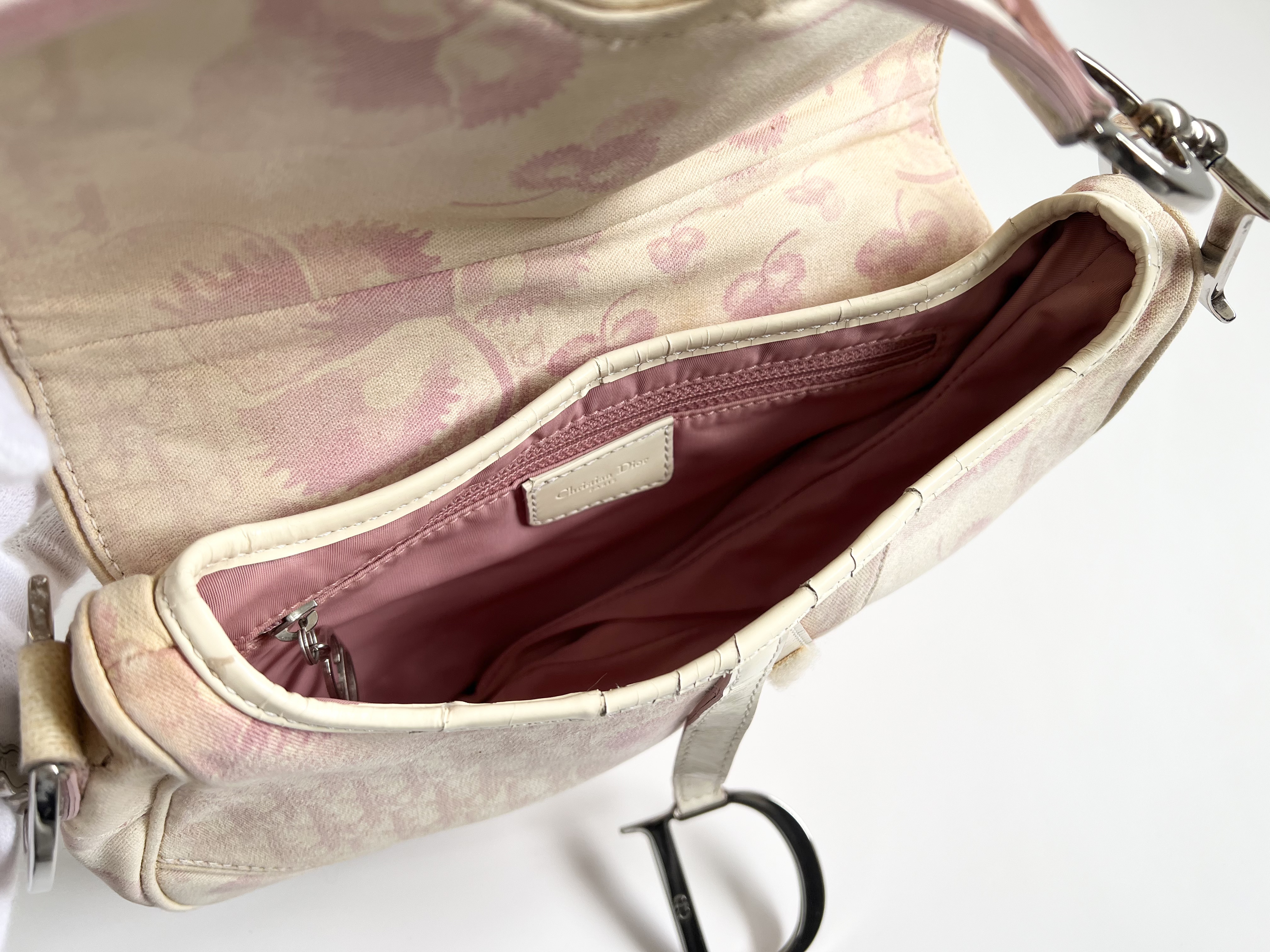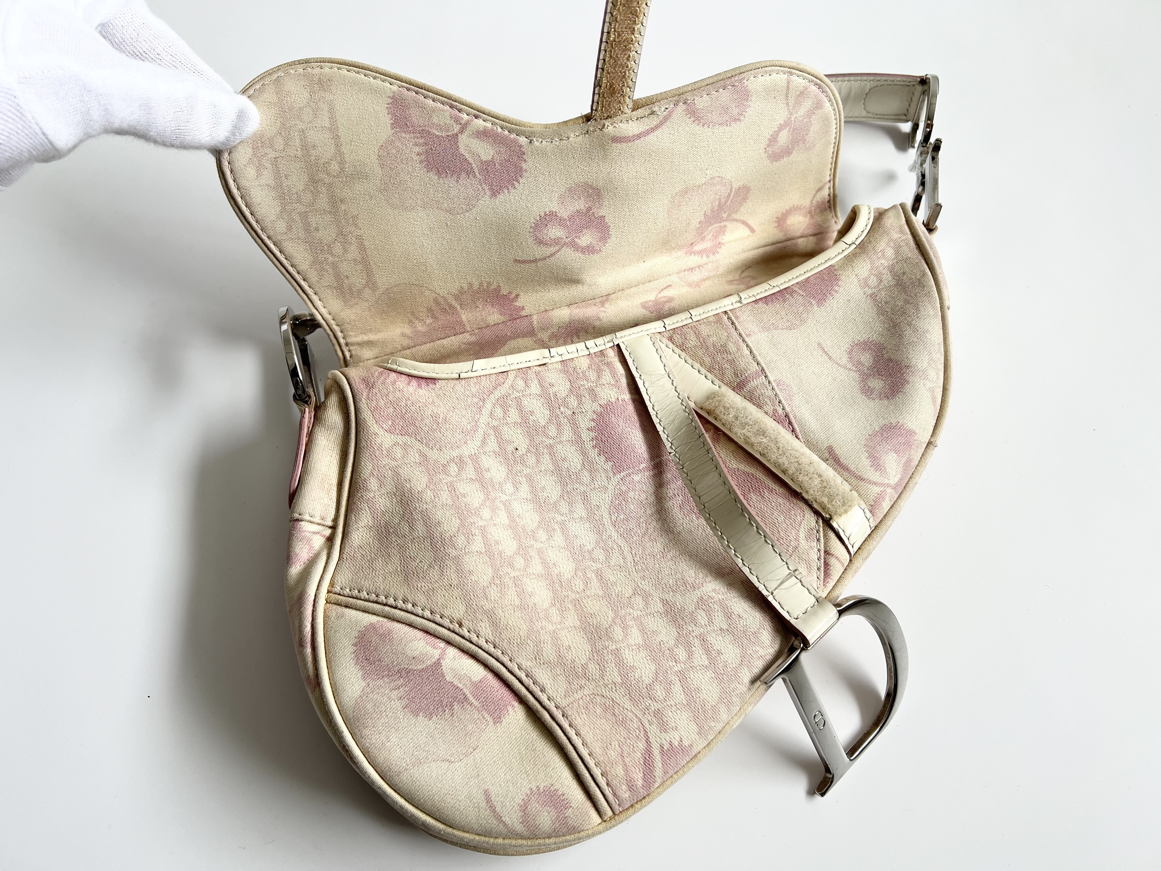 (11935_0894)Dior クリスチャン ディオール トロッター サドル フラワー レザー ベルト ショルダーバッグ