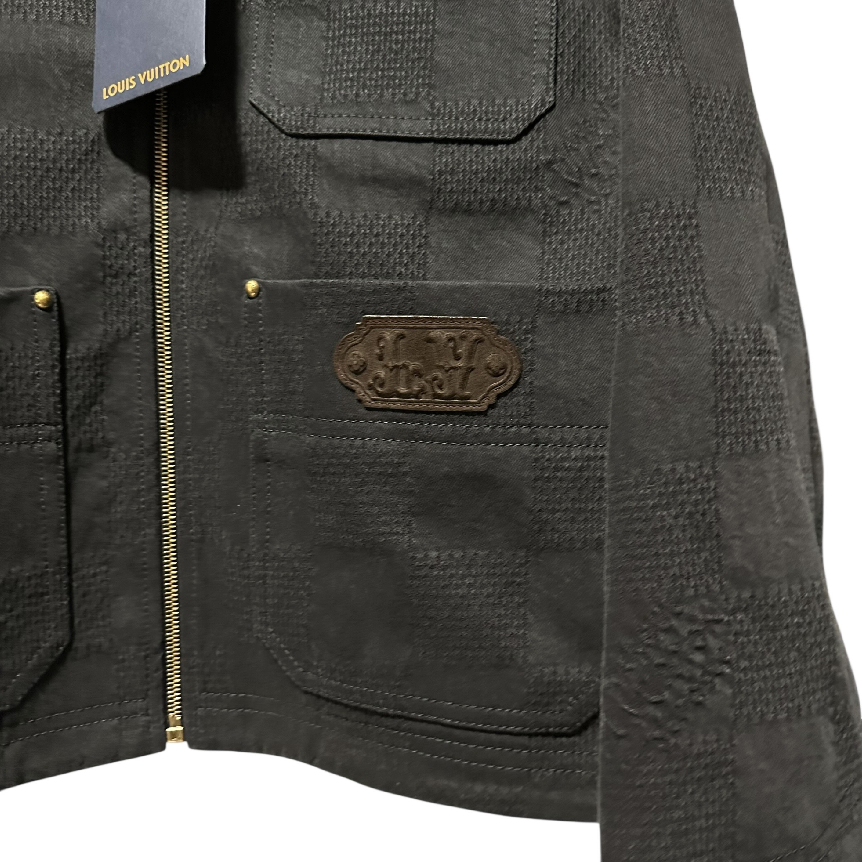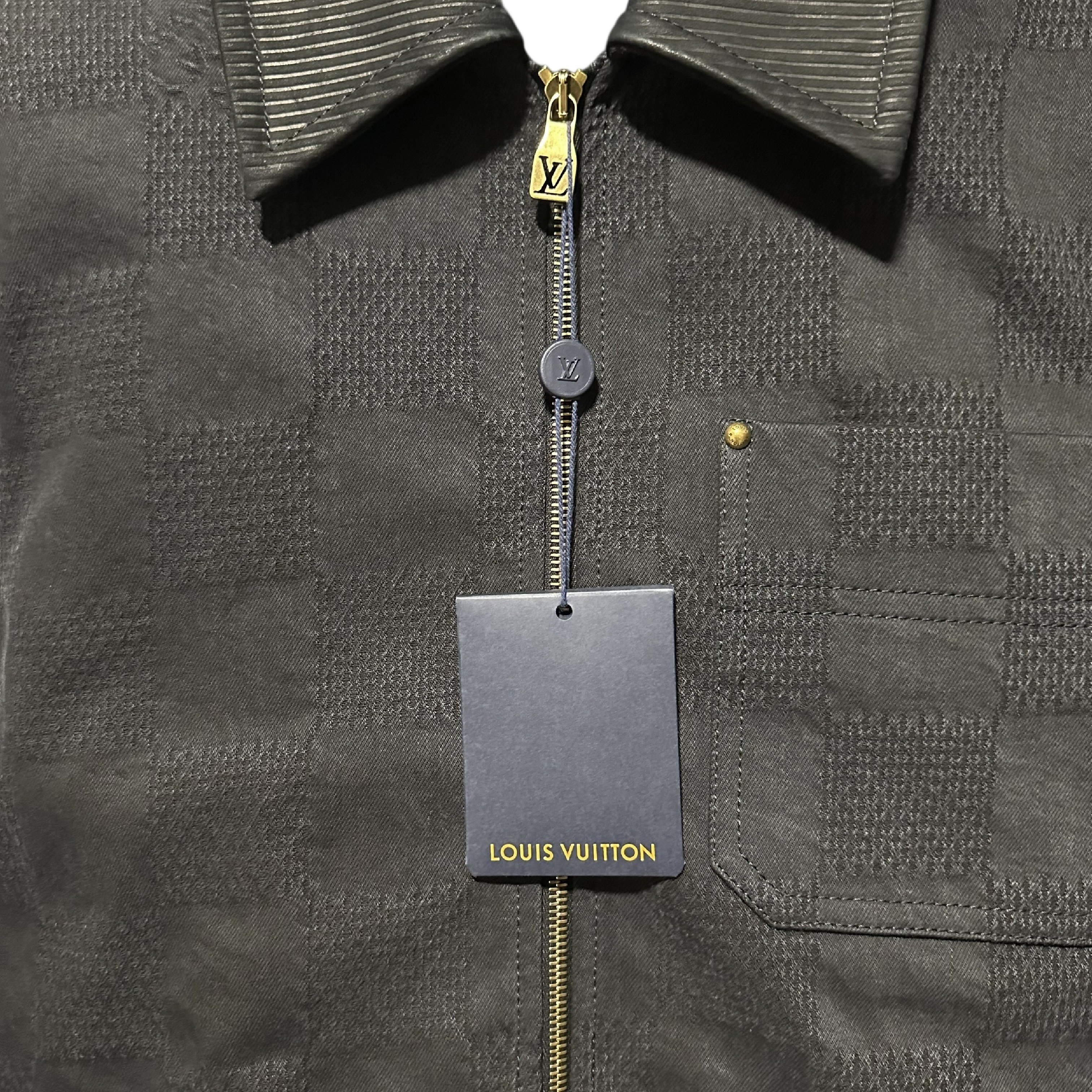 (11937_0520)LOUIS VUITTON レザー切替 ダミエ ワークジャケット ブルゾン ブラック 44 タグ付き ジャケット