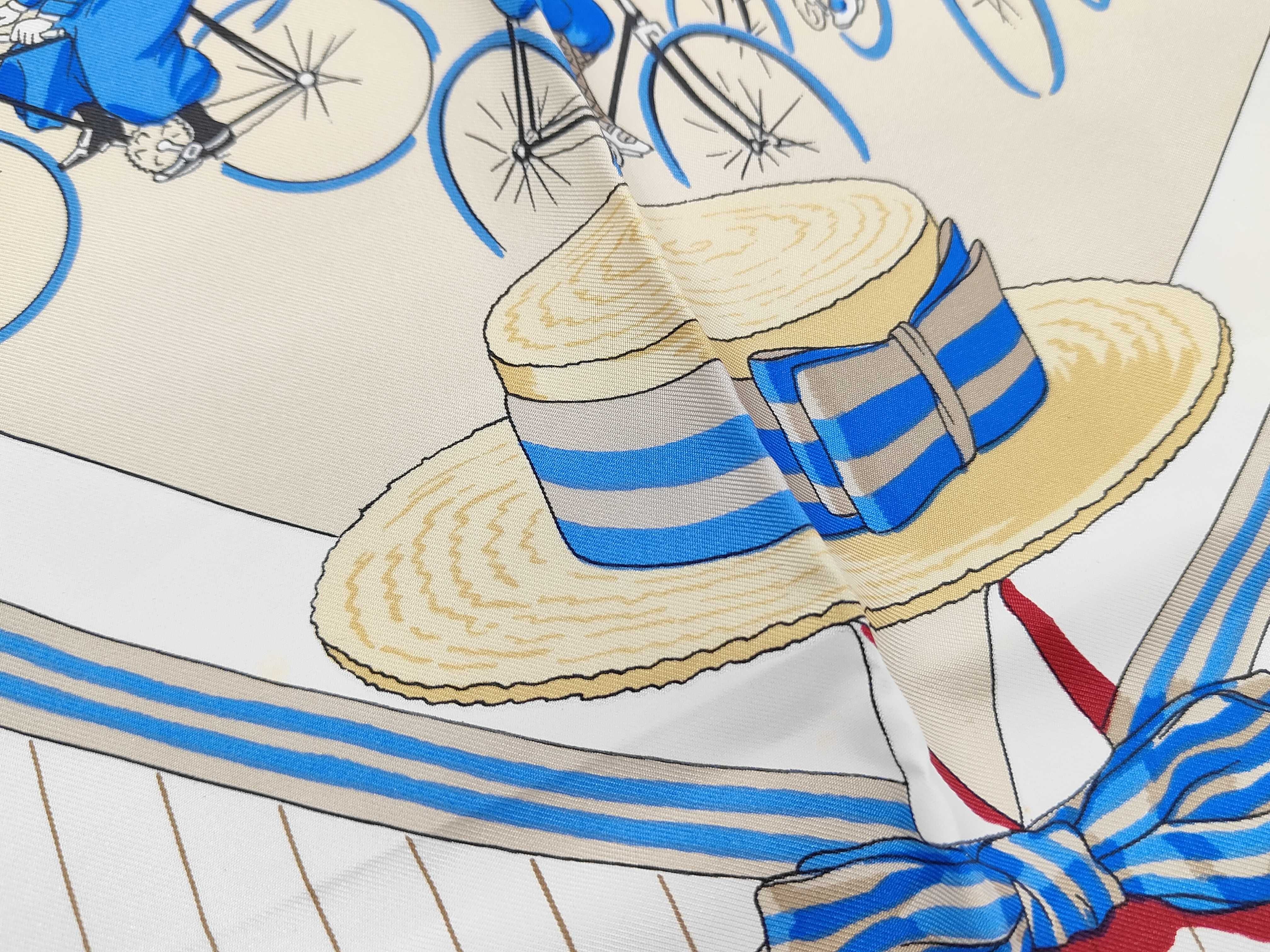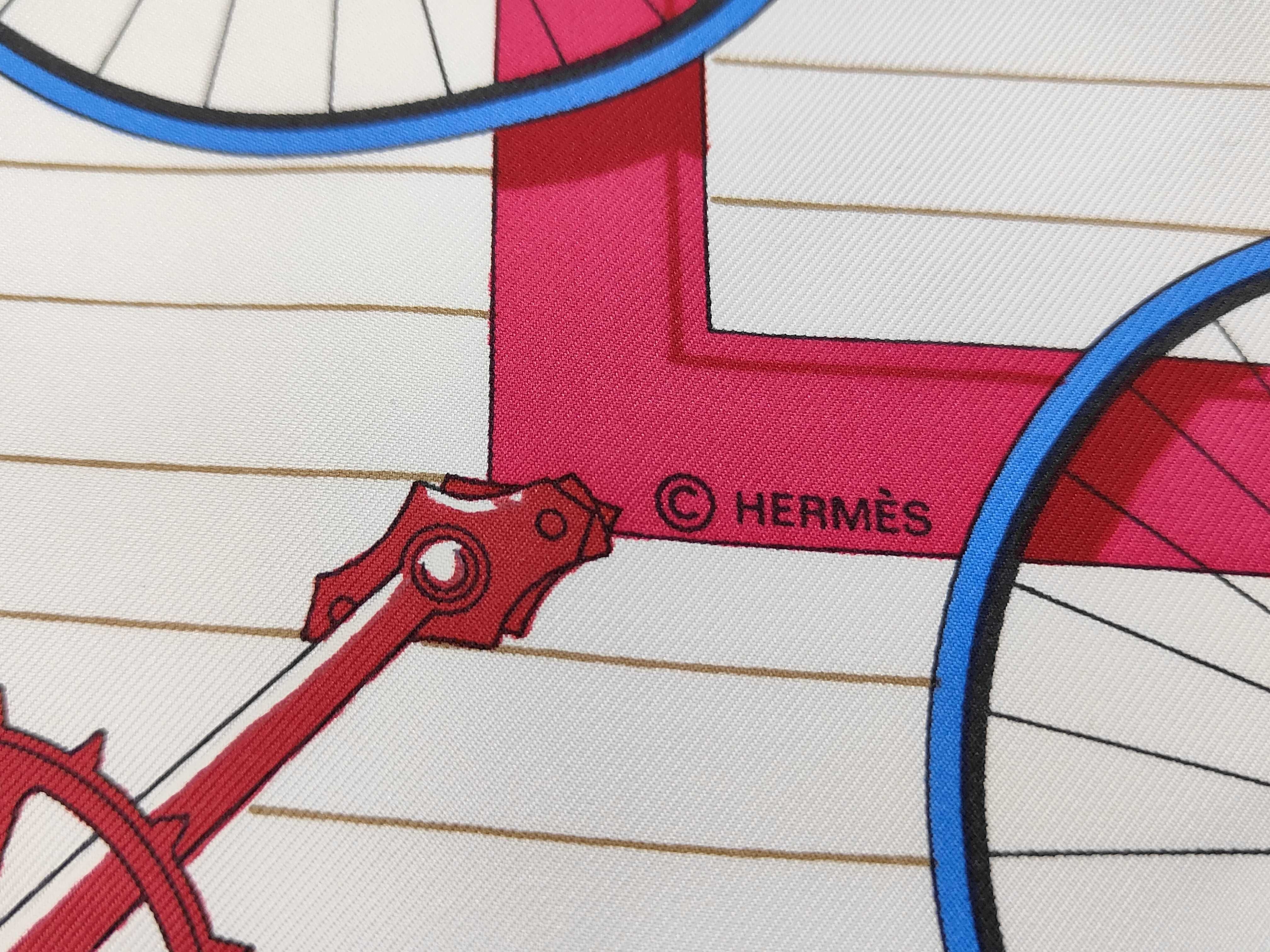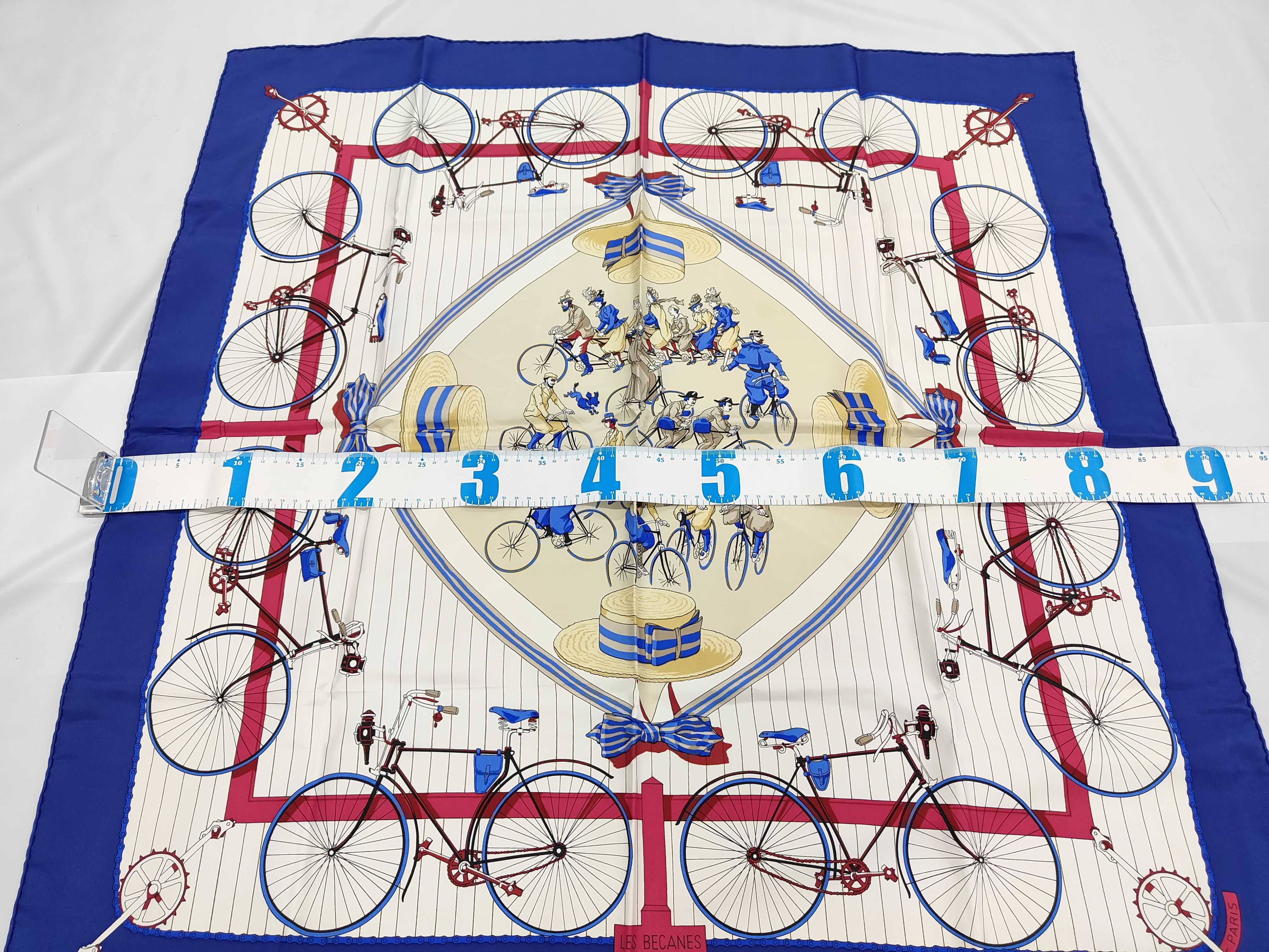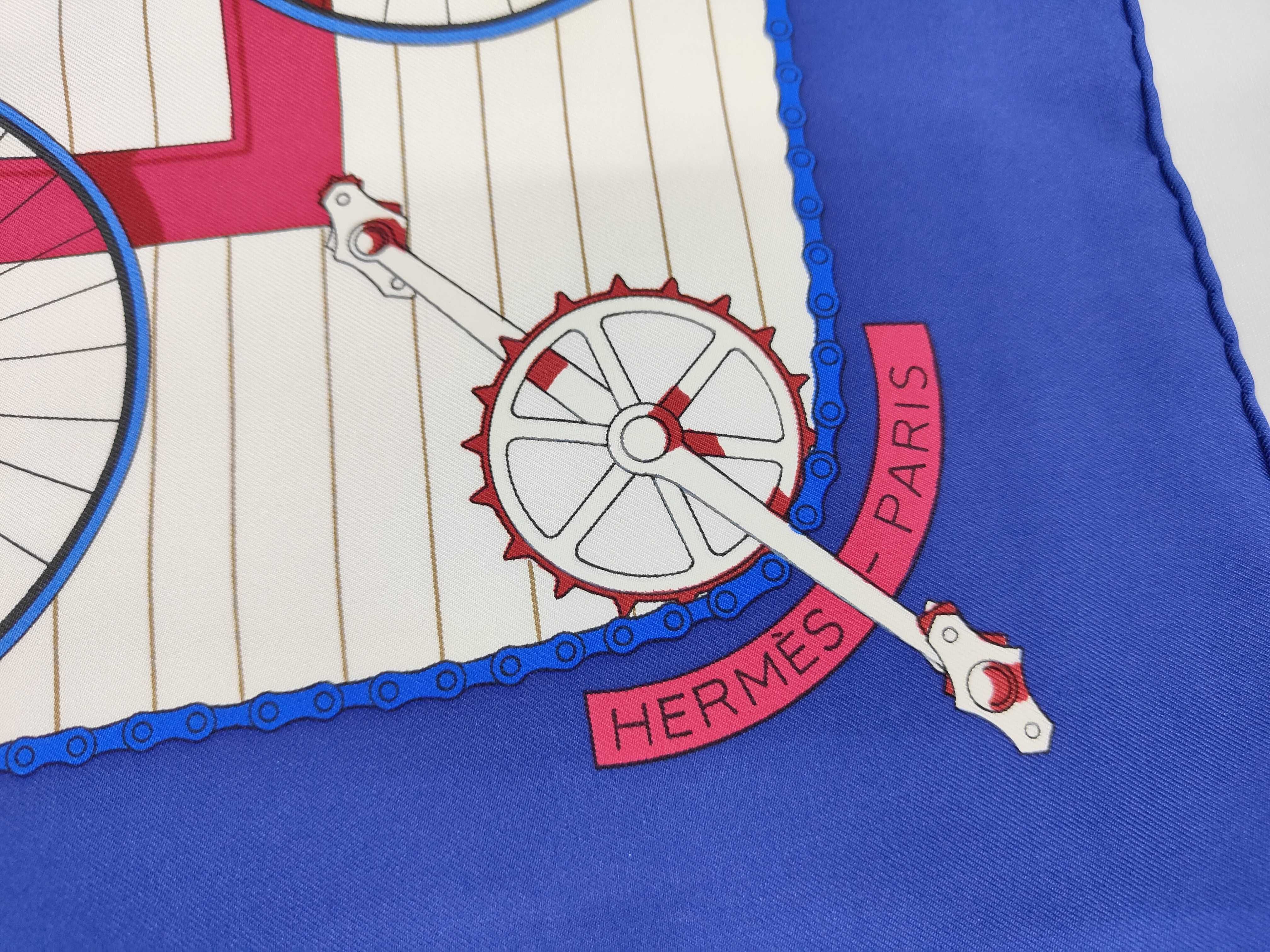 (11937_0558)HERMES カレ カレ LES BECANES 自転車モチーフ スカーフ