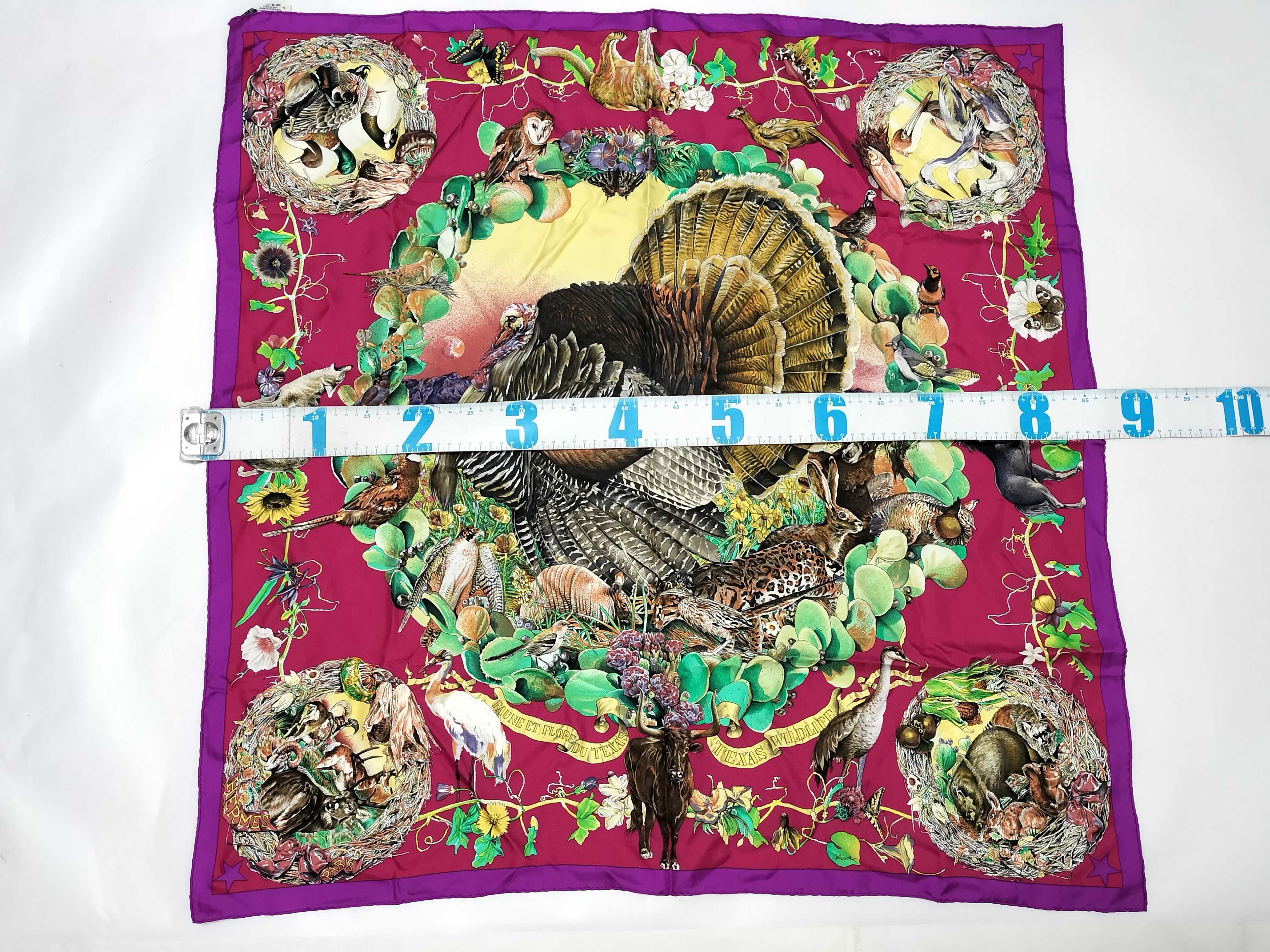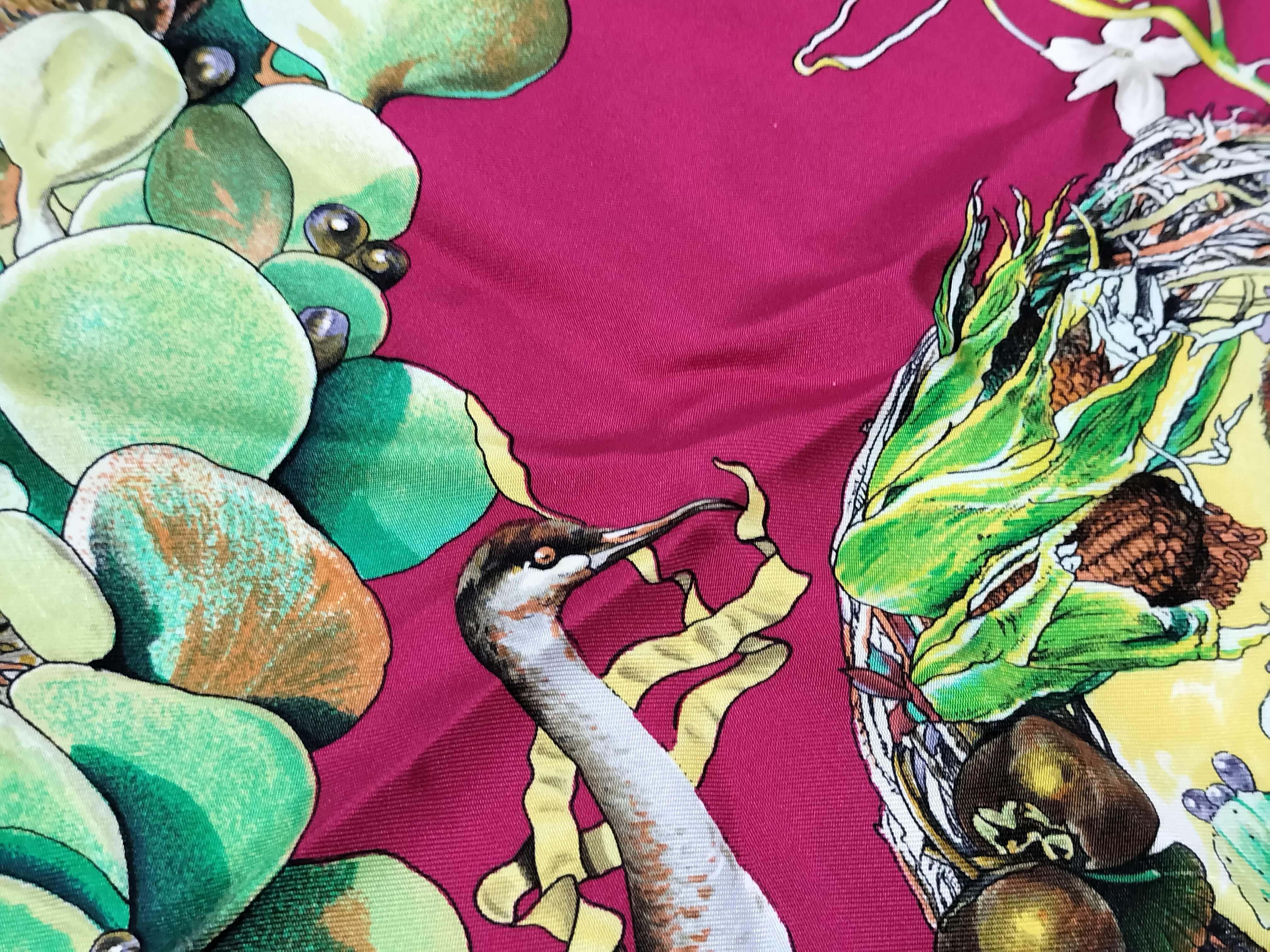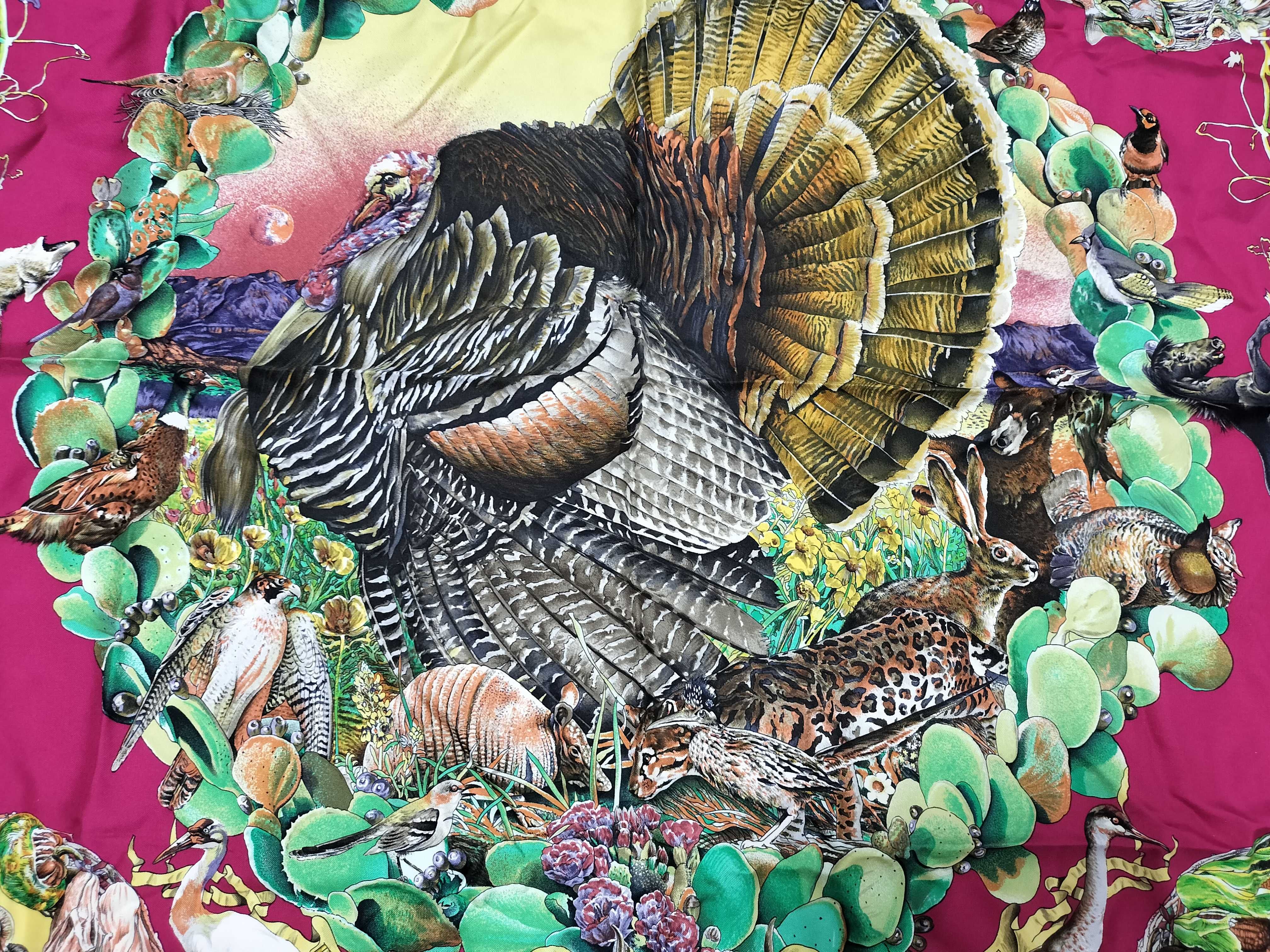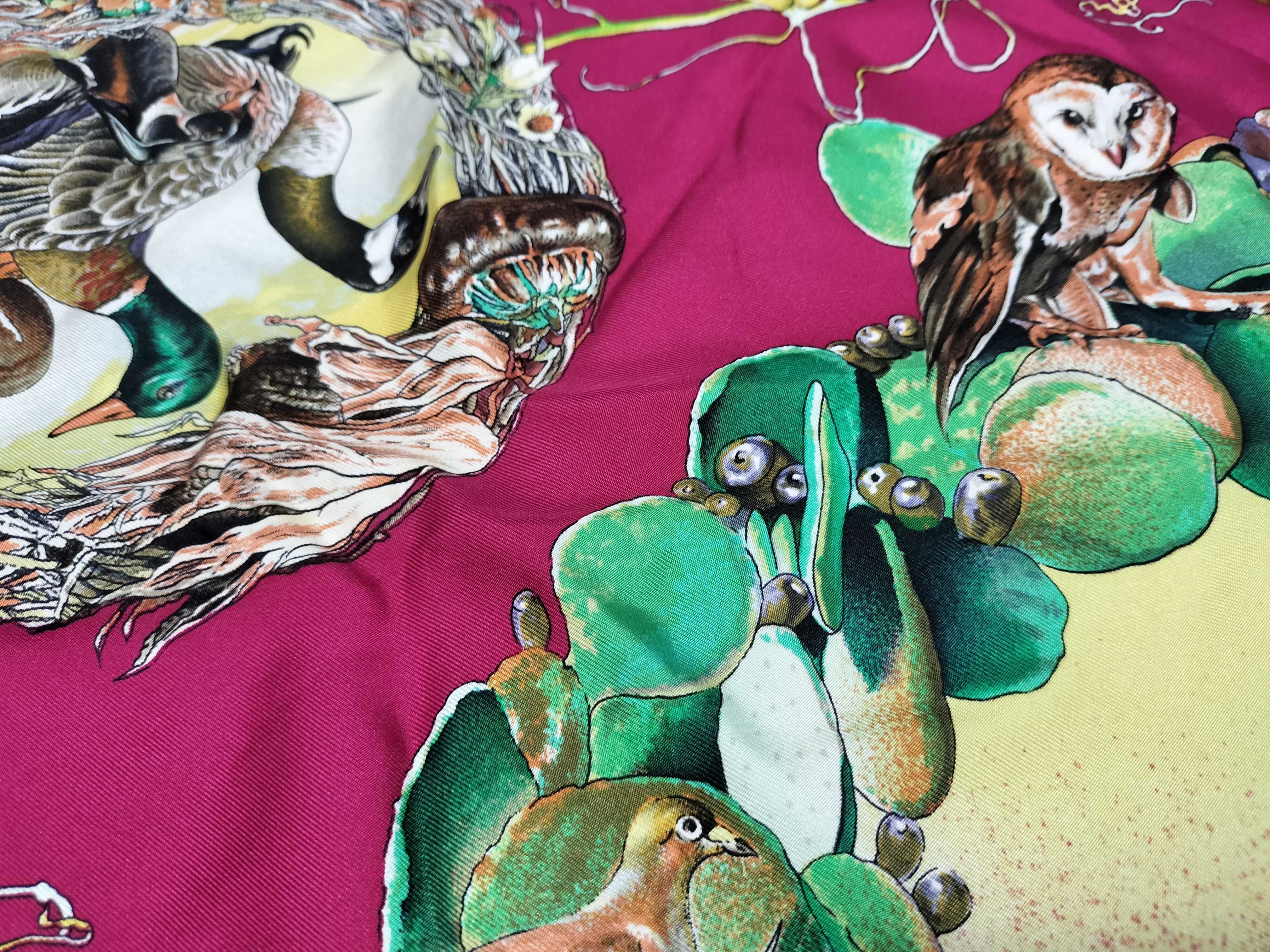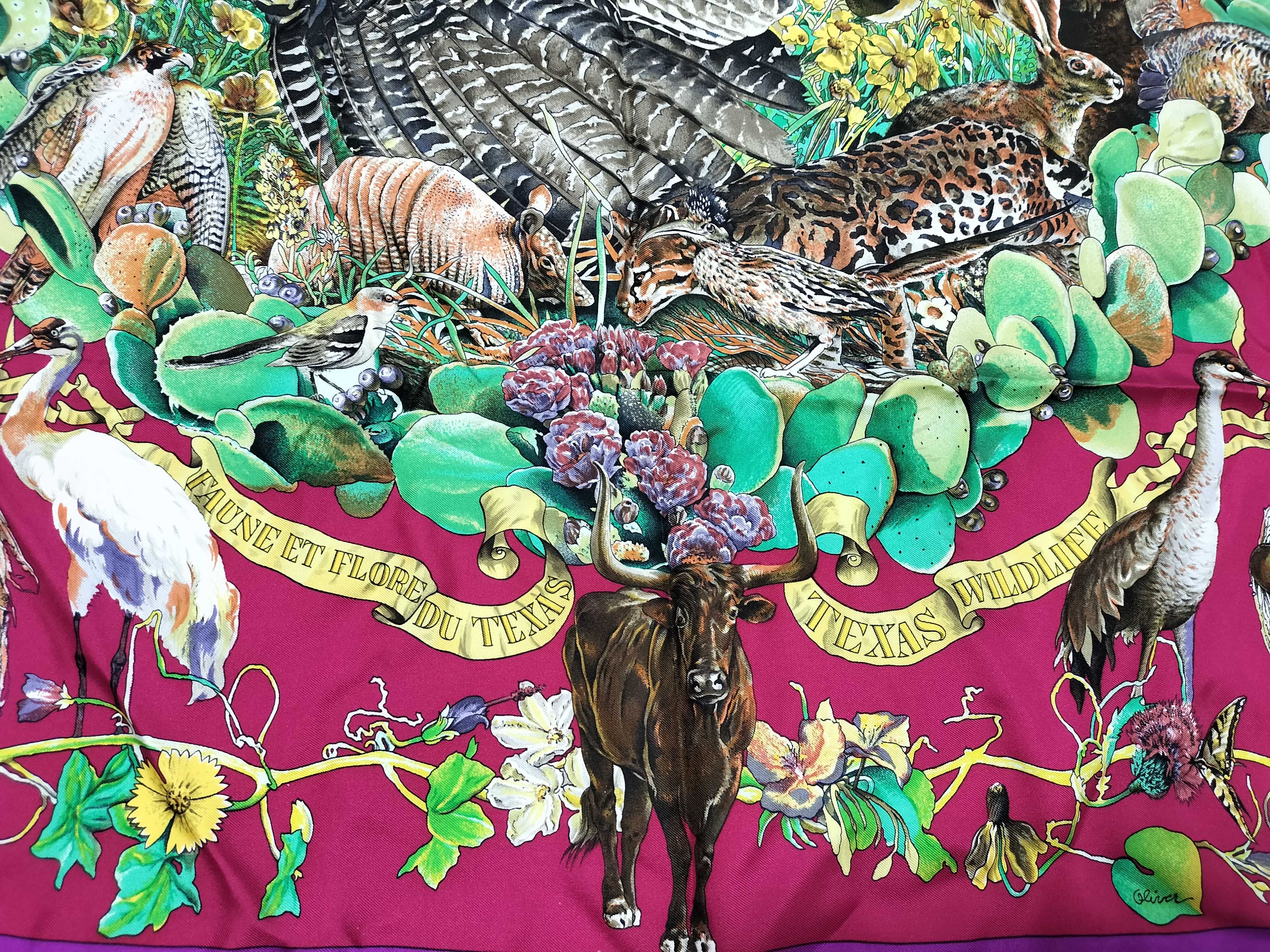 (11937_0597)HERMES カレ テキサス動植物図鑑 スカーフ