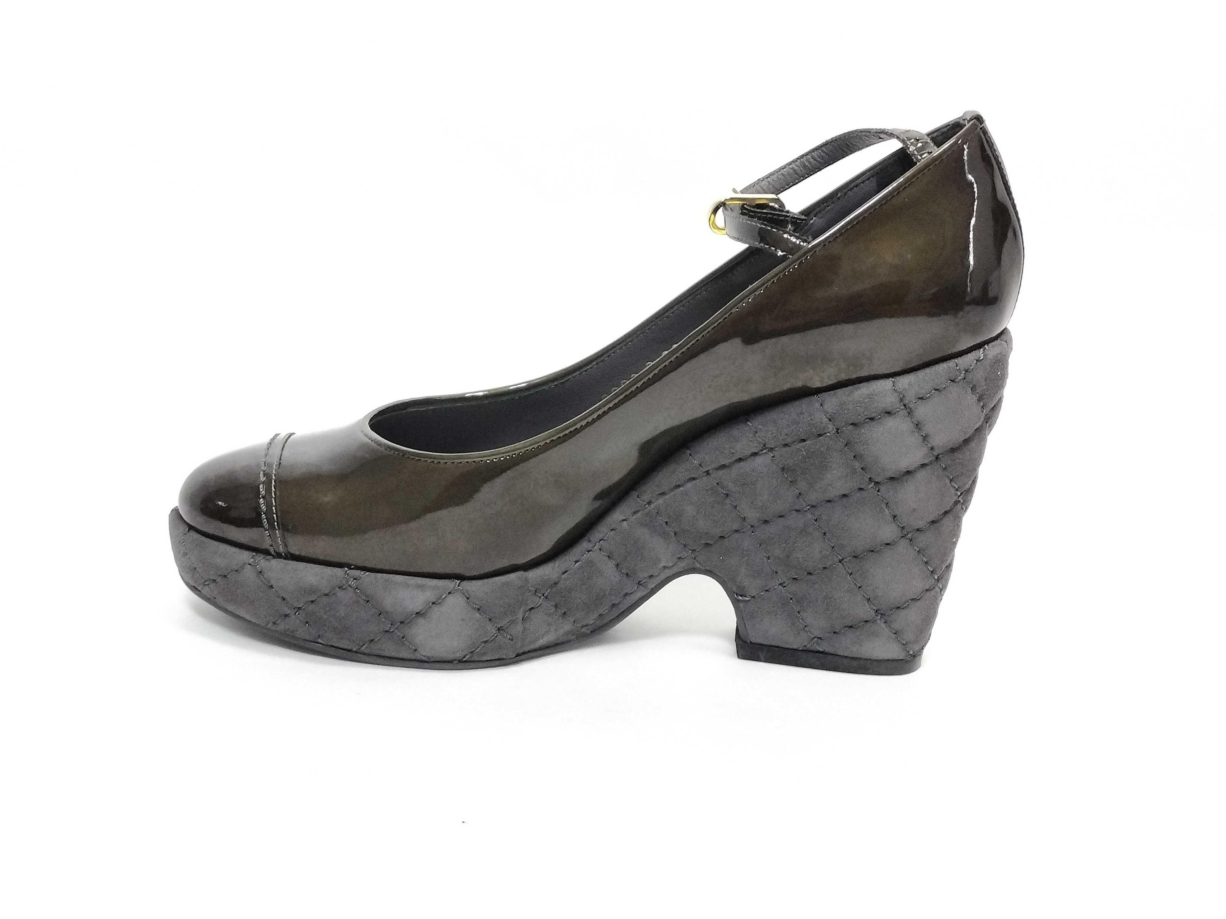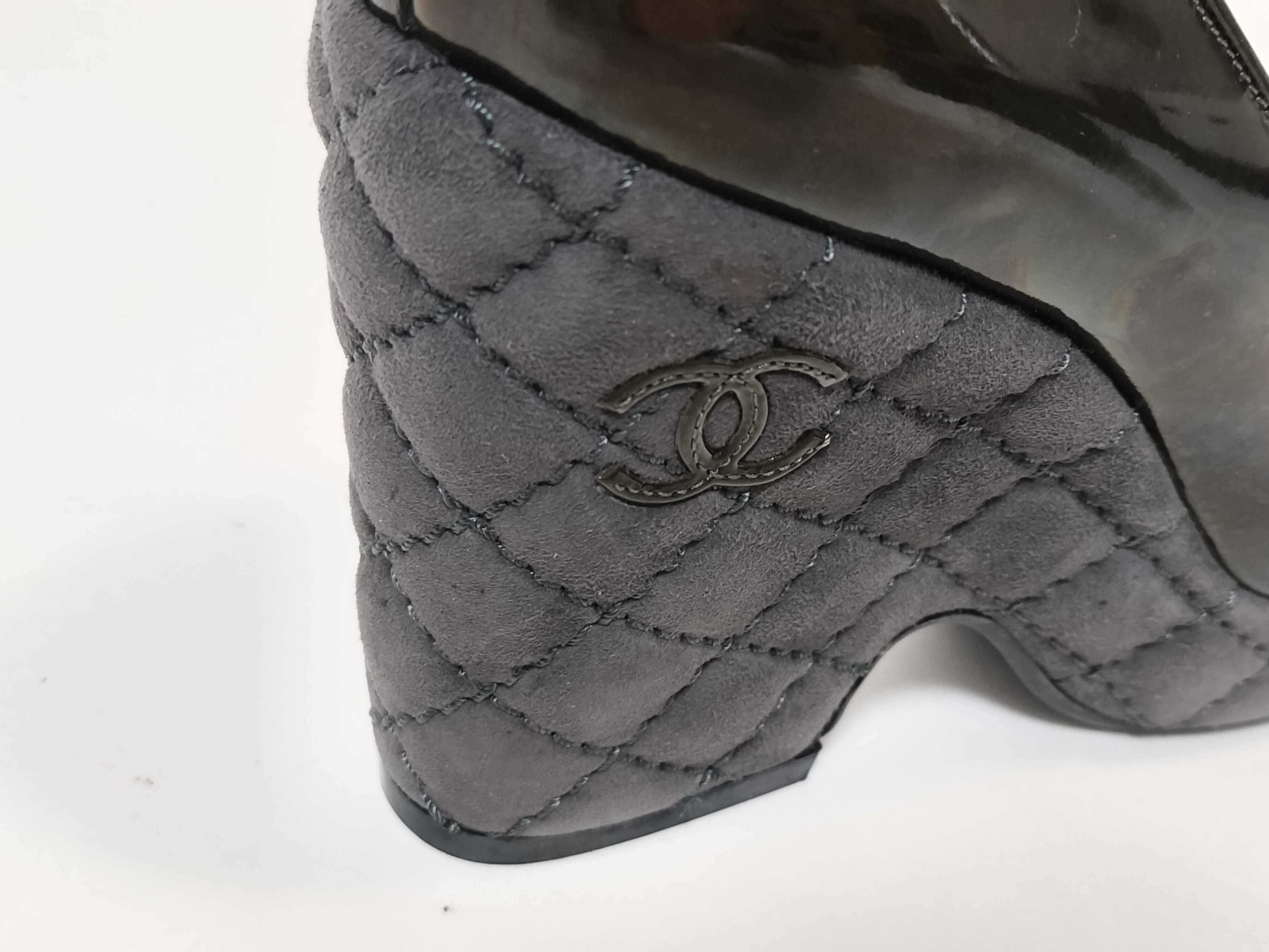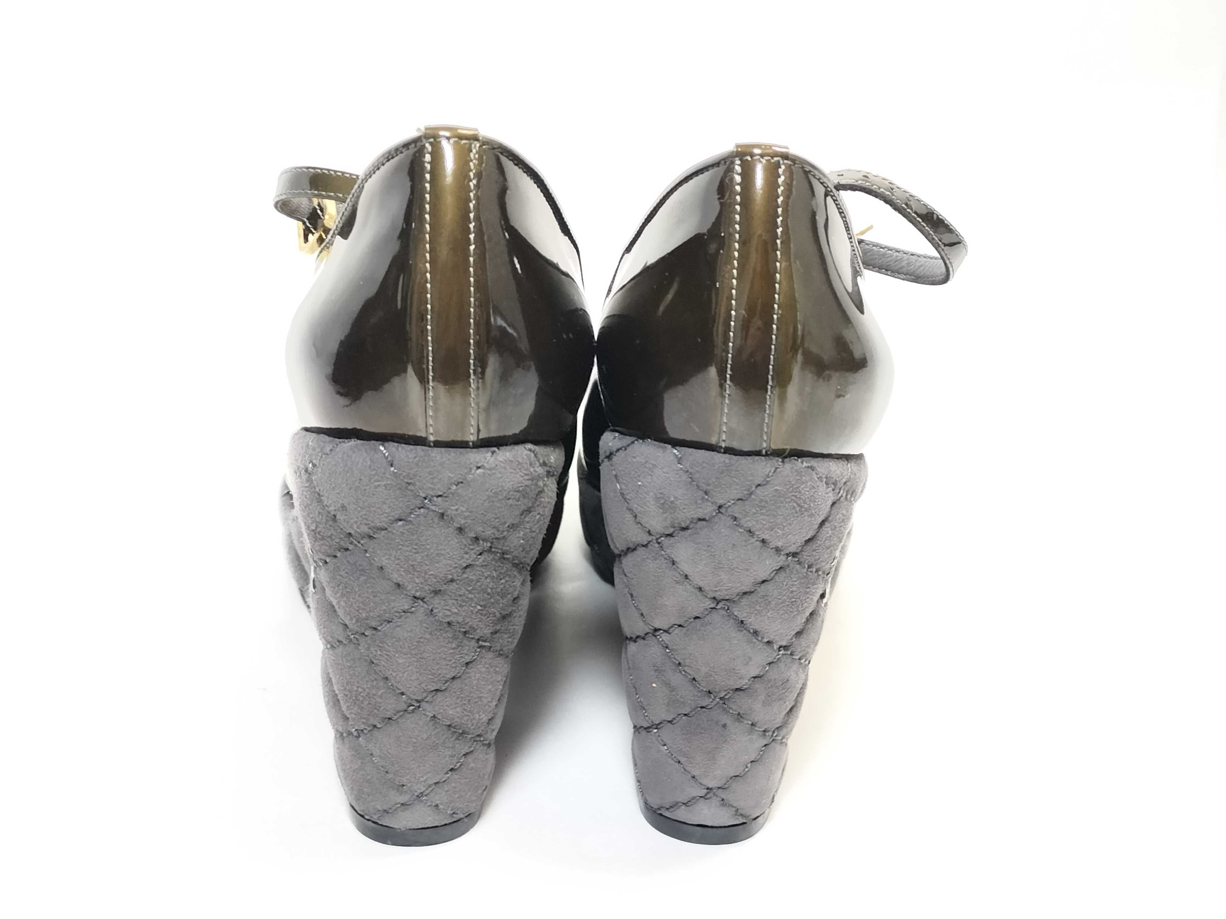 (11937_0635)CHANEL マトラッセ ココーマーク エナメル 厚底 ヒール パンプス