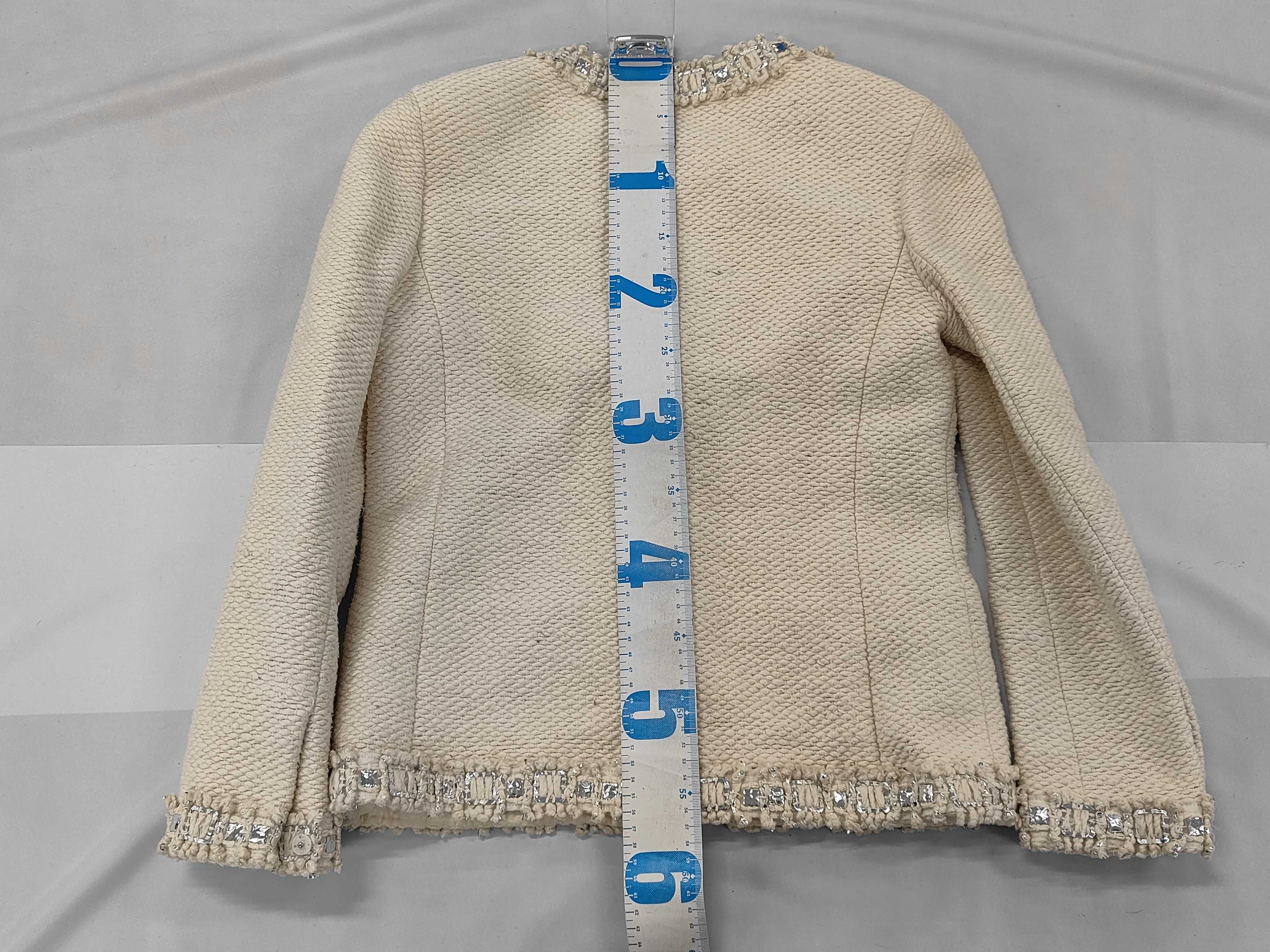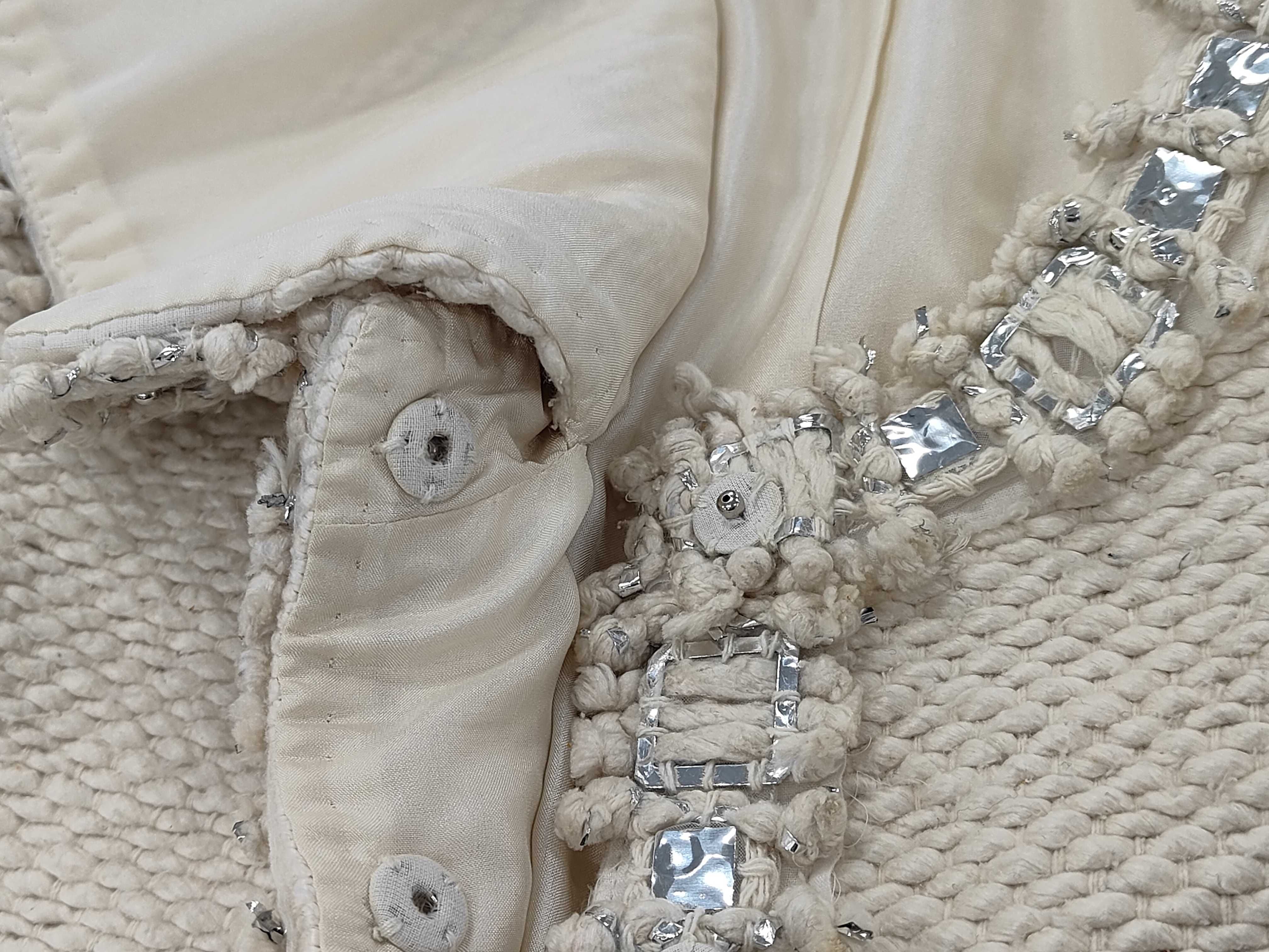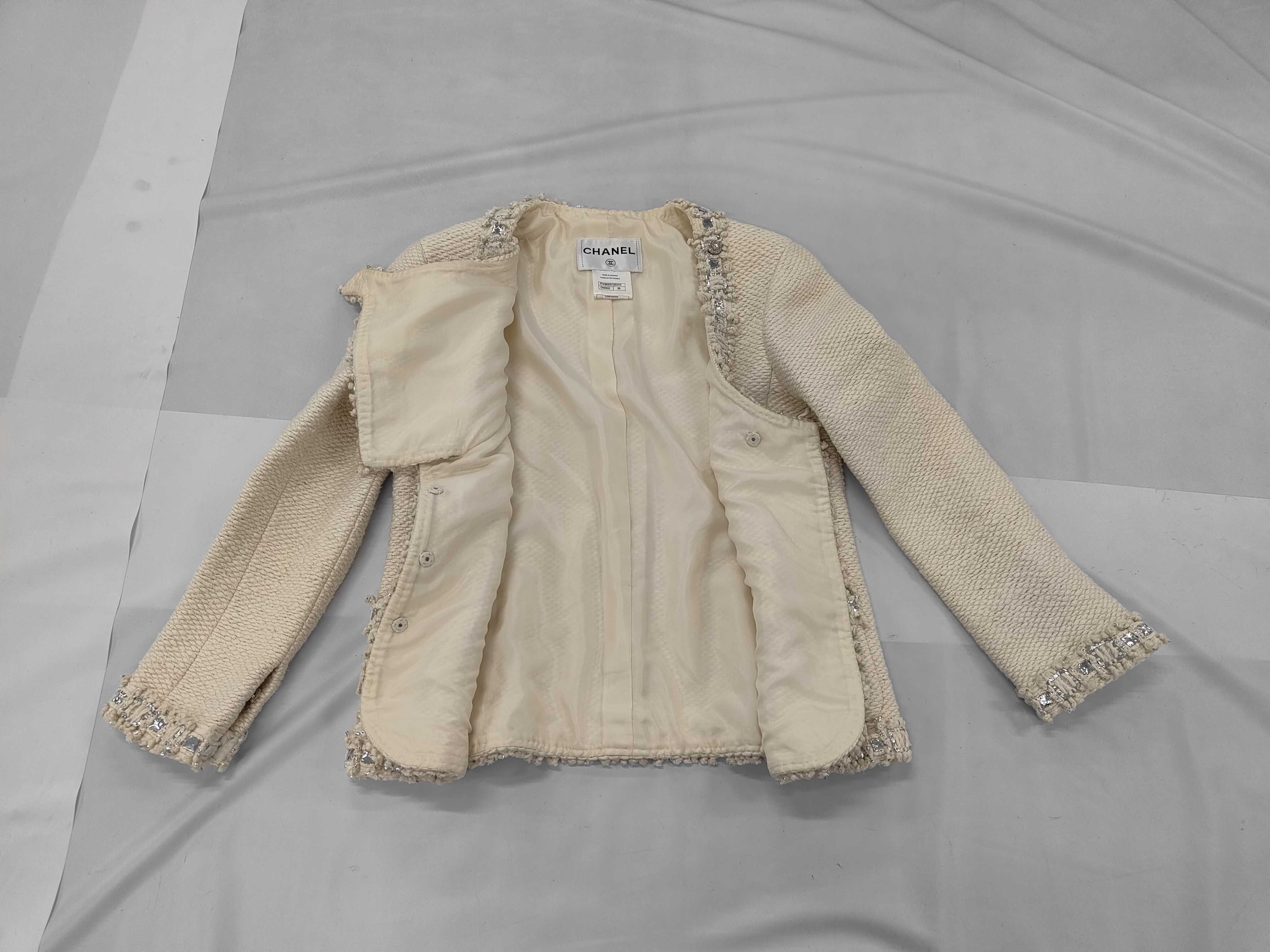 (11937_0641)CHANEL シャネル ビジュー シルク100% ツイード ノーカラージャケット サイズ38 ジャケット
