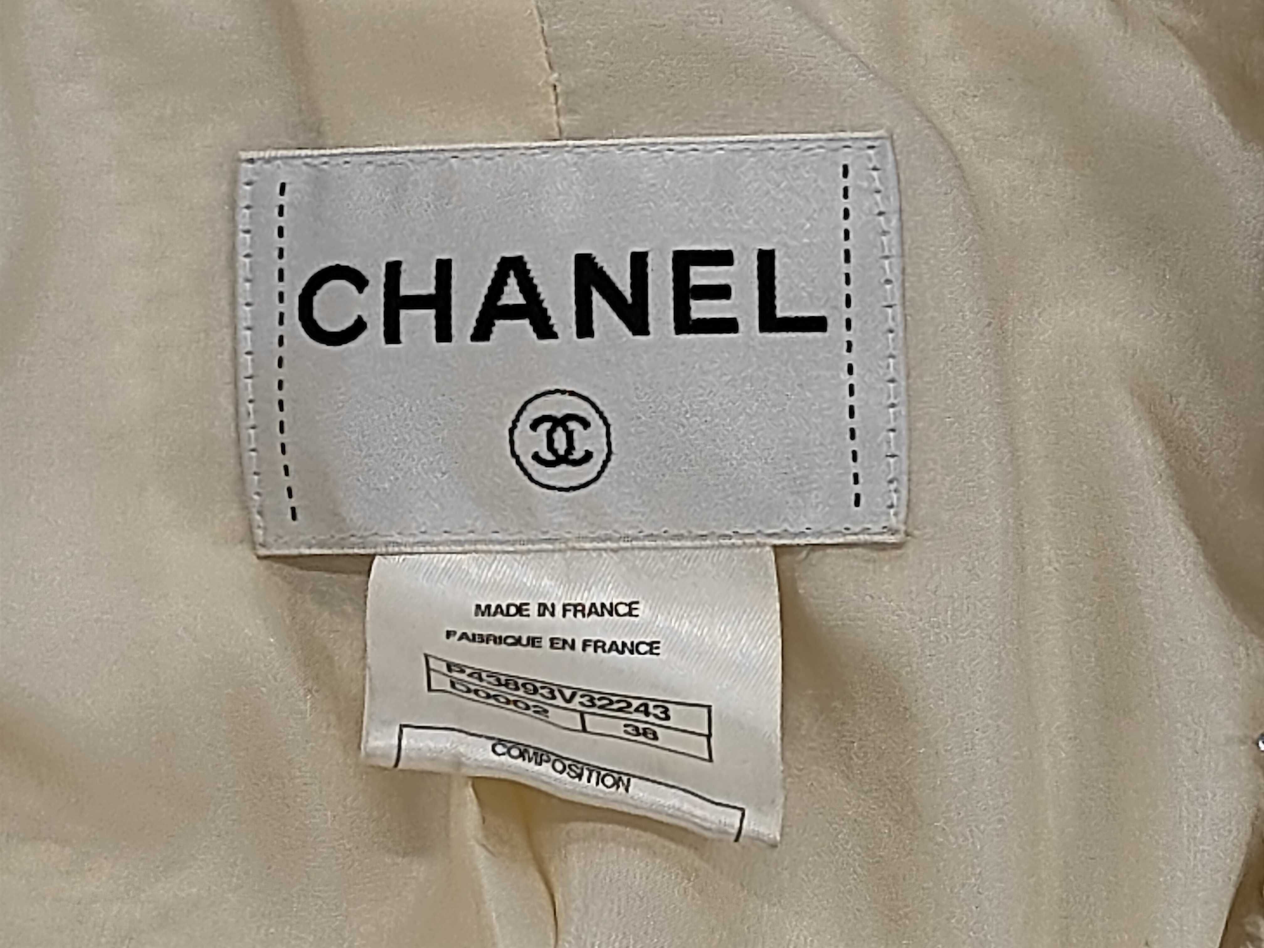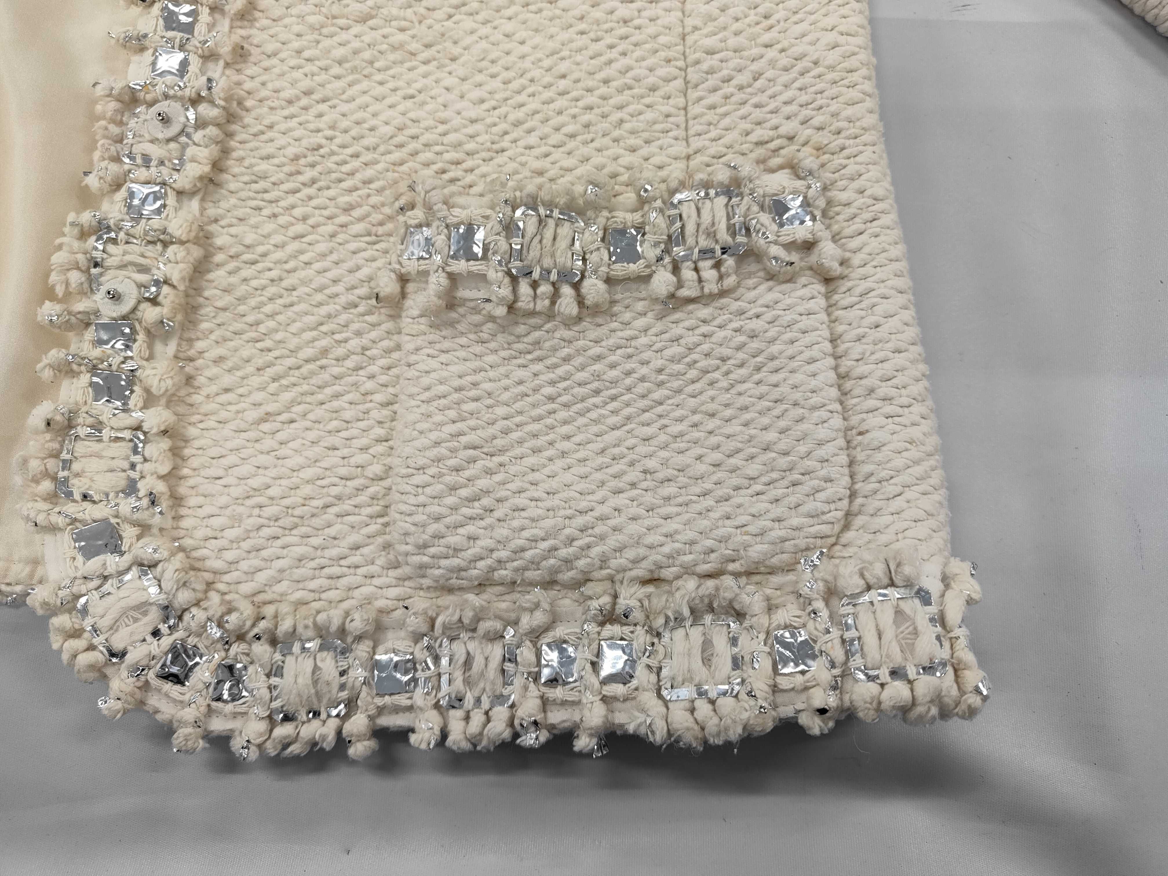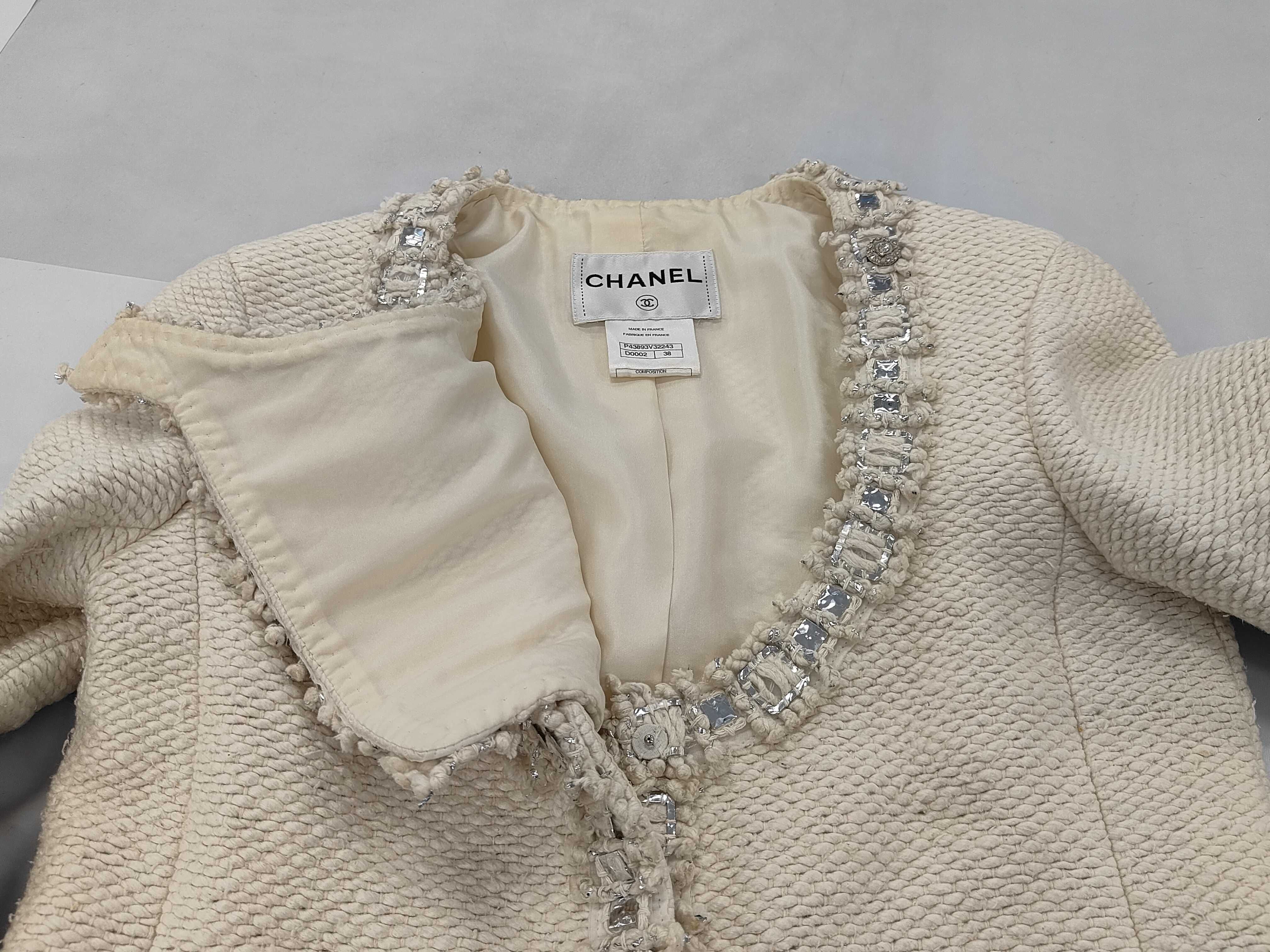 (11937_0641)CHANEL シャネル ビジュー シルク100% ツイード ノーカラージャケット サイズ38 ジャケット