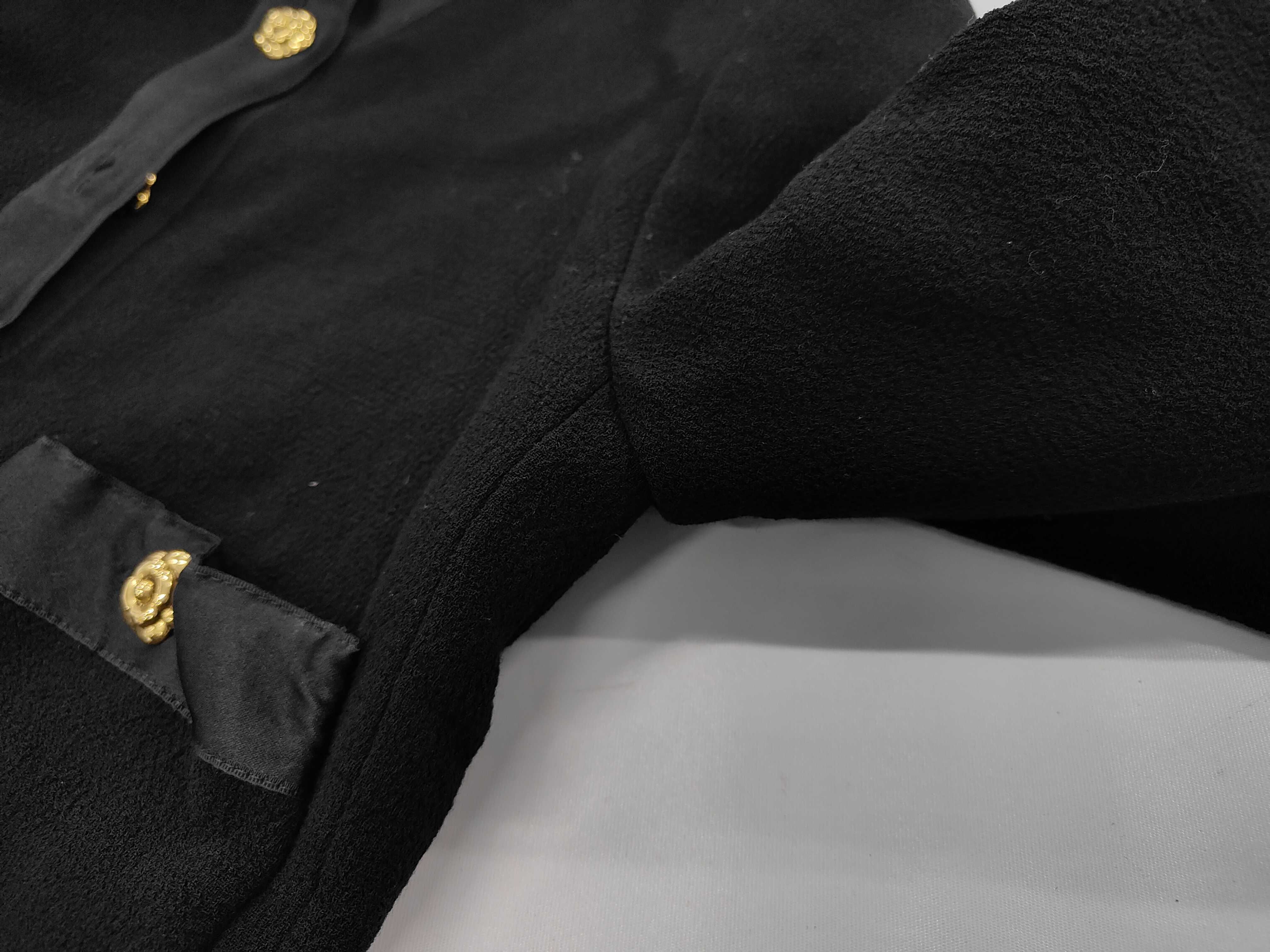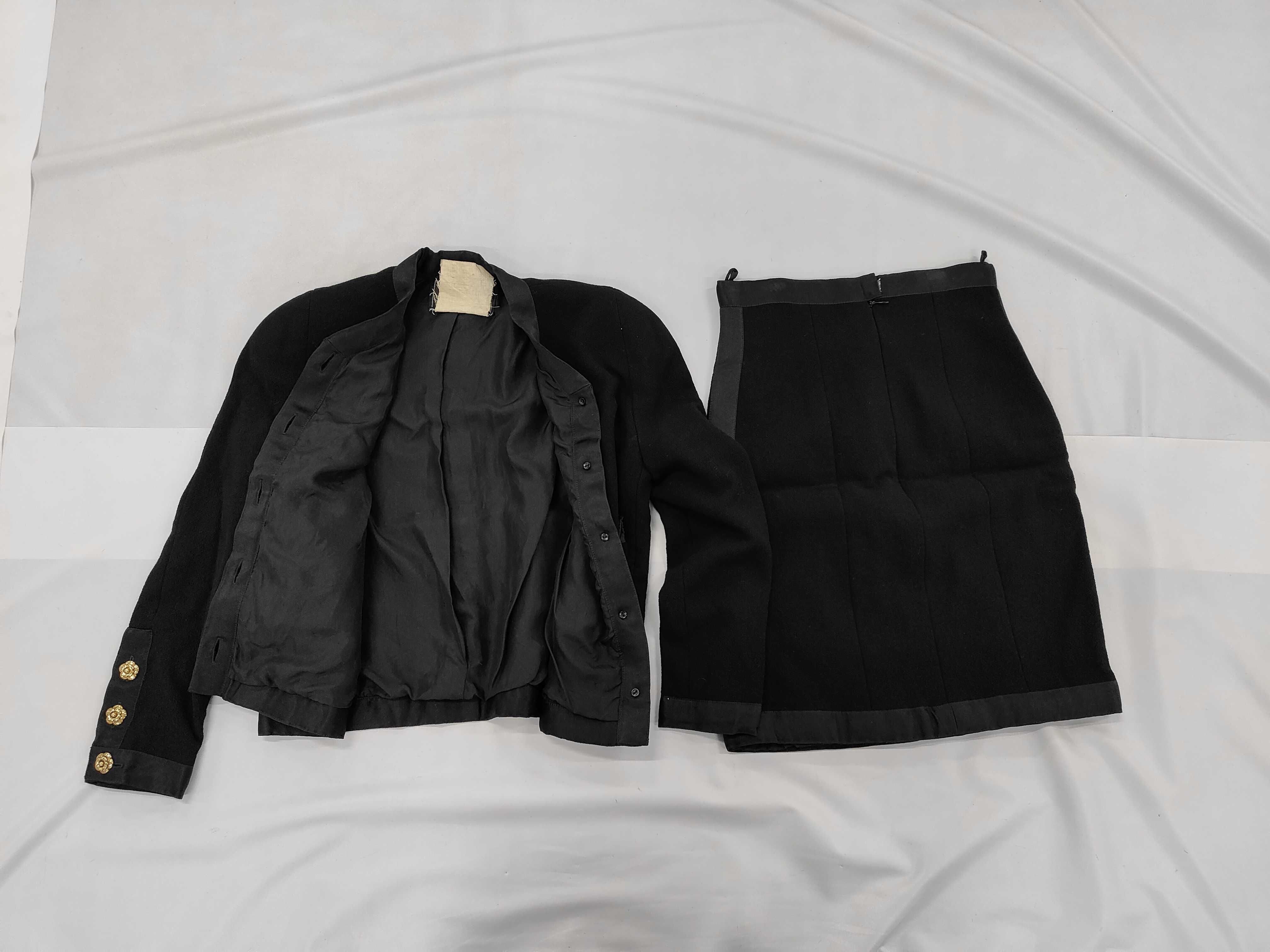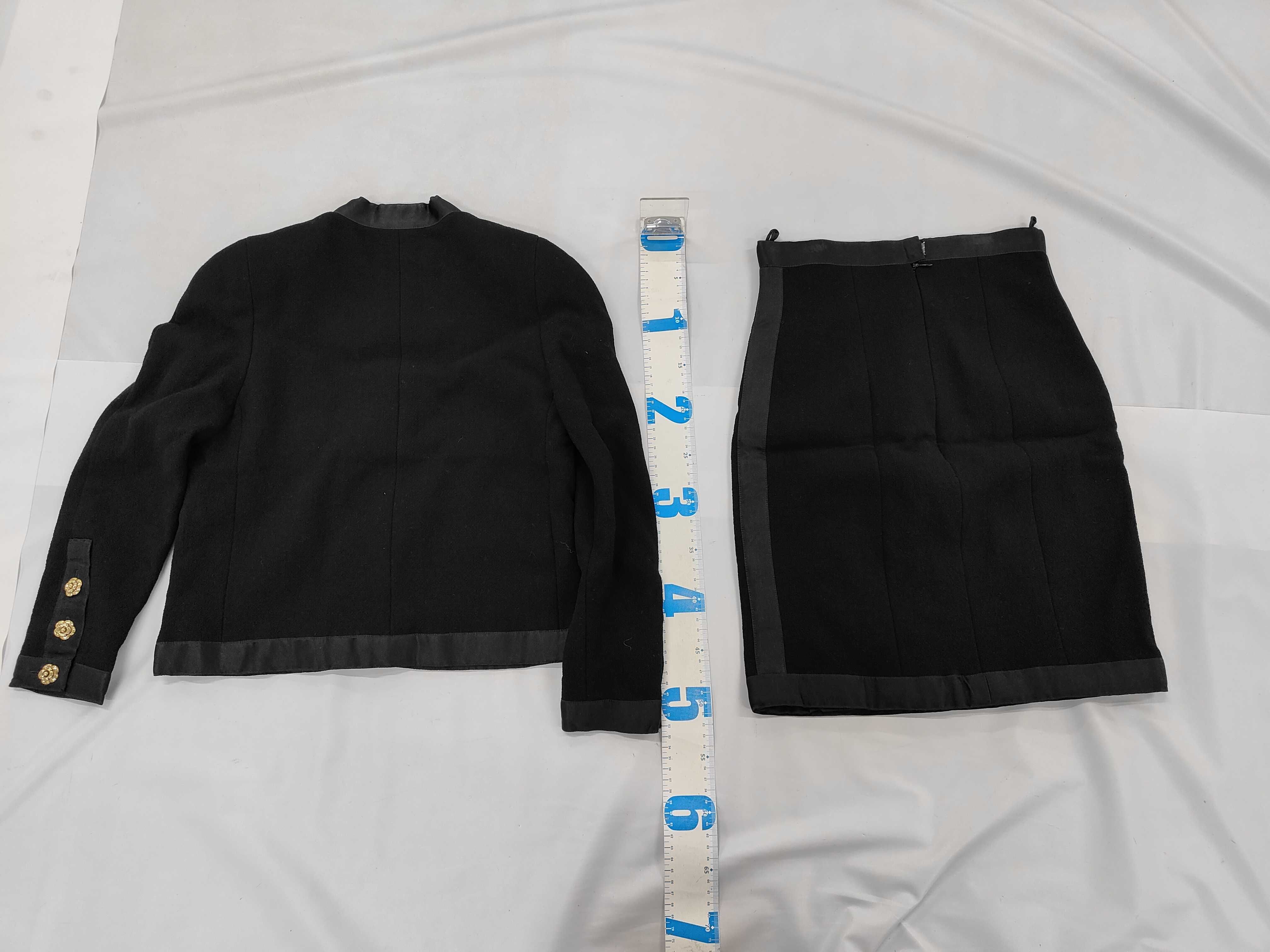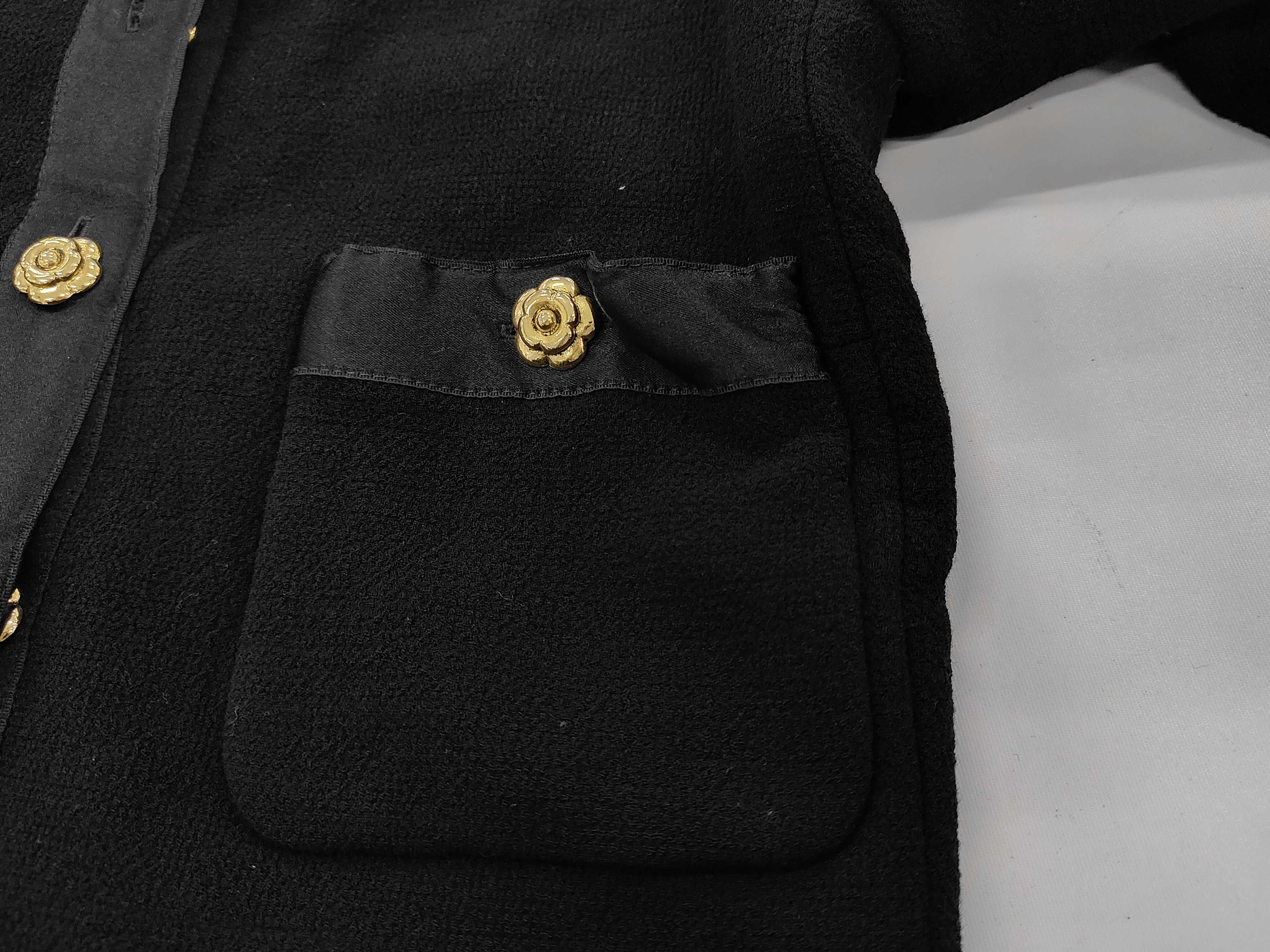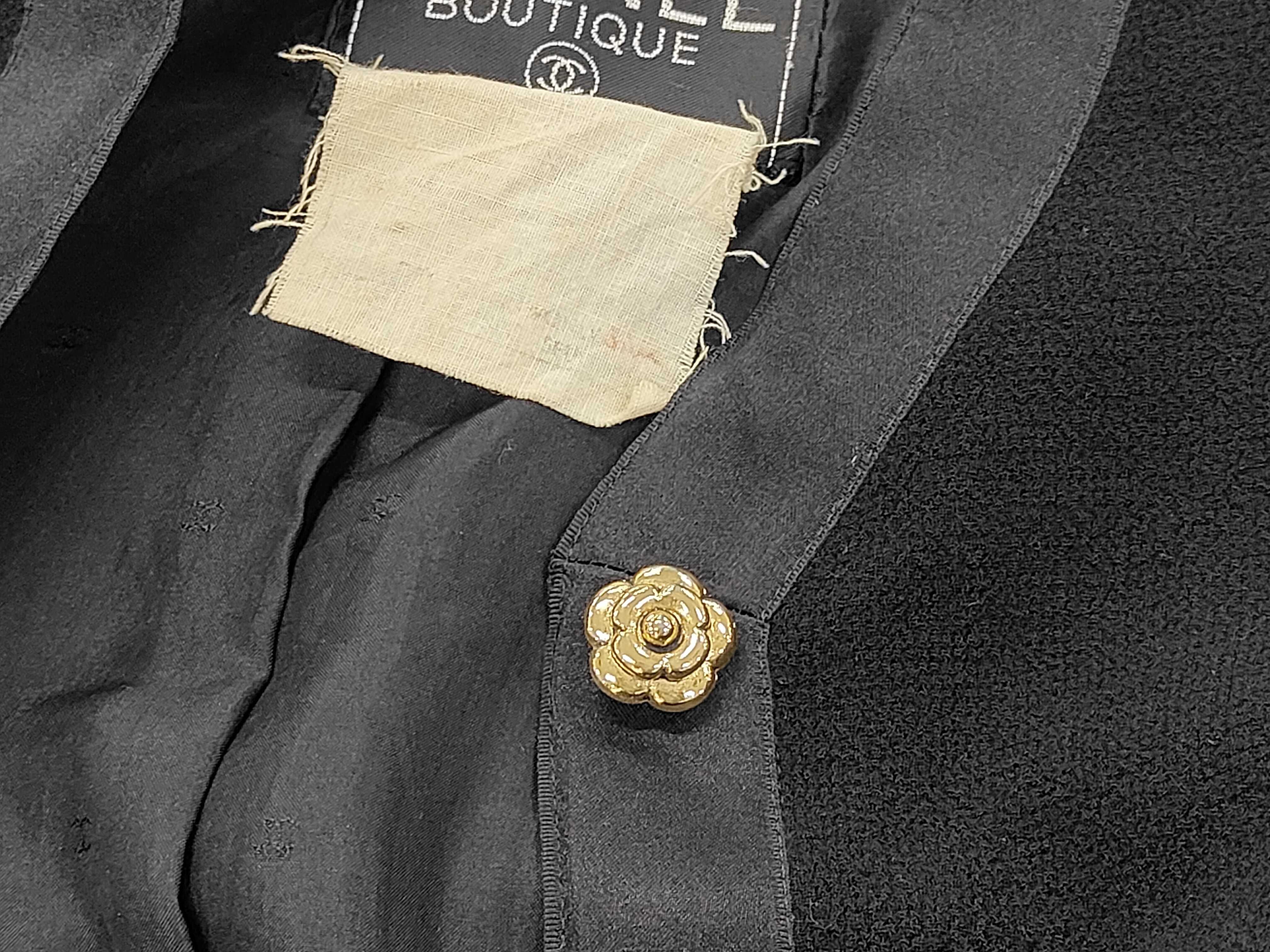 (11937_0644)CHANEL BOUTIQUE カメリアボタン セットアップ ジャケット スカート ブラック サイズ34-36 ジャケット