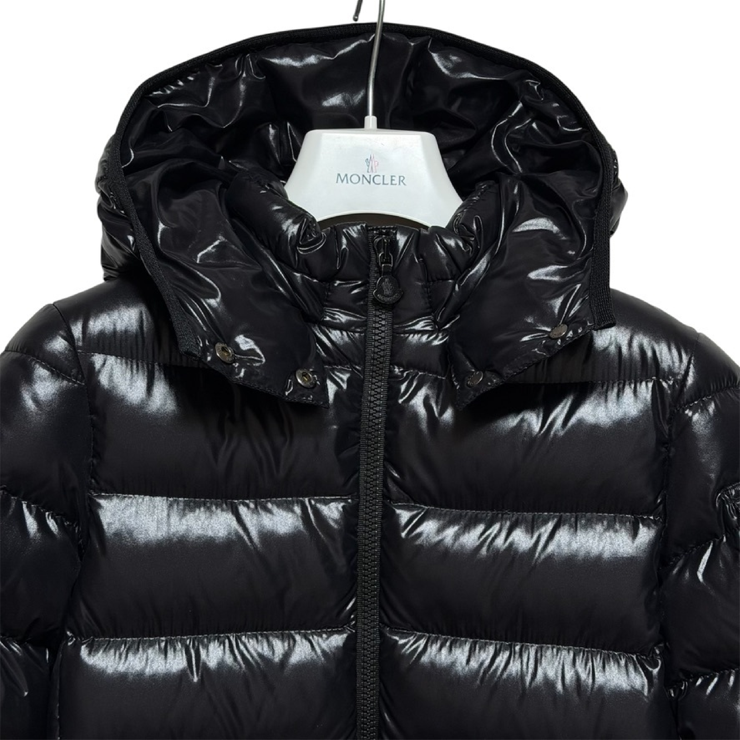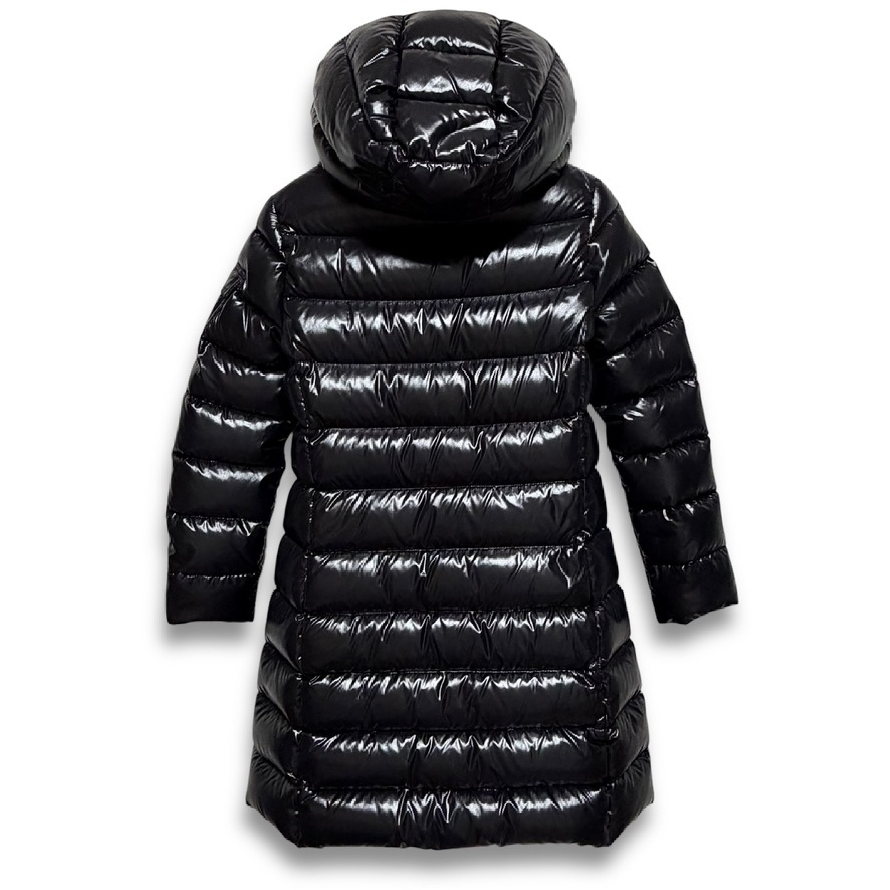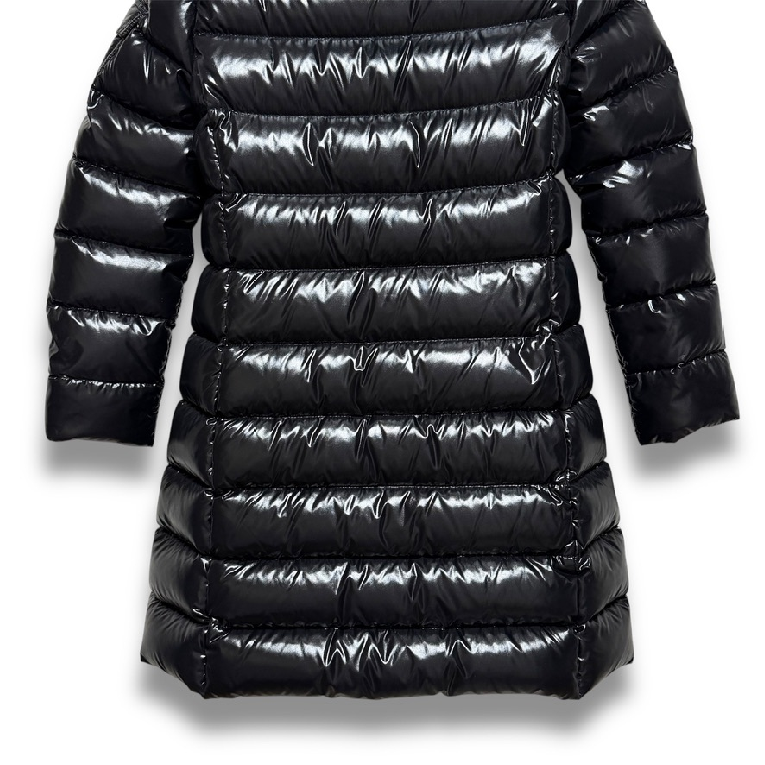 (11937_0961)MONCLER 19AW MOKA ロングダウン モカ 10A 140cm 999 / シャイニーブラック ジュニア 大人着用可 サイズ10 anni / 140cm 肩36cm×袖51cm×身幅42cm×着丈76 ジャケット