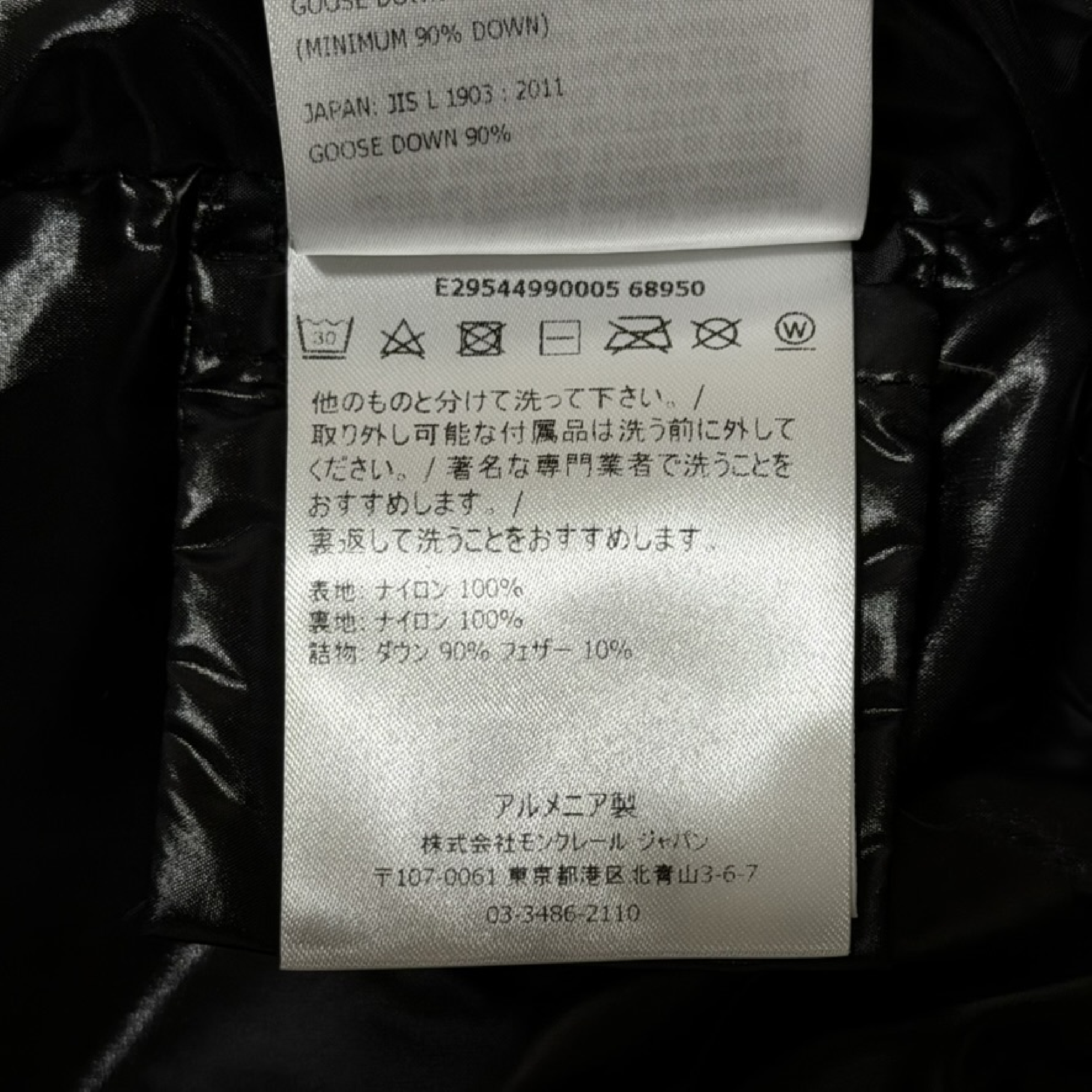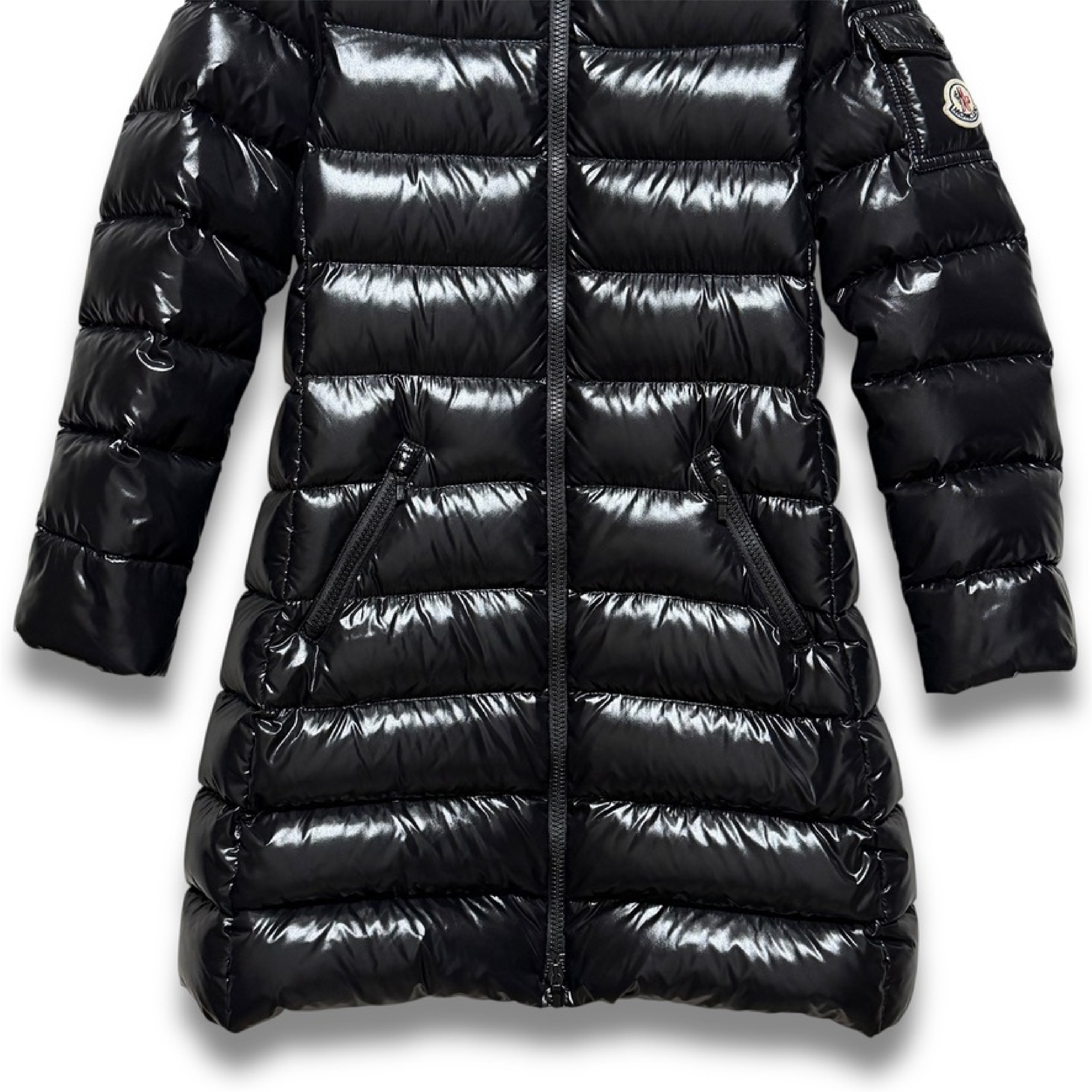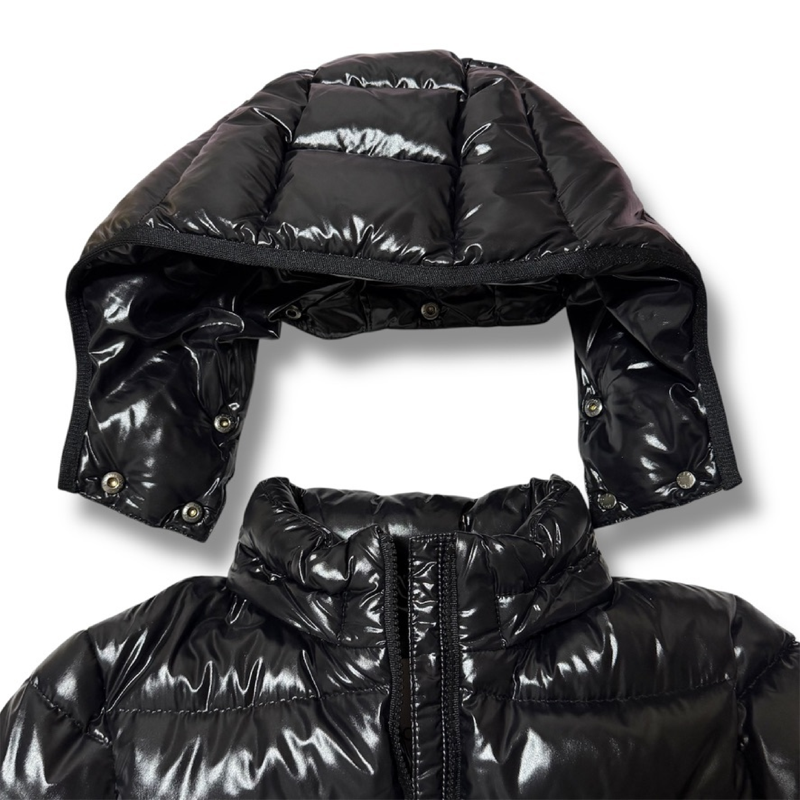 (11937_0961)MONCLER 19AW MOKA ロングダウン モカ 10A 140cm 999 / シャイニーブラック ジュニア 大人着用可 サイズ10 anni / 140cm 肩36cm×袖51cm×身幅42cm×着丈76 ジャケット