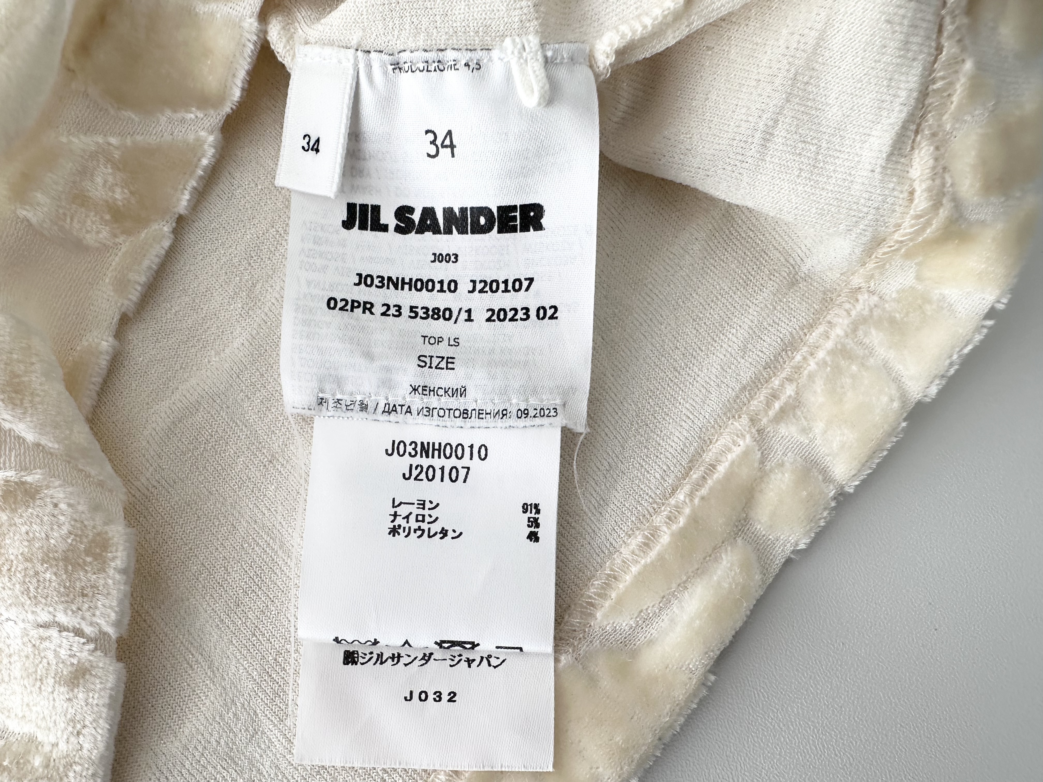 (11937_1007)JILSANDER JIL SANDER ジルサンダー フロッキープリントトップス カットソー アイボリー 34サイズ トップス