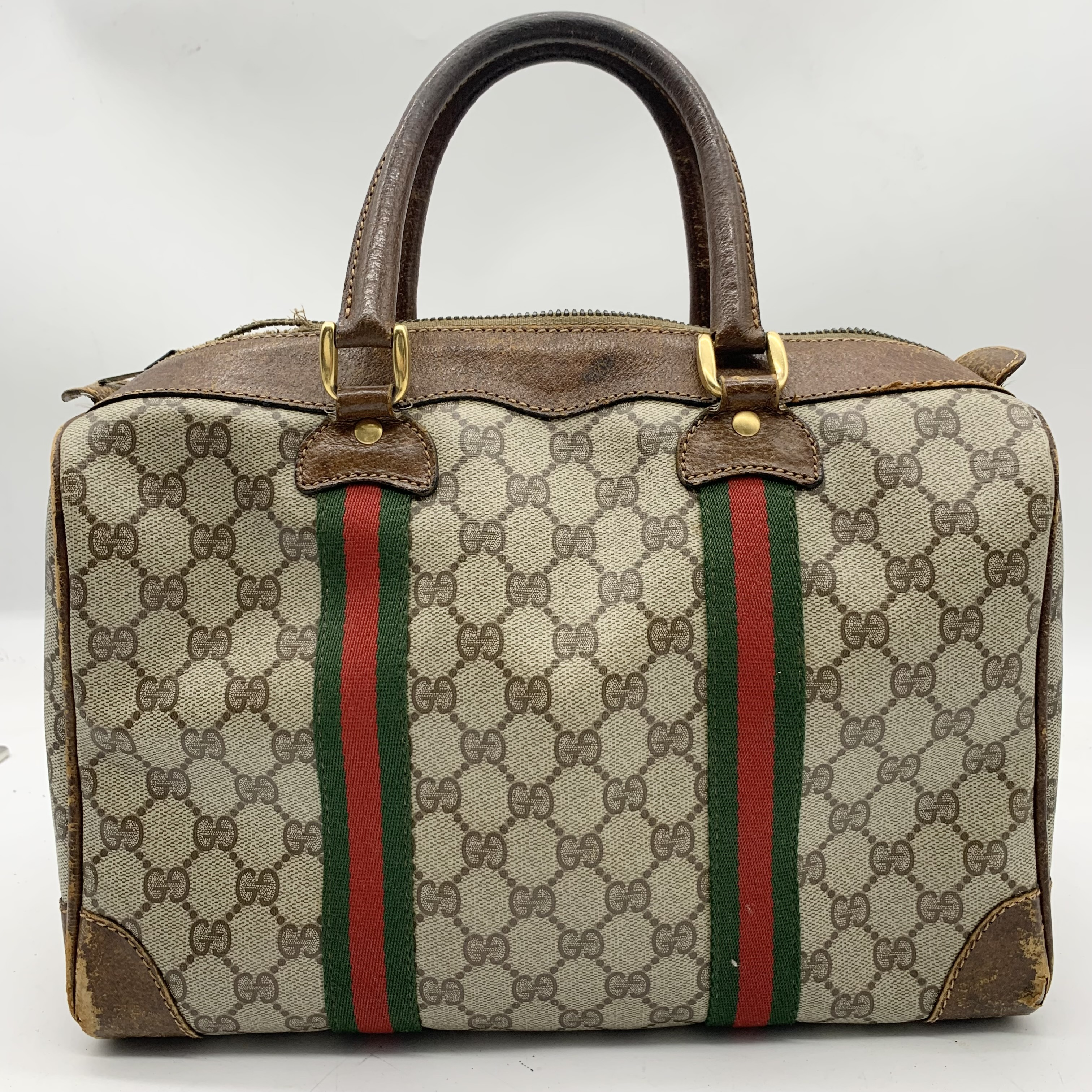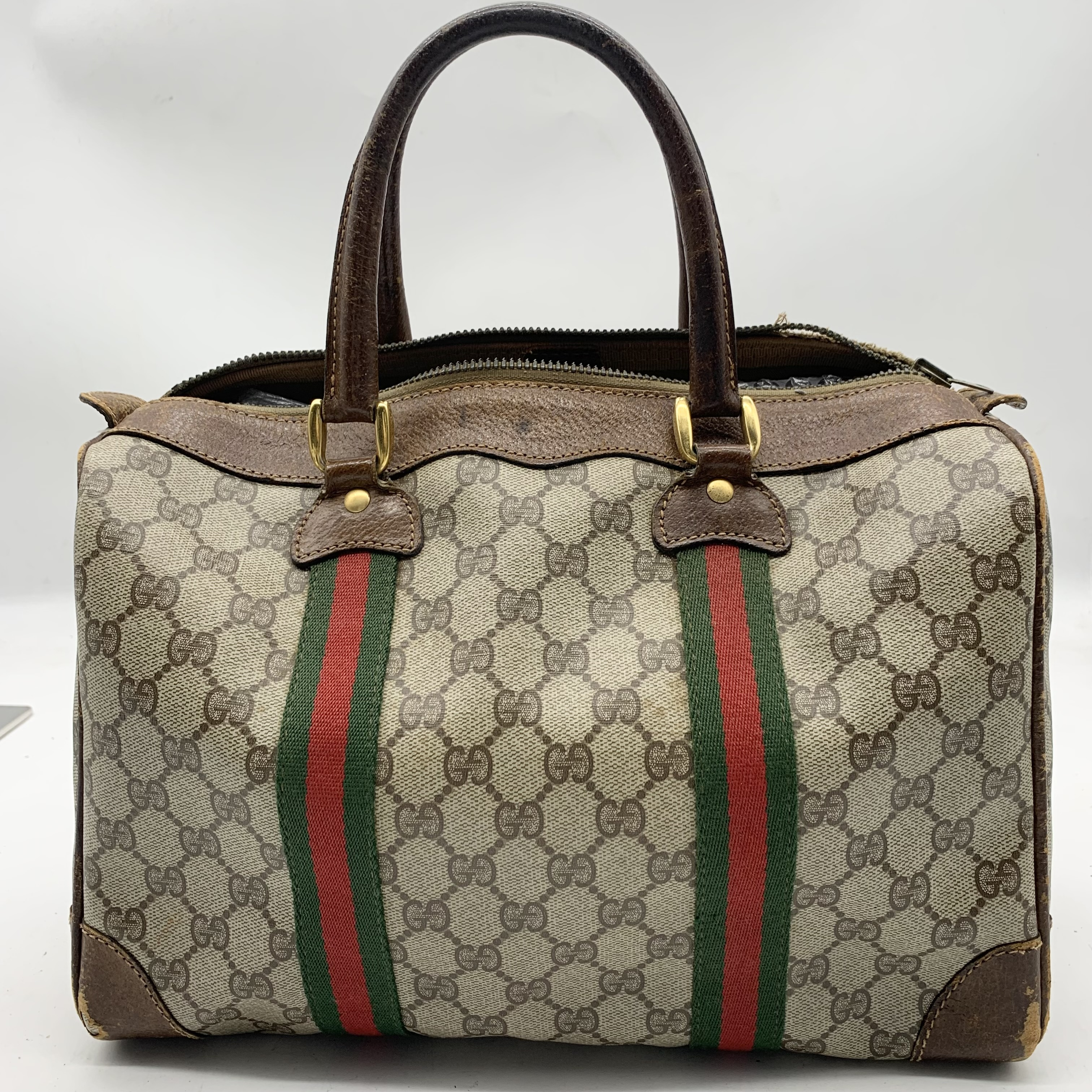(11938_0478)GUCCI GUCCI グッチ ボストンバッグ ショルダーバッグ 2点セット まとめ (GGスプリーム シグネチャー ブラウン) ボストンバッグ
