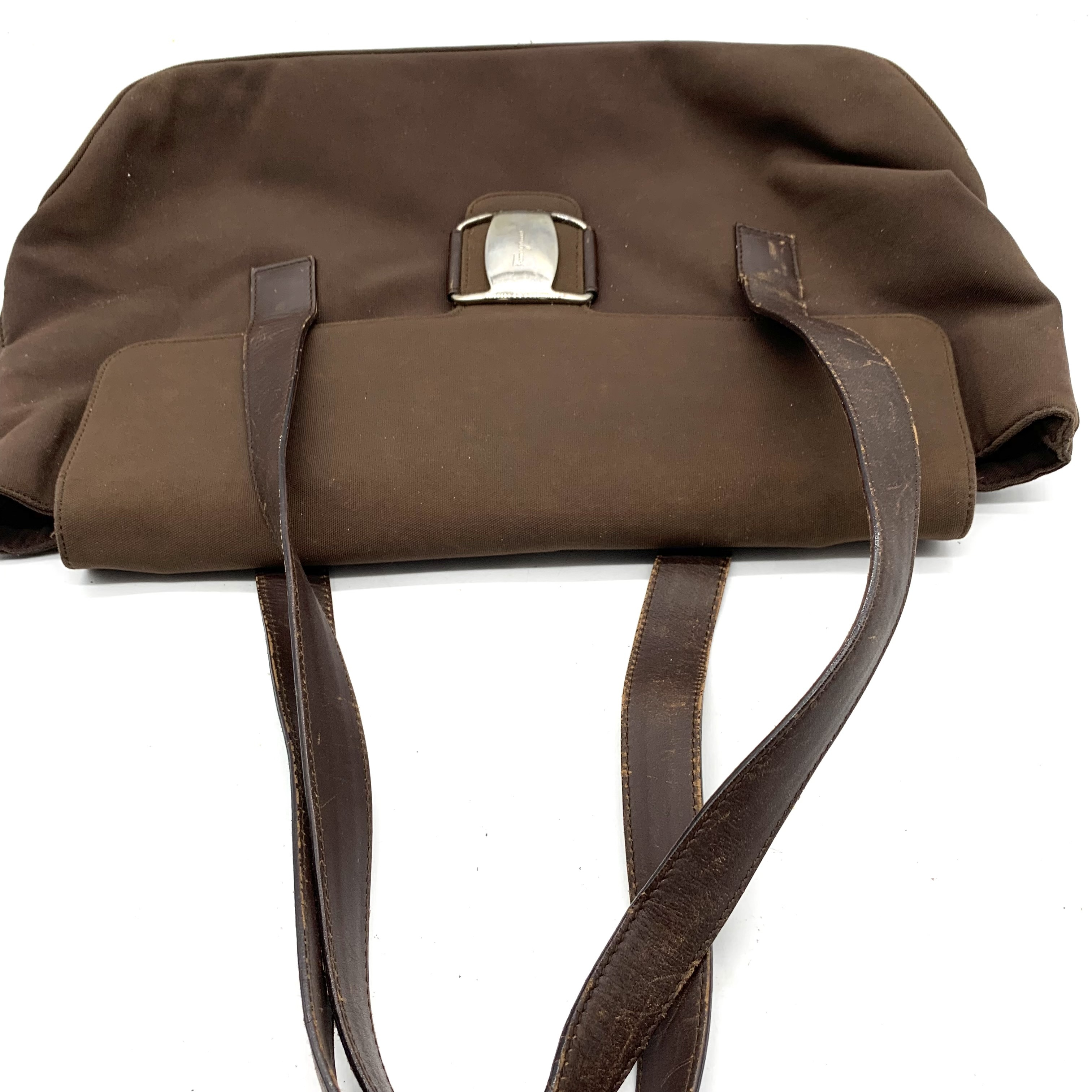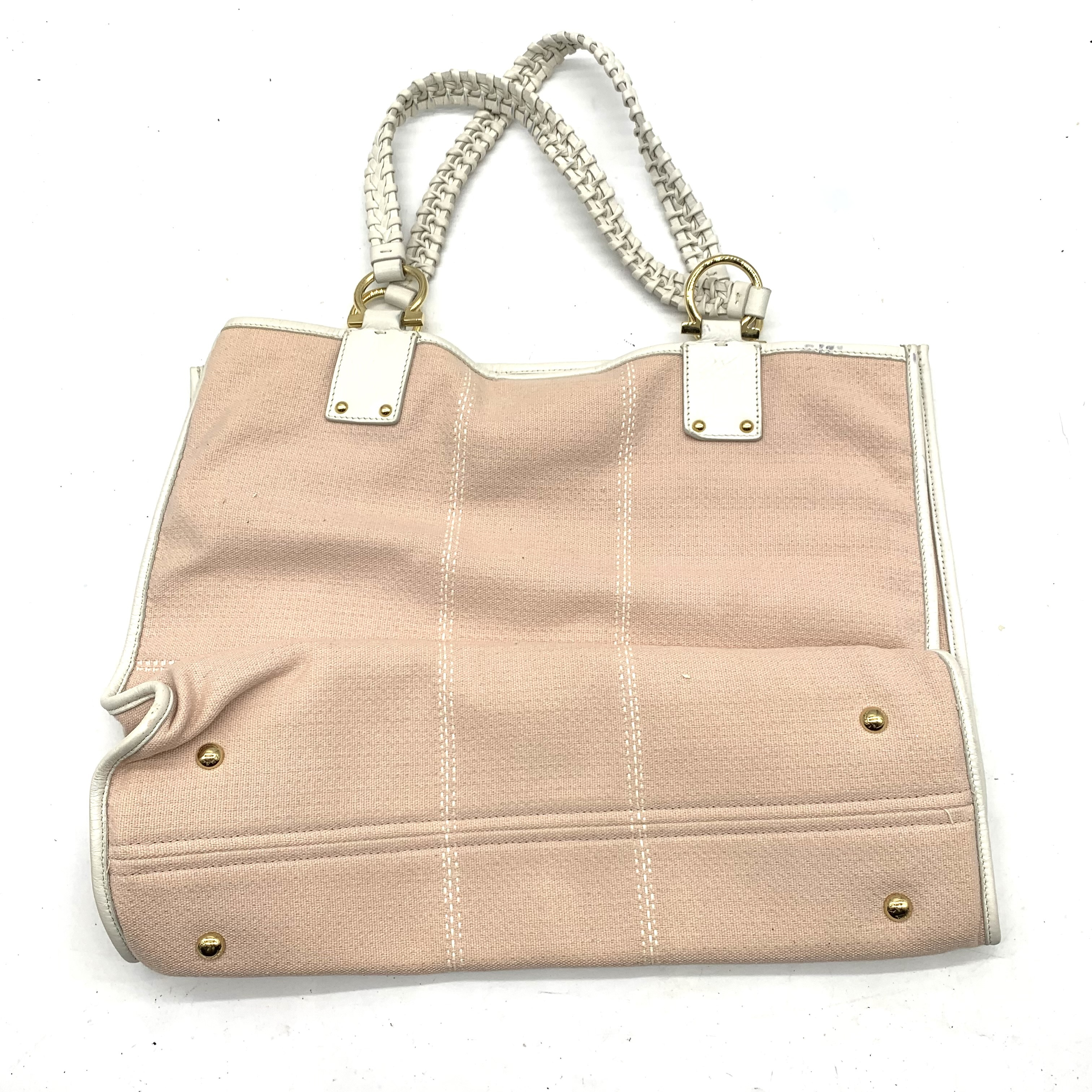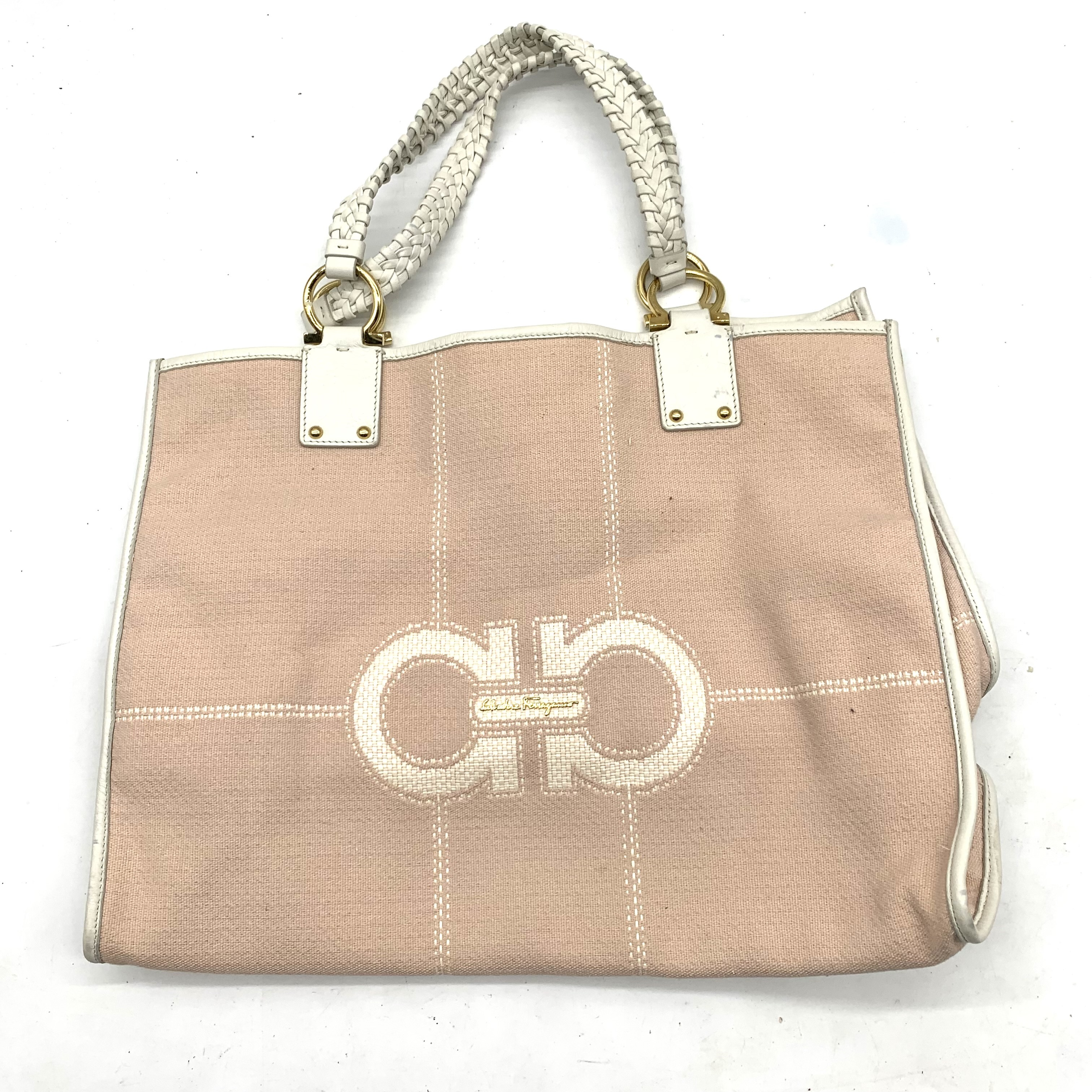 (11938_0630)Salvatore Ferragamo サルヴァトーレ フェラガモ トートバッグ 2点(ガンチーニロゴ/ピンク/キャンバス・レザー、無地/ダークブラウン/ナイロン・レザー) トートバッグ