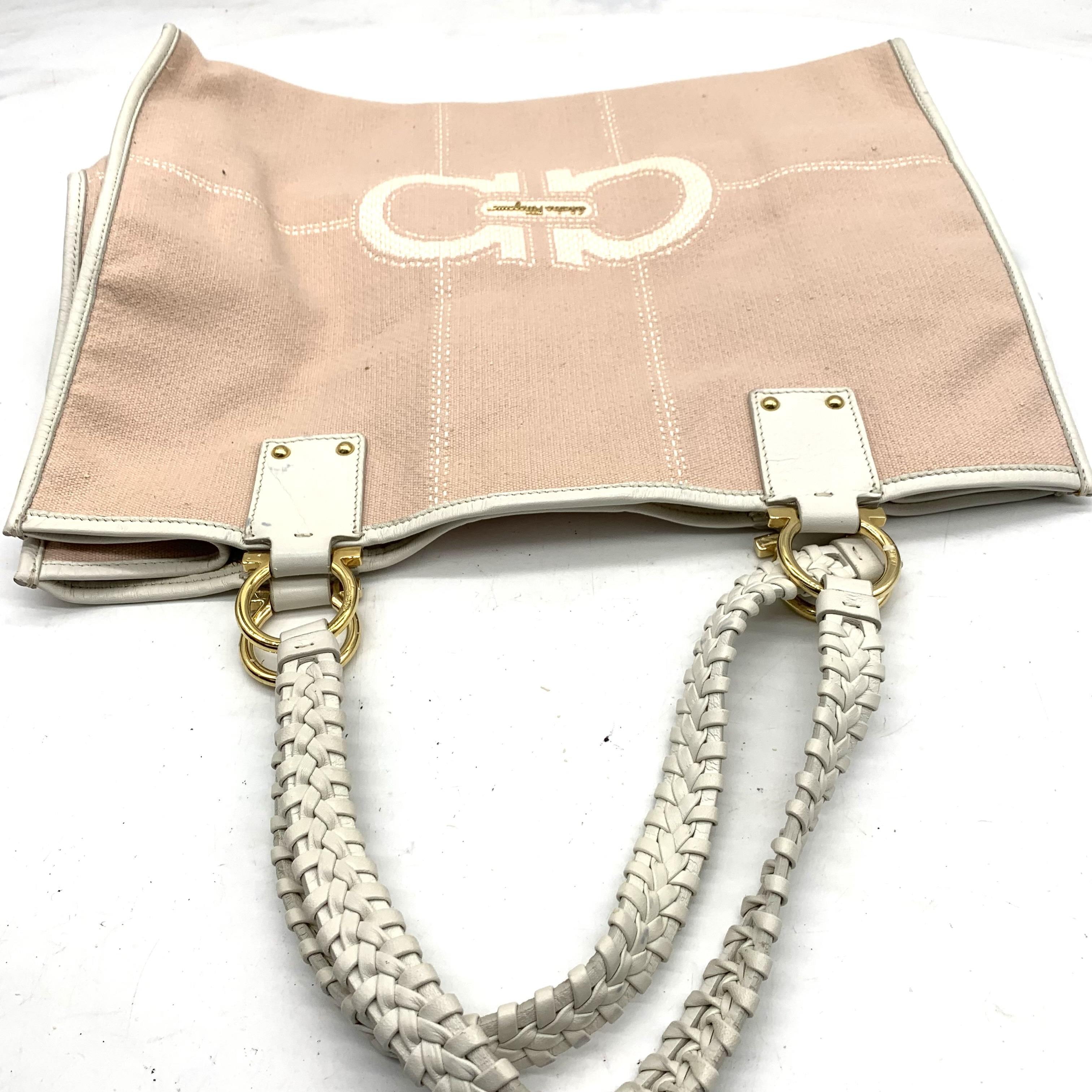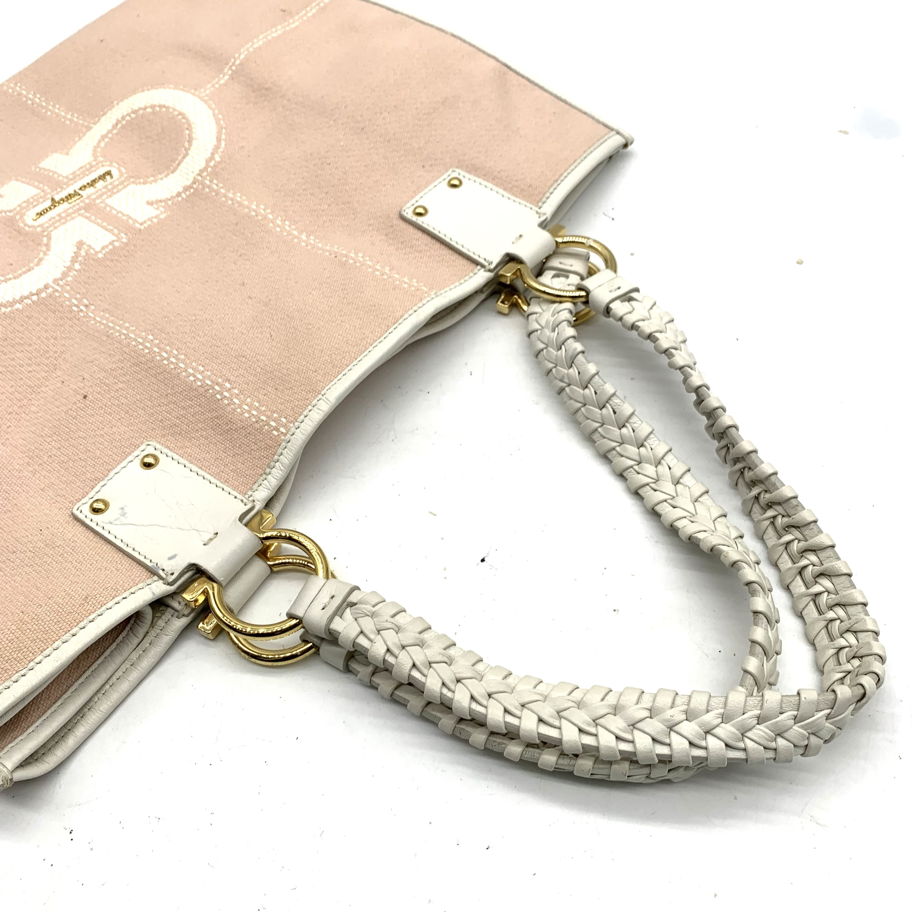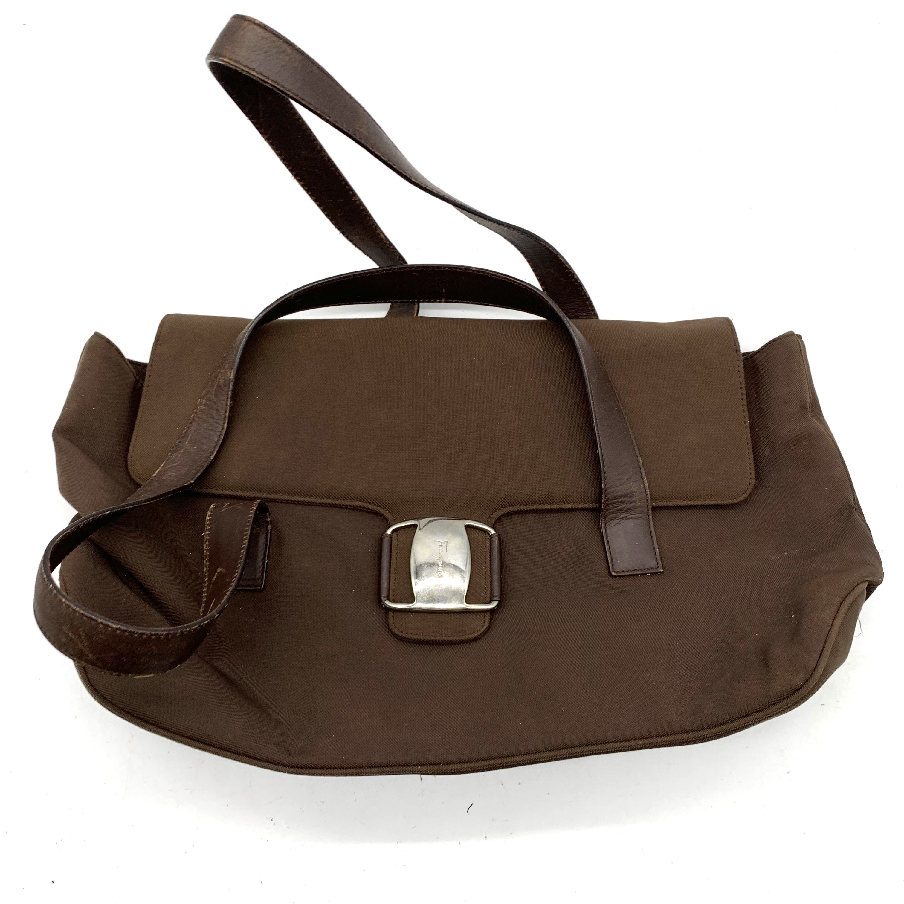 (11938_0630)Salvatore Ferragamo サルヴァトーレ フェラガモ トートバッグ 2点(ガンチーニロゴ/ピンク/キャンバス・レザー、無地/ダークブラウン/ナイロン・レザー) トートバッグ