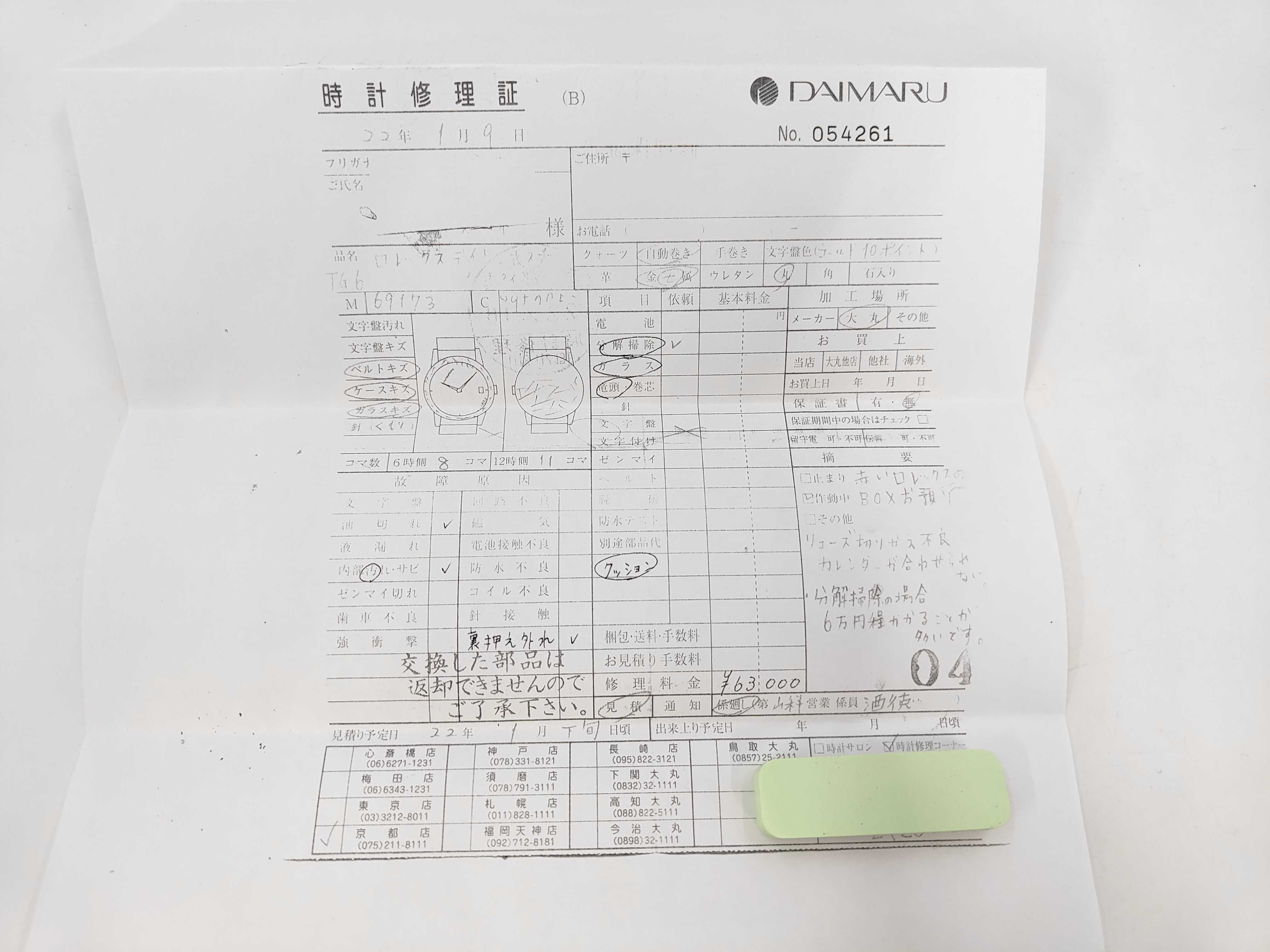 全体小傷あり ガラス問題なし 針シミ小 ベゼル・ケース打痕傷小 日ギャラあり(消込)【付属品