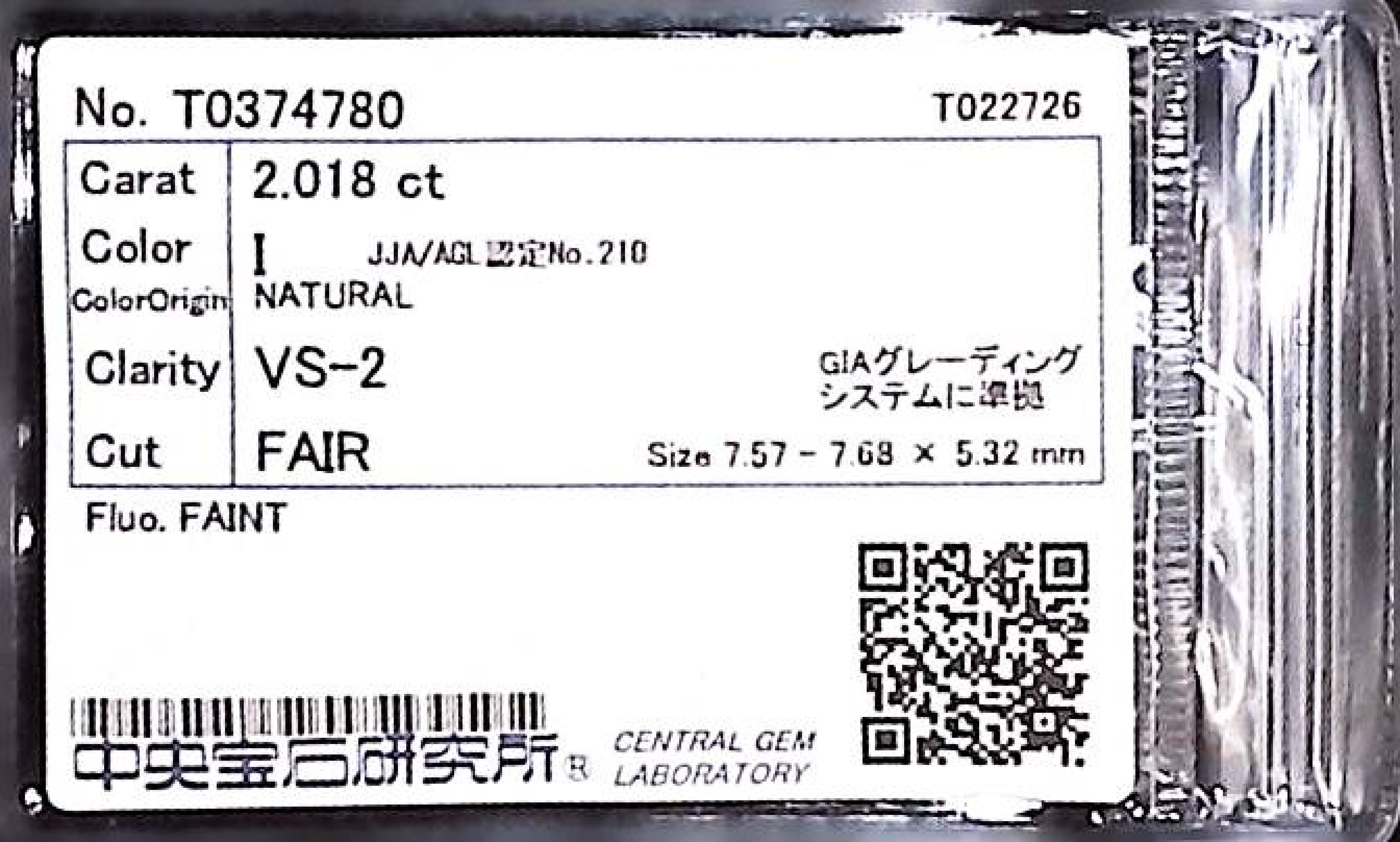 (11941_0055)2.018ct I VS-2 FAIR/VG/GD FAINT NATURAL 7.57-7.68×5.32 mm ダイヤ・ルース