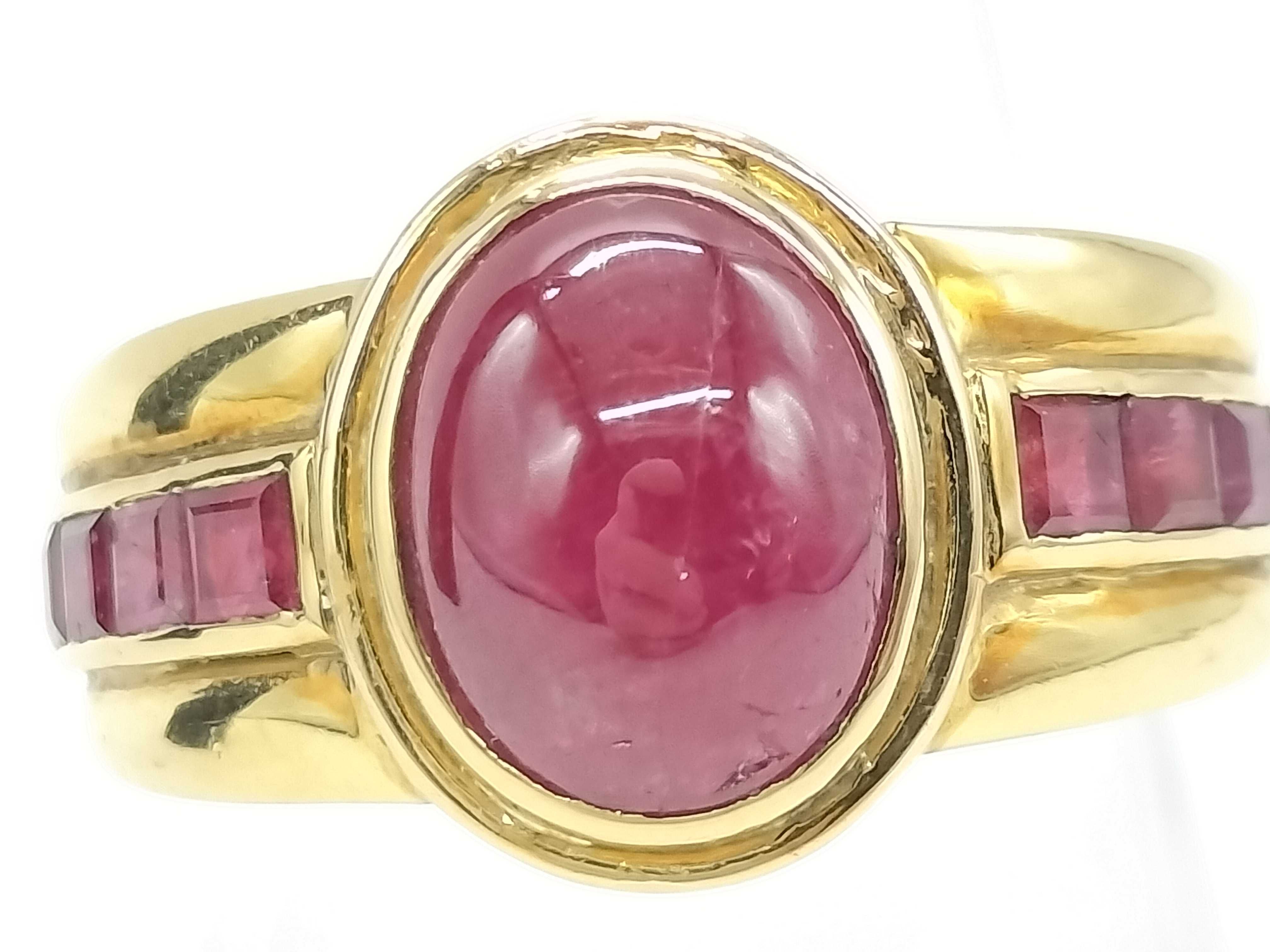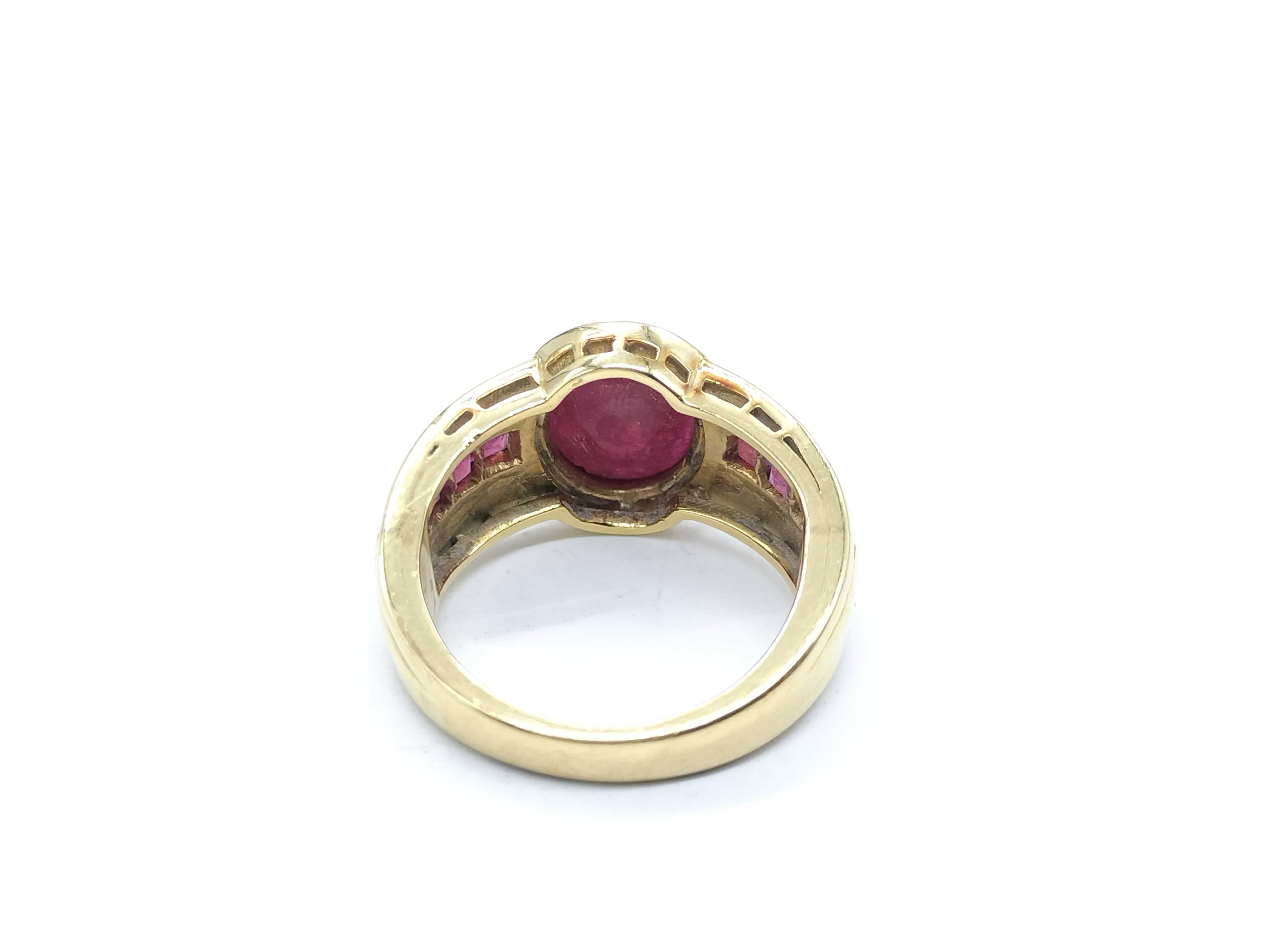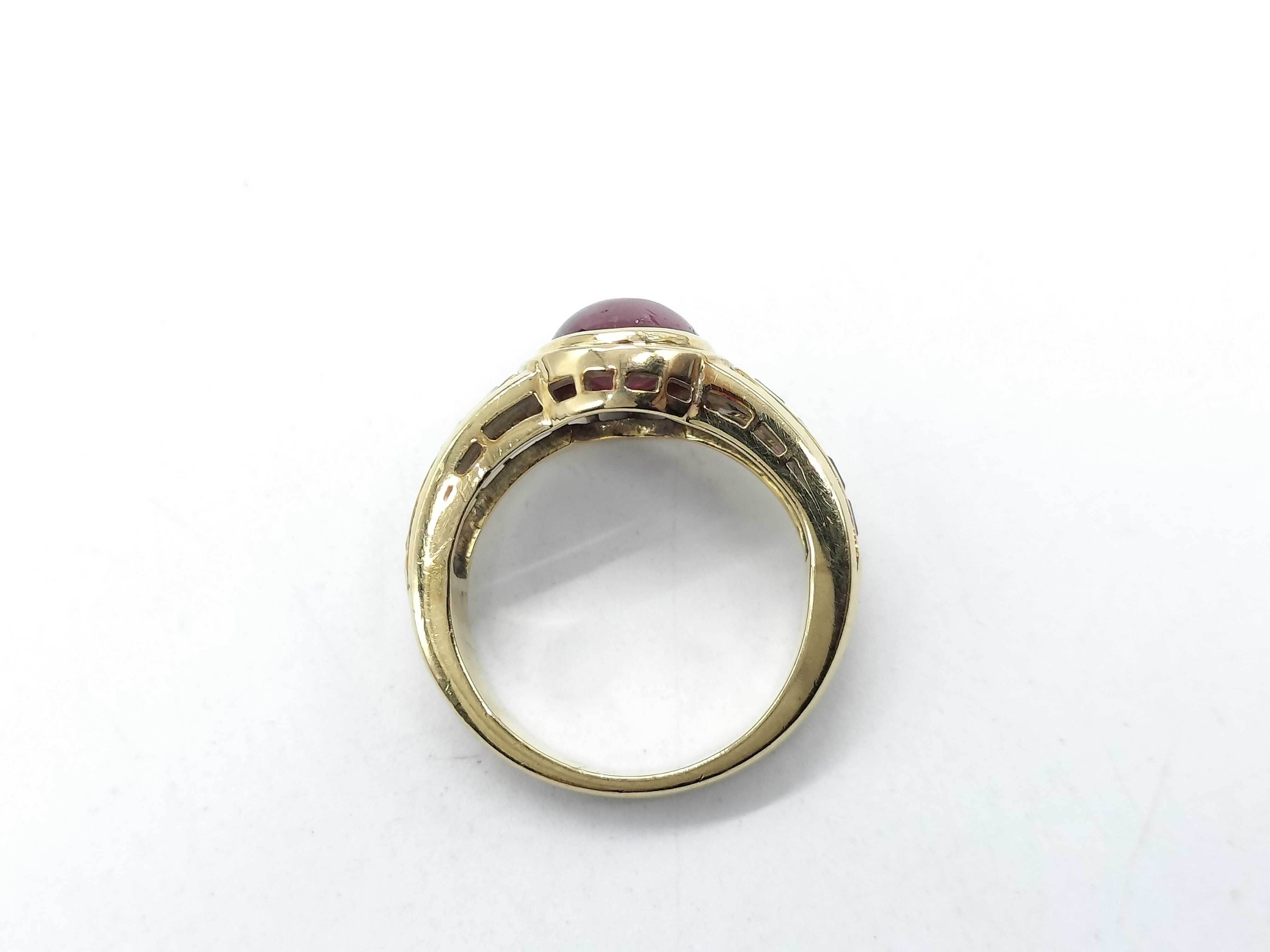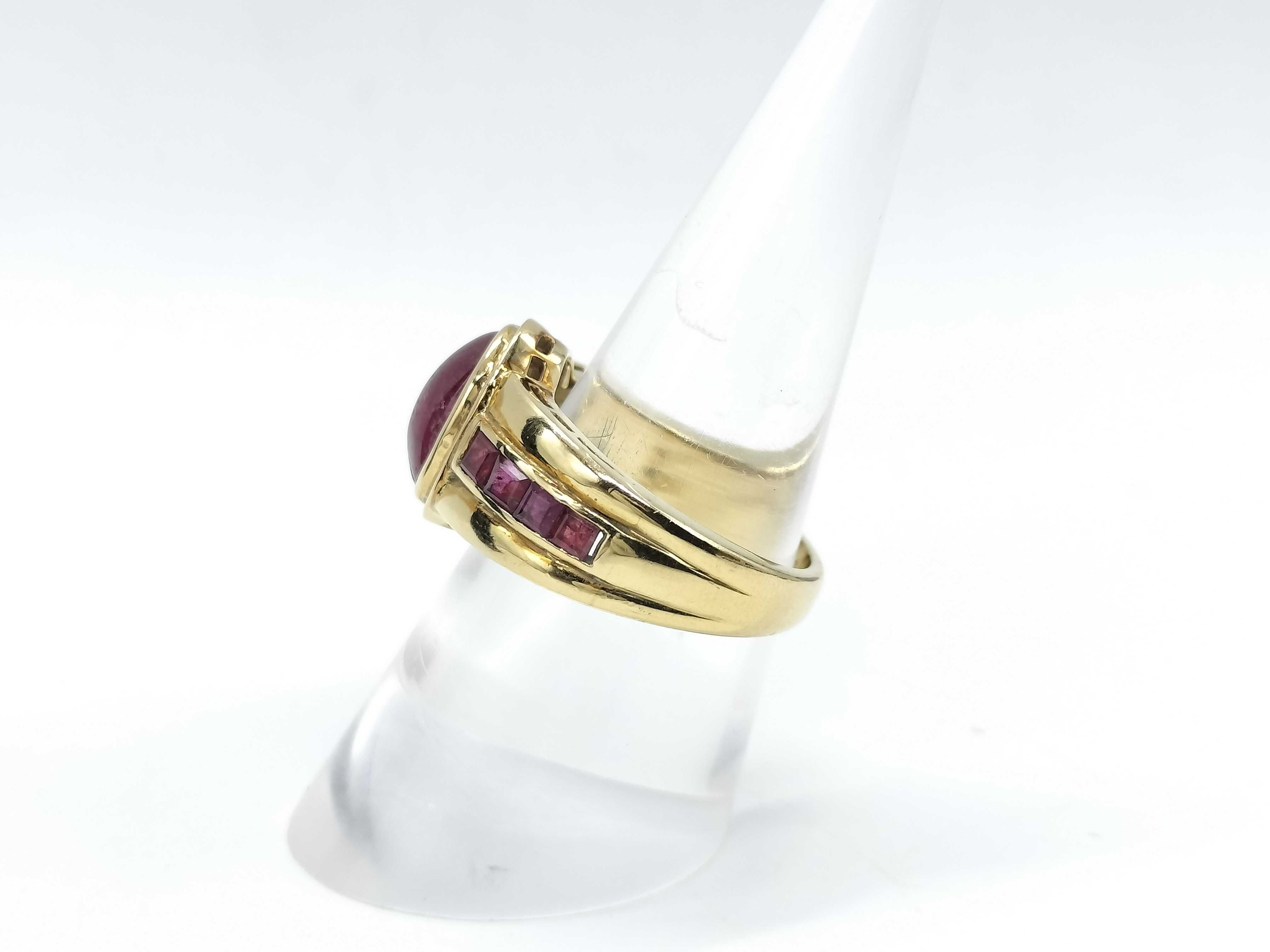 色石面キズ/面カケあり(直径約10.3mm*7.9mm). 脇石ルビー評価=BC(面カケあり). 18刻印あり. 金性刻印なし ⇒ 分析結果Au76.2%.","タイプライン": "", "カテゴリ": "貴金属", "形状コード": "リング(貴金属)", "付属品コード": "", "シリアル・シール・型番": ""