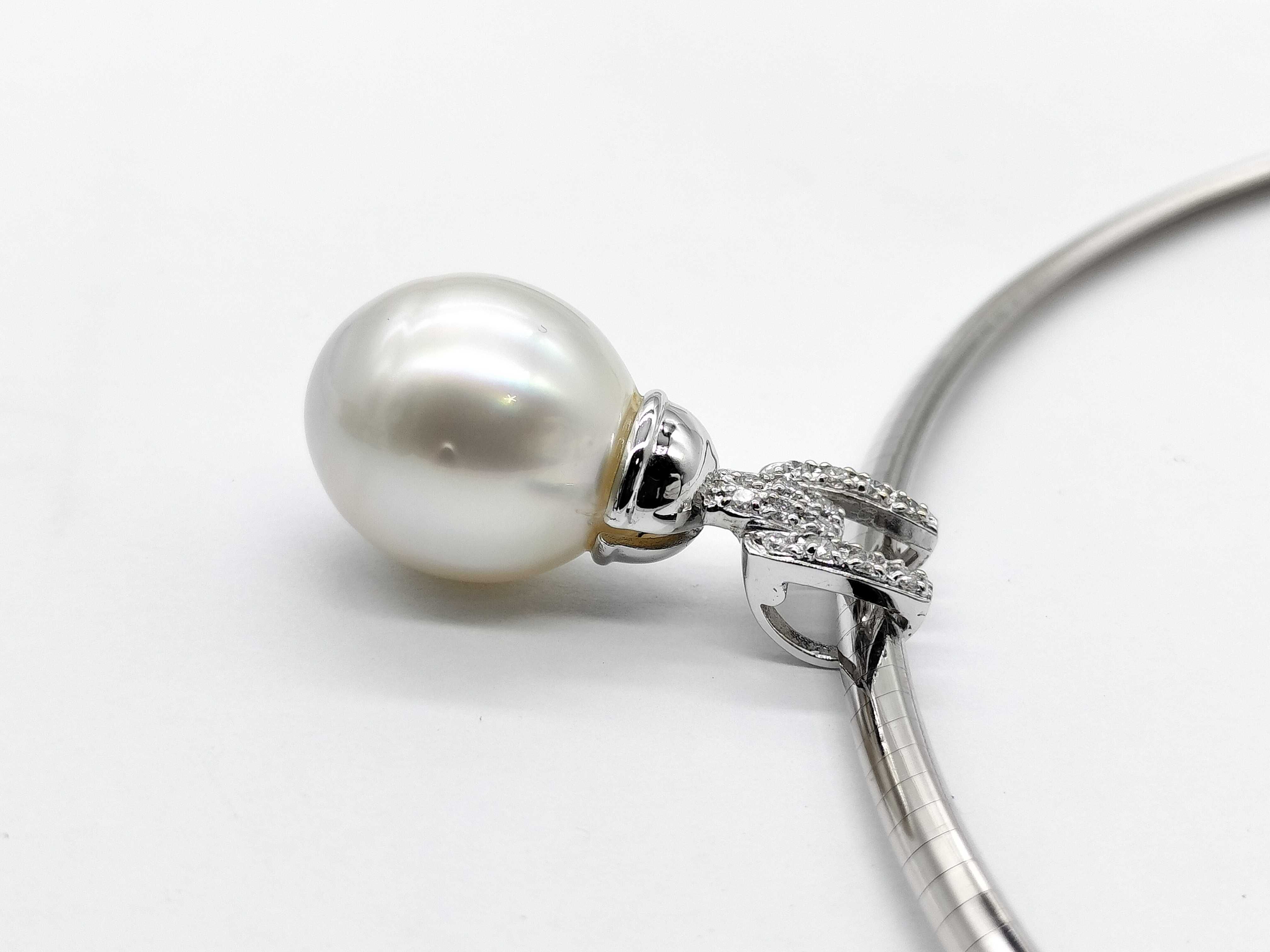(11941_0167)南洋パール直径 約13.9mm*18.8mm(枠込み) D0.20ct K18WG 28.3g ネックレス(貴金属)