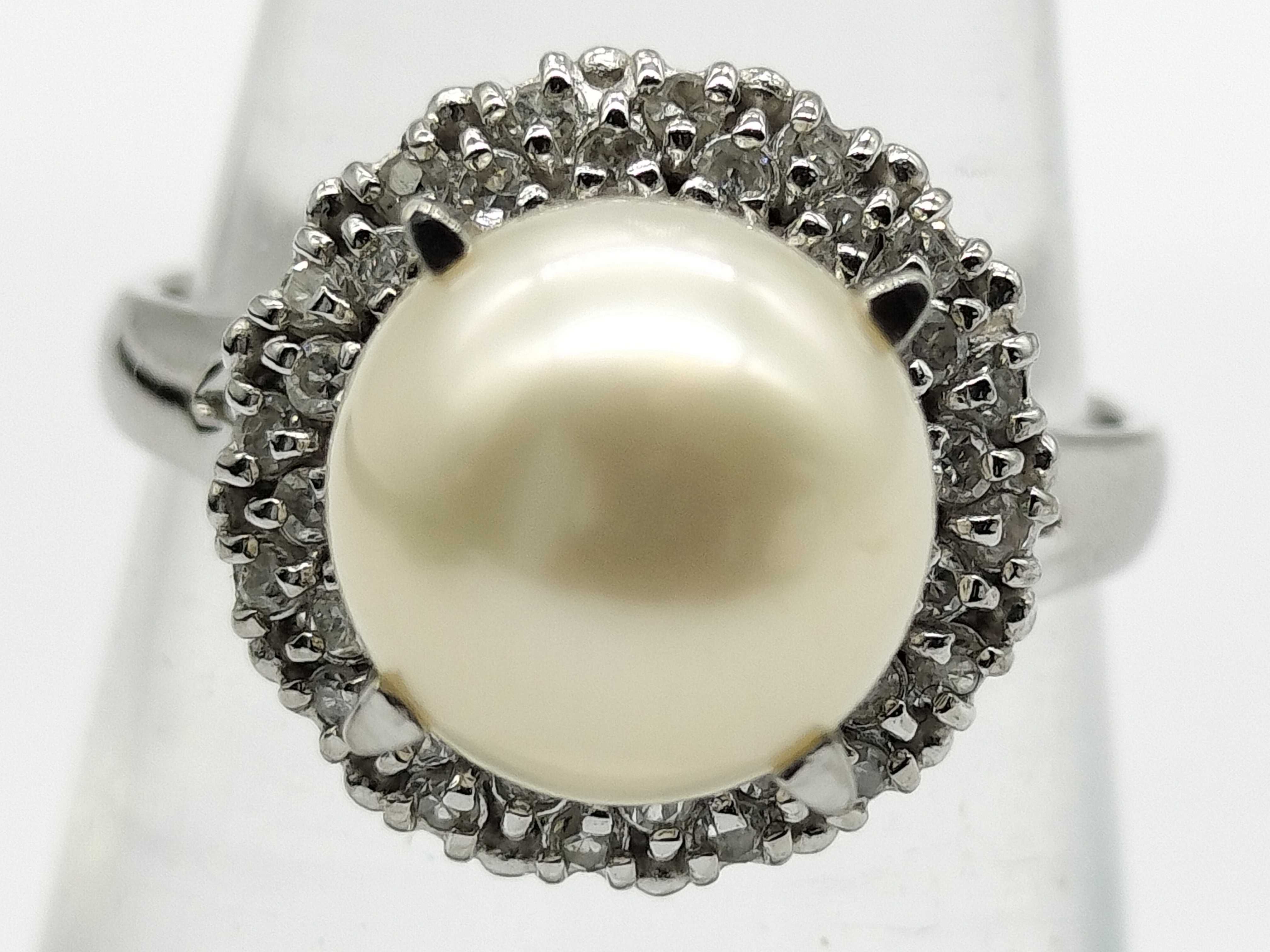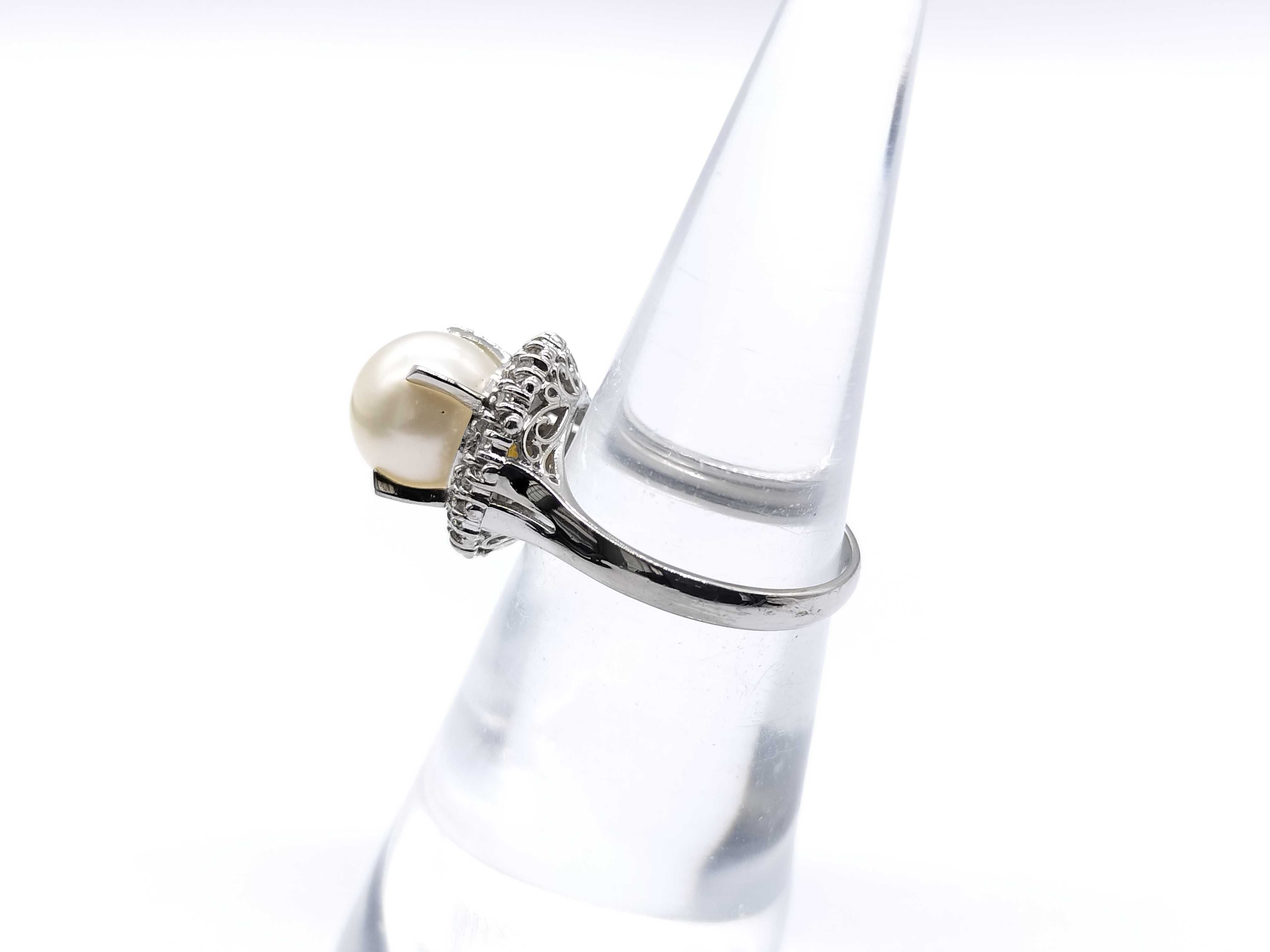 (11941_0183)パール直径 約8.4mm ダイヤ Pt900 5.1g リング(貴金属)