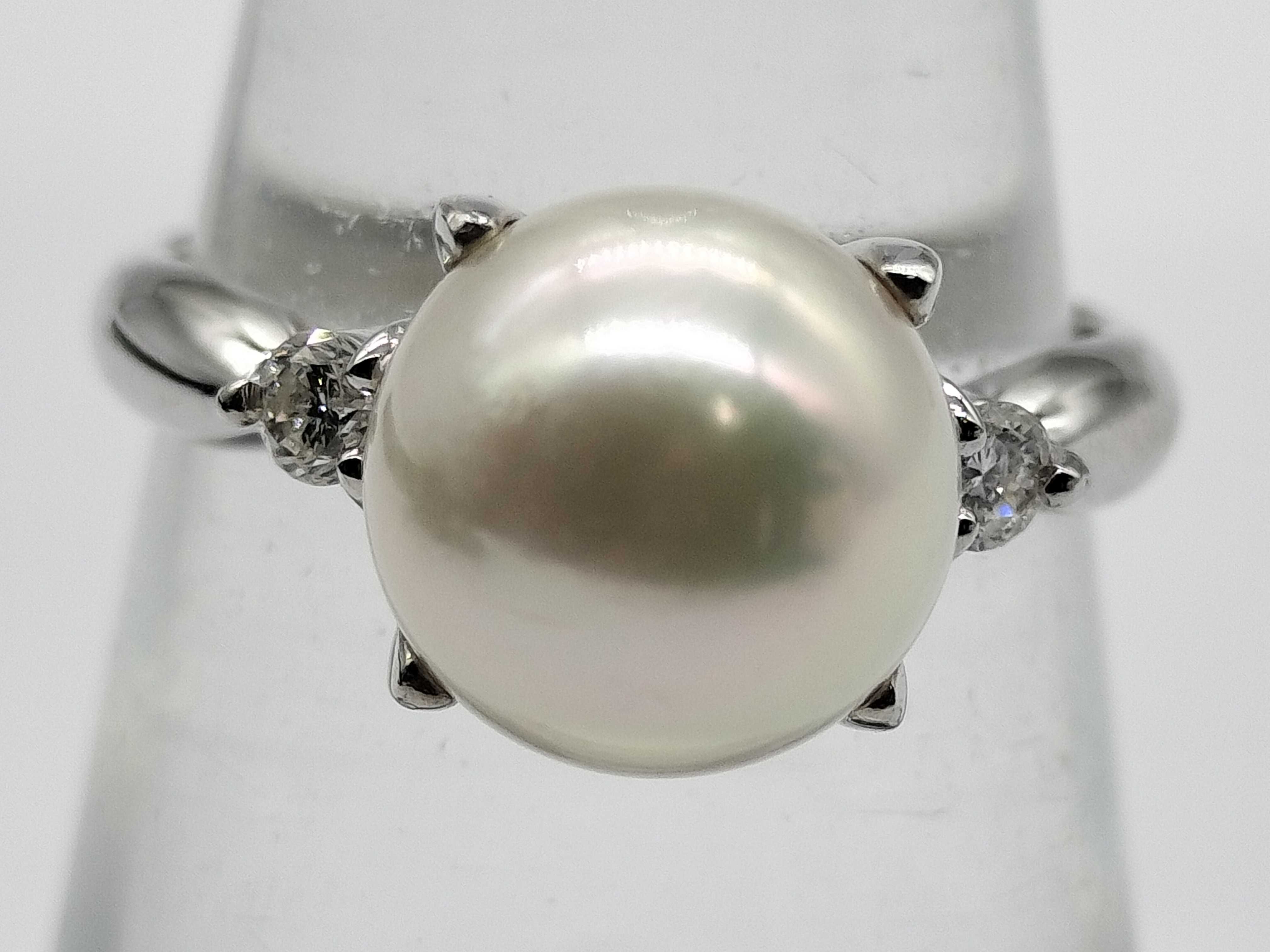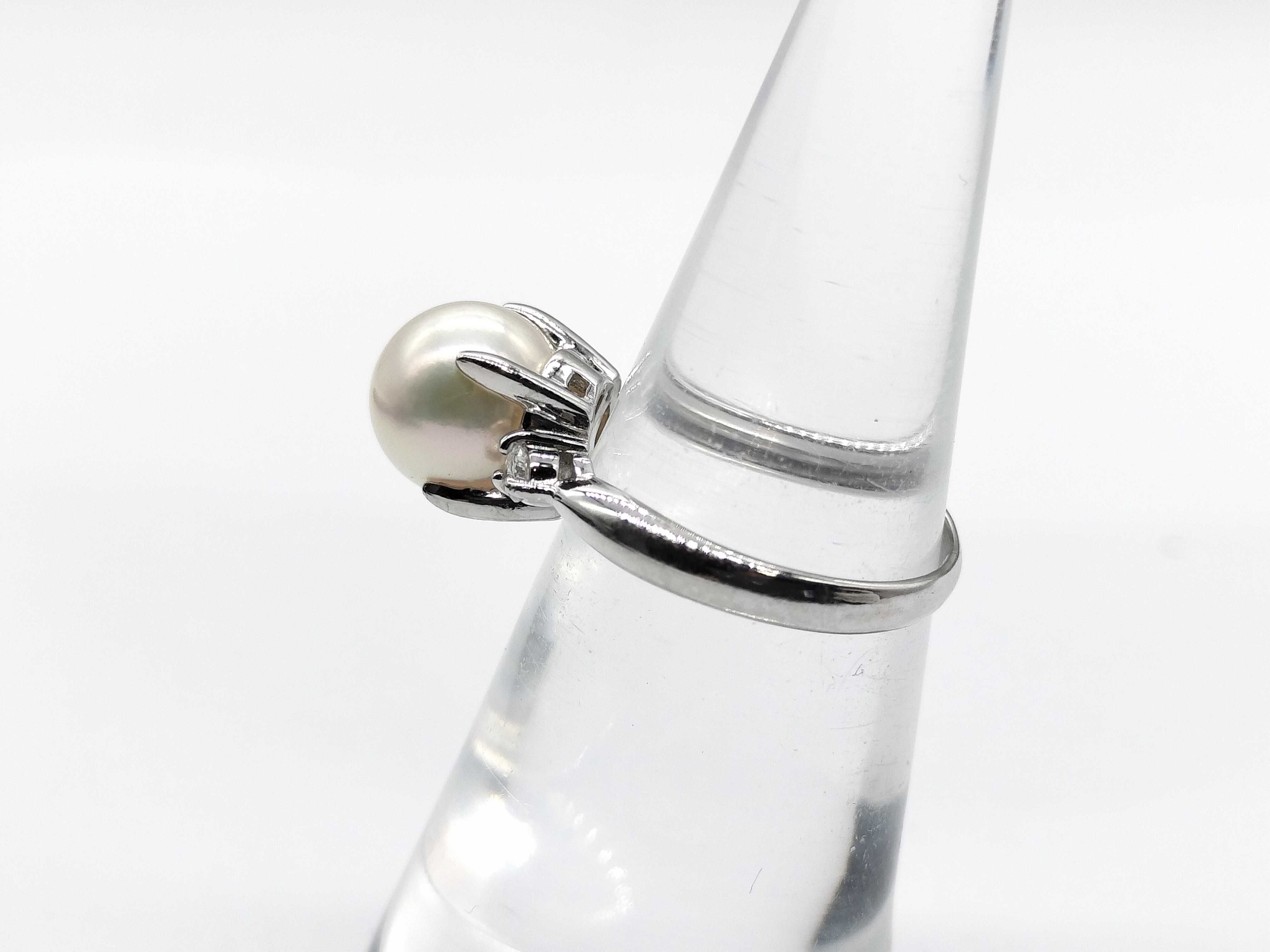 (11941_0222)パール直径 約8.7mm D0.10ct Pt900 4.6g リング(貴金属)