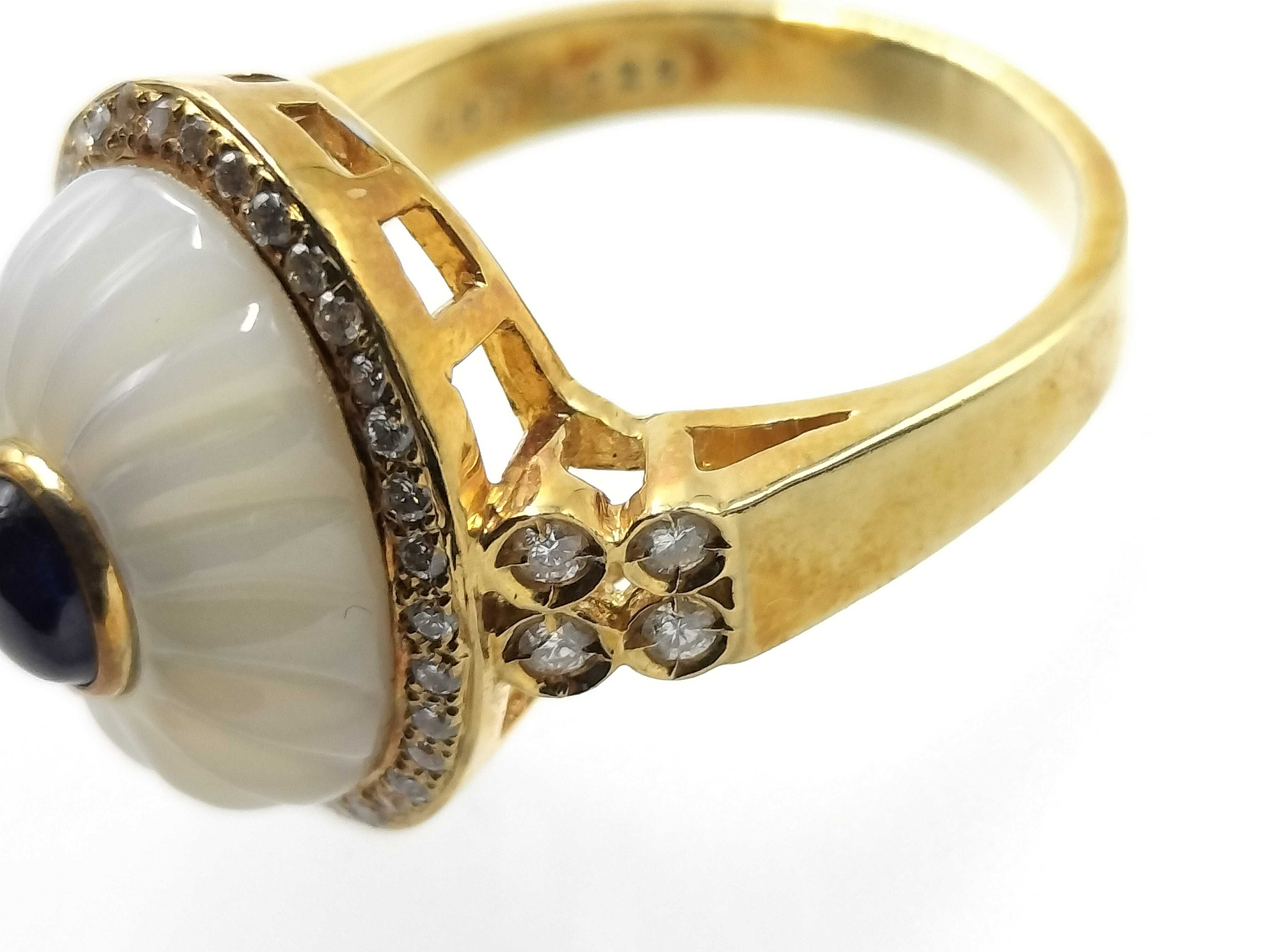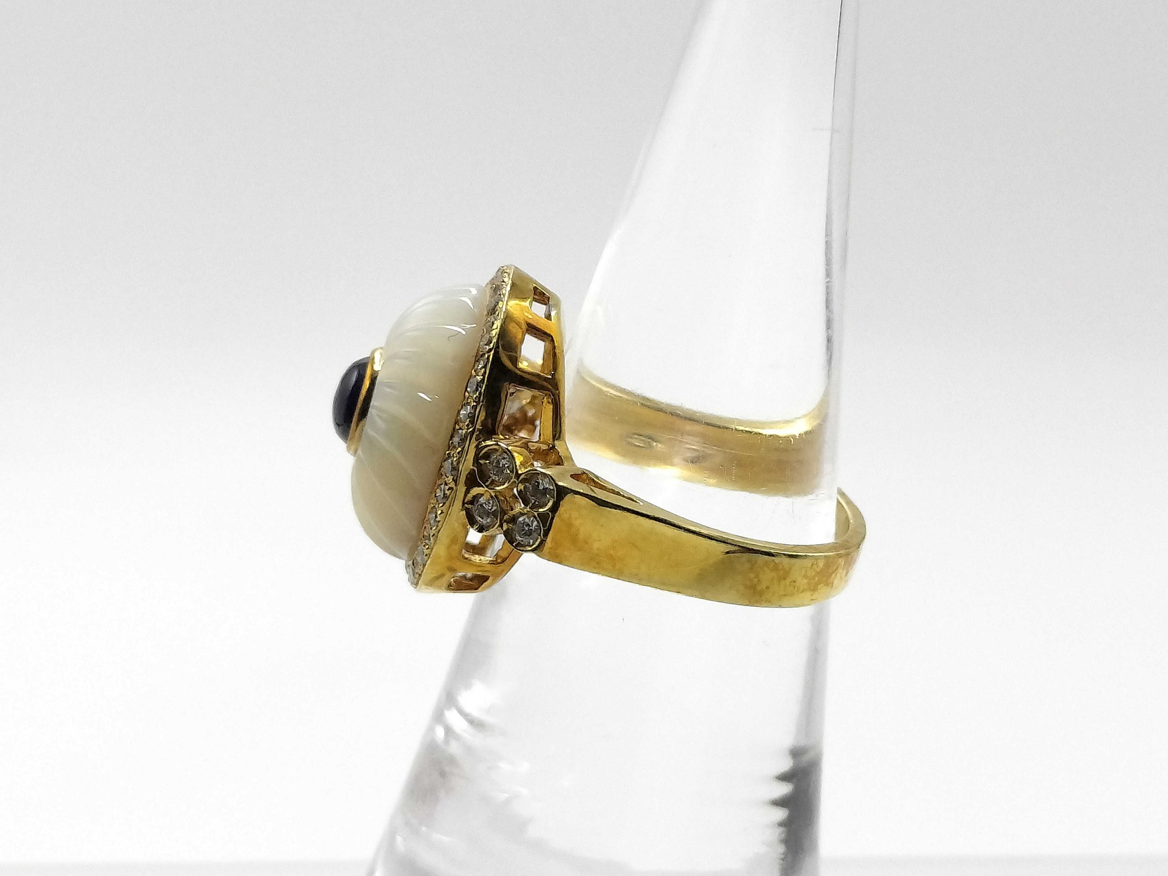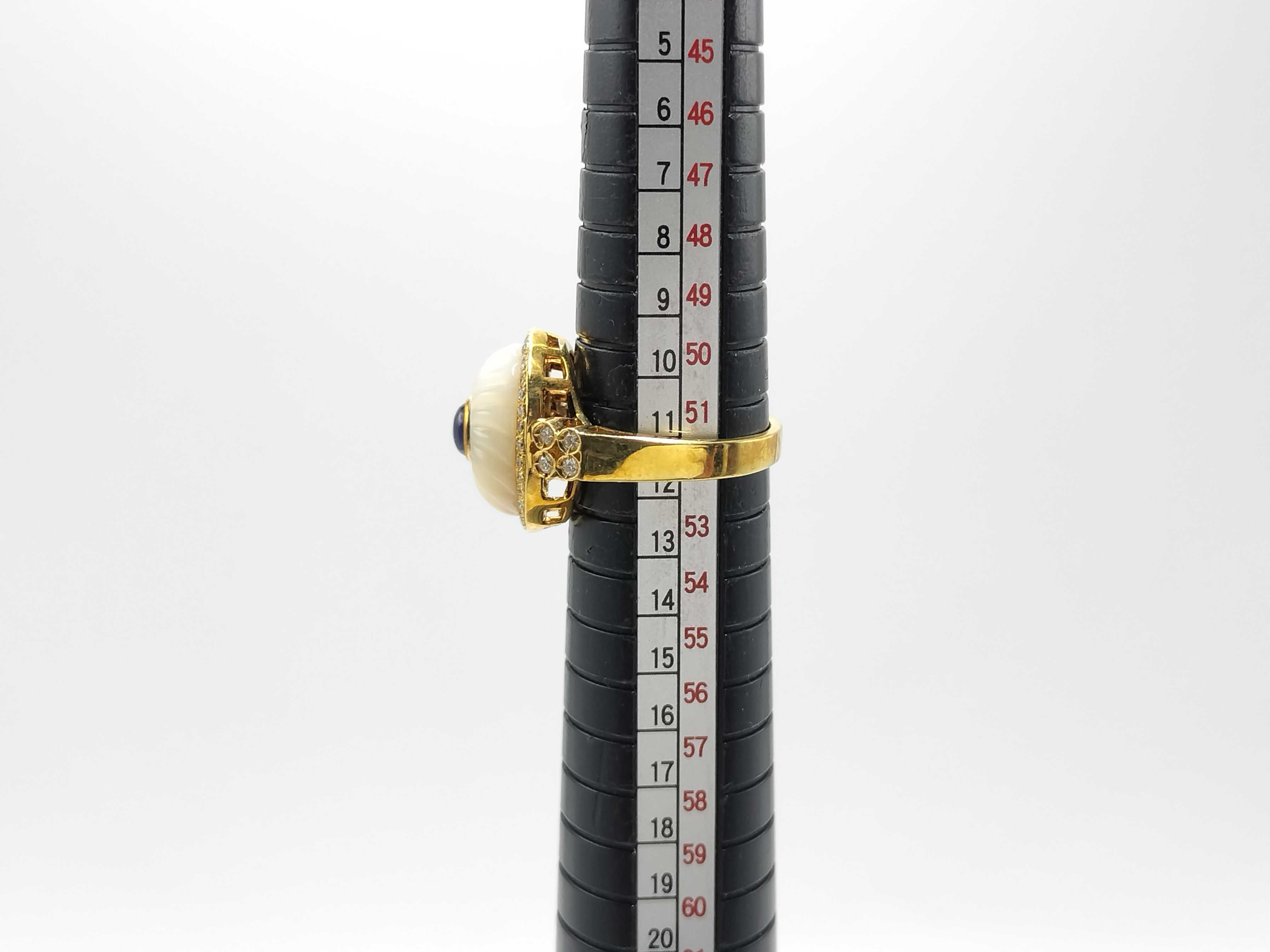(11941_0283)カボションサファイア0.67ct シェル D0.29ct K18 9.2g リング(貴金属)