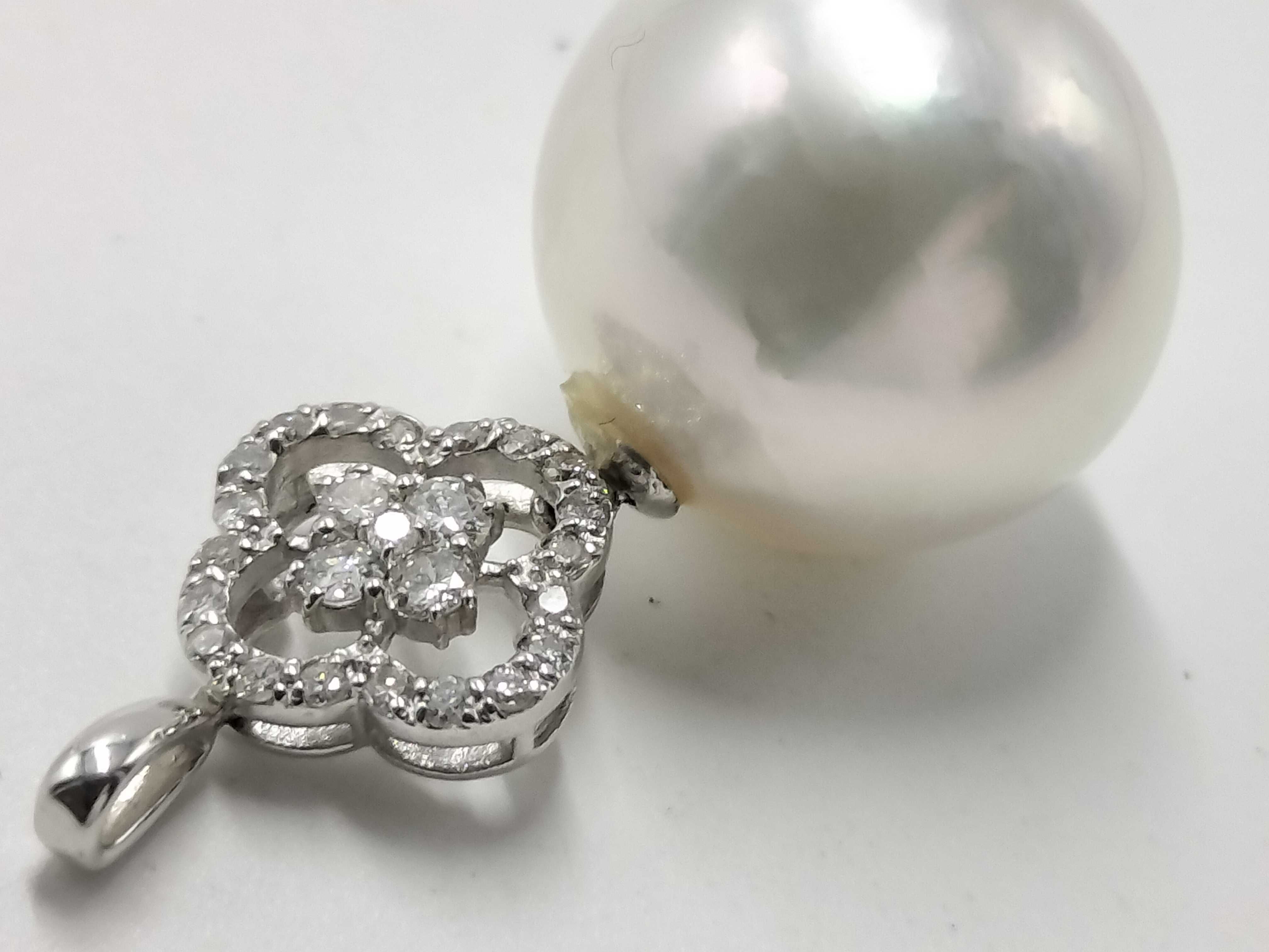 (11941_0301)パール直径 約15.7mm ダイヤ K18WG 6.4g ペンダントトップ(貴金属)